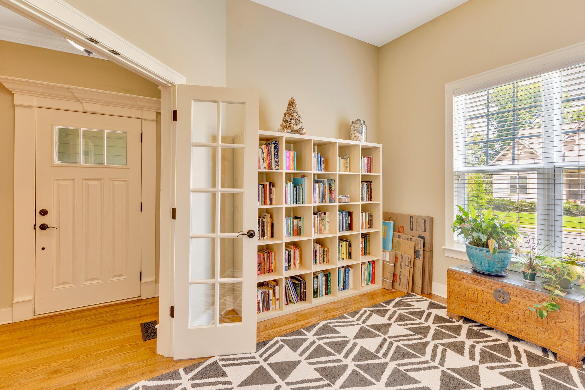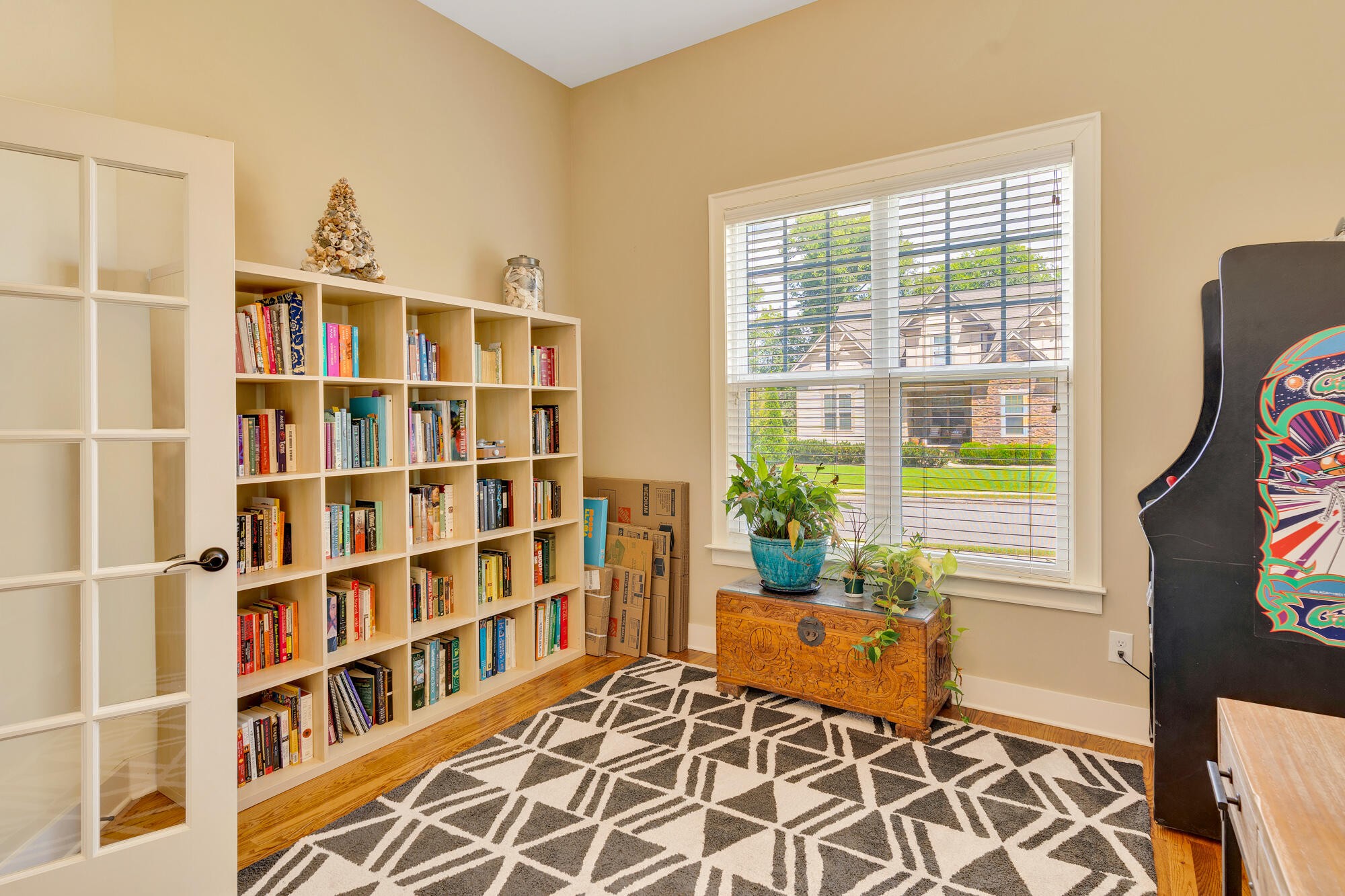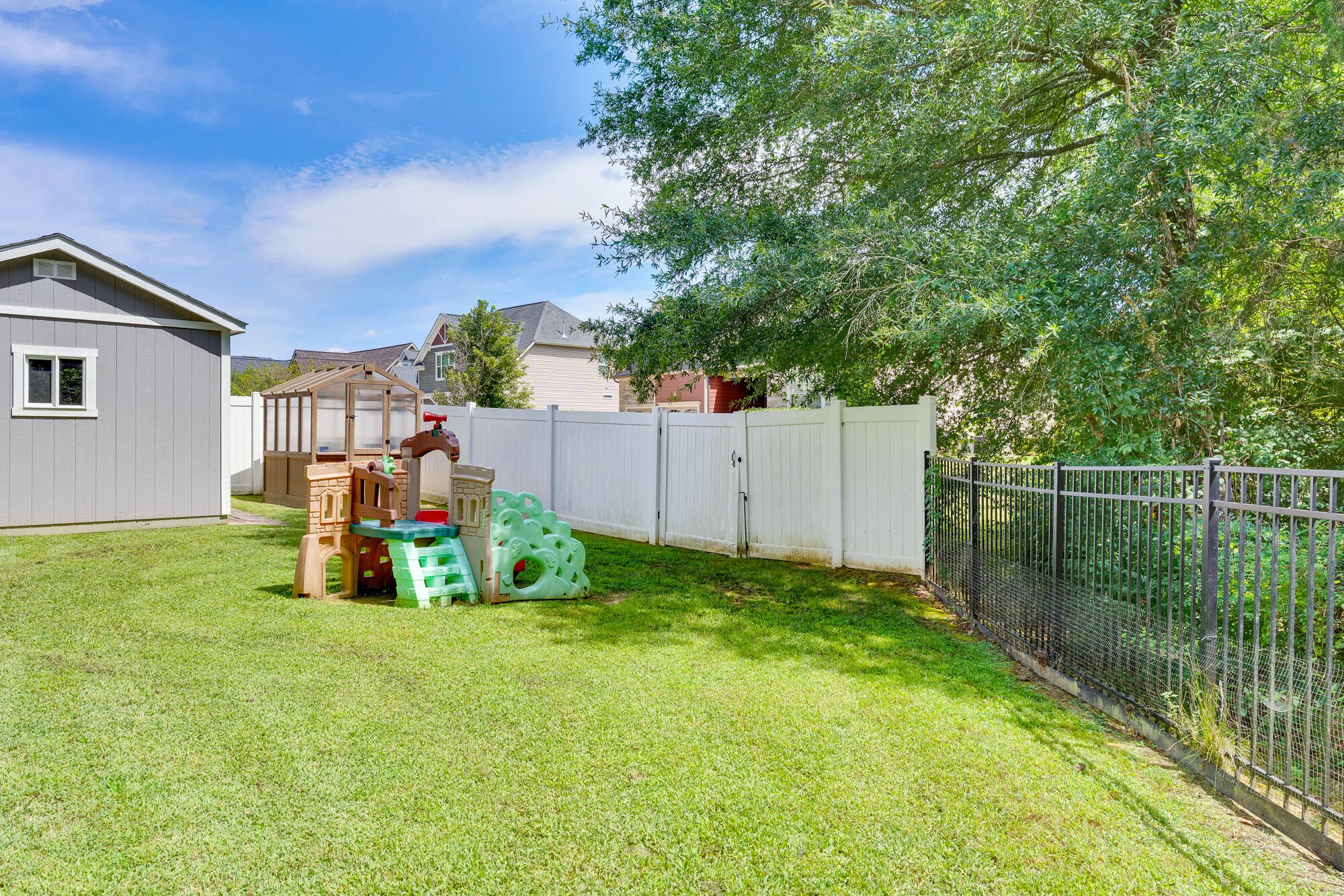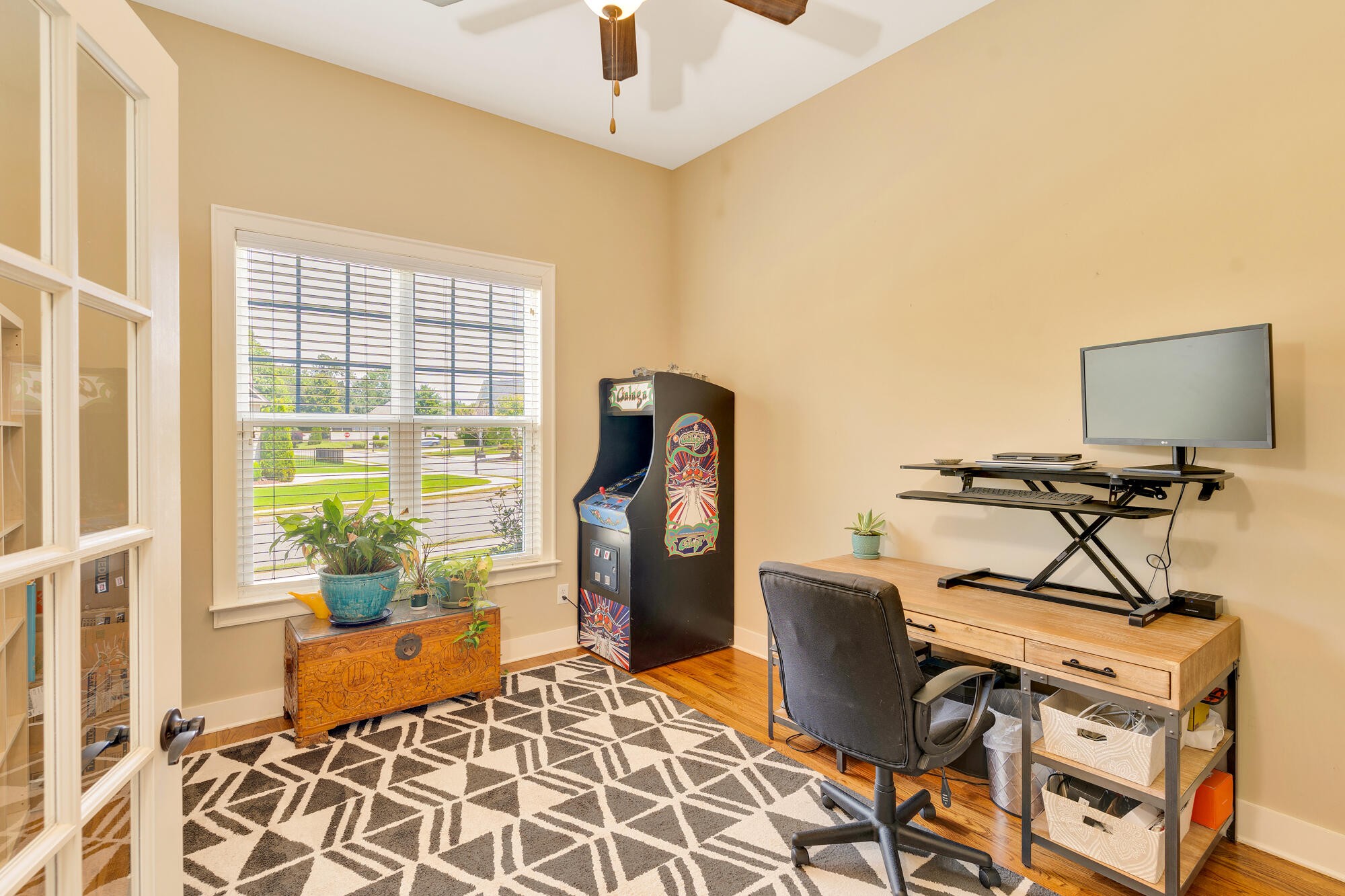 Step inside to an inviting open-concept floor plan that blends everyday living and entertaining with ease. The main level offers a dedicated office with elegant French doors, a spacious living area, and a primary suite conveniently located on the main floor. The kitchen and living space flow seamlessly to the screened-in porch and uncovered deck, perfect for relaxing or entertaining outdoors. The fenced backyard offers privacy with mature trees and a small stream at the back of the property.