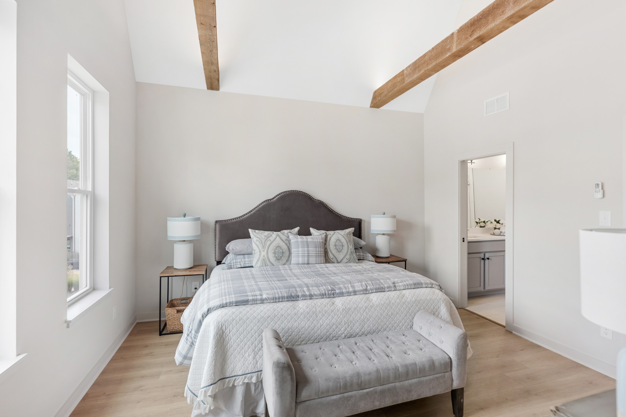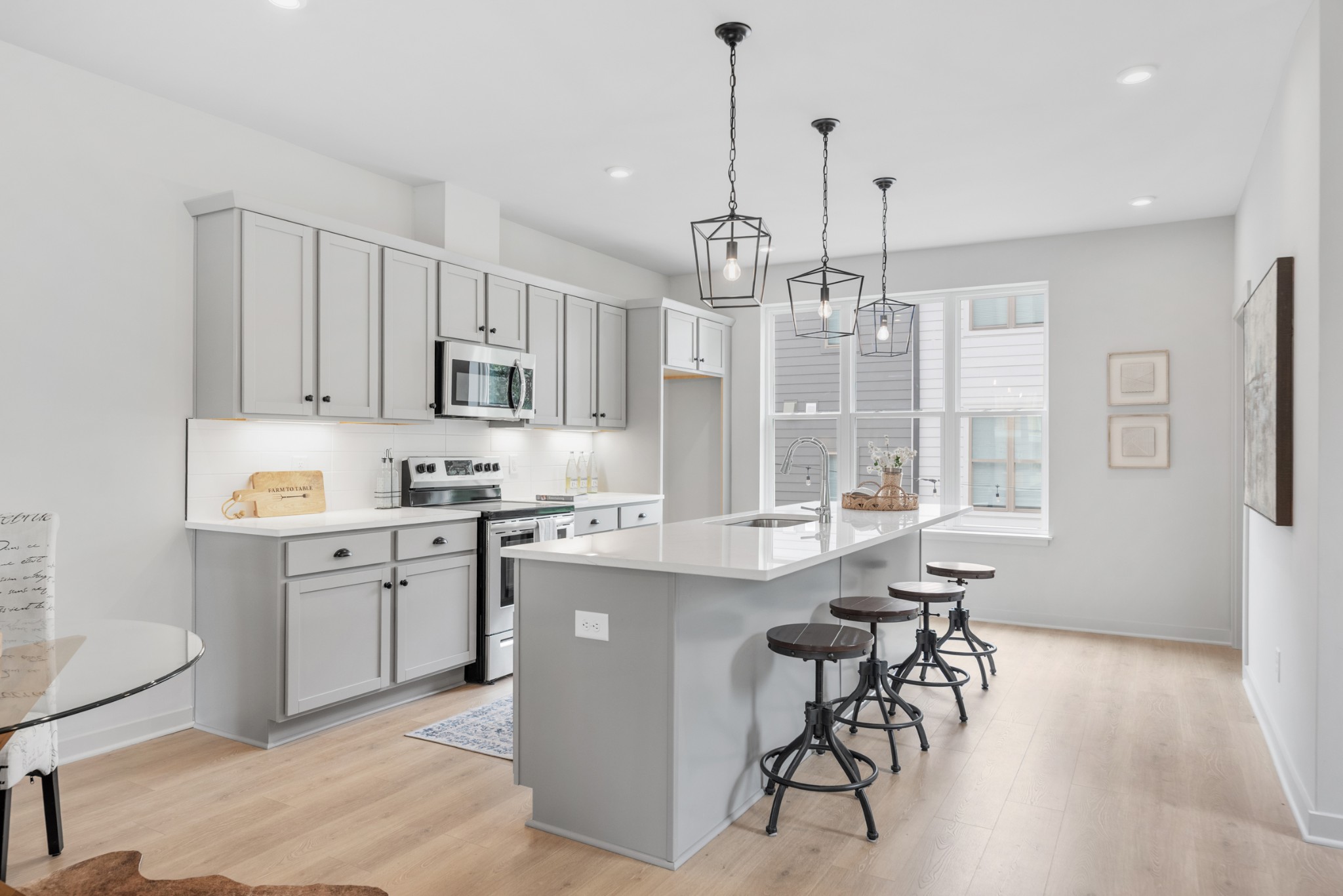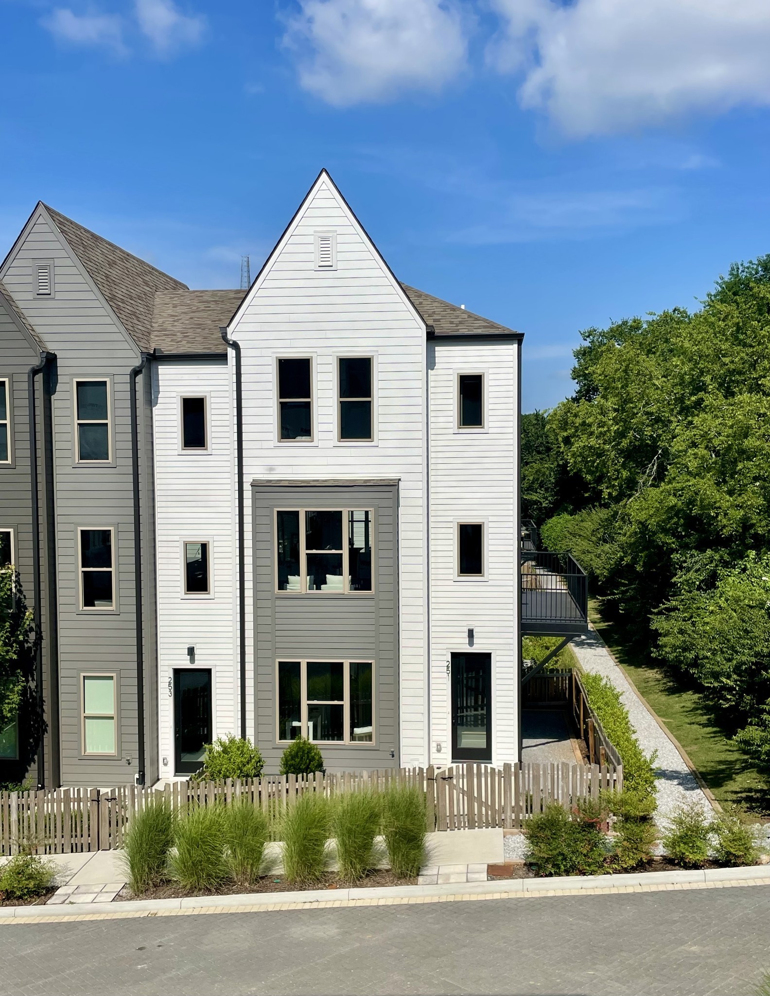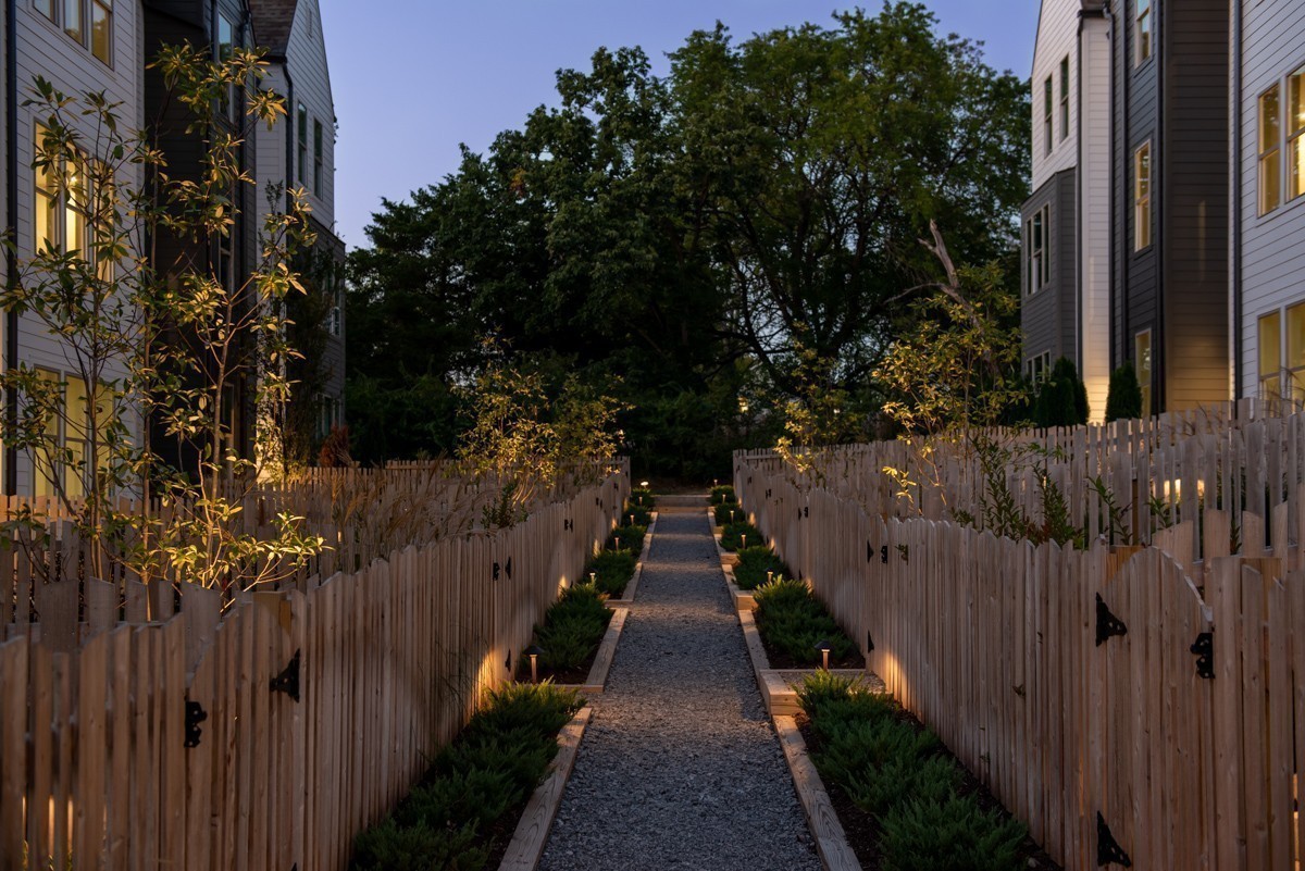 Premium corner unit townhome with balcony overlooking the tree lined perimeter walking trail. Fenced front yard (maintained by HOA), soaring ceilings, exposed beams, and an EV charger in the 2 car garage. East End Village is known for high quality, healthy and well built townhomes connected to the outdoors with walking trail, dog park, individual fenced yards and two water features -a fountain pond and swimming pool. The progressively designed homes feature upgraded insulation (for comfort and sound control), high efficiency heat pump water heaters and healthier heat and air systems. Located in Inglewood off Broadmoor between Gallatin and Dickerson Rd with quick access to Ellington Pkwy. EEV offers convenience to many parts of Nashville while maintaining a sense of privacy and seclusion from any nearby traffic.