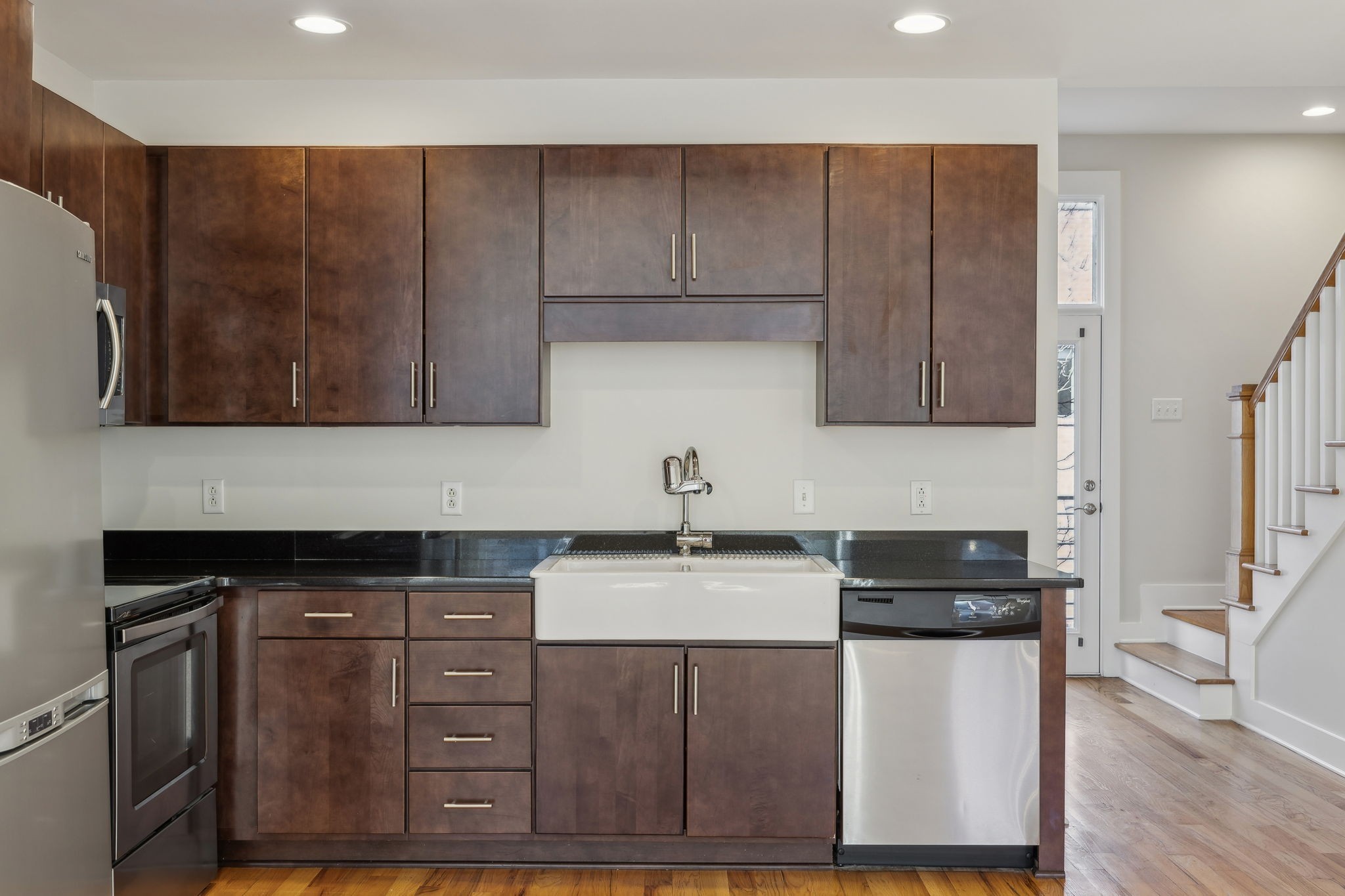 - AppliancesElectric Range, Dishwasher, Disposal, Dryer, Microwave, Refrigerator, Stainless Steel Appliance(s), Washer