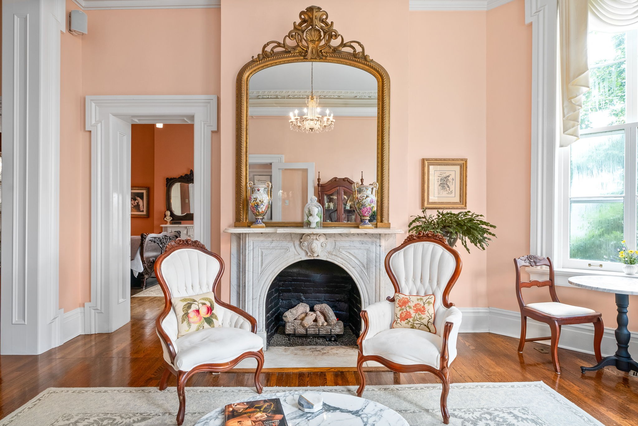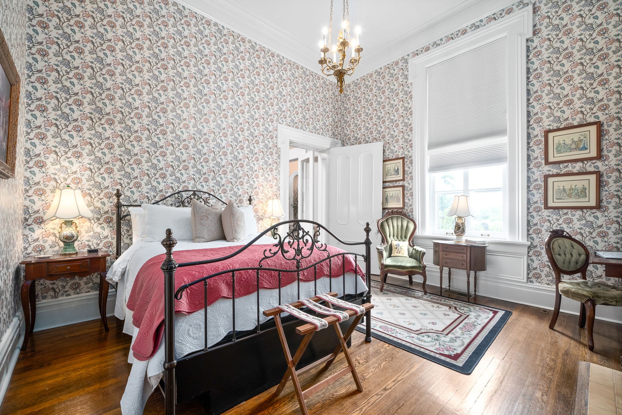 The sky is the limit for this property! It could easily be a private residence, restaurant or event space. You name it, and it's possible here. Beautiful historic home currently set up and available as a stunning fully furnished 8 bedroom turn key Bed and Breakfast. No details have been missed in the restoration of this property. Original ornate moldings by Tiffany, original hand painted Zuber mural installed in the early 1900's. Orginal hardwood throughout, commercial grade kitchen, soaring ceilings throughout the property, large spacious rooms. If set up as a private residence there would be 6 large bedroom suites and tons of flex space. Adjacent vacant lot can also be purchased. Truly one of a kind.