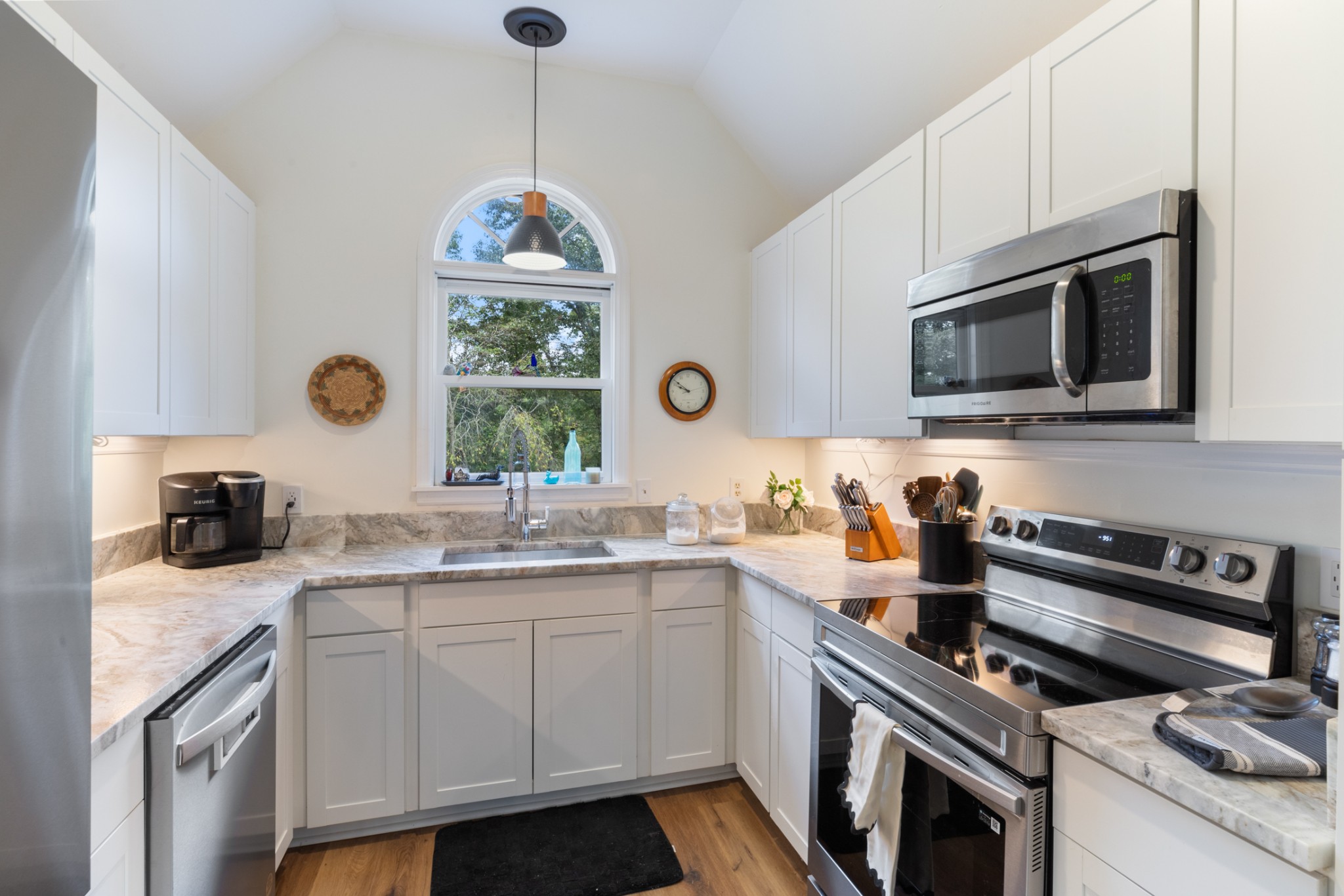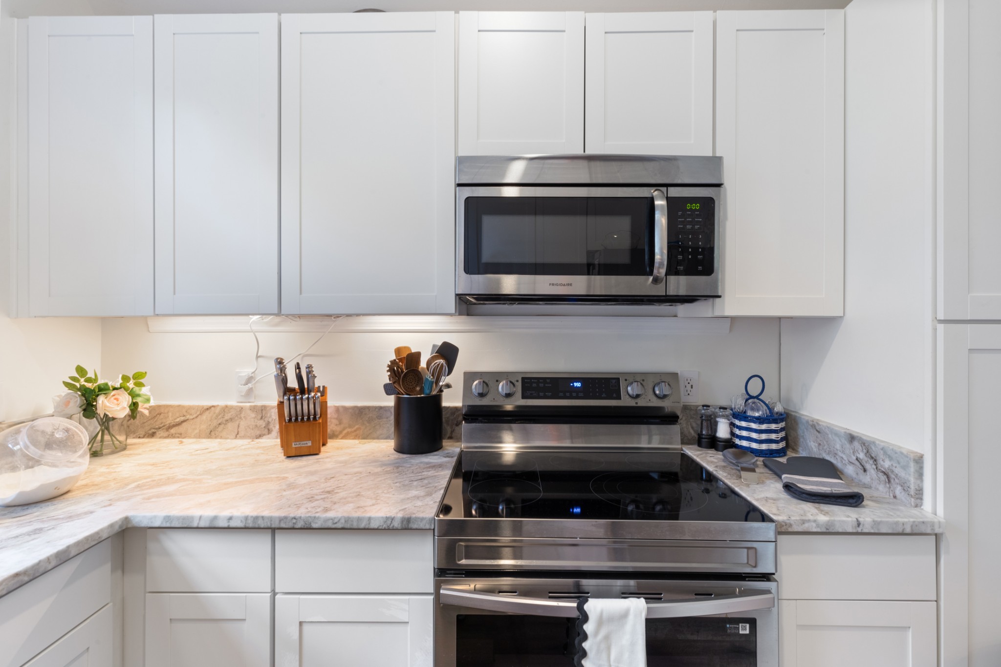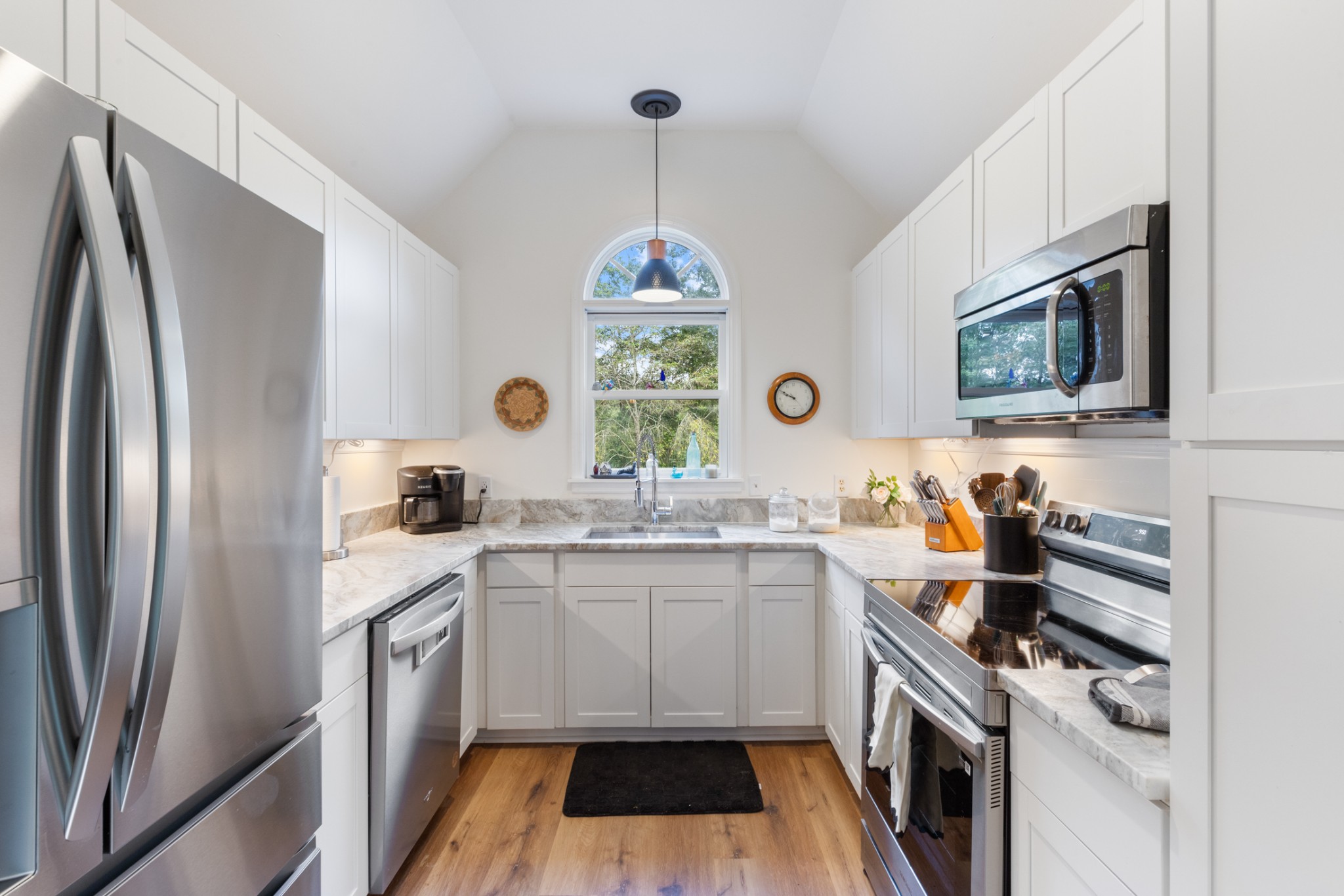 - AppliancesElectric Range, Dishwasher, Microwave, Stainless Steel Appliance(s)