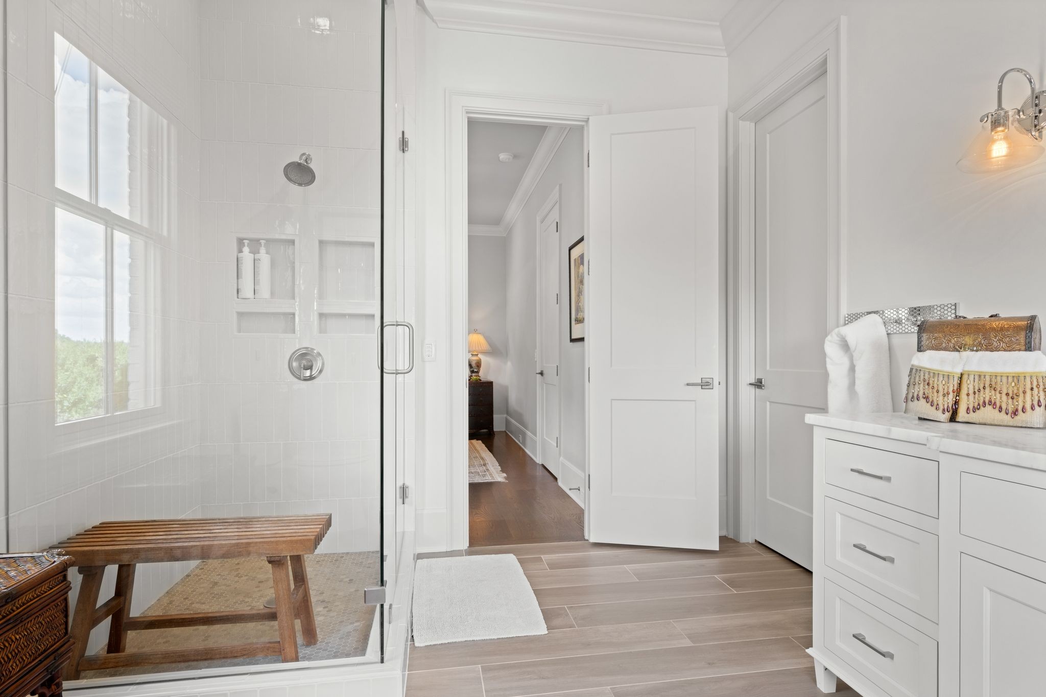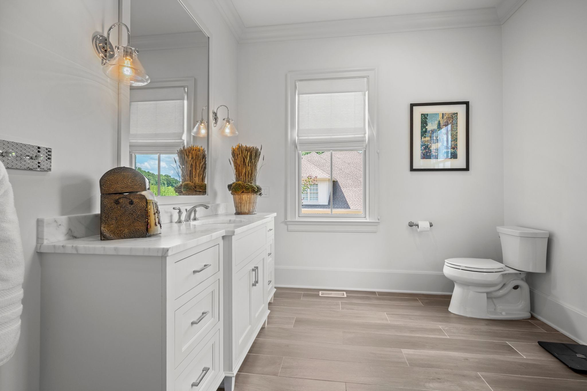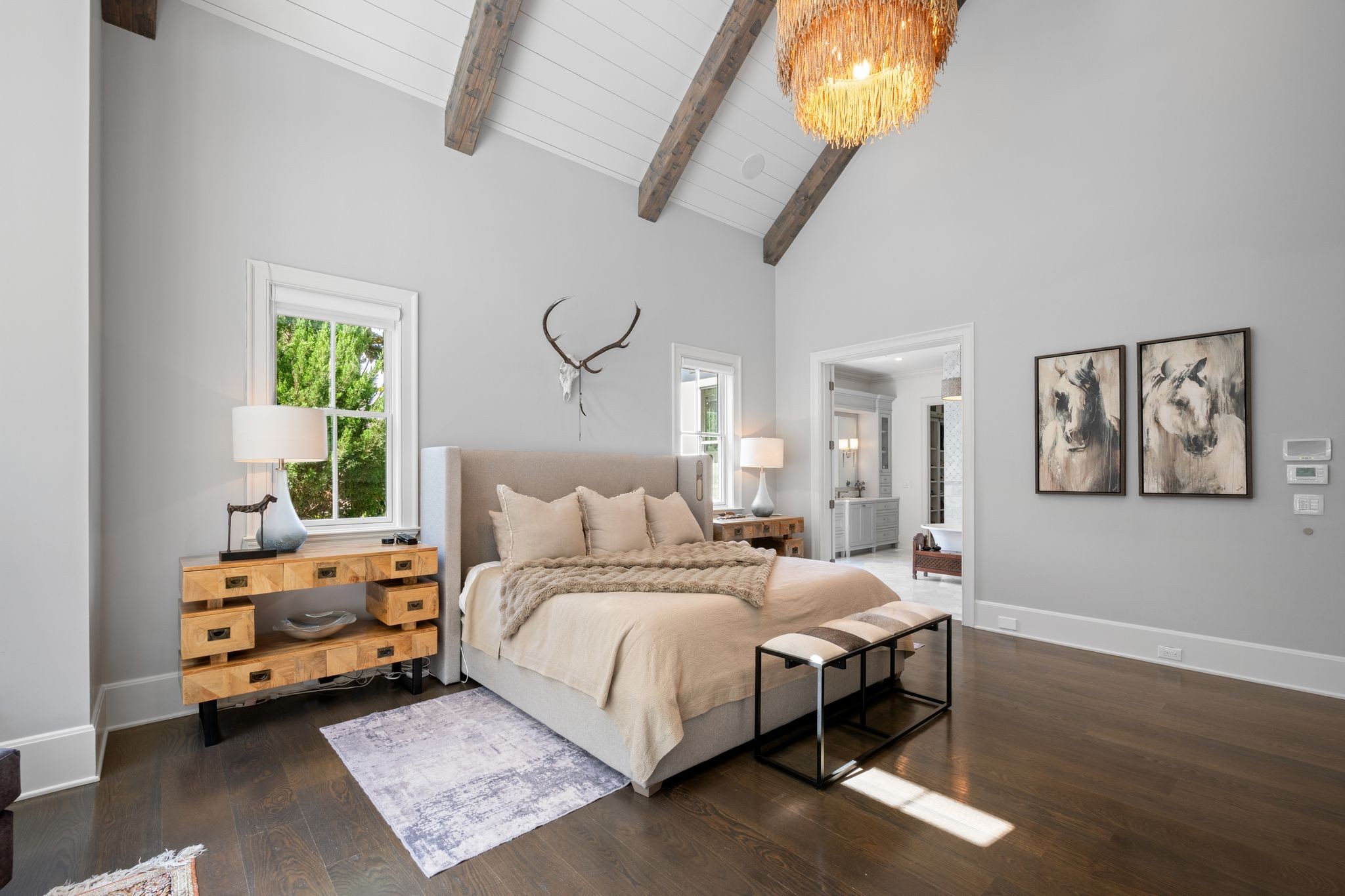Find modern luxury and spacious privacy in this incredible Brentwood estate! The Windstone community is one of the most sought-after and private gated neighborhoods in all of Middle Tennessee - nestled into a peaceful hidden valley, yet convenient to all-things Franklin, Cool Springs, Brentwood, and Willamson County as a whole. Built in 2016, and located near the rear of the community, this property offers 6 bedrooms, all with en suite bathrooms, and includes private guest quarters and guest entrance. The breathtaking main-floor primary suite features a vaulted ceiling with exposed beams and a dreamily spacious bathroom with dual-entrance shower and dual walk-in closets. Enjoy cooking and entertaining in the gourmet kitchen, with expansive cabinet and countertop space. The finished walk-out basement features tons of storage, a concrete storm shelter/safe room, full bathroom and family room, wet-bar, and personal fitness room. Enjoy the practicality of an extra spacious main laundry room plus a secondary upstairs laundry room and full-room cedar closet. Additionally, the four-car garage features individual stalls which allows for easy parking and room-to-spare. A covered patio, complete with fireplace and remote screening, looks out to an absolutely stunning and tranquil custom pool and spa. At the rear of the home, majestic shade trees and landscaping showcases a nature-filled recreation space. Enjoy the peace-of-mind of Control4 smart features and a 50kW automatic generator system that powers the entire home when needed. Windstone community amenities additionally include a community pool, clubhouse, and gym. Elegance, luxury, comfort, convenience, style, privacy - this home has it all and more! PLUS zoned for coveted Scales Elementary and Brentwood Middle and Brentwood High Schools.