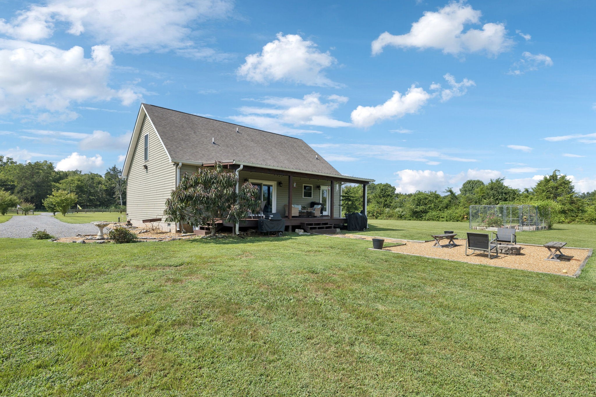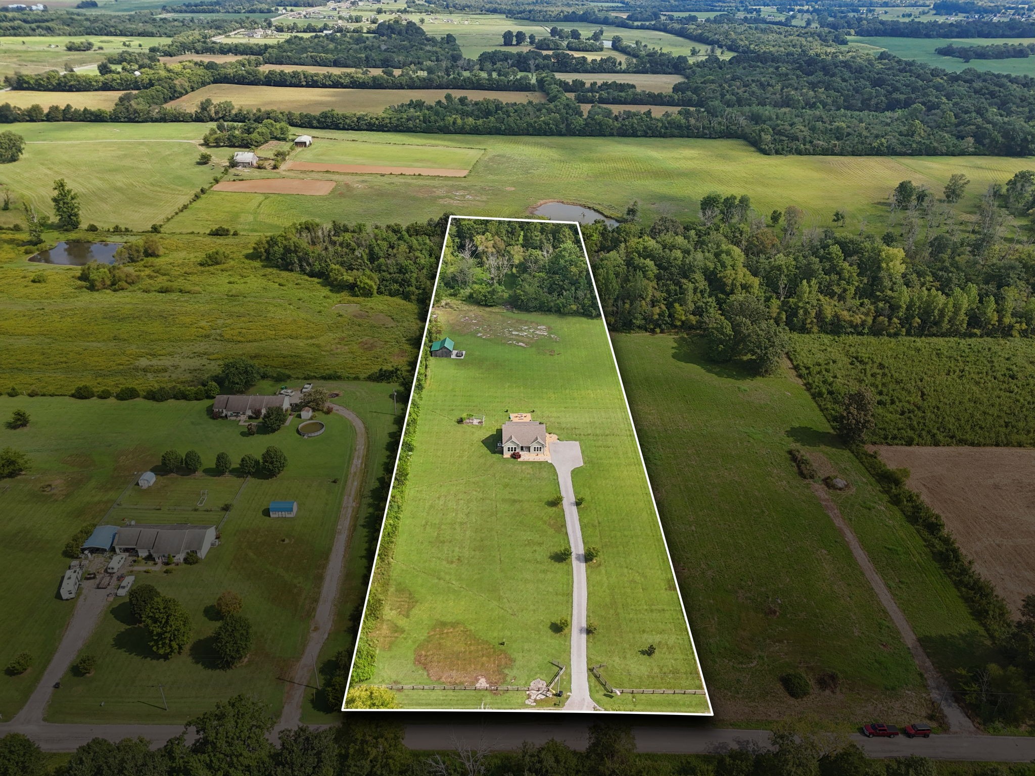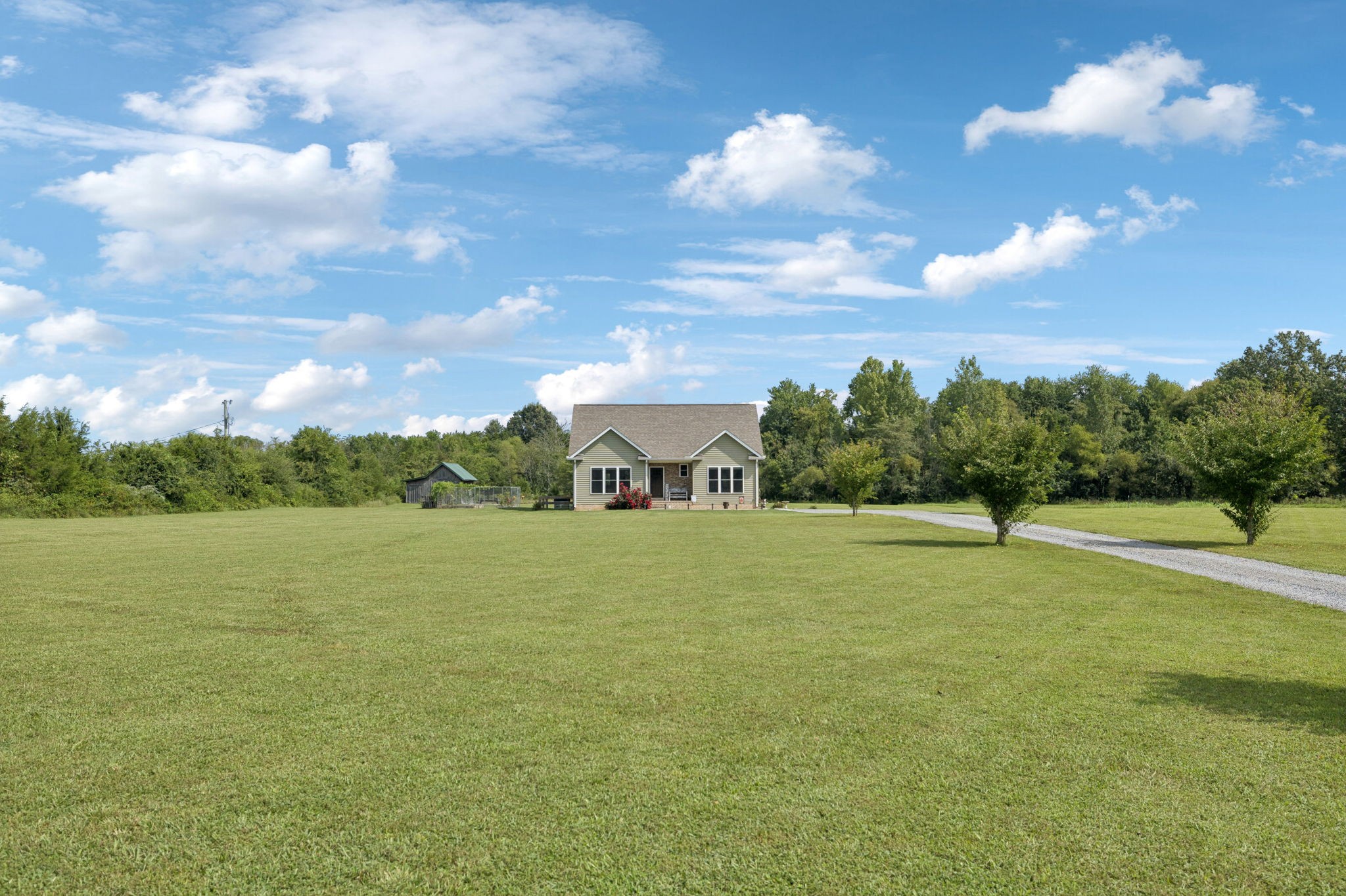 Welcome to your slice of Tennessee paradise! Nestled on a flat and usable 5.3-acre lot, this beautifully maintained home offers the perfect blend of country living and modern comfort. Featuring an open concept layout, this home is ideal for both relaxing and entertaining. Inside, you’ll find 3 spacious bedrooms and 2 full bathrooms, including a large primary suite that serves as your own private retreat. The primary bedroom features generous space for a king-sized bed and sitting area, with room to spare. You'll also enjoy a walk-in closet and an en-suite bathroom, providing comfort and privacy in a quiet corner of the home. The bright and open living area flows effortlessly into the dining space and kitchen, filled with natural light and perfect for gatherings of all sizes. Step outside and enjoy wide-open views, a private pond, and a seasonal creek that brings peaceful, natural charm to the property. A major bonus is the versatile barn with concrete floors ideal for storage, a workshop, animals, or turning into your dream hobby space. Whether you envision a mini farm, a garden paradise, or simply soaking in the peaceful surroundings, this land offers endless possibilities. Located just minutes from Bell Buckle’s historic downtown and Eagleville's beautiful downtown you’ll enjoy both small town charm and the privacy of country living.