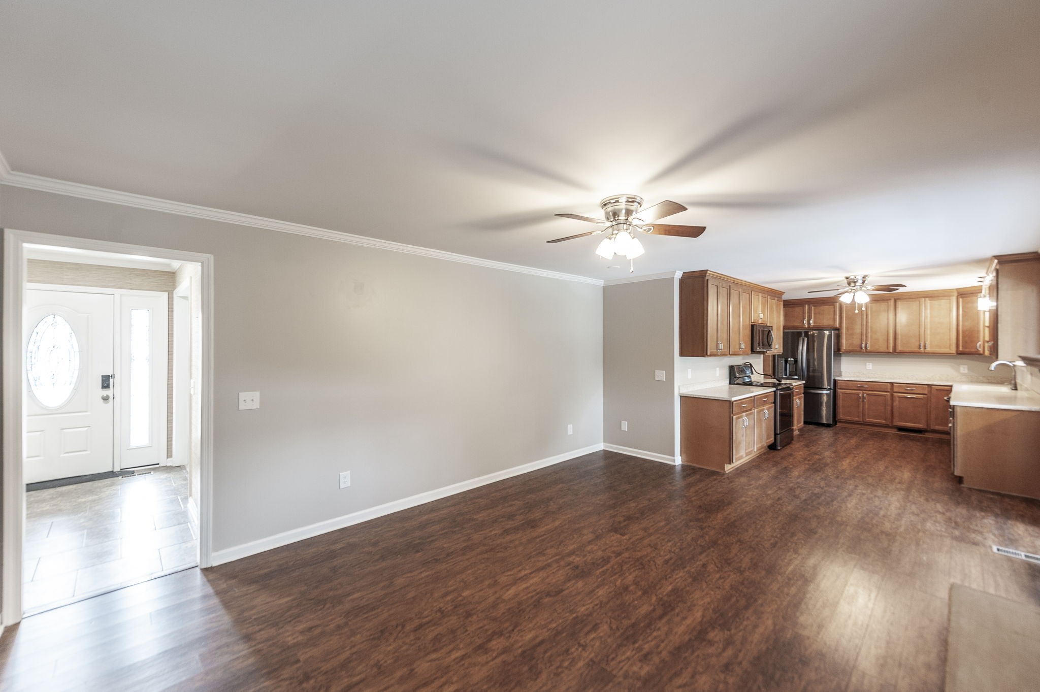 - AppliancesElectric Oven, Electric Range, Dishwasher, Disposal, Dryer, Freezer, Microwave, Refrigerator, Stainless Steel Appliance(s), Washer