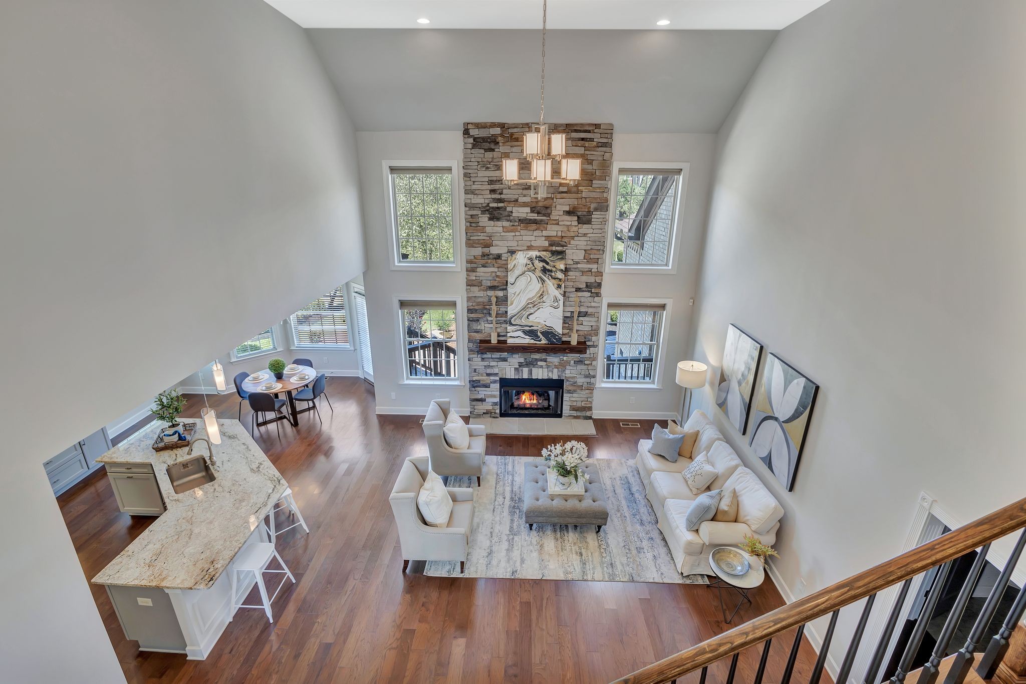 Two-Story (19ft high) Family/Den – Filled with sunlight and anchored by a gas fireplace!