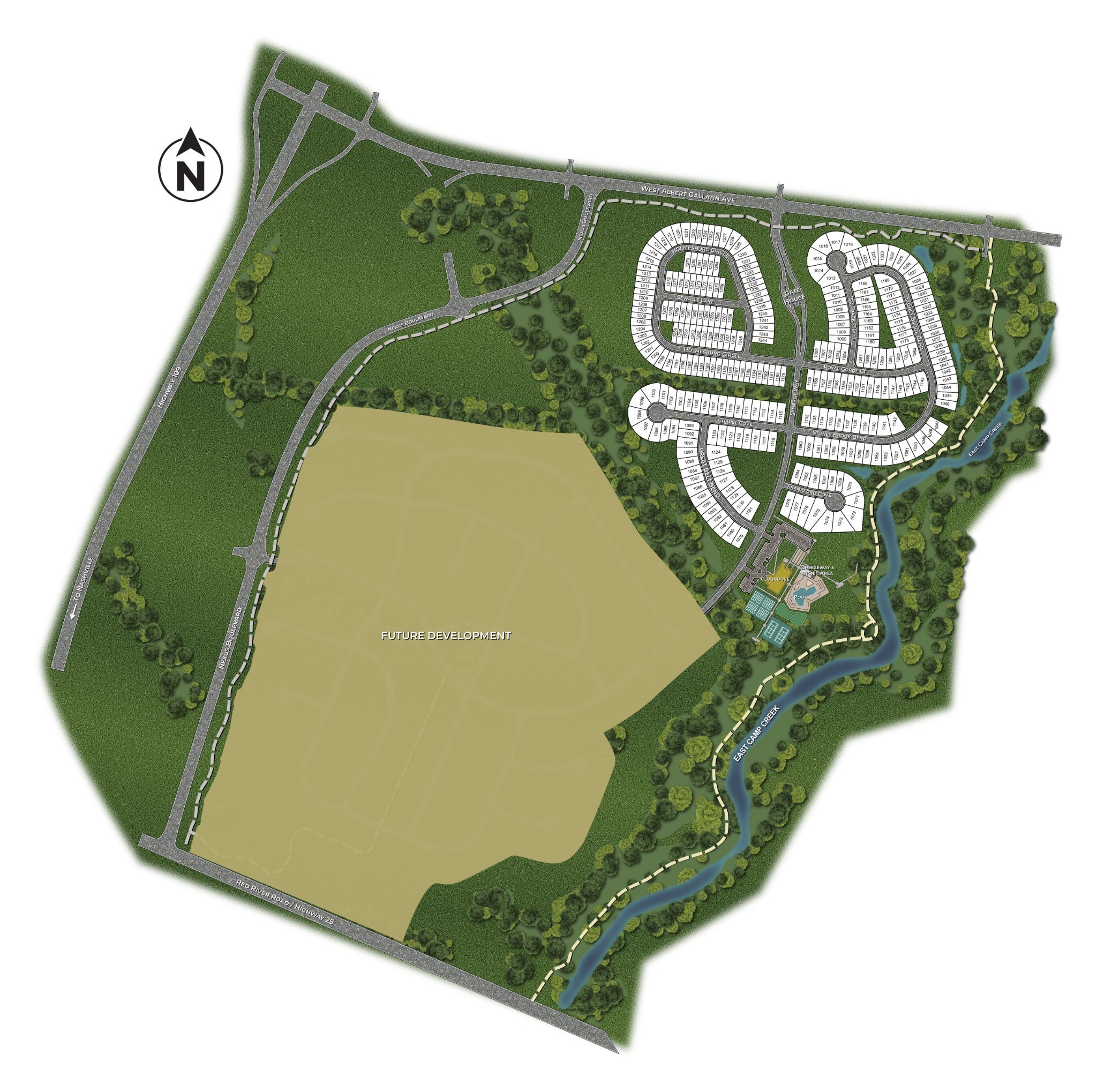Nexus South 55+ Active Adult community "The Clifton" floor plan is sure to please with 3 bedrooms, open living areas, cover patio giving you space in all the right places. This is a tree-line home-site We have several options to choose from to make this home your own, come see the decorated model home. This community will have a pool and fitness center with aerobics, bocce ball, pickle ball and tennis, walking trails, community gardens! Only a half hour to downtown Nashville and minutes away from historic downtown Gallatin, we have the best of both worlds! Come visit and see for yourself why we are the largest home builder in the country with warranties to match! GPS: 3024 Frankford Cove in Gallatin!