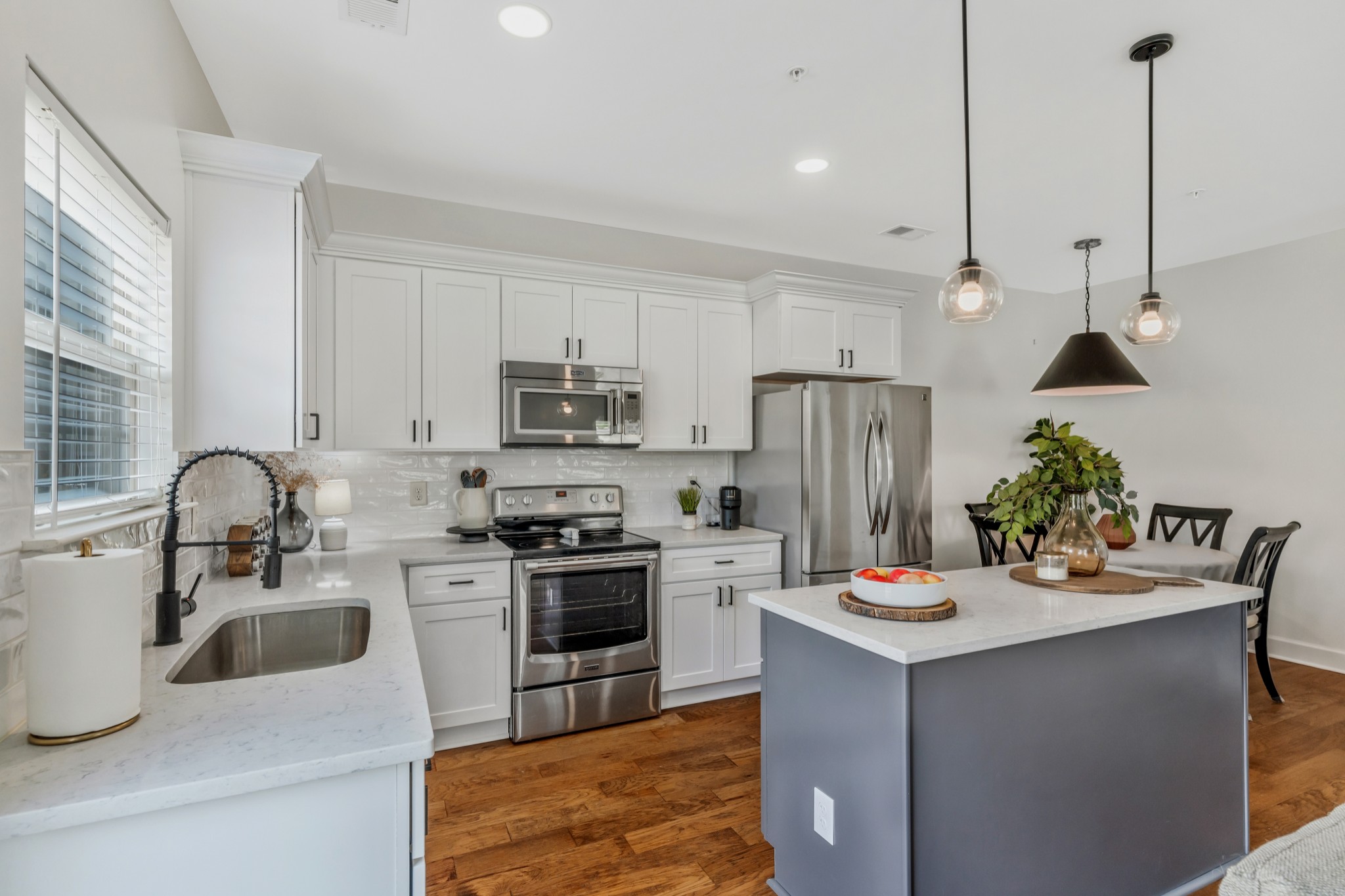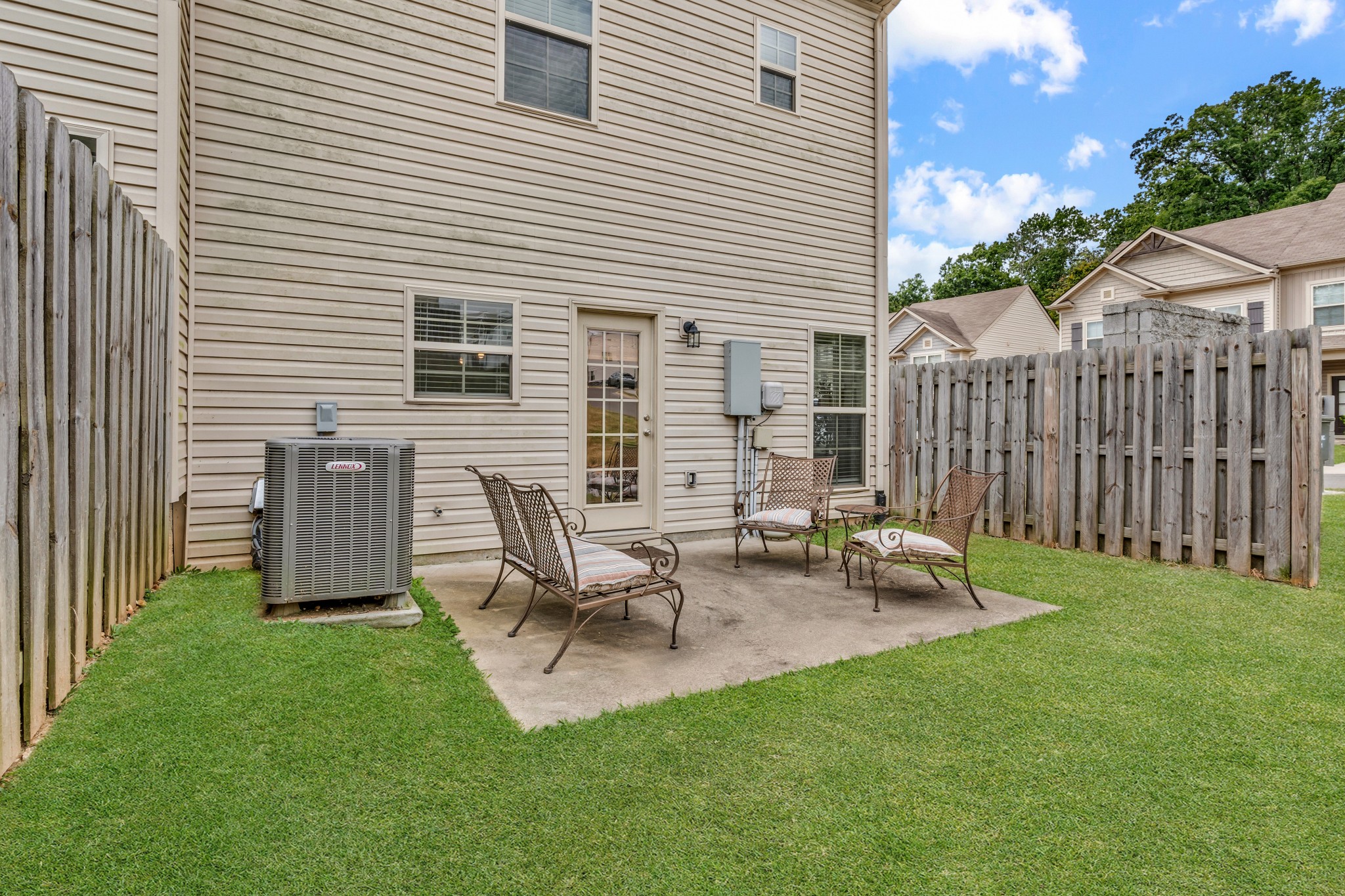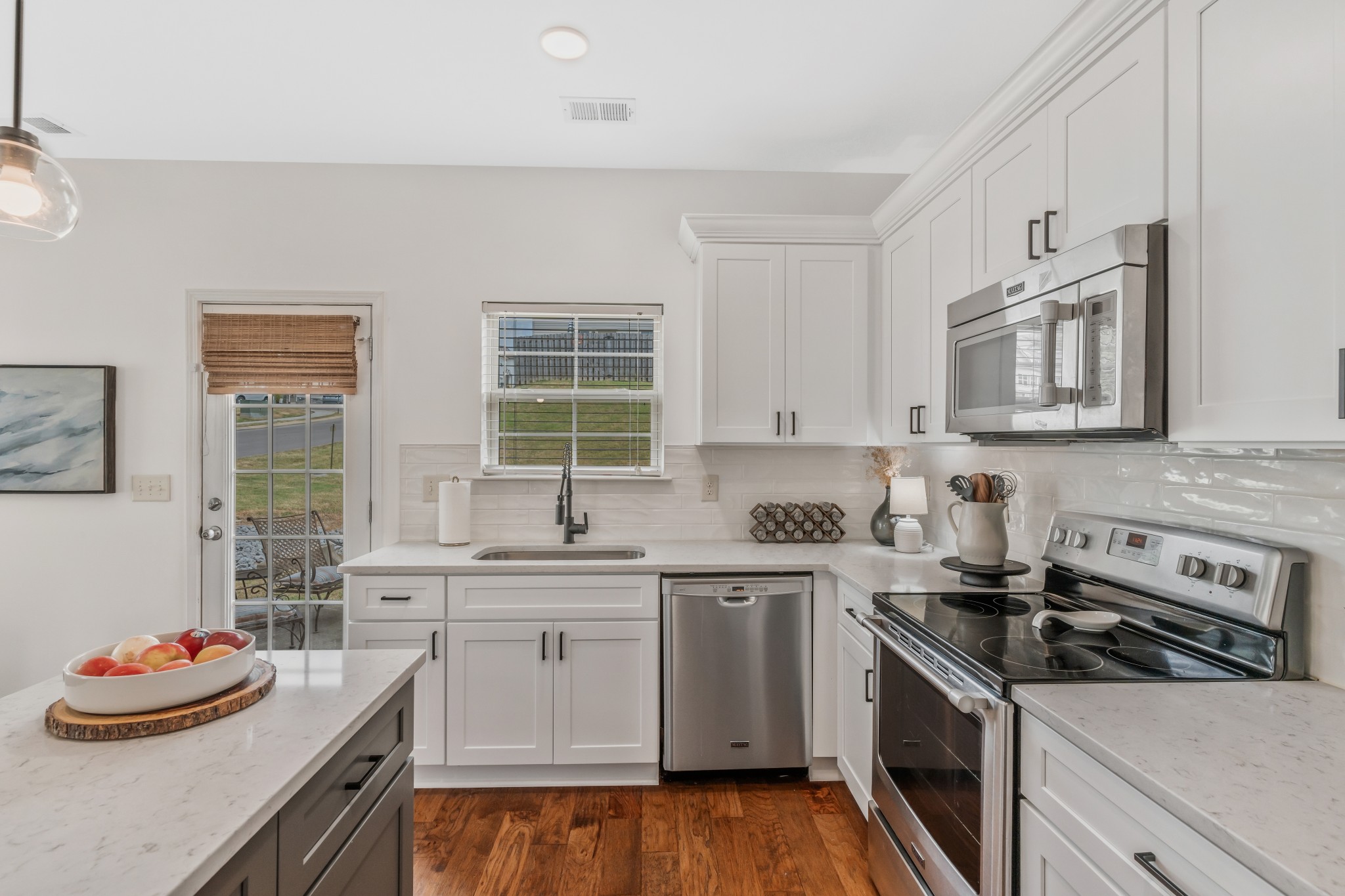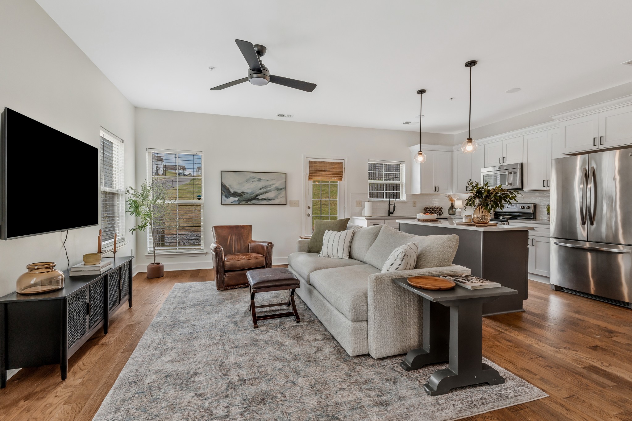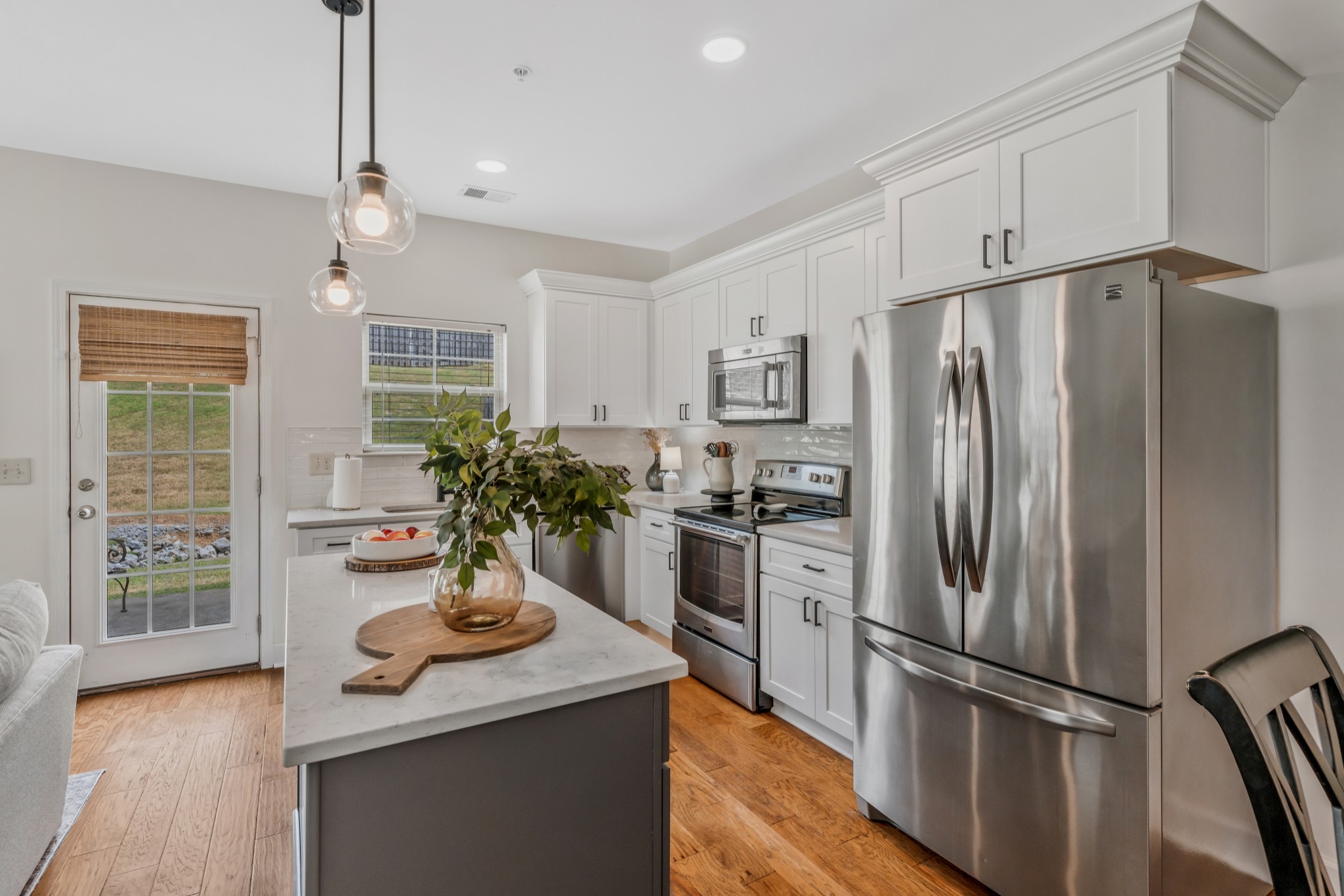 END UNIT! Ready to move into! Stainless steel kitchen appliances with refrigerator staying. Washer and Dryer staying with home. Beautiful new white kitchen cabinets, new light fixtures, covered front porch, short walk to community pool and dog park. Fantastic location convenient to everything in quiet and established community
