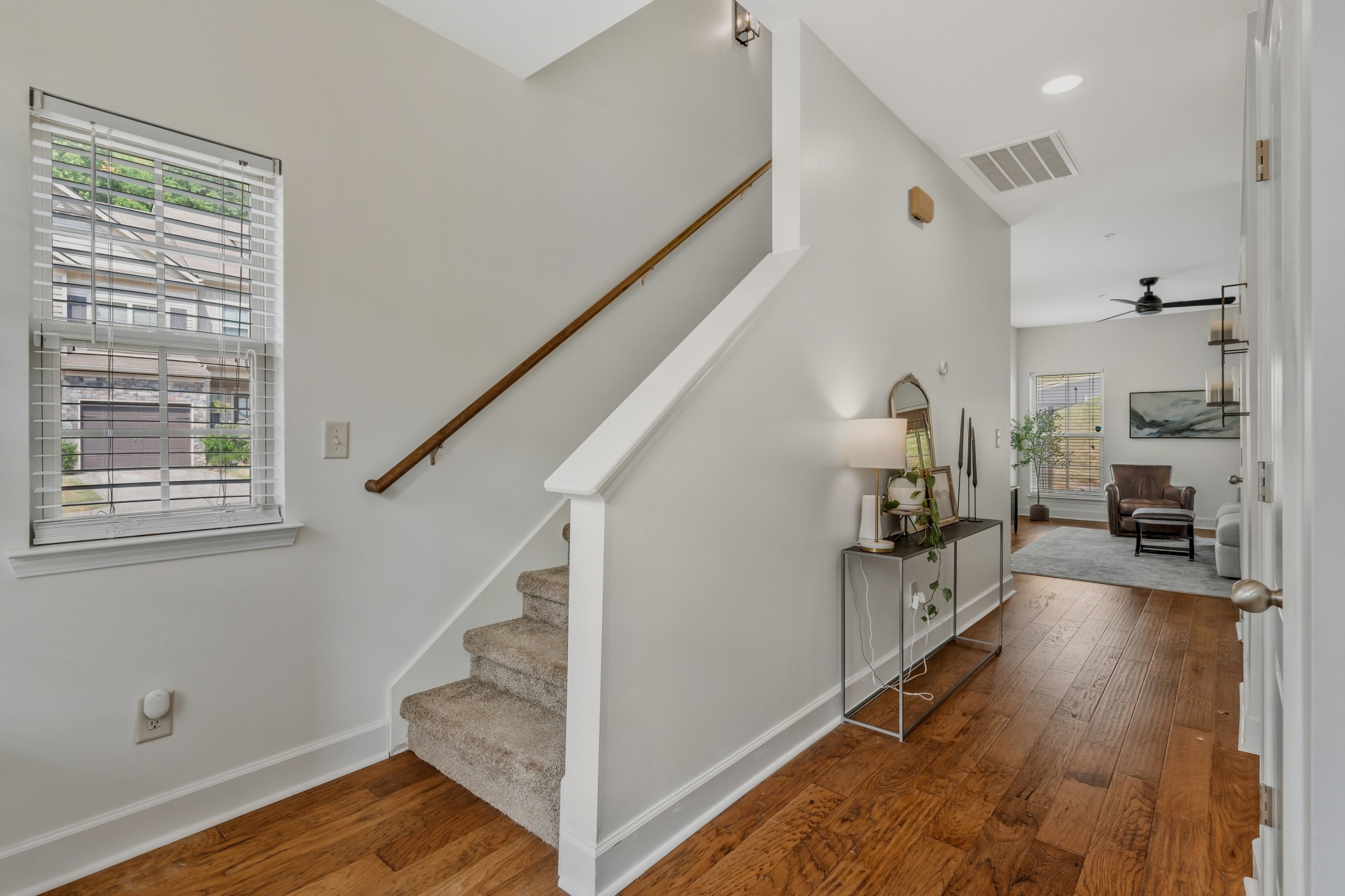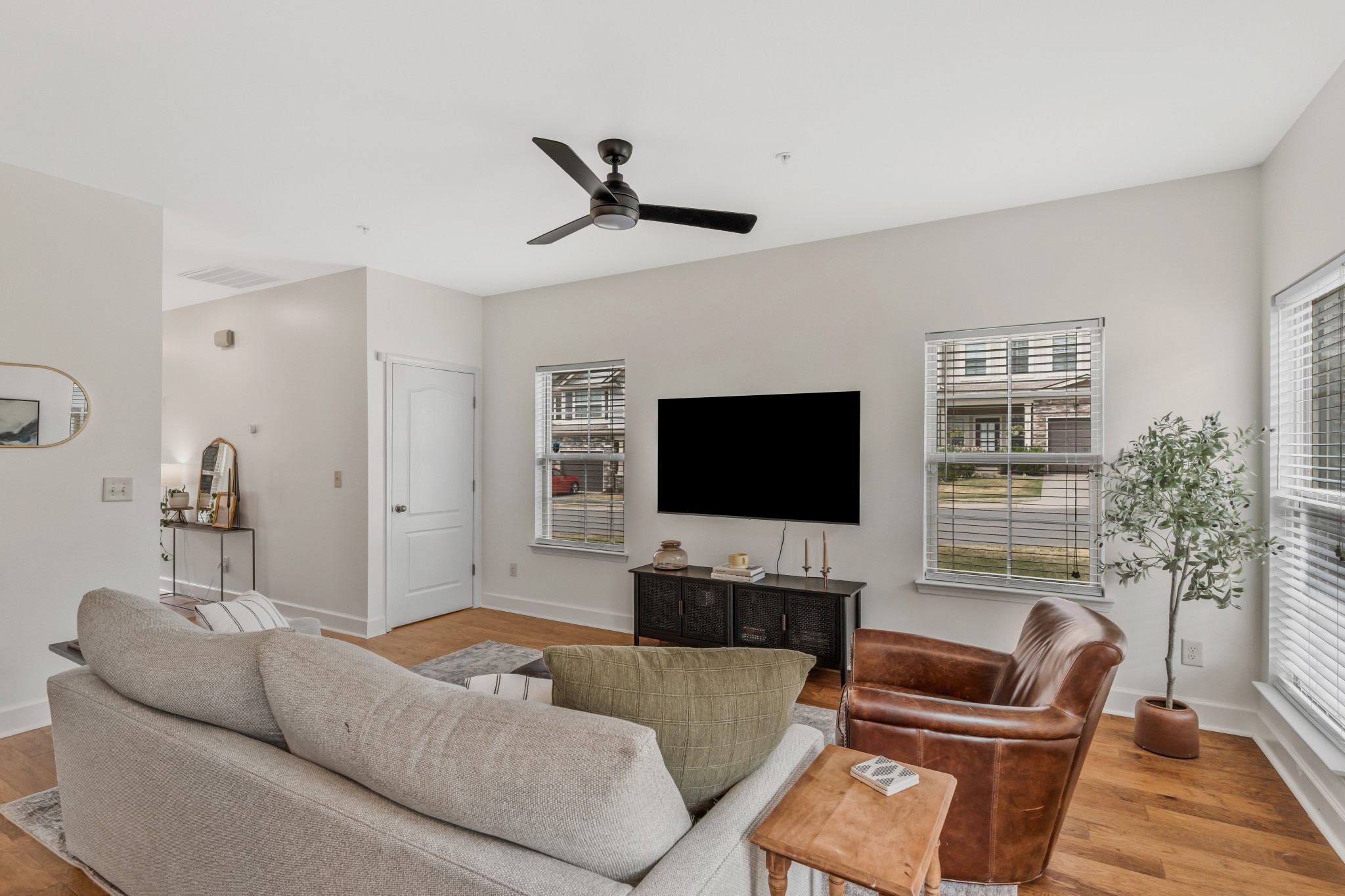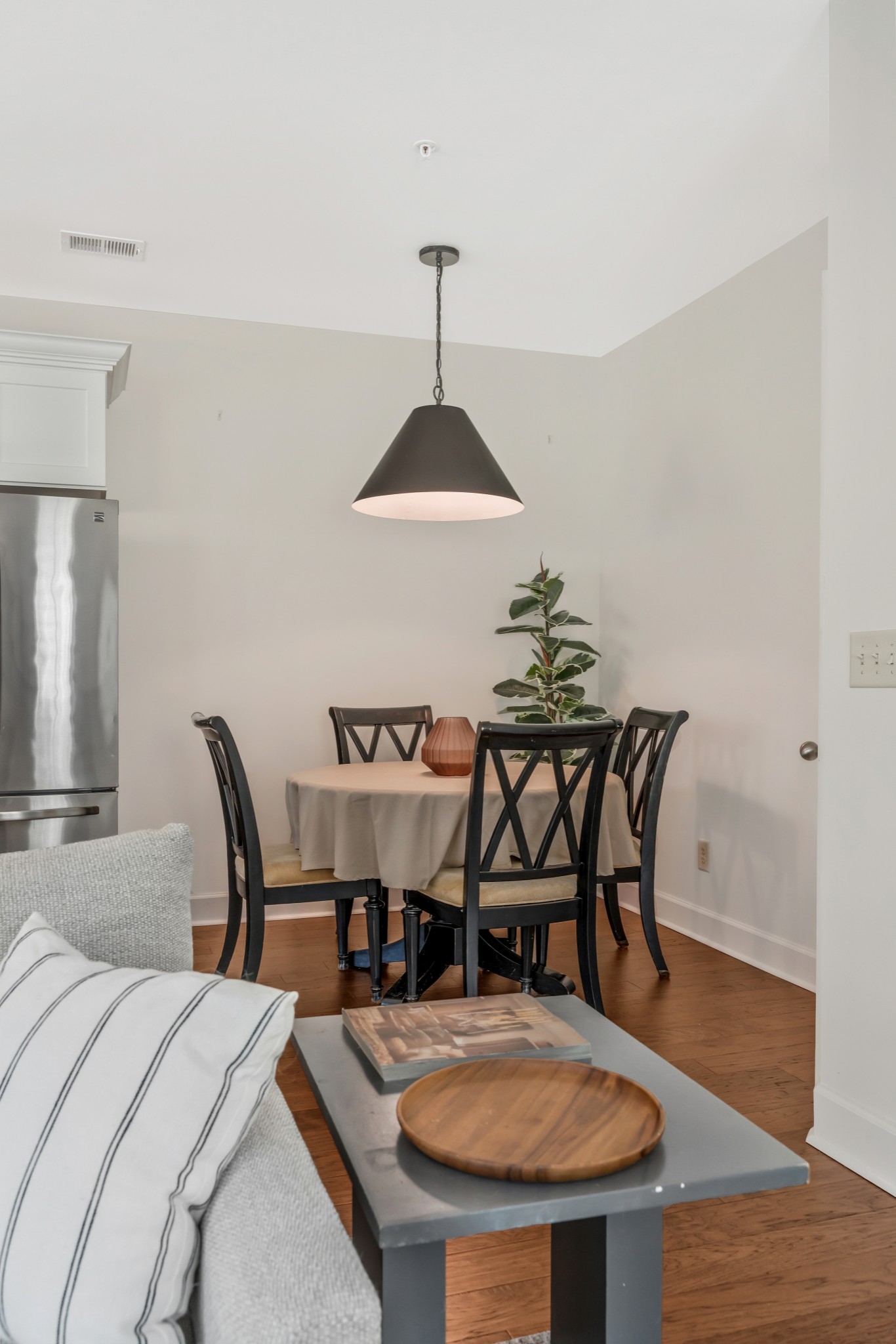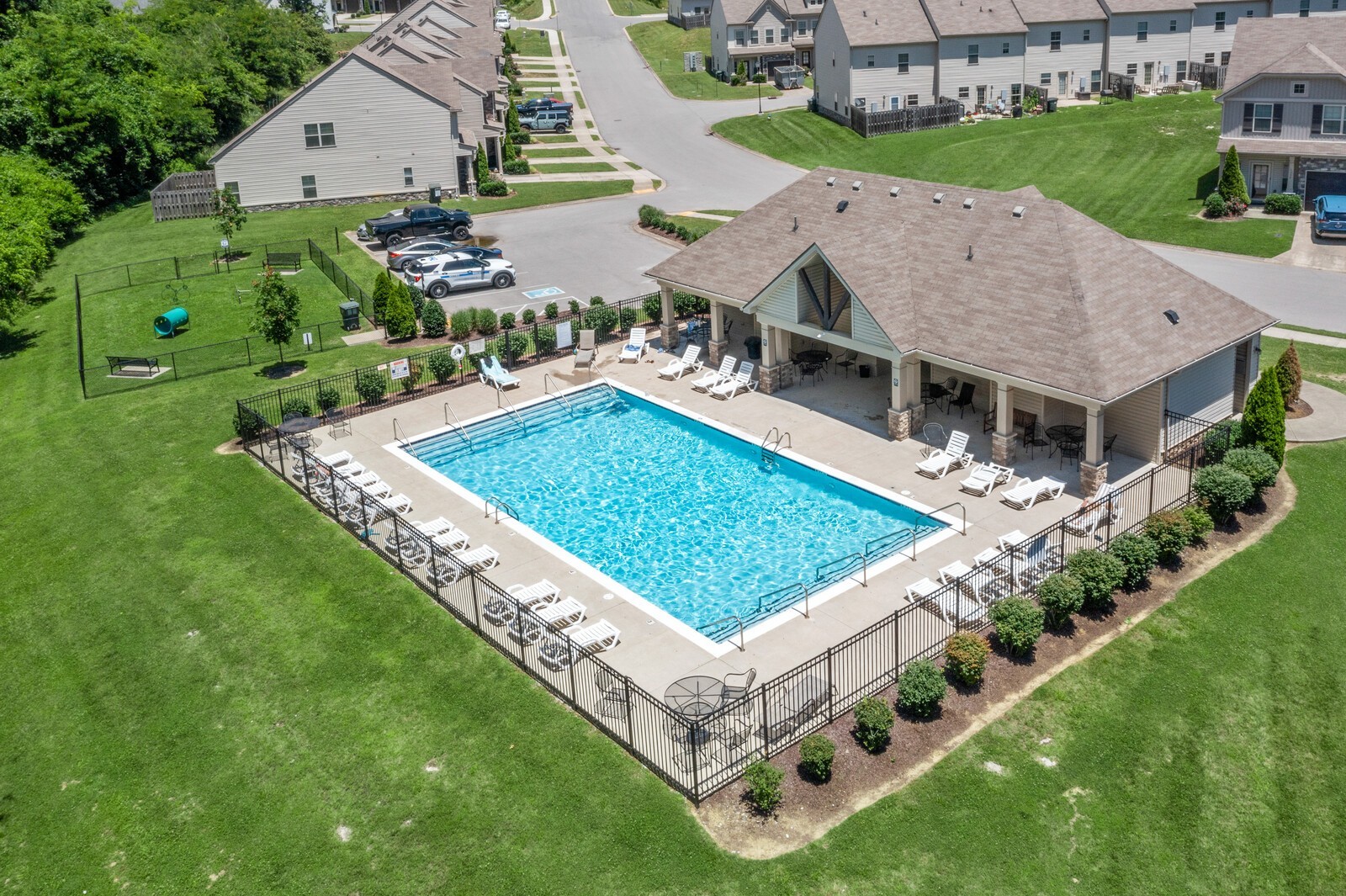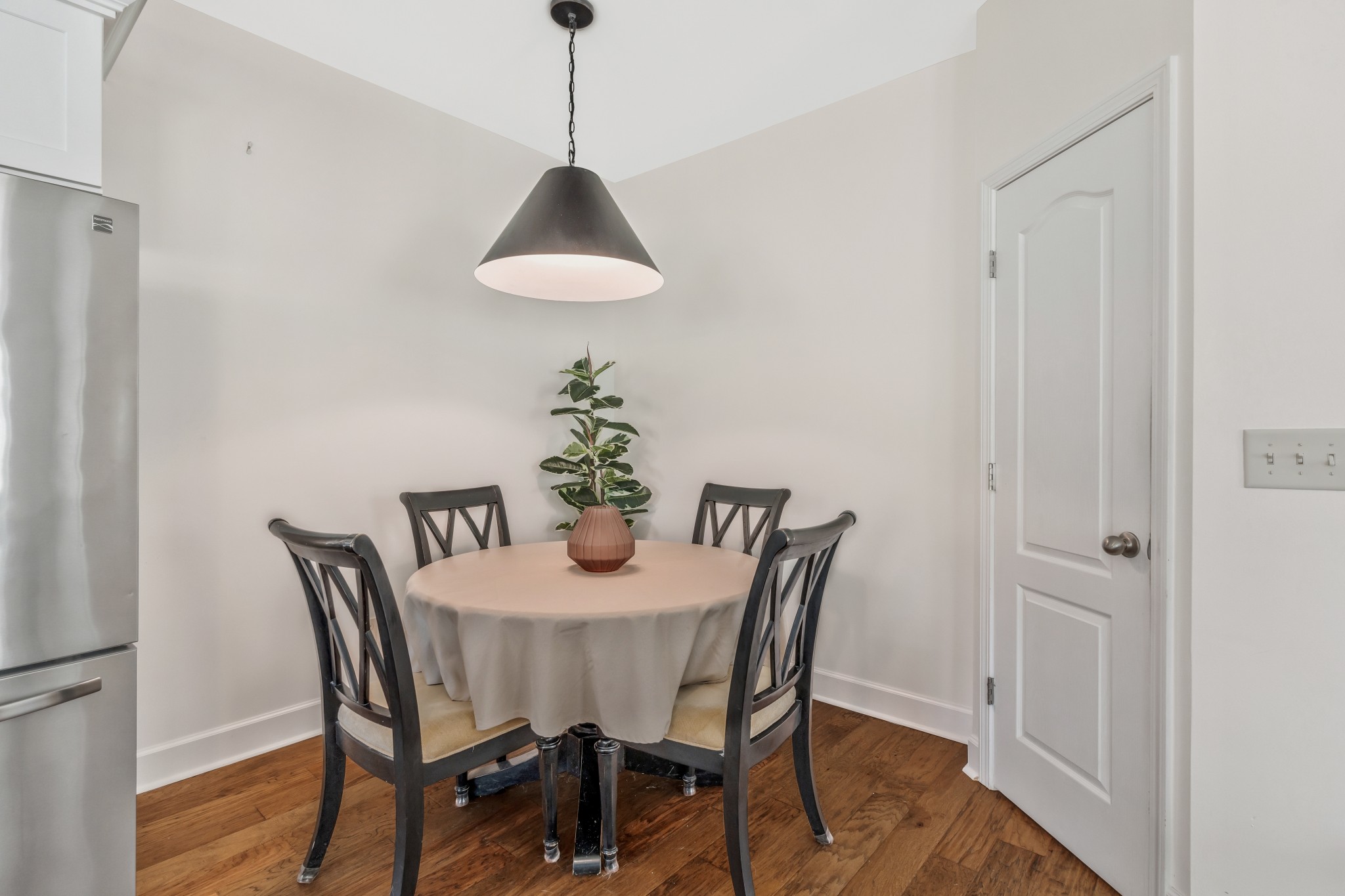 END UNIT! Ready to move into! Stainless steel kitchen appliances with refrigerator staying. Washer and Dryer staying with home. Beautiful new white kitchen cabinets, new light fixtures, covered front porch, short walk to community pool and dog park. Fantastic location convenient to everything in quiet and established community
