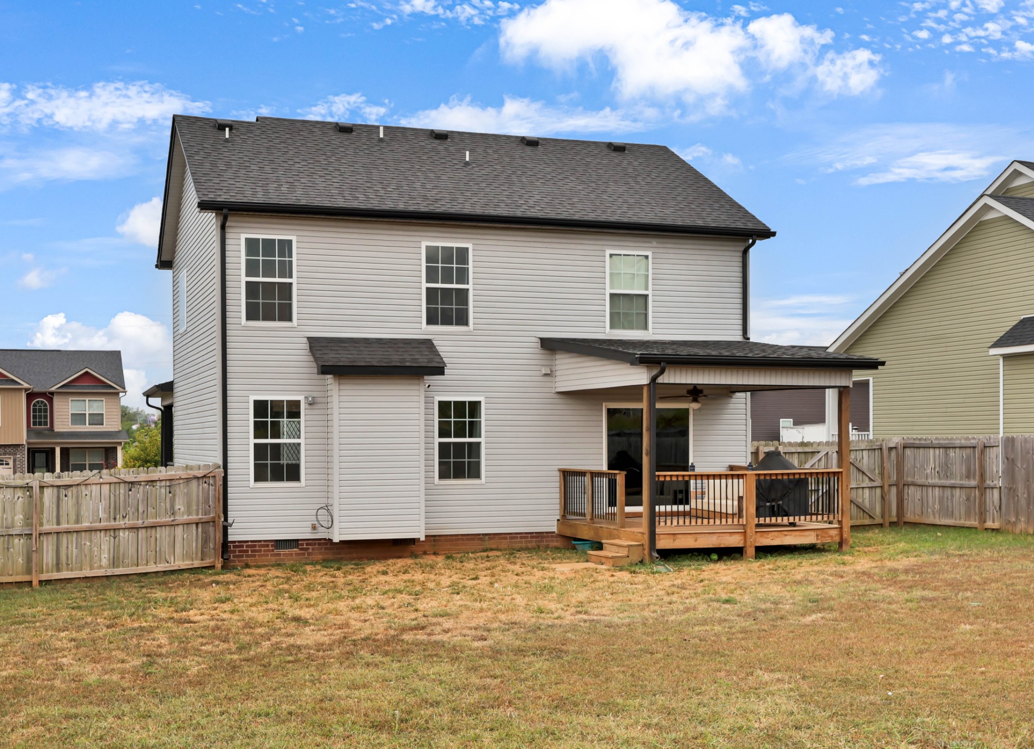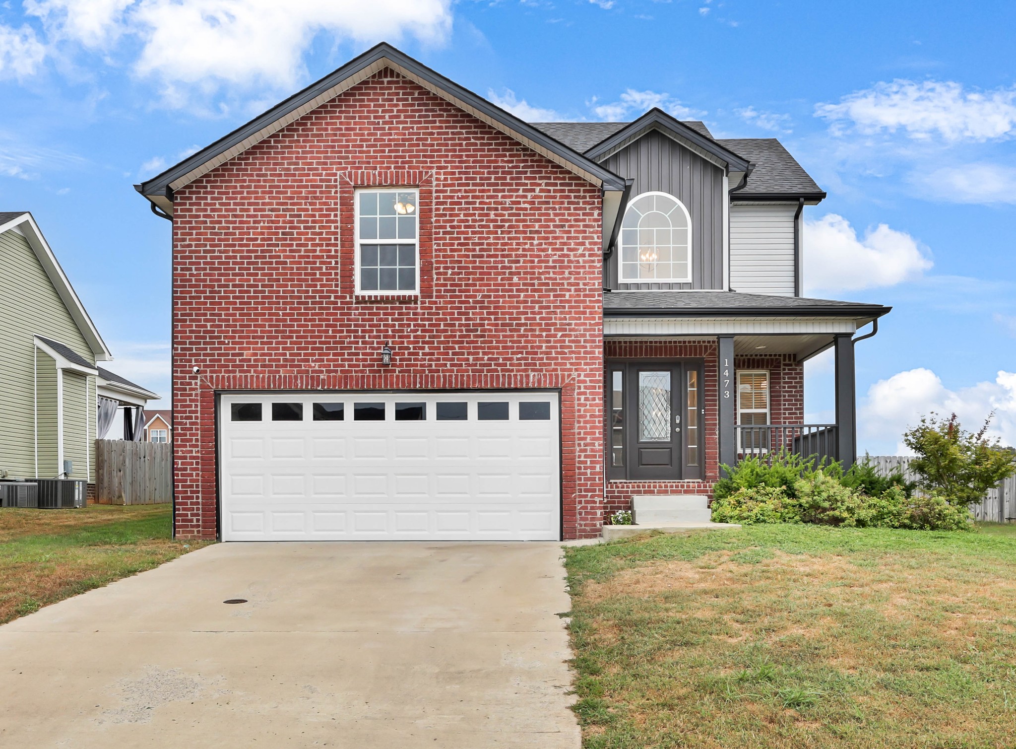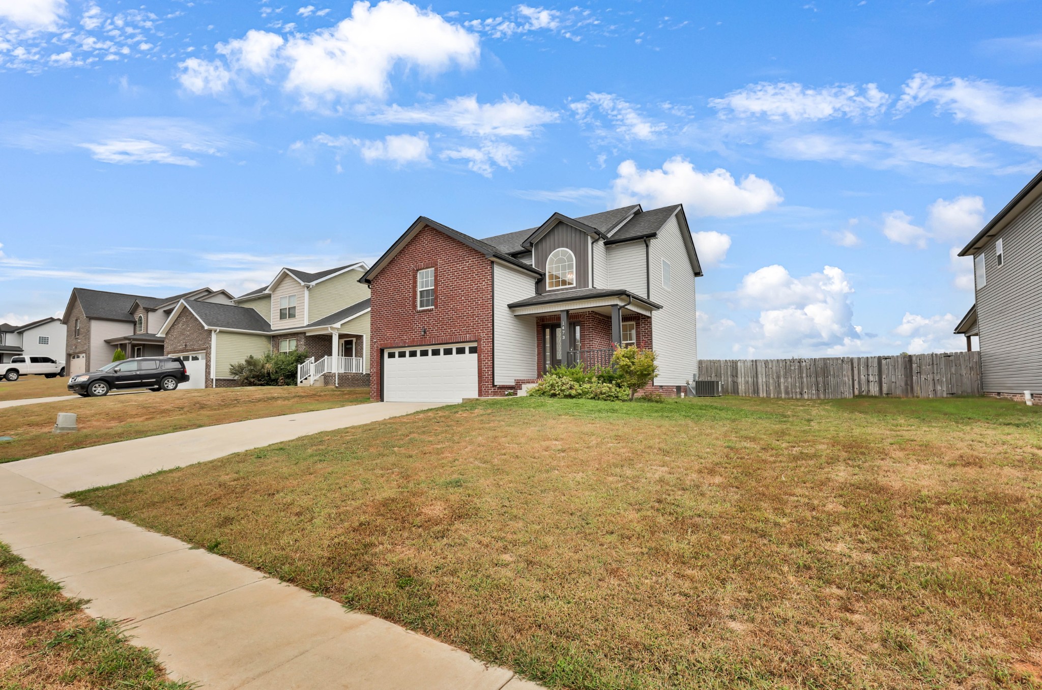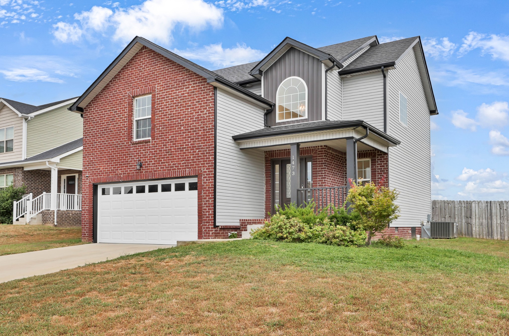 Welcome to 1473 Wild Fern Lane! This 3 bedroom, 2.5 bath home offers nearly 1,800 sq ft of thoughtful living space in a sidewalk-lined community with underground utilities. A covered front porch opens to a welcoming foyer and main level with easy-care laminate flooring. The living room features a gas fireplace with stylish shiplap surround, while the kitchen shines with granite countertops, island seating, stainless steel appliances, and pantry storage. A convenient catch-all space off the garage and a half bath complete the first floor.Upstairs, the primary suite boasts a tray ceiling, walk-in closet, and spa-like bath with double vanities, a soaking tub with tile surround, and separate shower. Two additional bedrooms—one with a custom board and batten accent wall—plus a full guest bath and bonus room provide flexible space for everyone. Enjoy outdoor living on the covered back deck overlooking a privacy-fenced, level backyard. Added bonus: Fresh paint throughout most of the home, smart lock on front door, & smart thermostats!