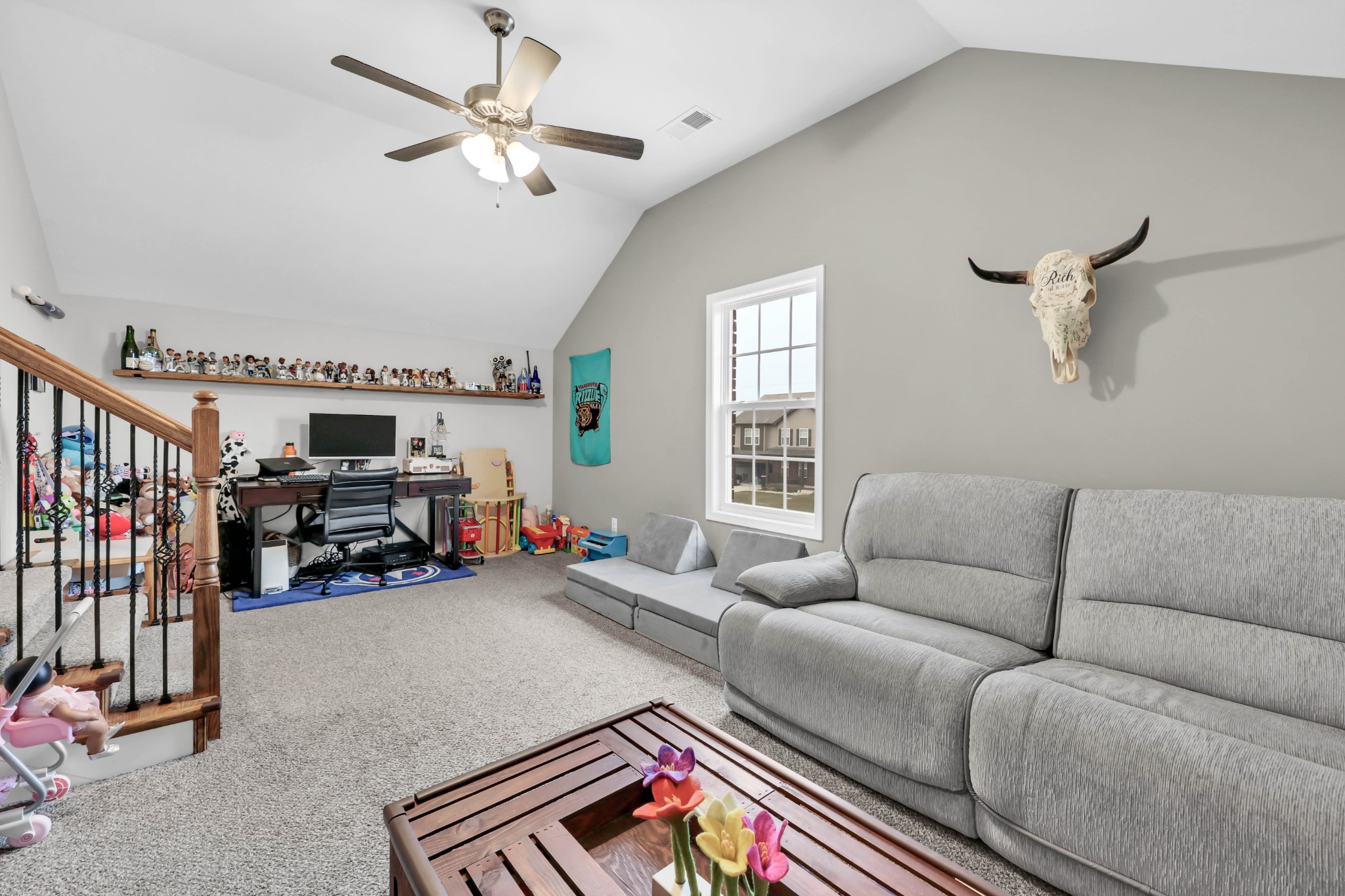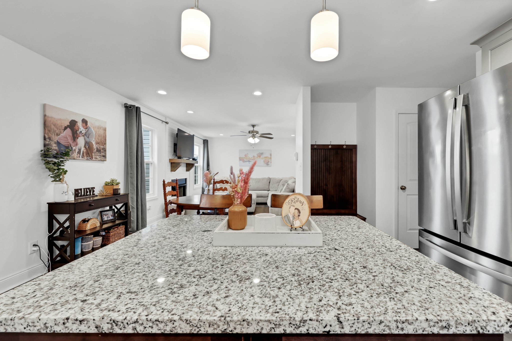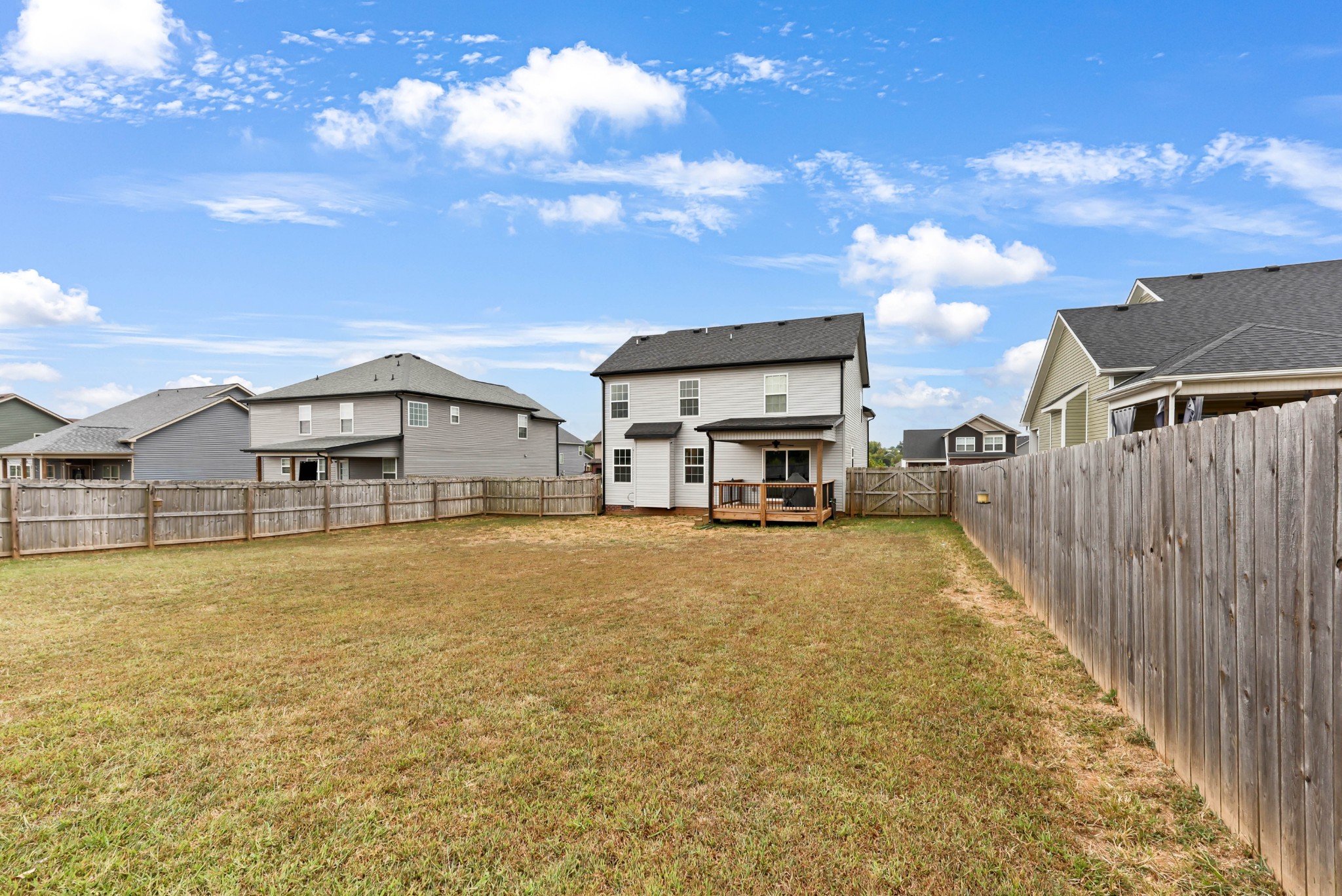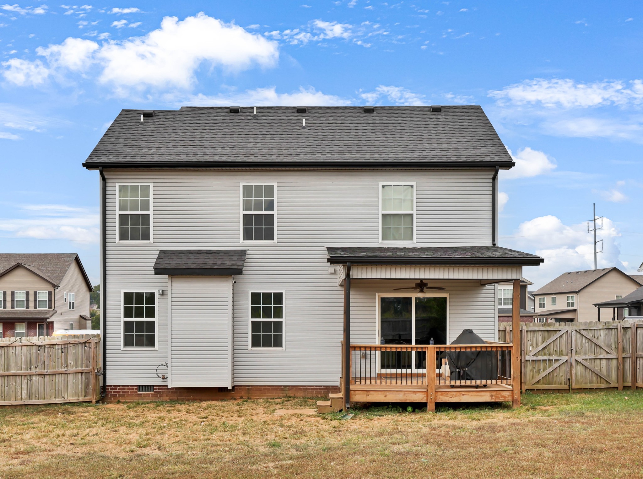 Welcome to 1473 Wild Fern Lane! This 3 bedroom, 2.5 bath home offers nearly 1,800 sq ft of thoughtful living space in a sidewalk-lined community with underground utilities. A covered front porch opens to a welcoming foyer and main level with easy-care laminate flooring. The living room features a gas fireplace with stylish shiplap surround, while the kitchen shines with granite countertops, island seating, stainless steel appliances, and pantry storage. A convenient catch-all space off the garage and a half bath complete the first floor.Upstairs, the primary suite boasts a tray ceiling, walk-in closet, and spa-like bath with double vanities, a soaking tub with tile surround, and separate shower. Two additional bedrooms—one with a custom board and batten accent wall—plus a full guest bath and bonus room provide flexible space for everyone. Enjoy outdoor living on the covered back deck overlooking a privacy-fenced, level backyard. Added bonus: Fresh paint throughout most of the home, smart lock on front door, & smart thermostats!