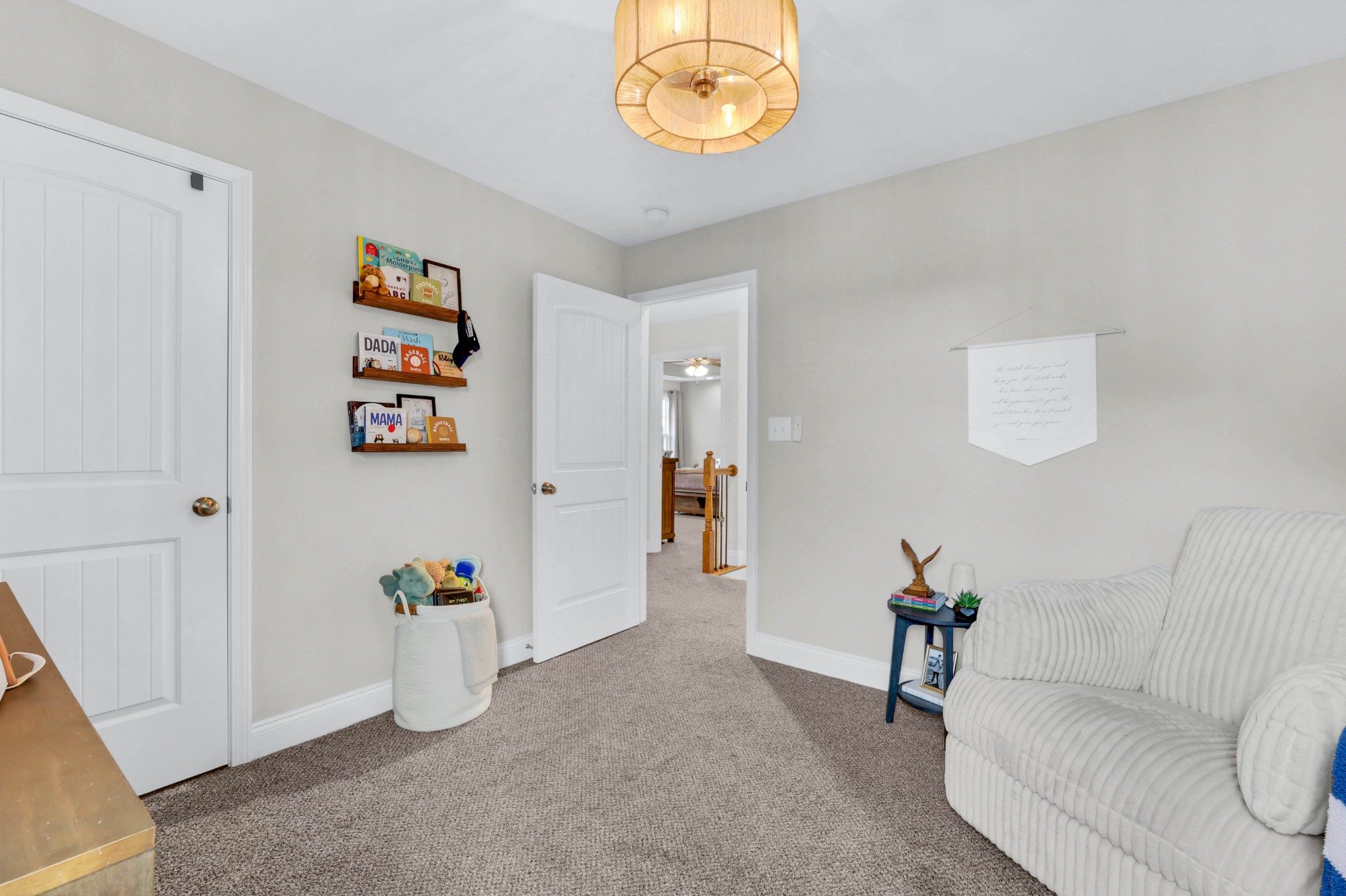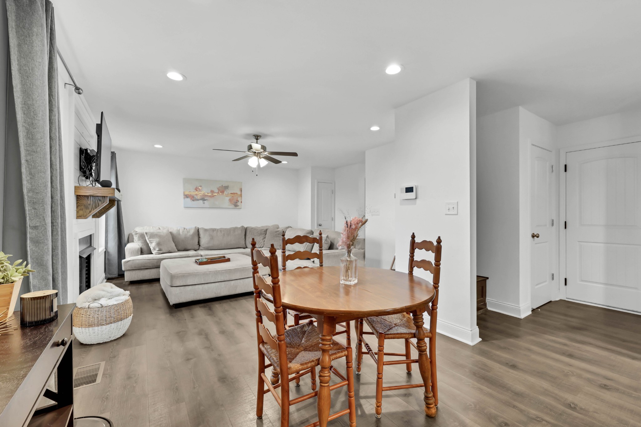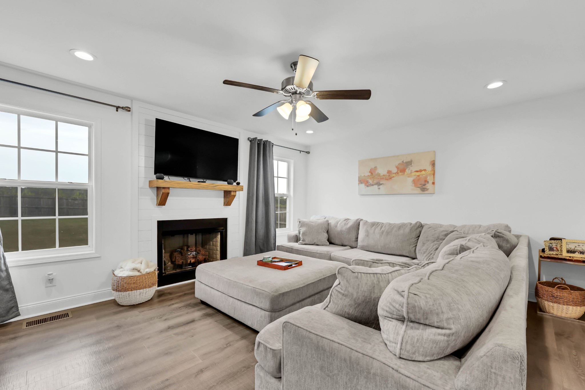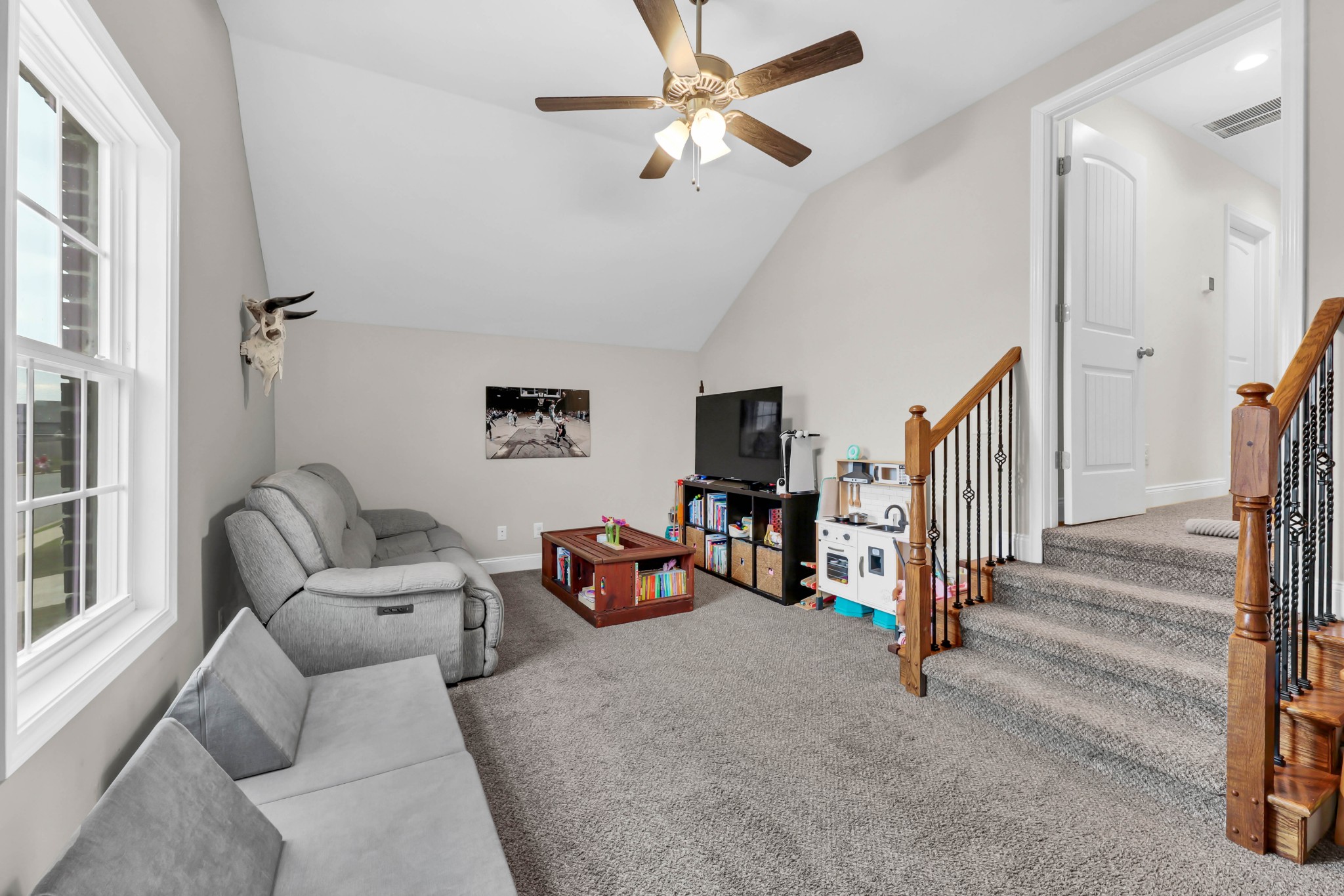Welcome to 1473 Wild Fern Lane! This 3 bedroom, 2.5 bath home offers nearly 1,800 sq ft of thoughtful living space in a sidewalk-lined community with underground utilities. A covered front porch opens to a welcoming foyer and main level with easy-care laminate flooring. The living room features a gas fireplace with stylish shiplap surround, while the kitchen shines with granite countertops, island seating, stainless steel appliances, and pantry storage. A convenient catch-all space off the garage and a half bath complete the first floor.Upstairs, the primary suite boasts a tray ceiling, walk-in closet, and spa-like bath with double vanities, a soaking tub with tile surround, and separate shower. Two additional bedrooms—one with a custom board and batten accent wall—plus a full guest bath and bonus room provide flexible space for everyone. Enjoy outdoor living on the covered back deck overlooking a privacy-fenced, level backyard. Added bonus: Fresh paint throughout most of the home, smart lock on front door, & smart thermostats!