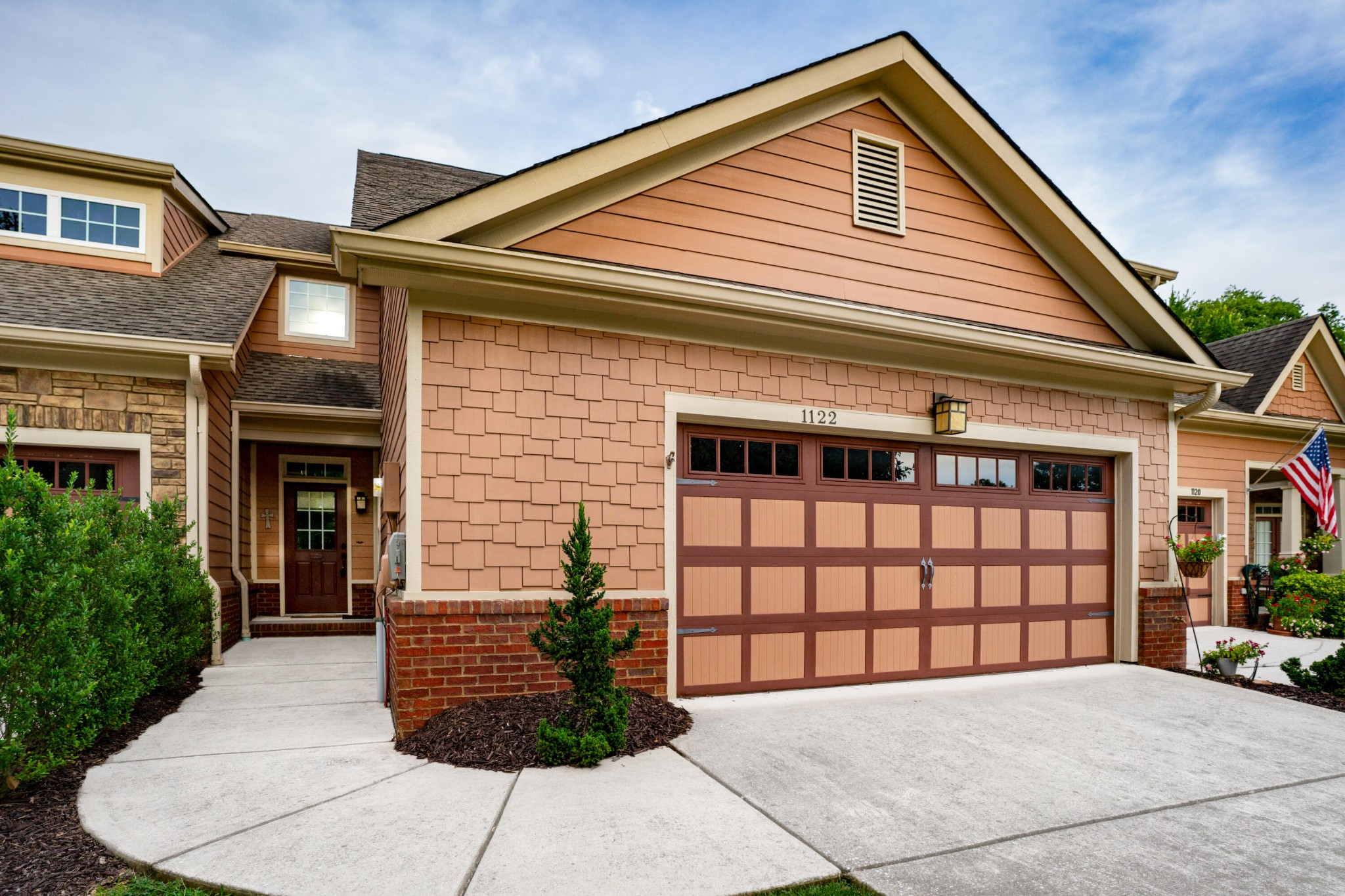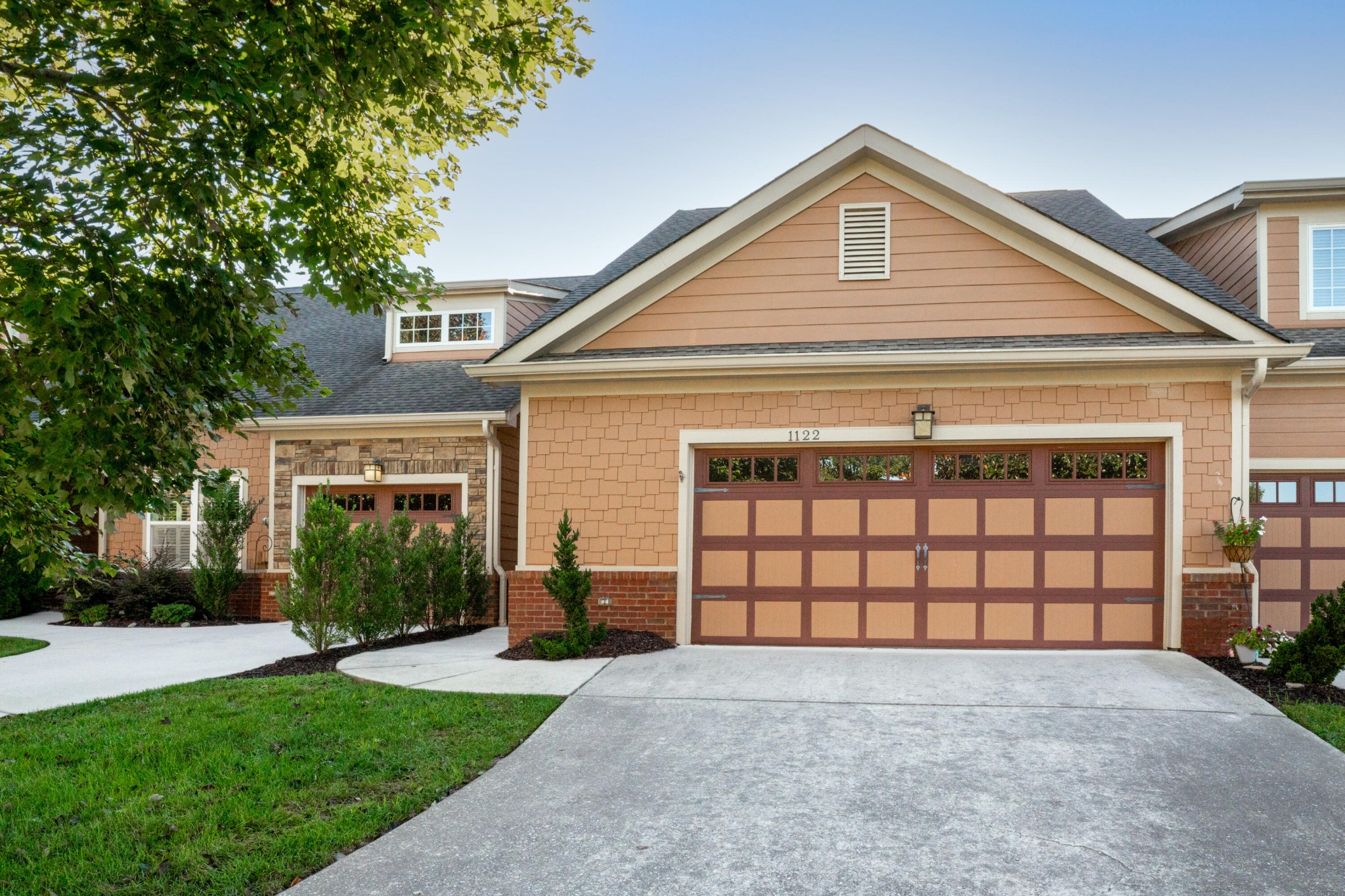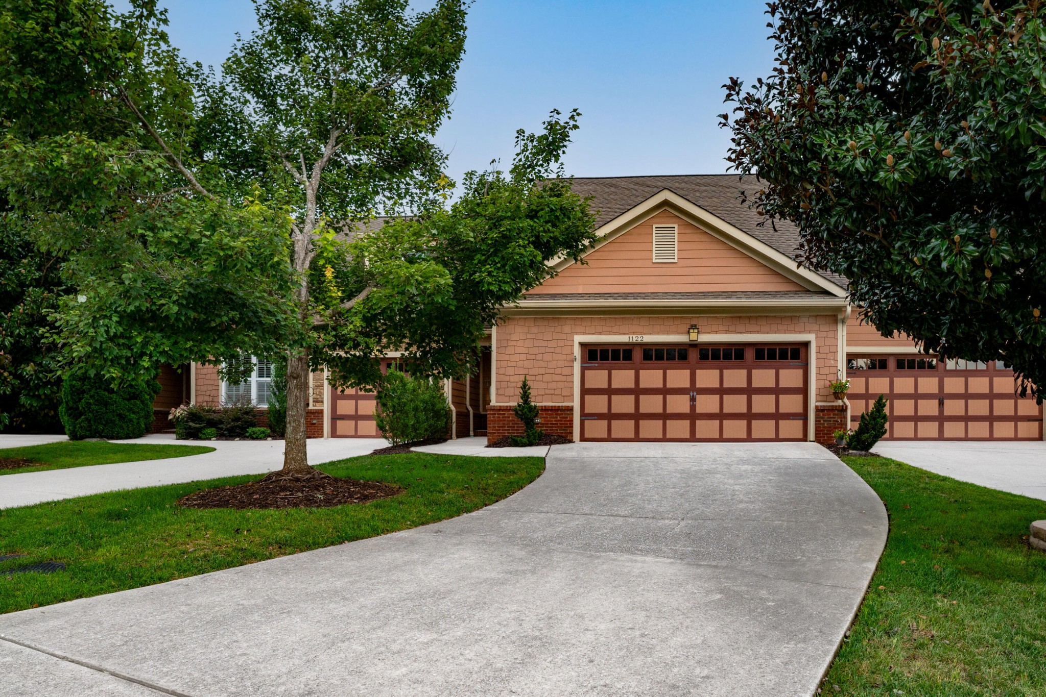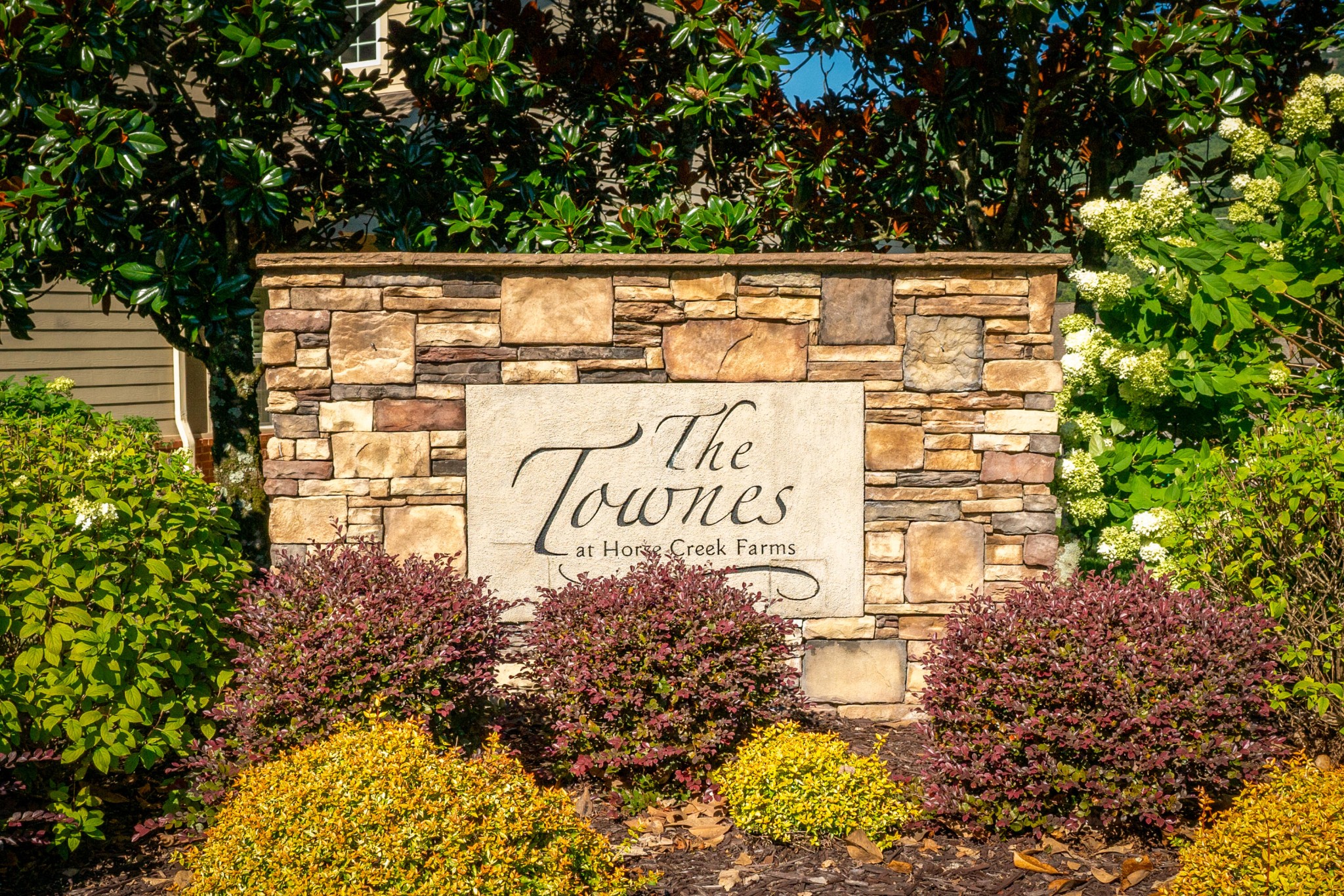 Excellent opportunity to live at the Townes of Horse Creek Farms. This scenic location is at the base of Signal Mt only minutes to downtown Chattanooga, Shopping, Restaurants and Parks. This townhome features one level living, open design with high ceilings, hardwood floors, and a split bedroom plan. The kitchen has been upgraded with stainless appliances, painted cabinets, solid surface countertops, custom designed built-in hutch, and a kitchen island with a breakfast bar. There is wonderful light filled sunroom for additional living space overlooking an outdoor patio space and private backyard. The primary suite is spacious with a tile bath, double vanity, tile shower and walk-in closet. The guest suite features a spacious walk-in closet and a connecting full bath. Tiled laundry room with storage and a 2 car garage. Great location, Great design, Great Finishes