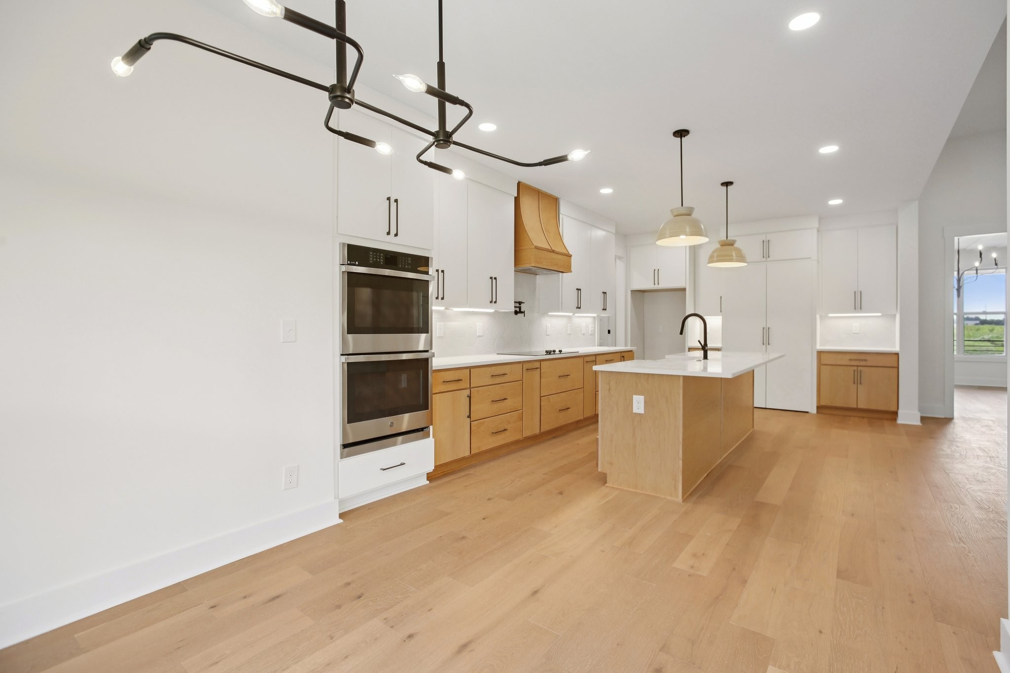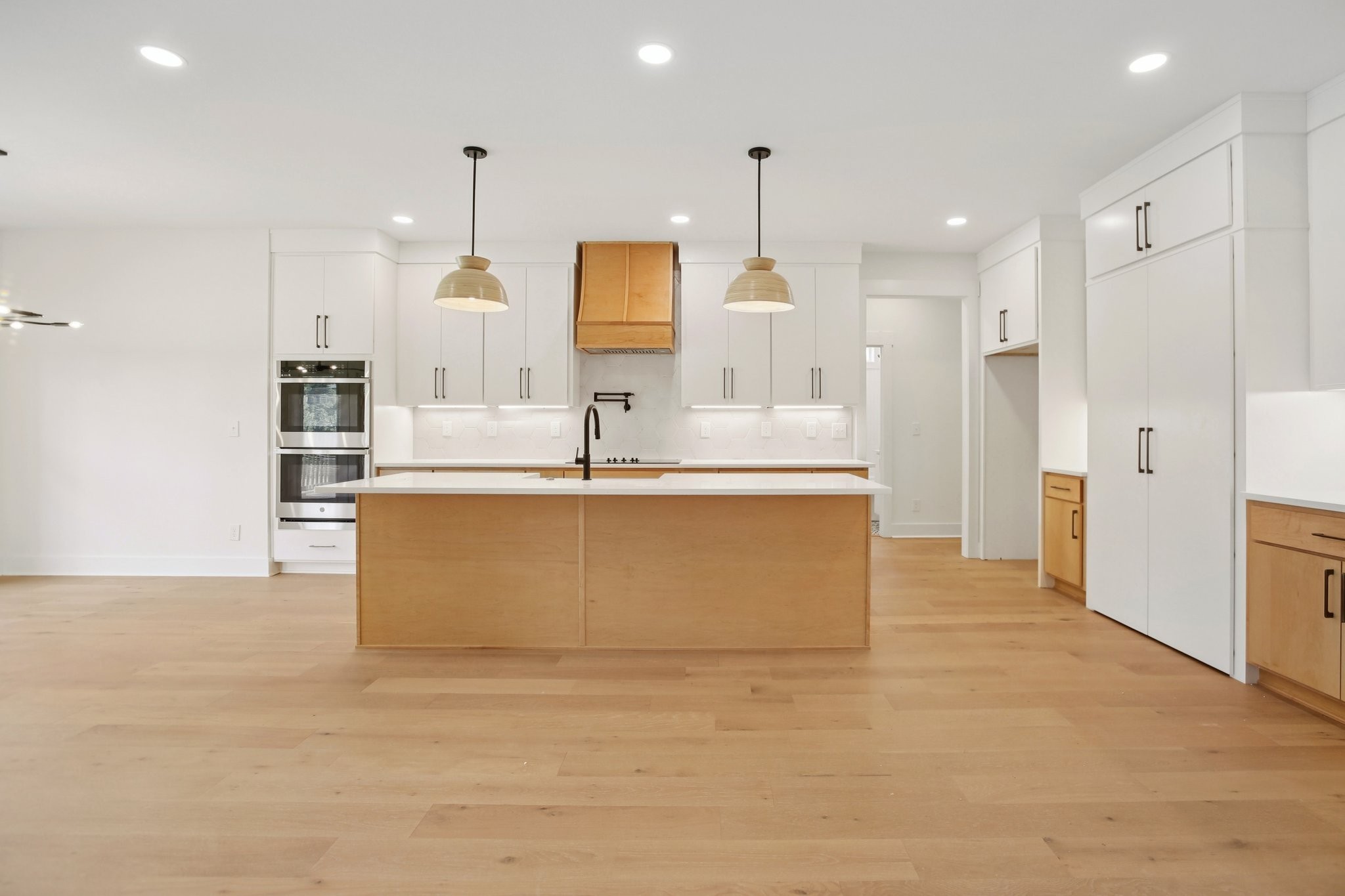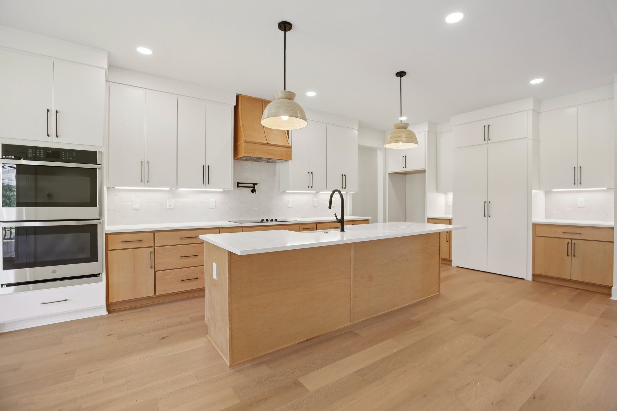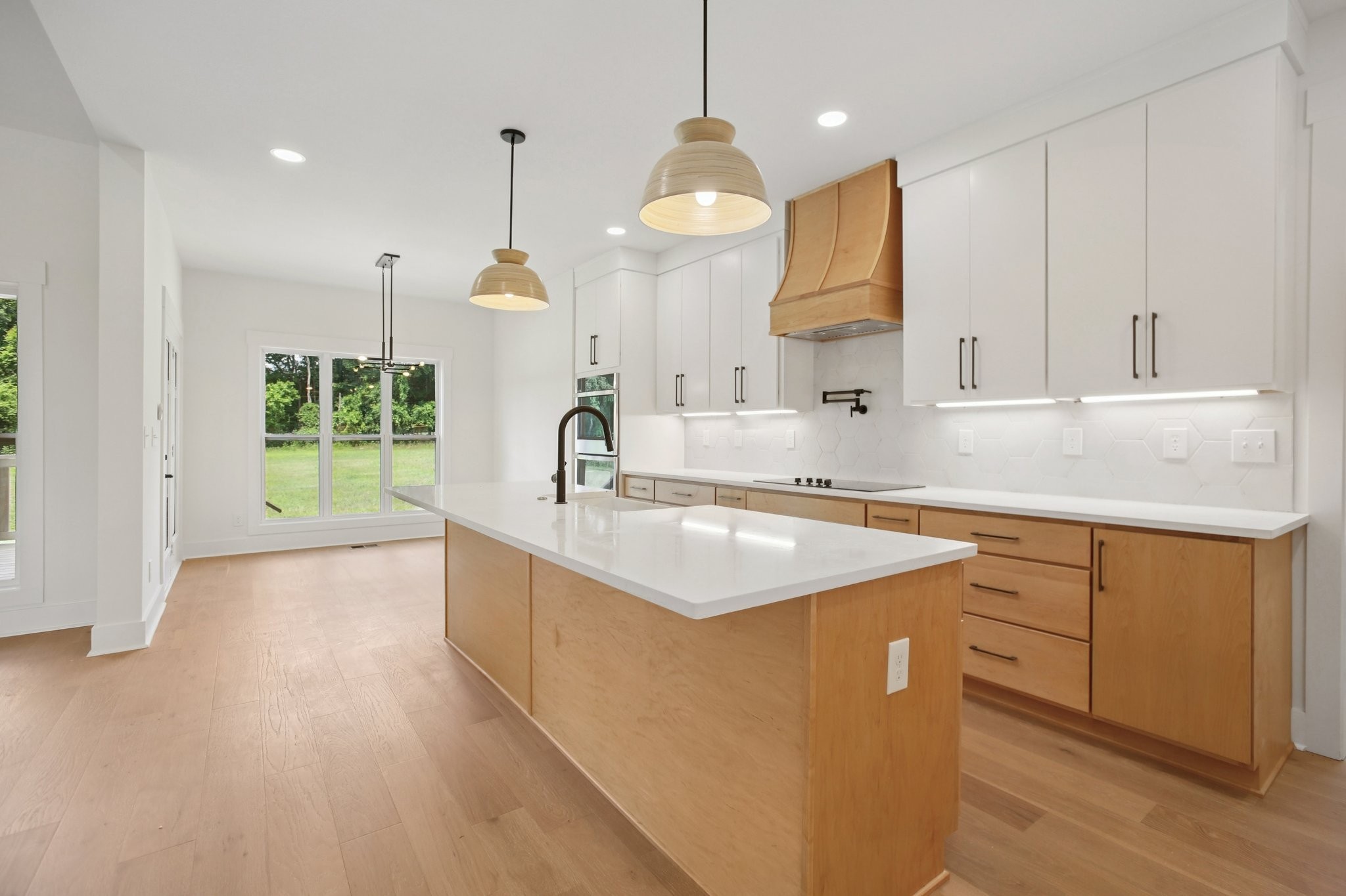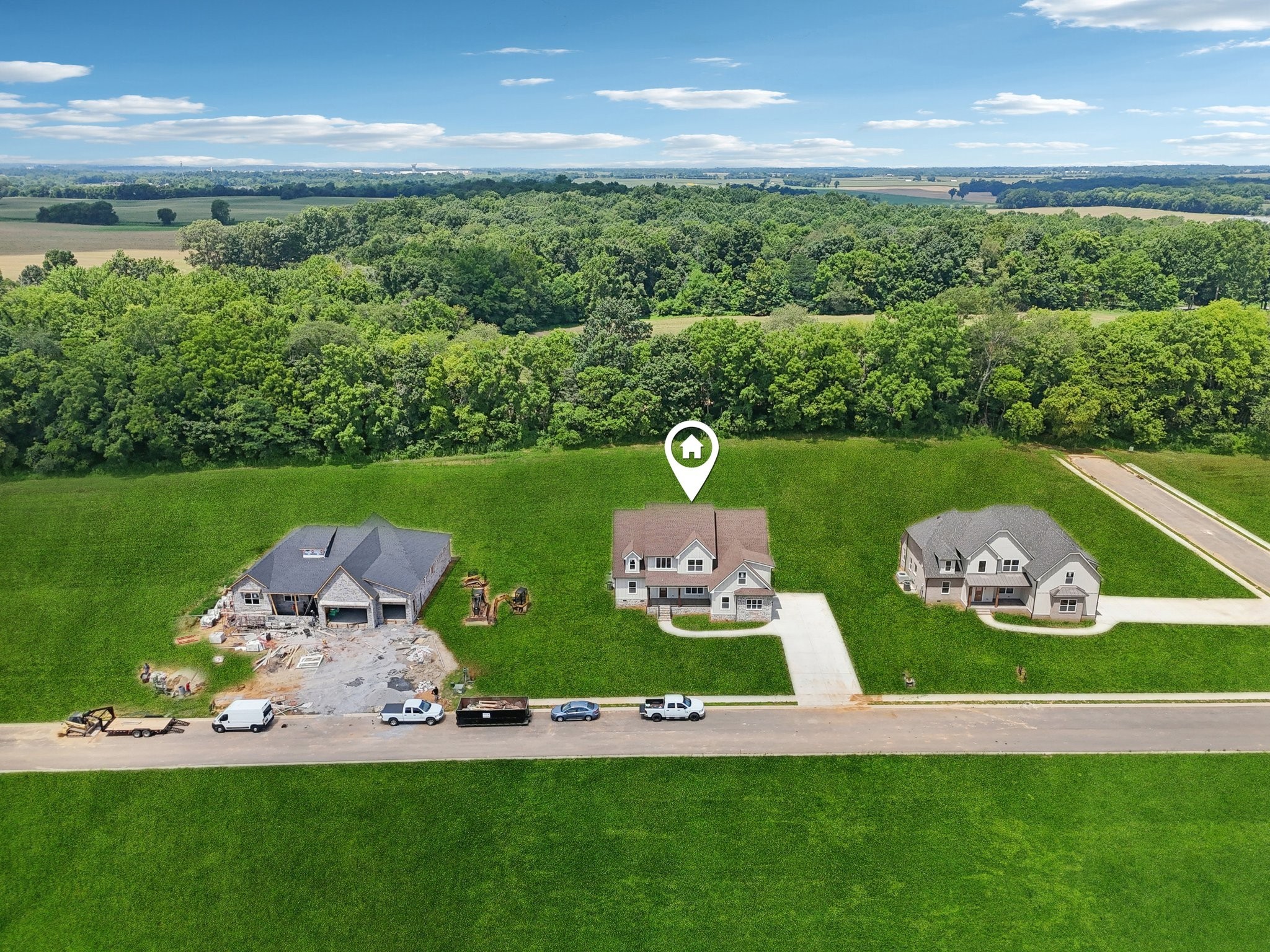 Nestled on a beautifully level, tree-lined lot, this exquisite new construction home offers a perfect balance of modern luxury and serene surroundings. Thoughtfully designed with impeccable craftsmanship, this residence features 4 spacious bedrooms, 3 full bathrooms, and a chef’s kitchen equipped with a hidden walk-in pantry, double oven, and pot filler—ideal for culinary enthusiasts.