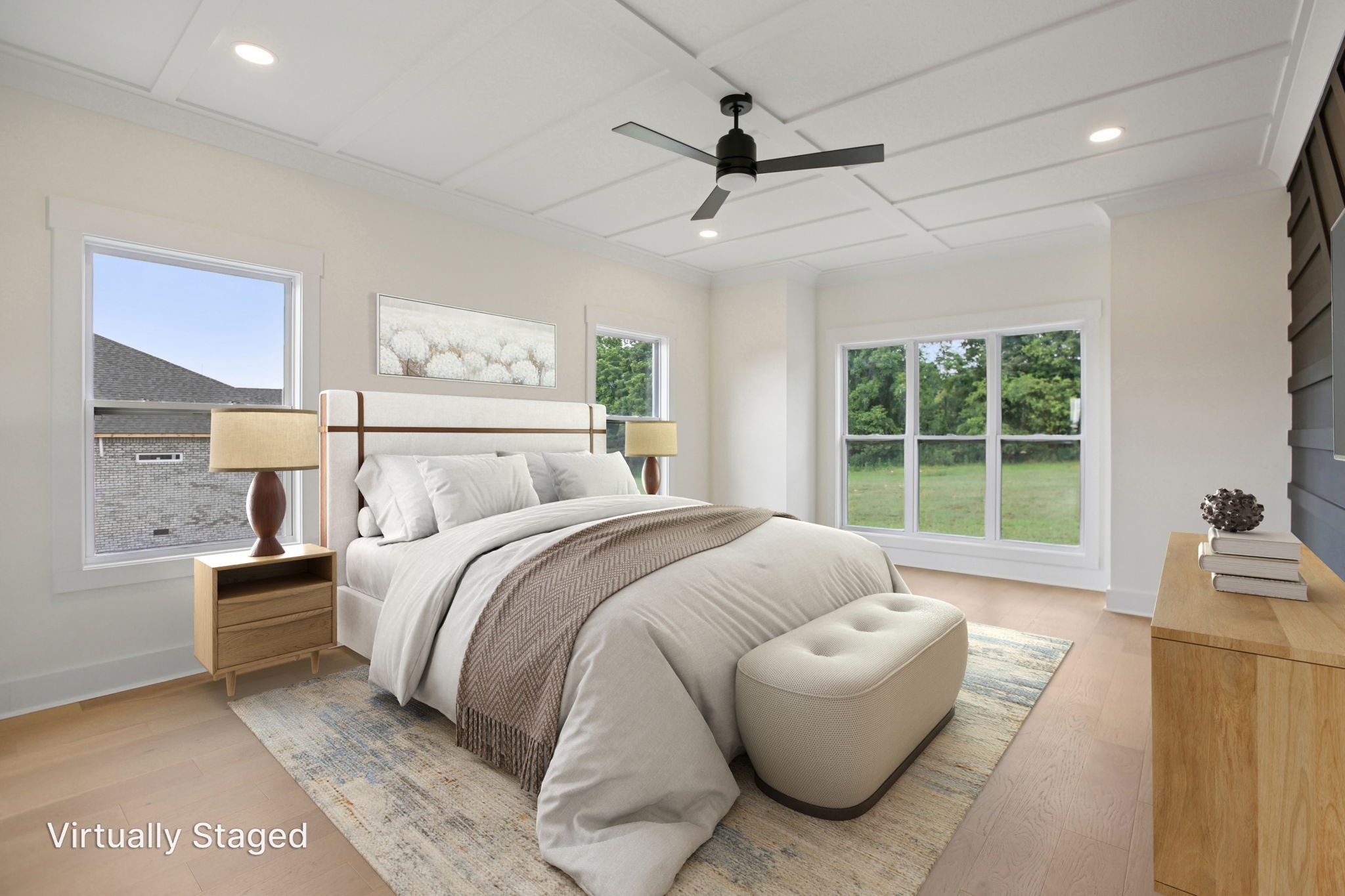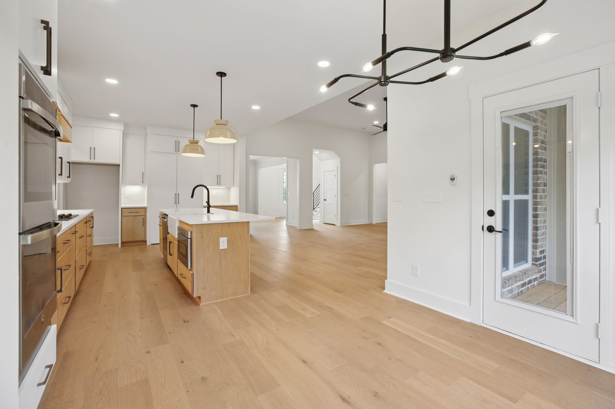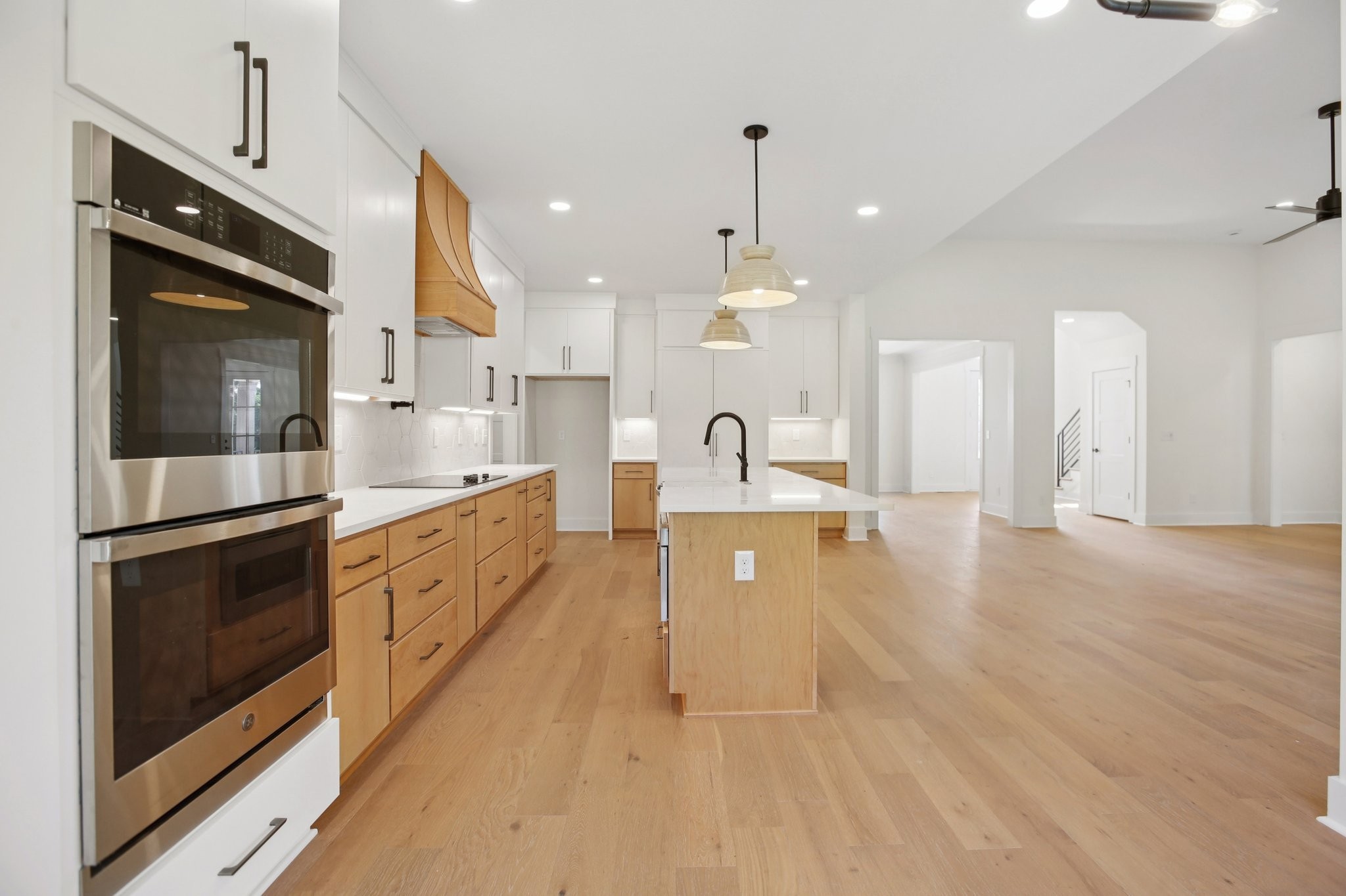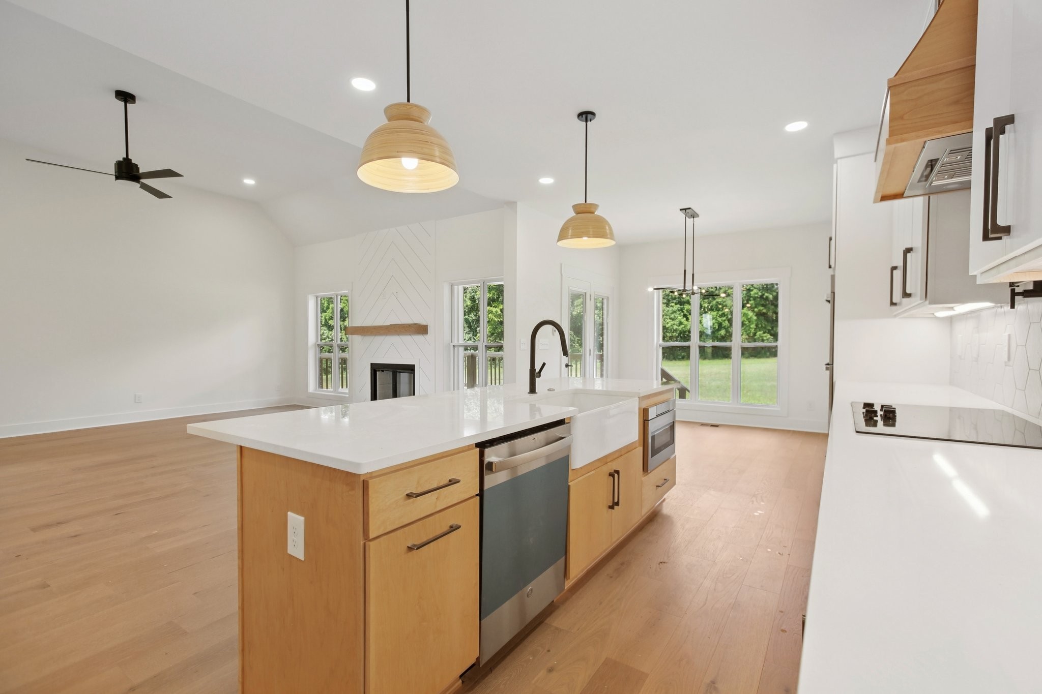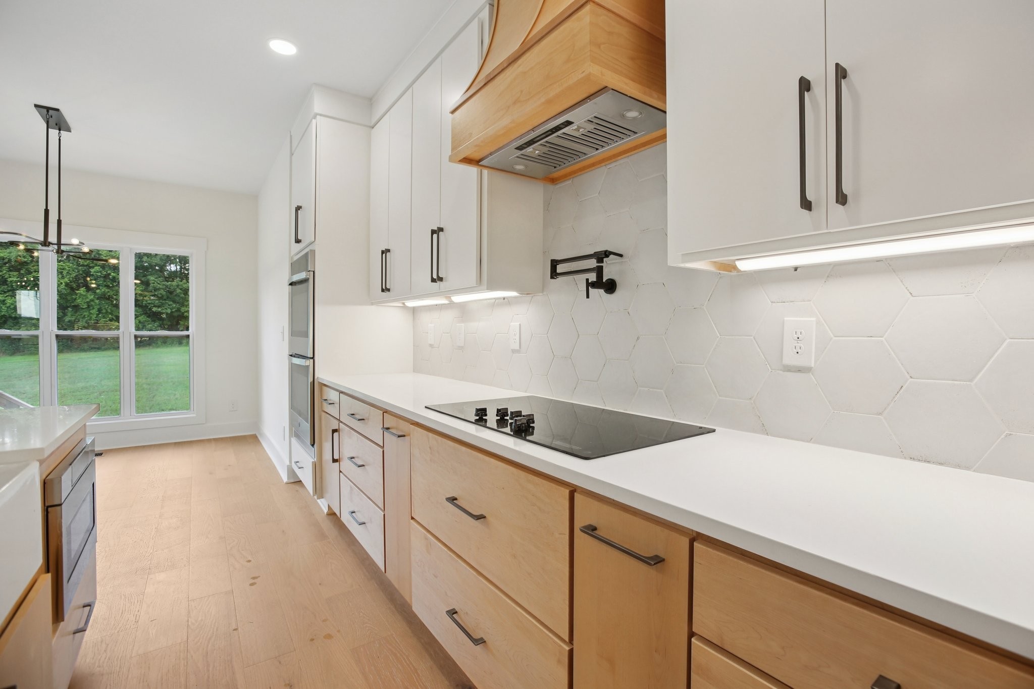 Nestled on a beautifully level, tree-lined lot, this exquisite new construction home offers a perfect balance of modern luxury and serene surroundings. Thoughtfully designed with impeccable craftsmanship, this residence features 4 spacious bedrooms, 3 full bathrooms, and a chef’s kitchen equipped with a hidden walk-in pantry, double oven, and pot filler—ideal for culinary enthusiasts.