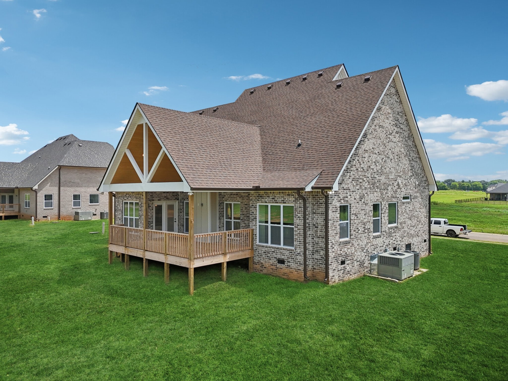 Enjoy the charm of outdoor living on the large, covered front porch and back deck, both enriched with elegant tongue-and-groove woodwork. A versatile bonus room above the two-car garage provides additional living space, perfect for a home office, media room, or guest quarters.