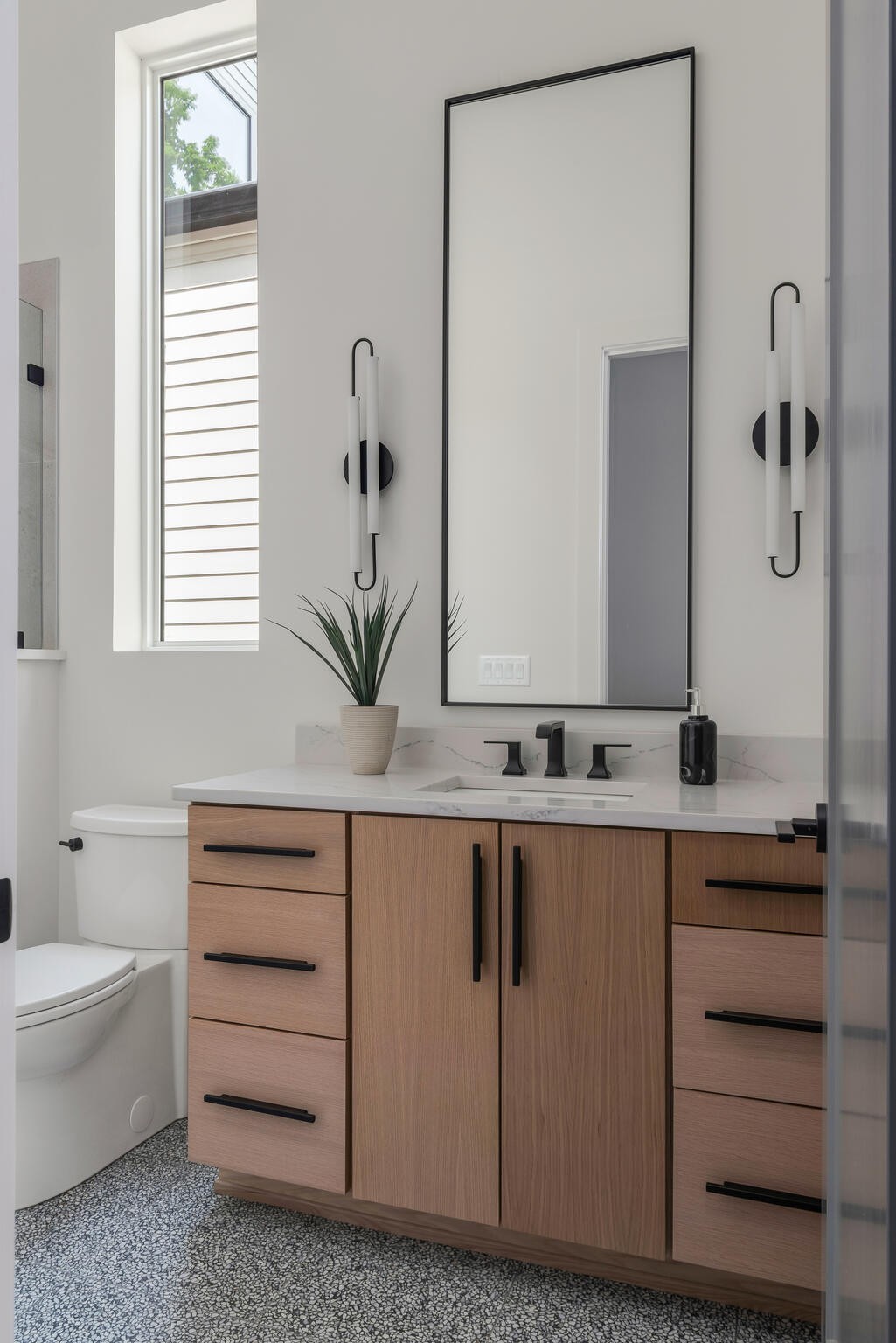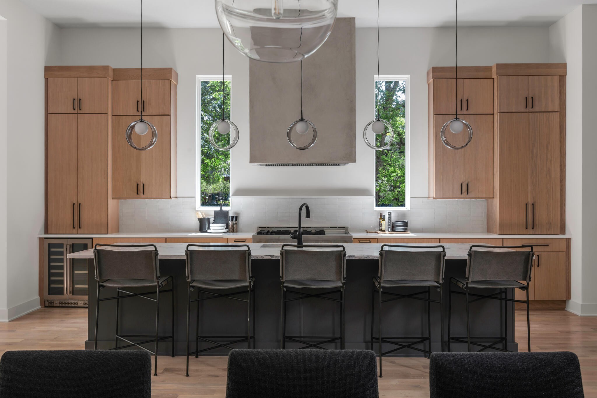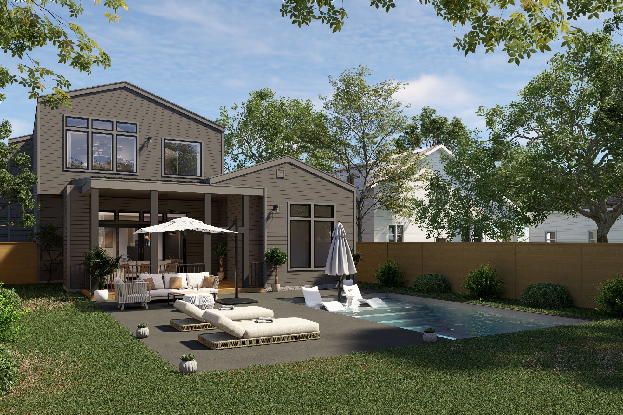 The main level includes a well-appointed secondary suite, while the second floor features a vaulted-ceiling primary suite with a boutique-style bath sanctuary, complete with a soaking tub and dual custom walk-in closets. Upstairs, four additional en-suite bedrooms provide abundant private space for family or guests, along with a spacious rec room ideal for play, study, or a secondary lounge. Every detail reflects intentional design, from wide plank hardwoods to designer lighting and custom built-ins. The juxtaposition of classic brick and warm wood tones is complemented by a covered and screened-in patio, fenced backyard, and mature trees, creating a private retreat for year-round enjoyment. Minutes to premier shopping, dining, and top private schools, this home offers rare access to both convenience and community. A legacy-worthy residence for those who value beauty, space, and distinction.