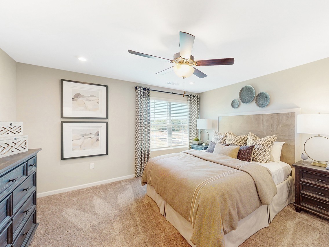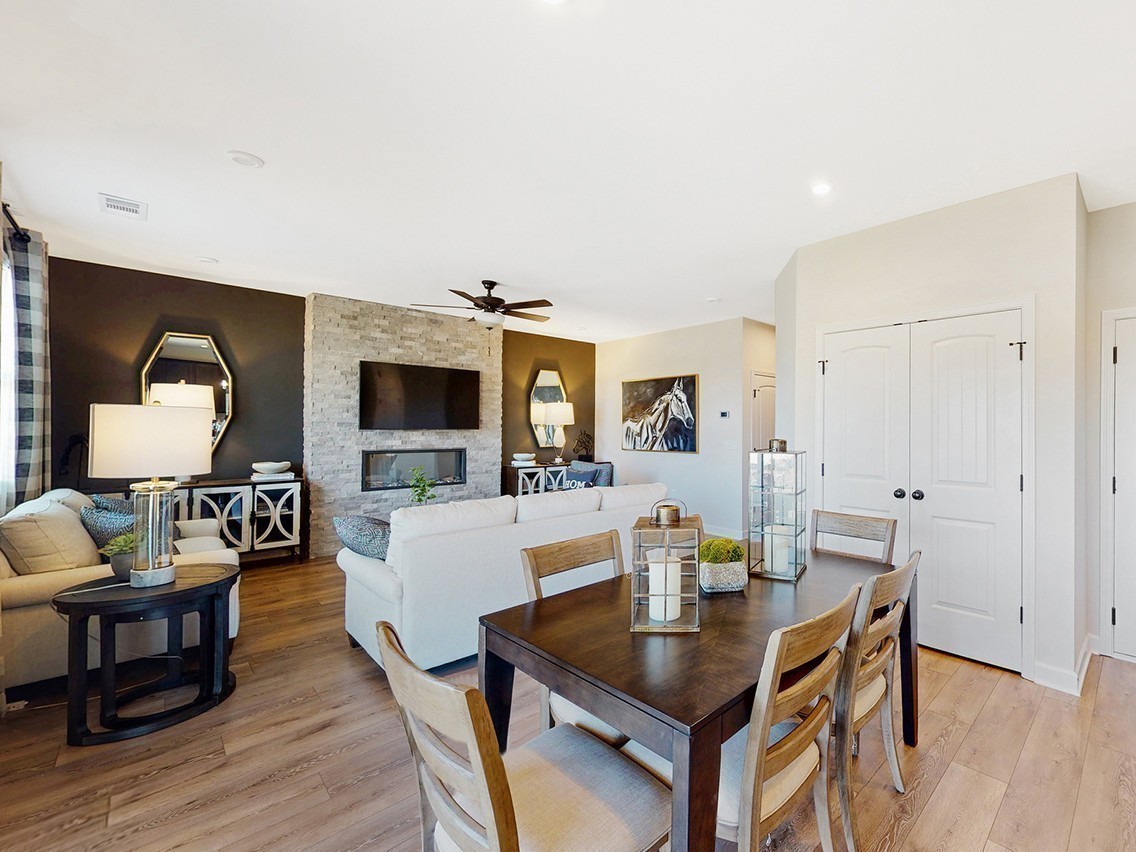 The Chastain at Canebrake at Hickory Hills in Old Hickory, TN, is a popular floor plan designed for modern living. This charming home welcomes you with a covered porch that leads into a spacious foyer, providing easy access to the second floor. The main level features a spacious open-concept layout, including a well-equipped kitchen with a center island that seamlessly flows into the dining area and great room. Enjoy easy access to a cozy patio from the dining area, perfect for outdoor relaxation. Upstairs, discover a versatile LOFT area surrounded by two secondary bedrooms, one of which features a walk-in closet. The luxurious primary suite features a generous bedroom, a spacious walk-in closet, and an en-suite bathroom w/garden tub, providing a private retreat for homeowners.