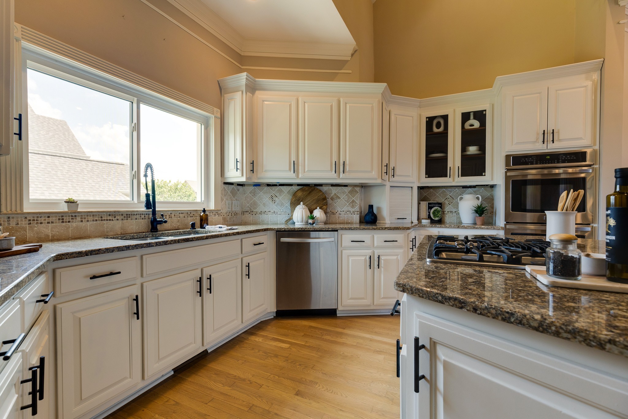 - AppliancesDishwasher, Disposal, Microwave, Double Oven, Electric Oven, Cooktop