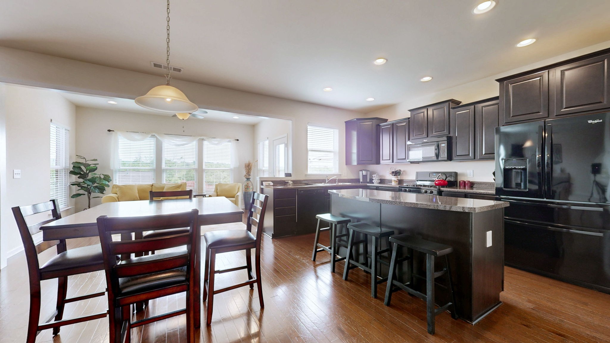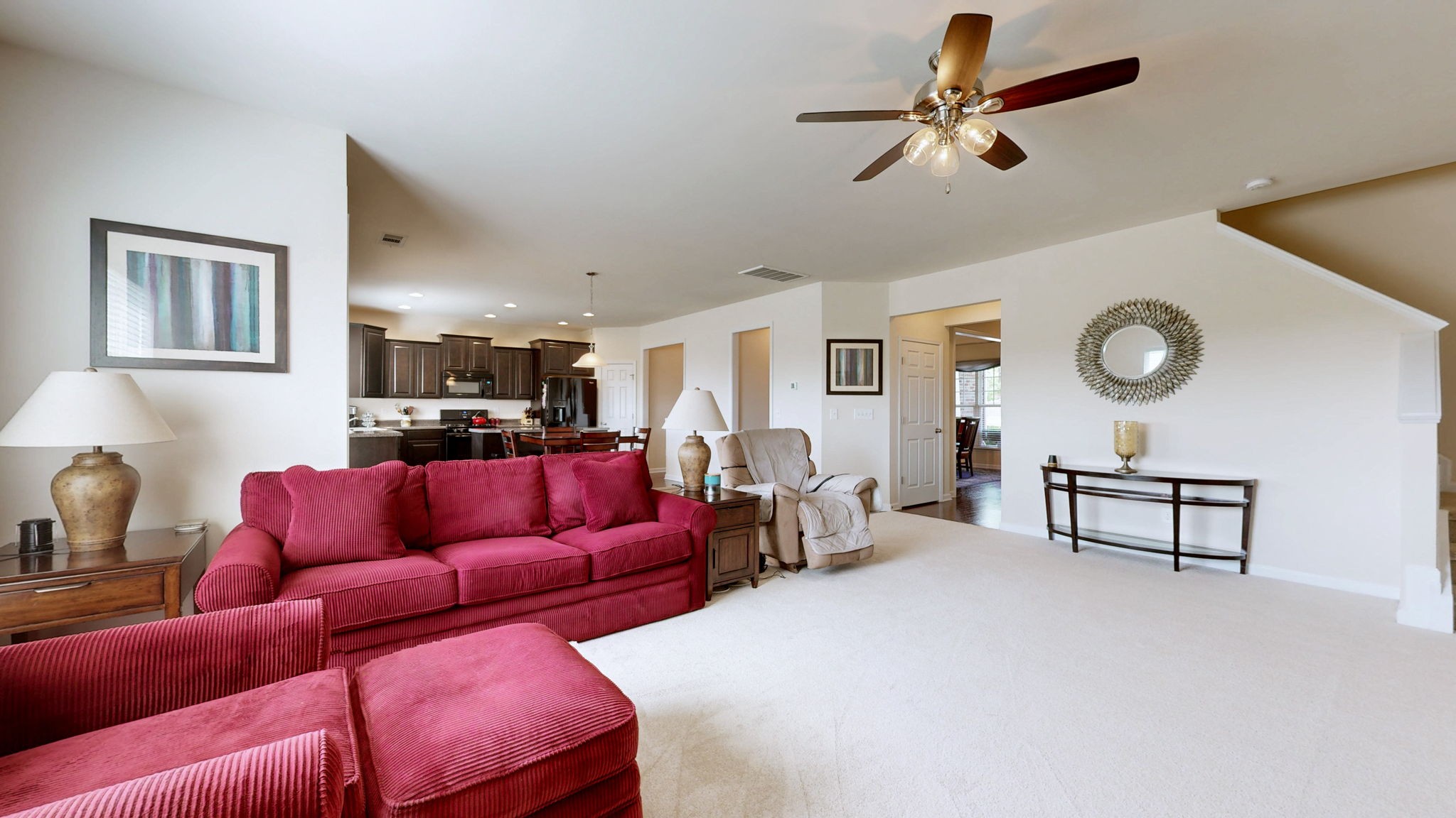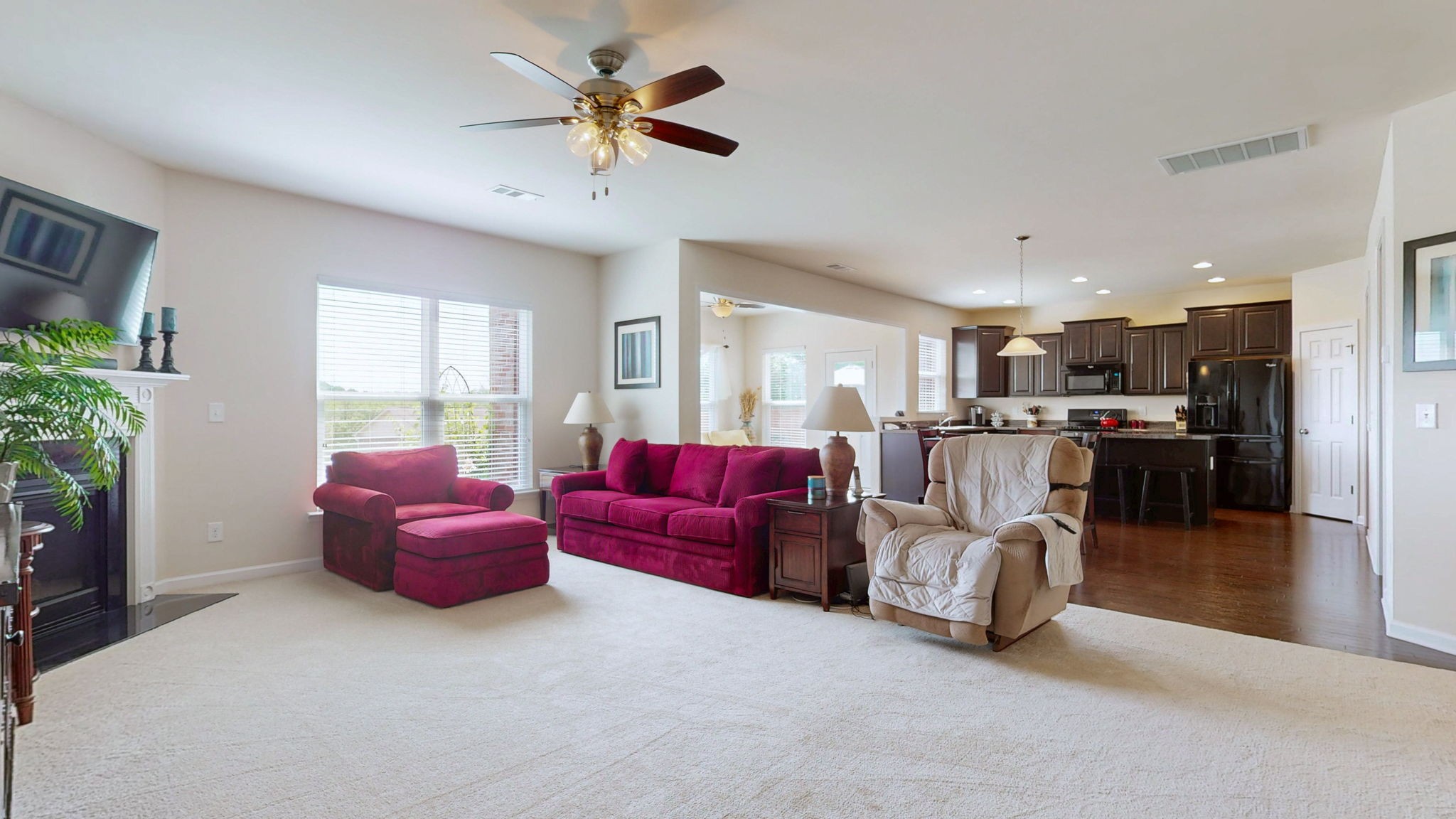 Step inside to fresh interior paint, brand-new carpet, and an open-concept layout ideal for both daily living and entertaining. The heart of the home—a spacious kitchen with a large island, with a butlers pantry for staging—flows seamlessly into the living and dining areas, creating a warm, welcoming atmosphere.