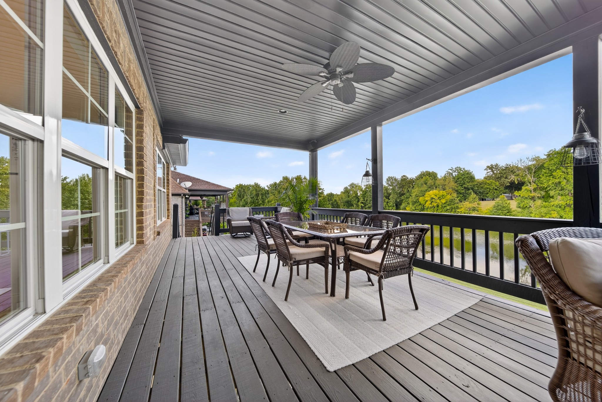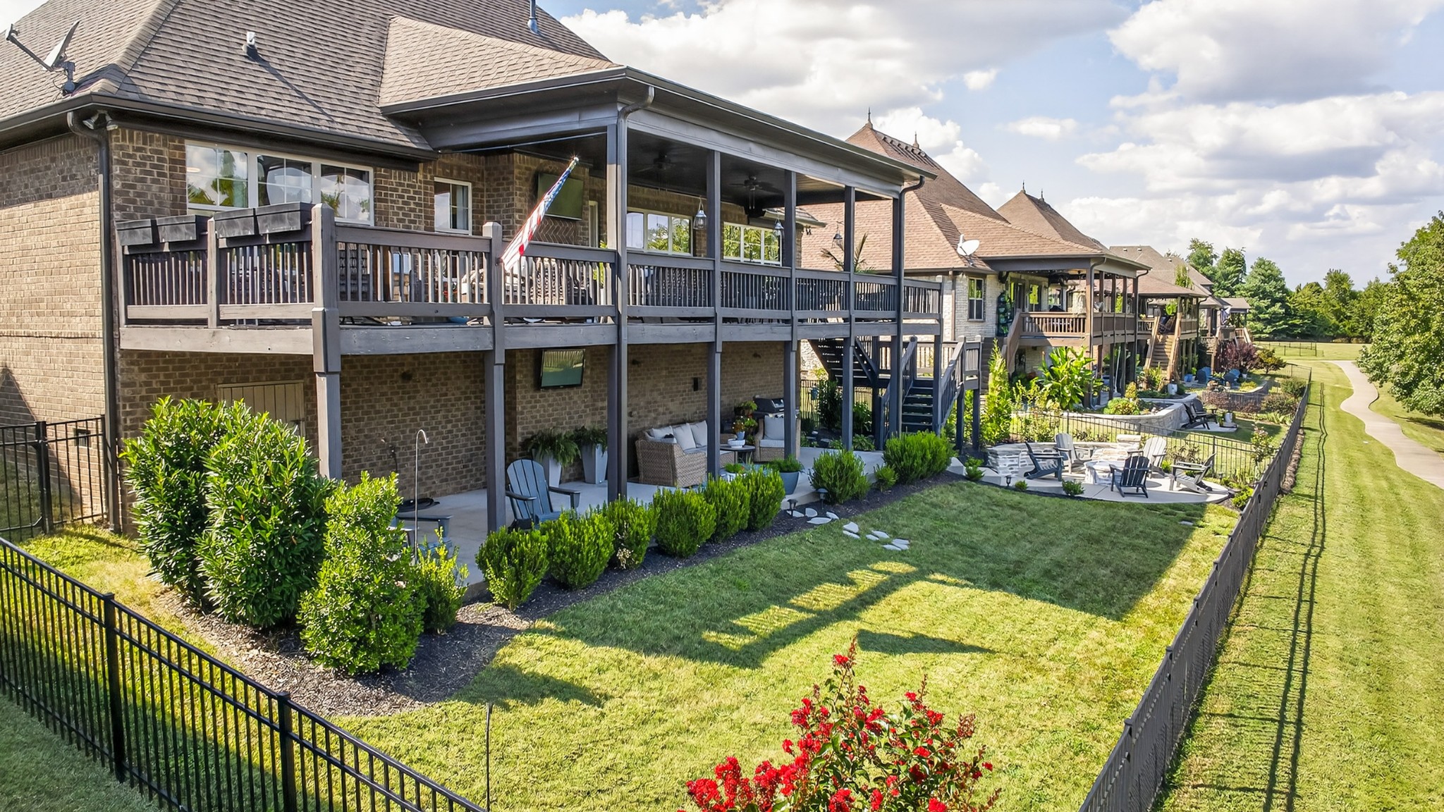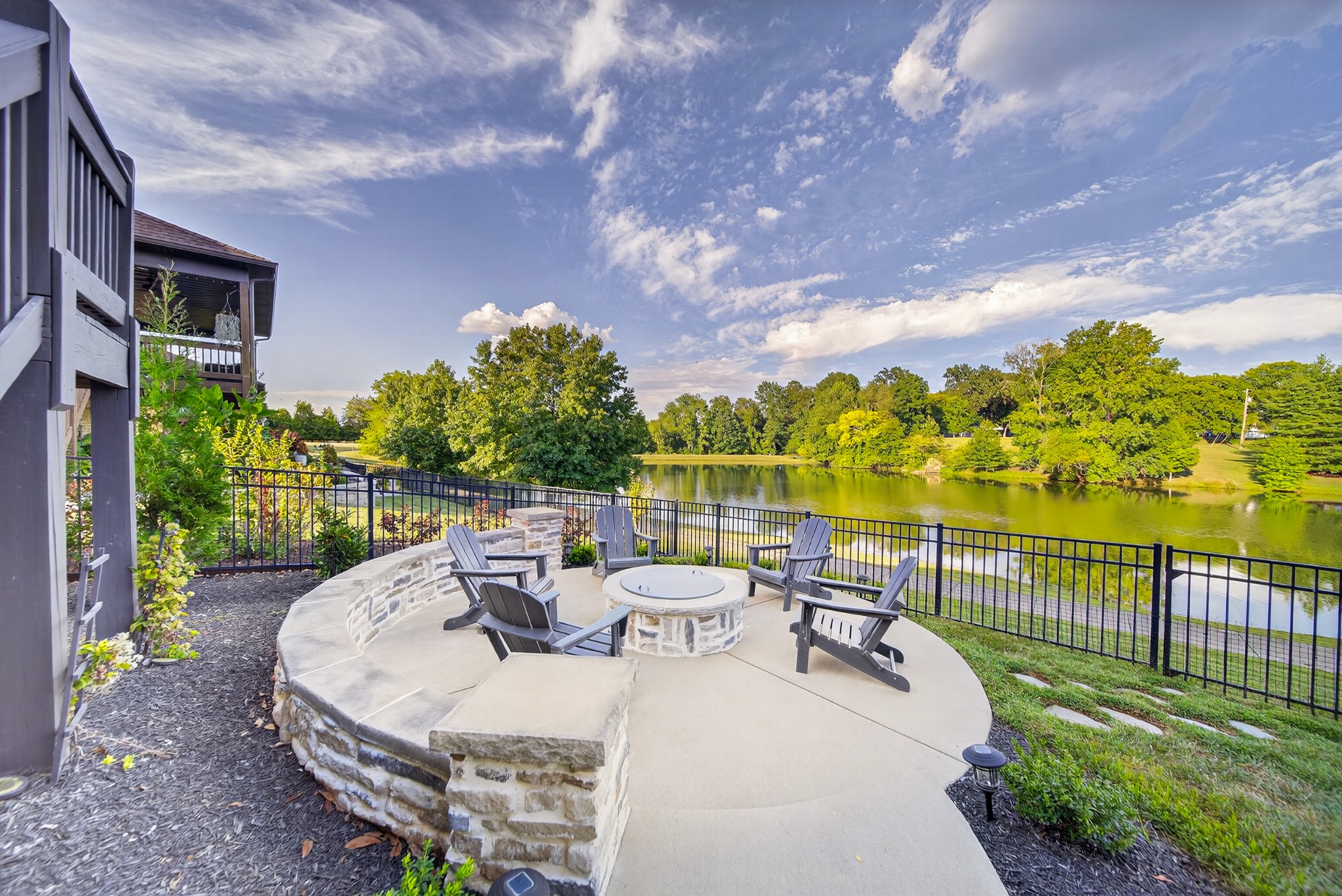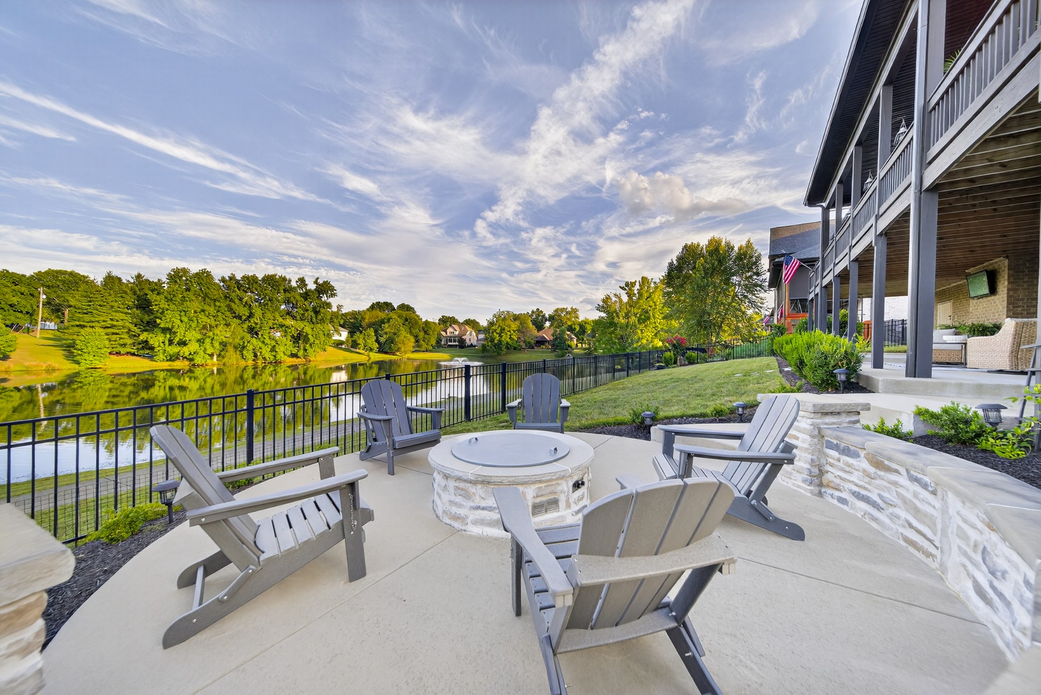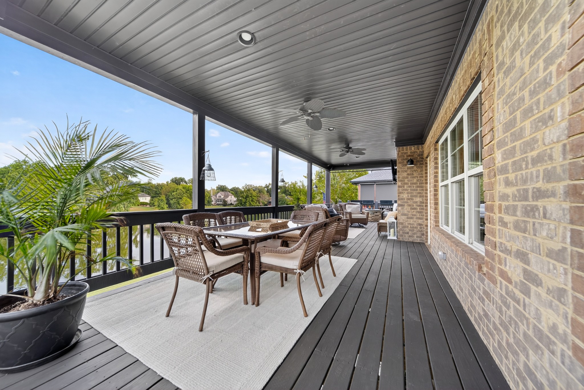 Incredible breathtaking views! Located on a private lake in a gated community, this all brick luxury showplace has an open floor plan, huge gourmet eat-in kitchen, all stainless appliances, large walk-in pantry, formal dining, great rm with fireplace, coffered ceilings, three BR's on the main level, primary suite with massive walk-in closet, separate shower/tub/double vanities and tankless water heater. A 54 ft oversized deck (one half covered) with tv's, expands the length of the home with an equally spacious patio underneath. The rec room upstairs features a full kitchenette/two tv's, wine fridge and bar. Entertainer's dream with Sonos whole house speaker system, pool table (which stays) and a 24x11 media room with surround sound/three tv's. In 2020 sellers installed new roof, new luxury plank flooring throughout, & built the new outdoor patio with natural gas fire-pit. Tons of storage space..possible expansion walk in floored attic with 16 ft. ceilings, walk in crawlspace storage under the deck. Beautiful new landscaping in 2024, fenced back yard backing up to the walking trail that circles the lake. Three car immaculate garage features an EV charger! Just minutes from schools, shopping/dining, marinas and Old Hickory Lake! This house is even more stunning in person!
