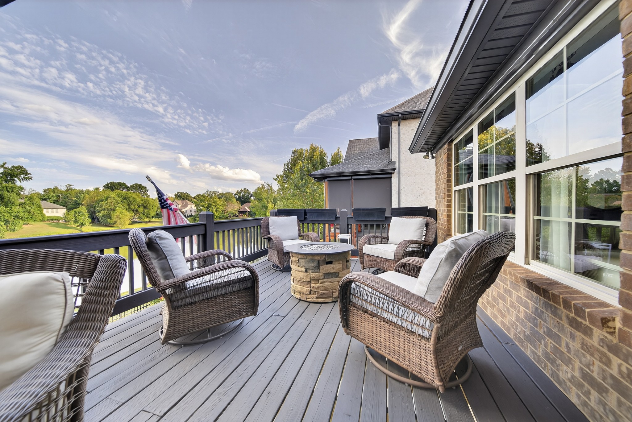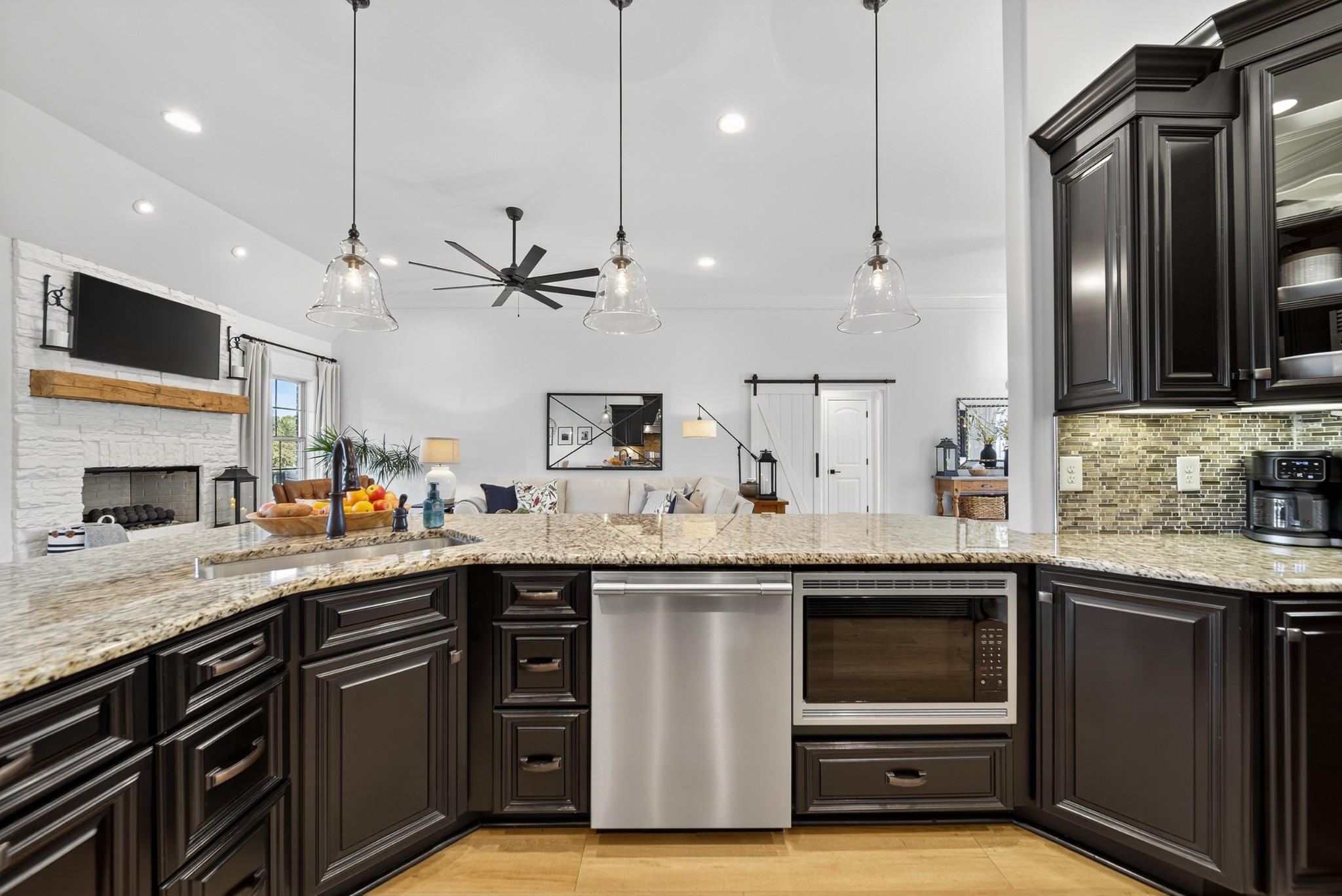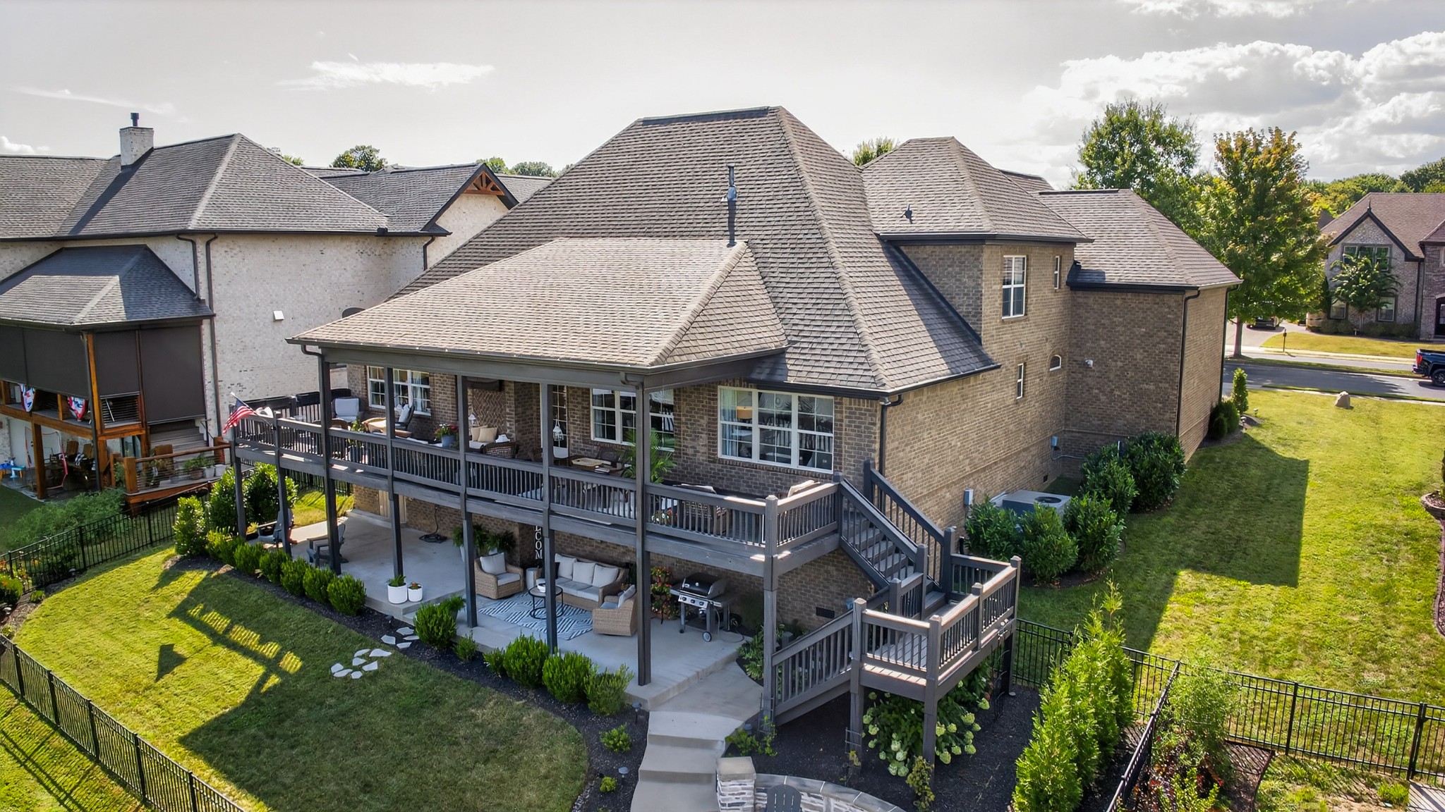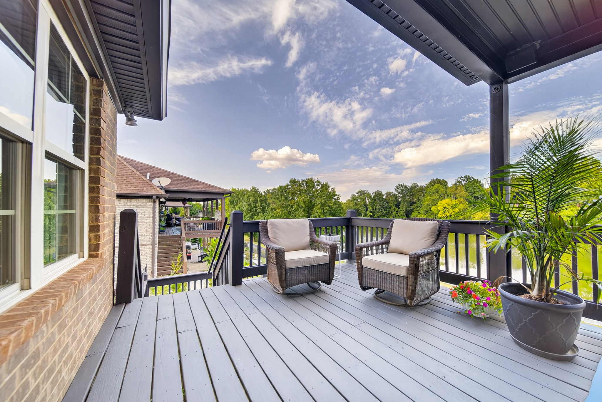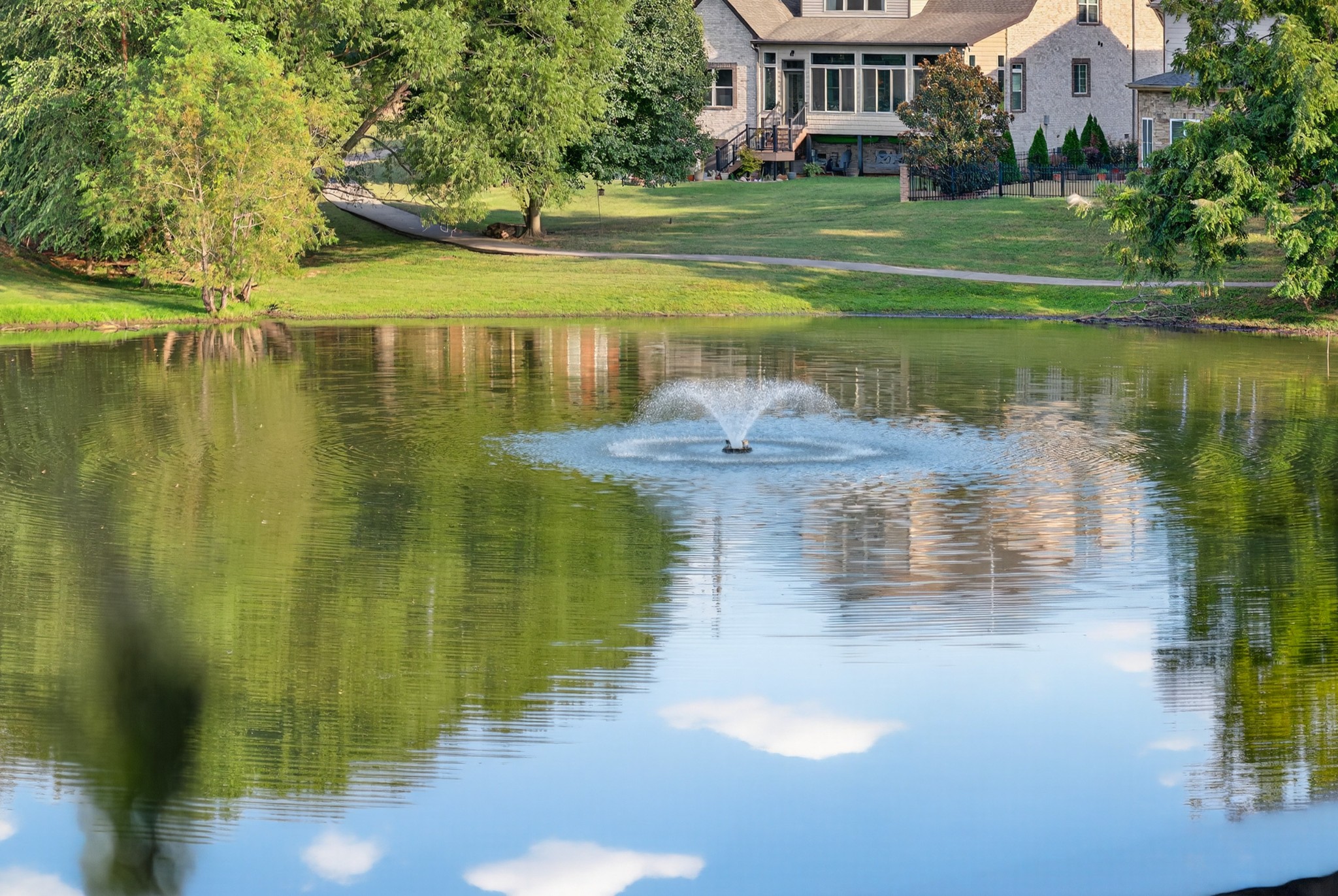 Incredible breathtaking views! Located on a private lake in a gated community, this all brick luxury showplace has an open floor plan, huge gourmet eat-in kitchen, all stainless appliances, large walk-in pantry, formal dining, great rm with fireplace, coffered ceilings, three BR's on the main level, primary suite with massive walk-in closet, separate shower/tub/double vanities and tankless water heater. A 54 ft oversized deck (one half covered) with tv's, expands the length of the home with an equally spacious patio underneath. The rec room upstairs features a full kitchenette/two tv's, wine fridge and bar. Entertainer's dream with Sonos whole house speaker system, pool table (which stays) and a 24x11 media room with surround sound/three tv's. In 2020 sellers installed new roof, new luxury plank flooring throughout, & built the new outdoor patio with natural gas fire-pit. Tons of storage space..possible expansion walk in floored attic with 16 ft. ceilings, walk in crawlspace storage under the deck. Beautiful new landscaping in 2024, fenced back yard backing up to the walking trail that circles the lake. Three car immaculate garage features an EV charger! Just minutes from schools, shopping/dining, marinas and Old Hickory Lake! This house is even more stunning in person!