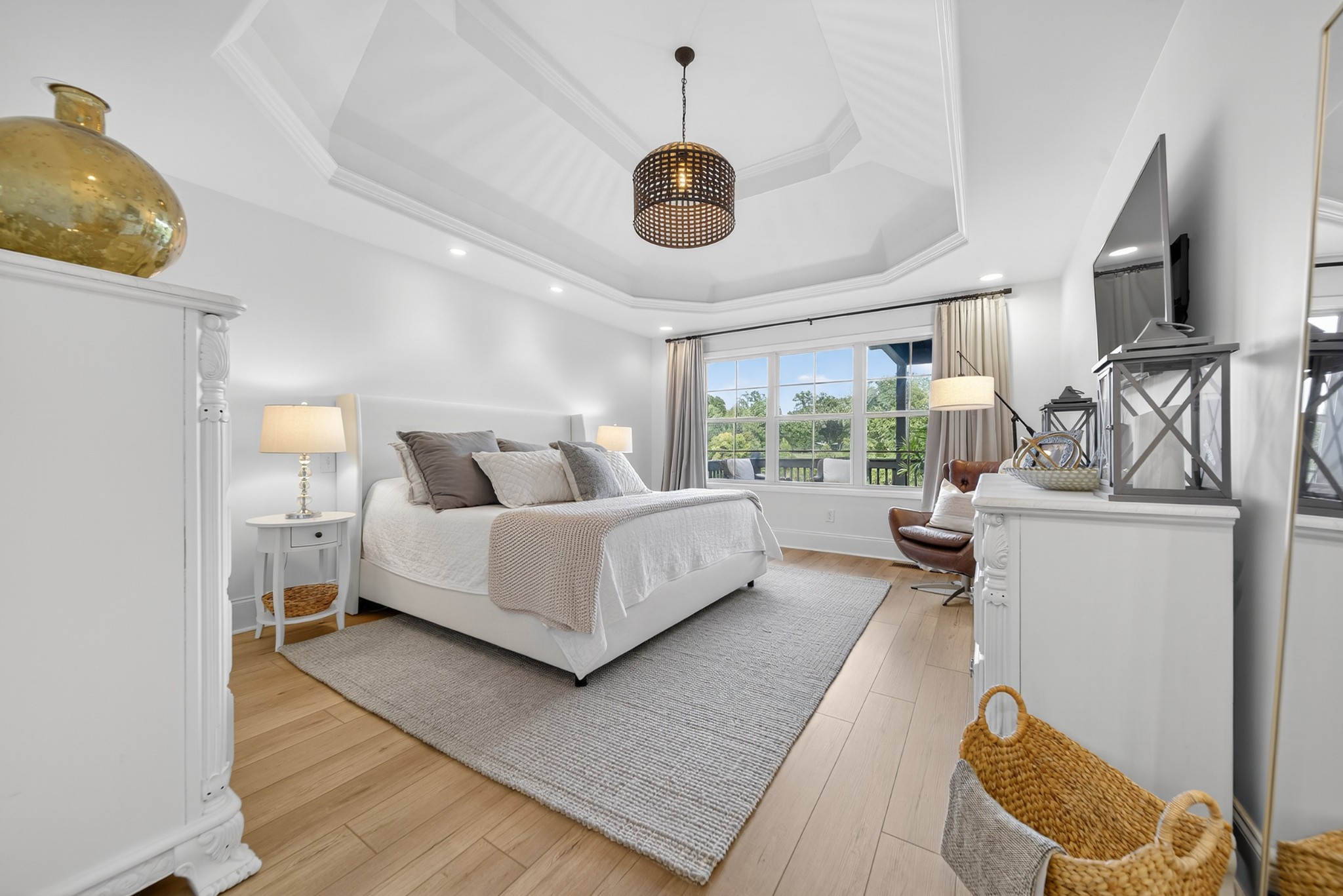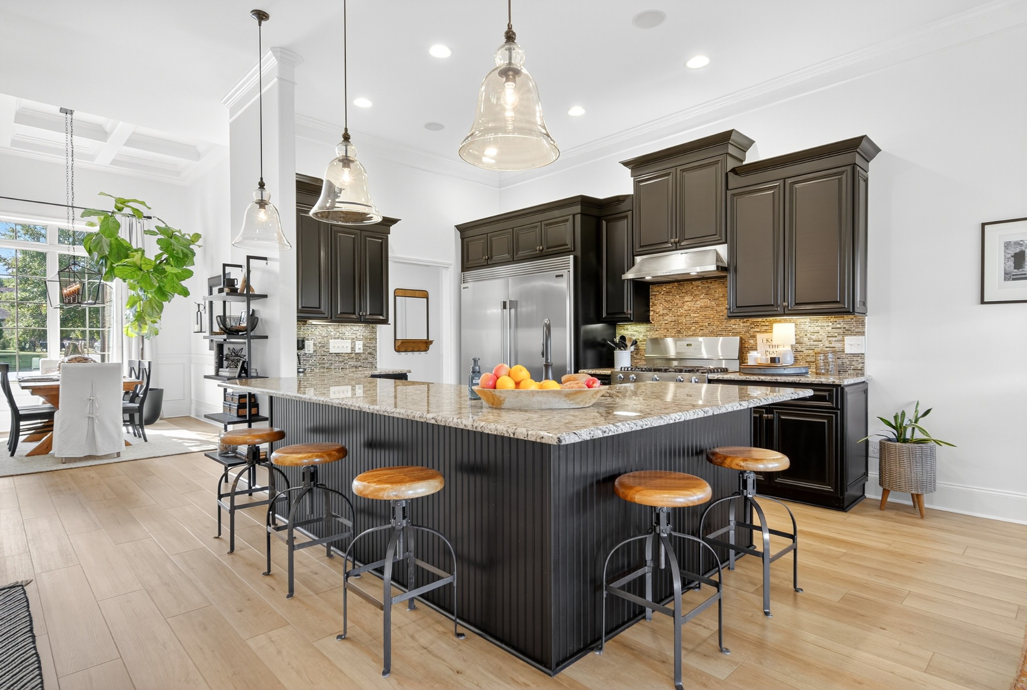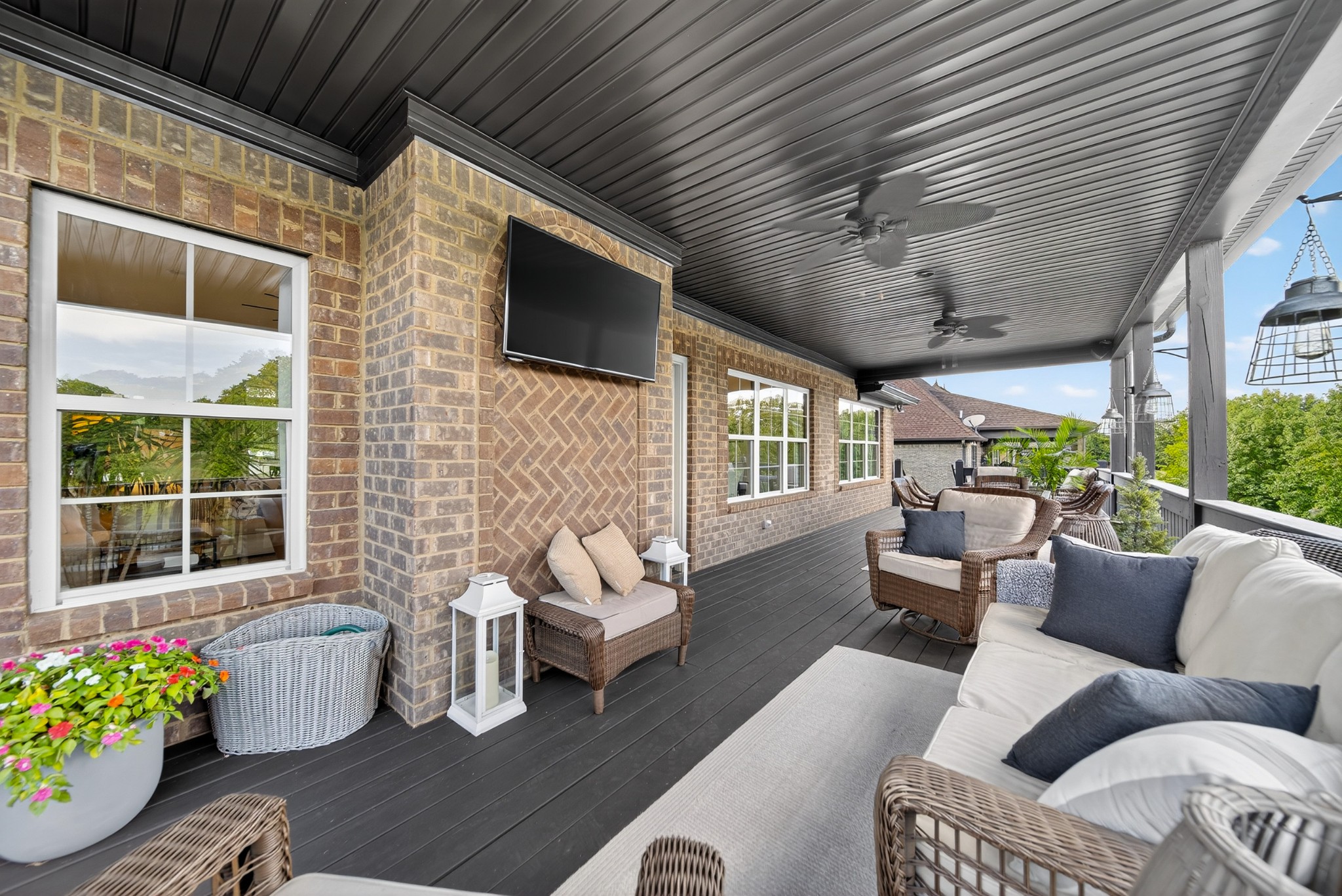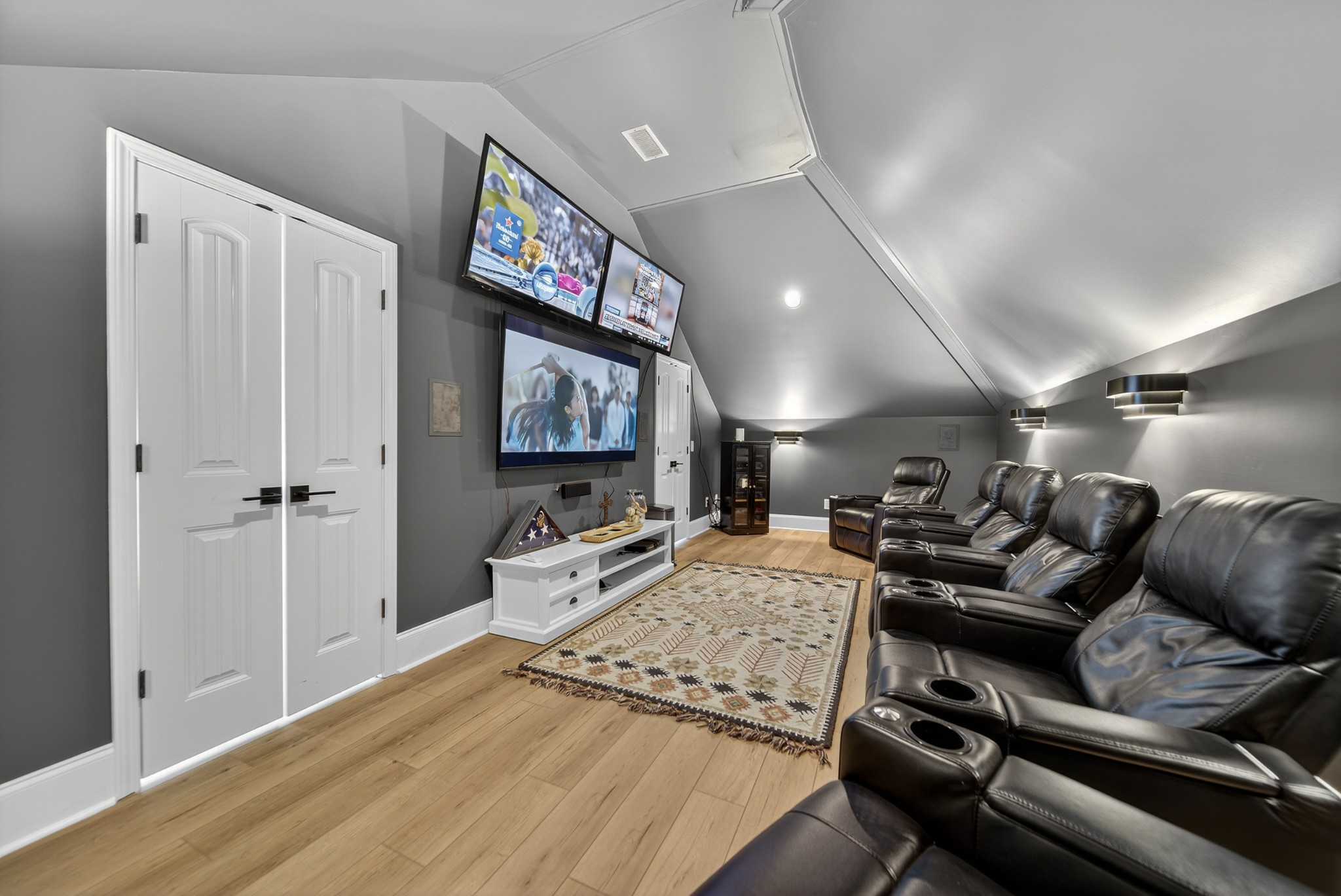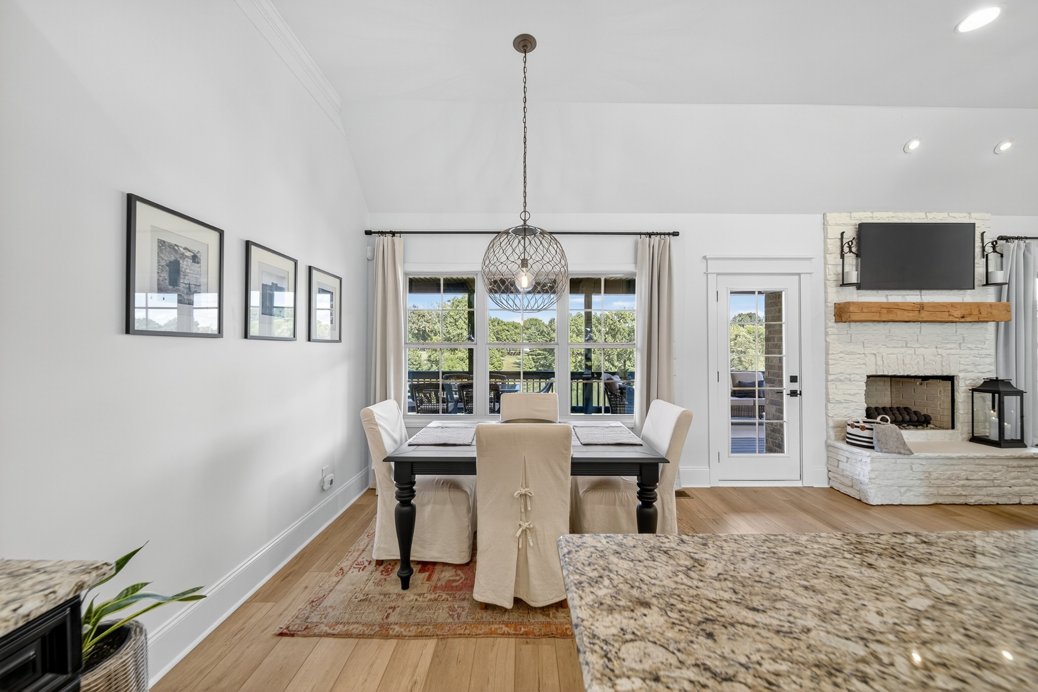 Incredible breathtaking views! Located on a private lake in a gated community, this all brick luxury showplace has an open floor plan, huge gourmet eat-in kitchen, all stainless appliances, large walk-in pantry, formal dining, great rm with fireplace, coffered ceilings, three BR's on the main level, primary suite with massive walk-in closet, separate shower/tub/double vanities and tankless water heater. A 54 ft oversized deck (one half covered) with tv's, expands the length of the home with an equally spacious patio underneath. The rec room upstairs features a full kitchenette/two tv's, wine fridge and bar. Entertainer's dream with Sonos whole house speaker system, pool table (which stays) and a 24x11 media room with surround sound/three tv's. In 2020 sellers installed new roof, new luxury plank flooring throughout, & built the new outdoor patio with natural gas fire-pit. Tons of storage space..possible expansion walk in floored attic with 16 ft. ceilings, walk in crawlspace storage under the deck. Beautiful new landscaping in 2024, fenced back yard backing up to the walking trail that circles the lake. Three car immaculate garage features an EV charger! Just minutes from schools, shopping/dining, marinas and Old Hickory Lake! This house is even more stunning in person!