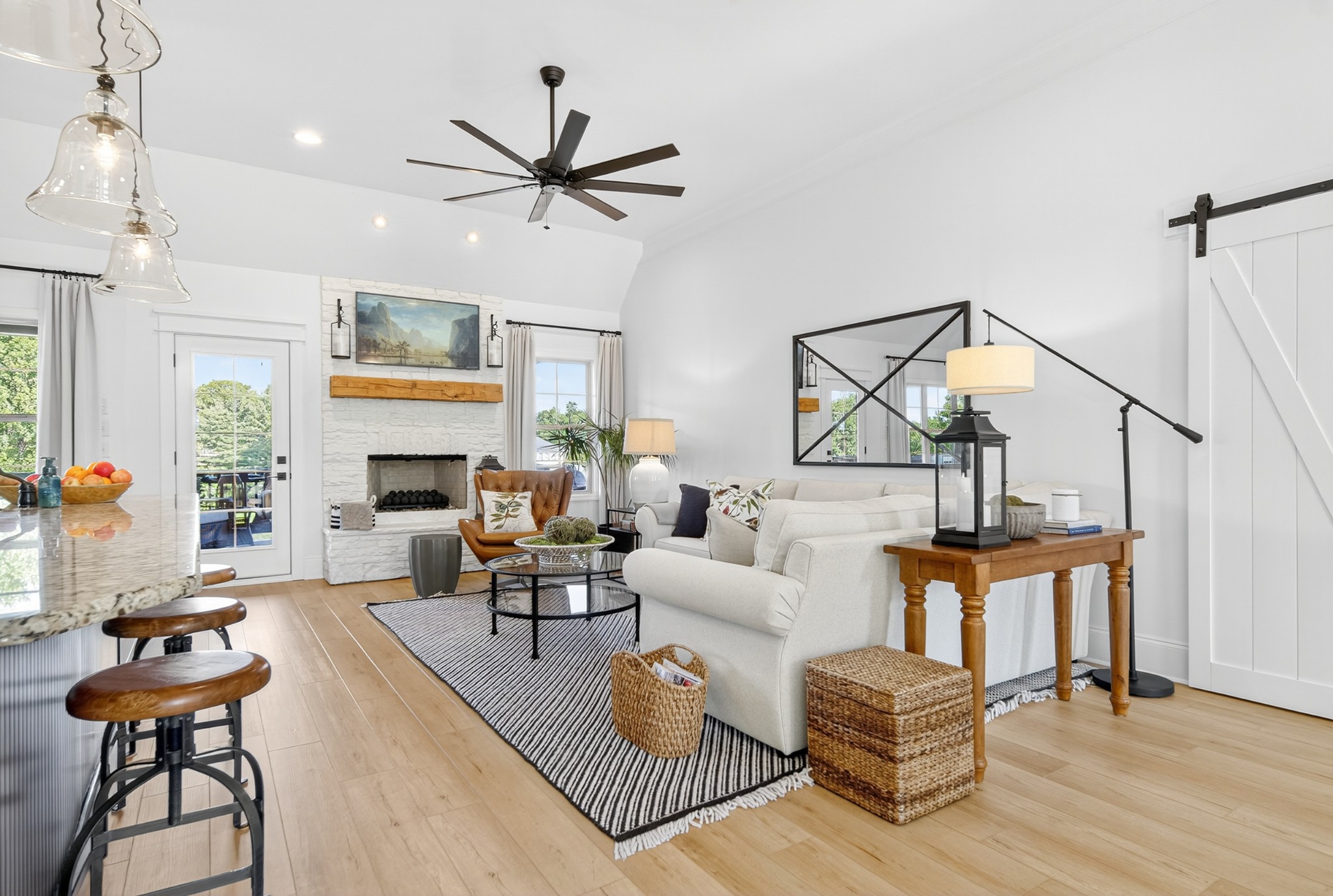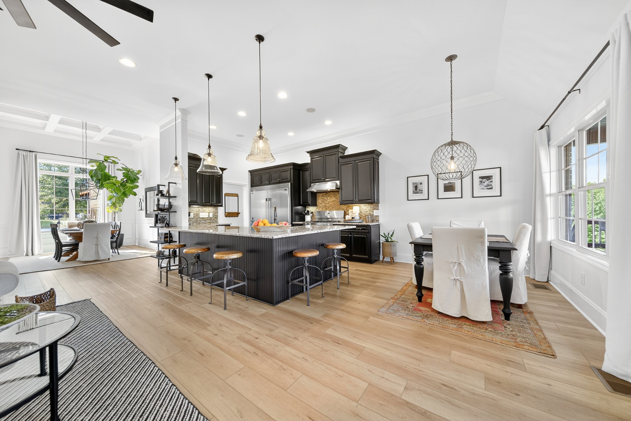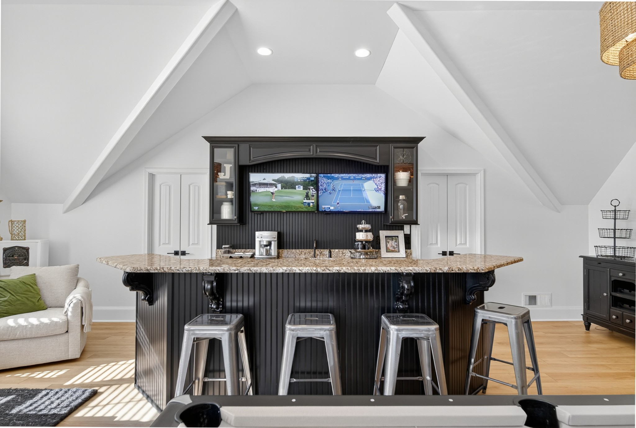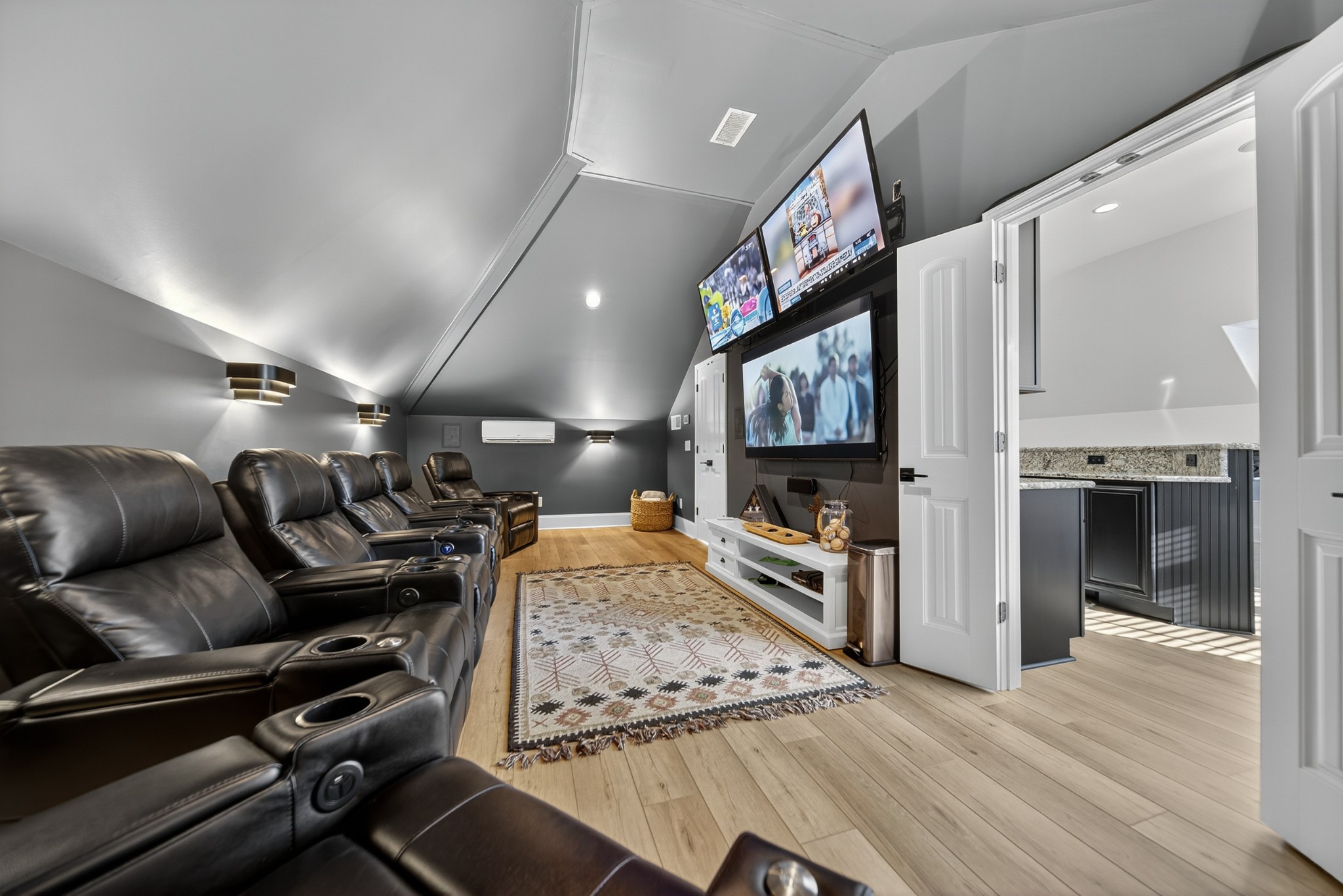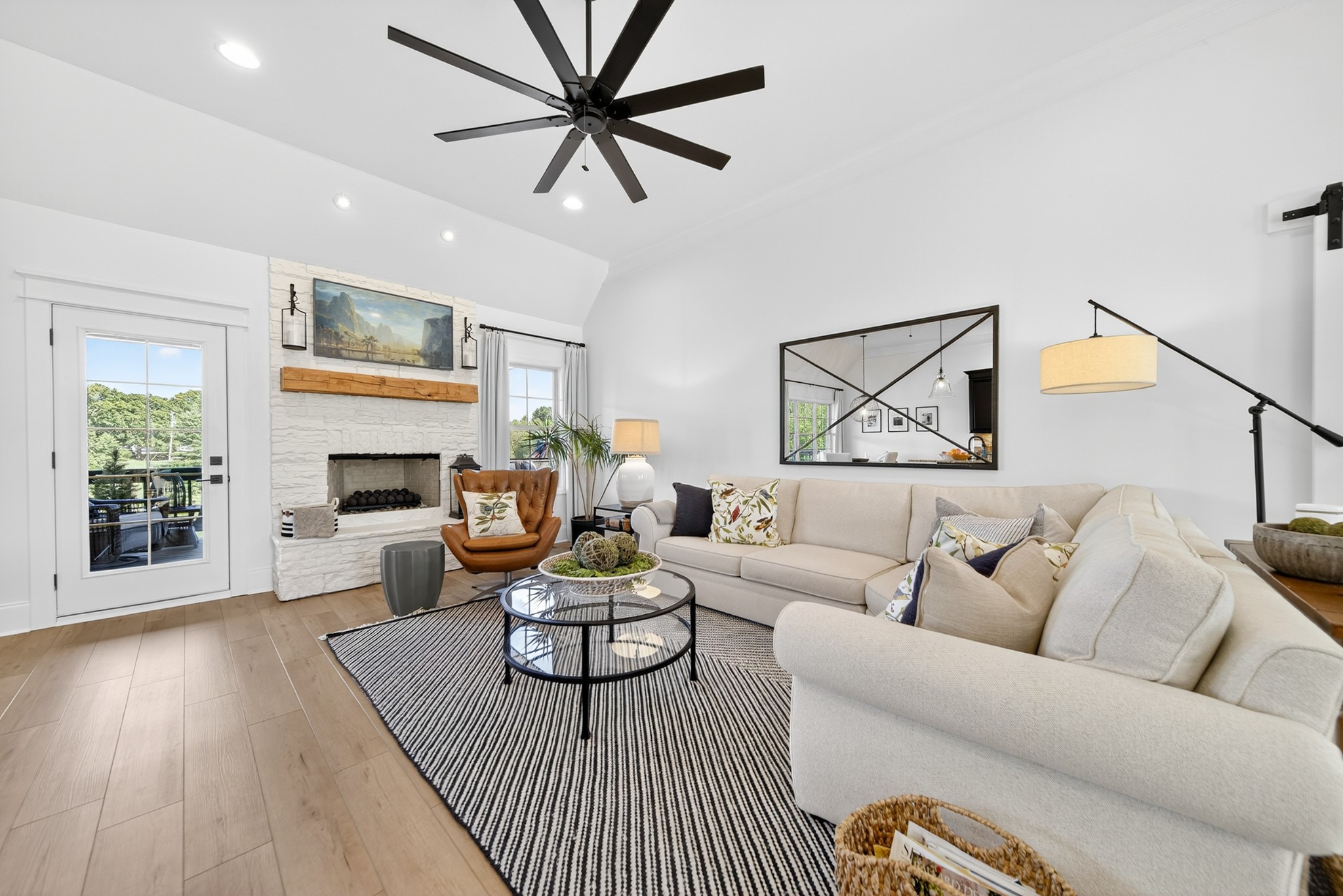 Incredible breathtaking views! Located on a private lake in a gated community, this all brick luxury showplace has an open floor plan, huge gourmet eat-in kitchen, all stainless appliances, large walk-in pantry, formal dining, great rm with fireplace, coffered ceilings, three BR's on the main level, primary suite with massive walk-in closet, separate shower/tub/double vanities and tankless water heater. A 54 ft oversized deck (one half covered) with tv's, expands the length of the home with an equally spacious patio underneath. The rec room upstairs features a full kitchenette/two tv's, wine fridge and bar. Entertainer's dream with Sonos whole house speaker system, pool table (which stays) and a 24x11 media room with surround sound/three tv's. In 2020 sellers installed new roof, new luxury plank flooring throughout, & built the new outdoor patio with natural gas fire-pit. Tons of storage space..possible expansion walk in floored attic with 16 ft. ceilings, walk in crawlspace storage under the deck. Beautiful new landscaping in 2024, fenced back yard backing up to the walking trail that circles the lake. Three car immaculate garage features an EV charger! Just minutes from schools, shopping/dining, marinas and Old Hickory Lake! This house is even more stunning in person!