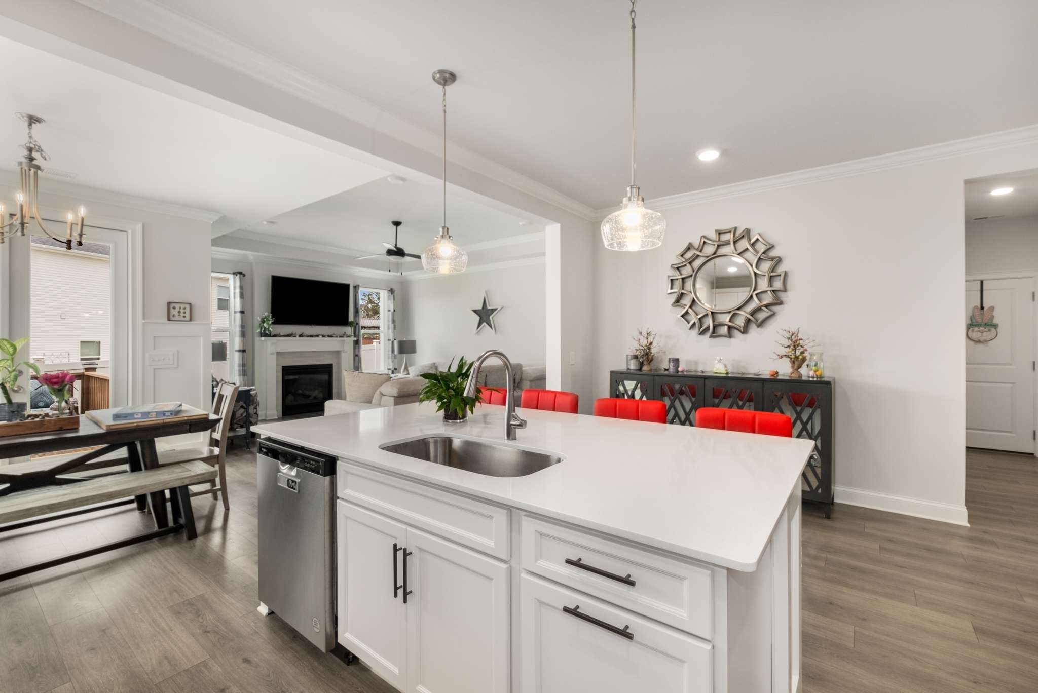THOUSANDS IN INSTANT EQUITY AVAILABLE! Welcome to this like-new, beautifully maintained not quite 2-year-old home in the desirable Oak Meadows community of Smyrna! This stunning residence offers an open-concept layout with a warm and inviting living room centered around a striking gas fireplace- perfect for cozy evenings and entertaining guests. The chef’s kitchen is a dream, featuring a spacious island with seating, sleek quartz countertops, a stylish tile backsplash, gas cooktop, built-in oven, and a generous pantry. Just off the kitchen, enjoy a bright and sunny dining area with direct access to a covered back patio- ideal for indoor-outdoor living. The main level includes a luxurious primary suite with a large walk-in tile shower, double vanity, and a walk-in closet. A second bedroom and full bath on the first floor provide a perfect retreat for guests or in-laws. Upstairs, you’ll find a versatile bonus room- ideal for a media room, playroom, or home office- plus walk-in attic storage for all your extras. Outside, enjoy both a covered porch and a custom wood deck addition overlooking the fully fenced backyard. With easy access to I-24 and just minutes from schools, parks, shopping, dining, Nissan, and more, this home offers the perfect blend of comfort, style, and convenience. Take a private tour today!