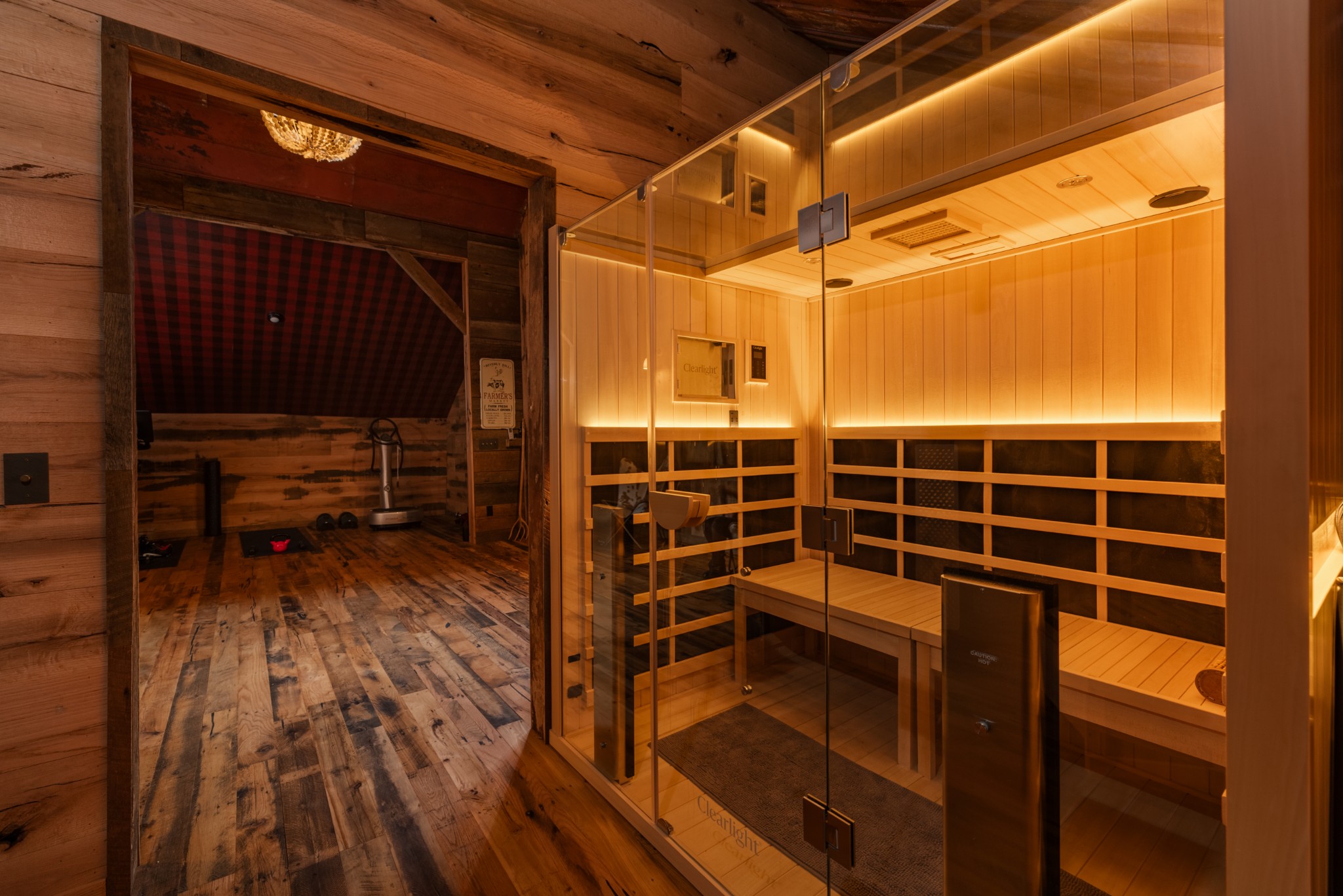 Adding to its allure, the original 560 square foot barn has been reimagined into a wellness space, featuring a 3-person Clearlight infrared sauna.