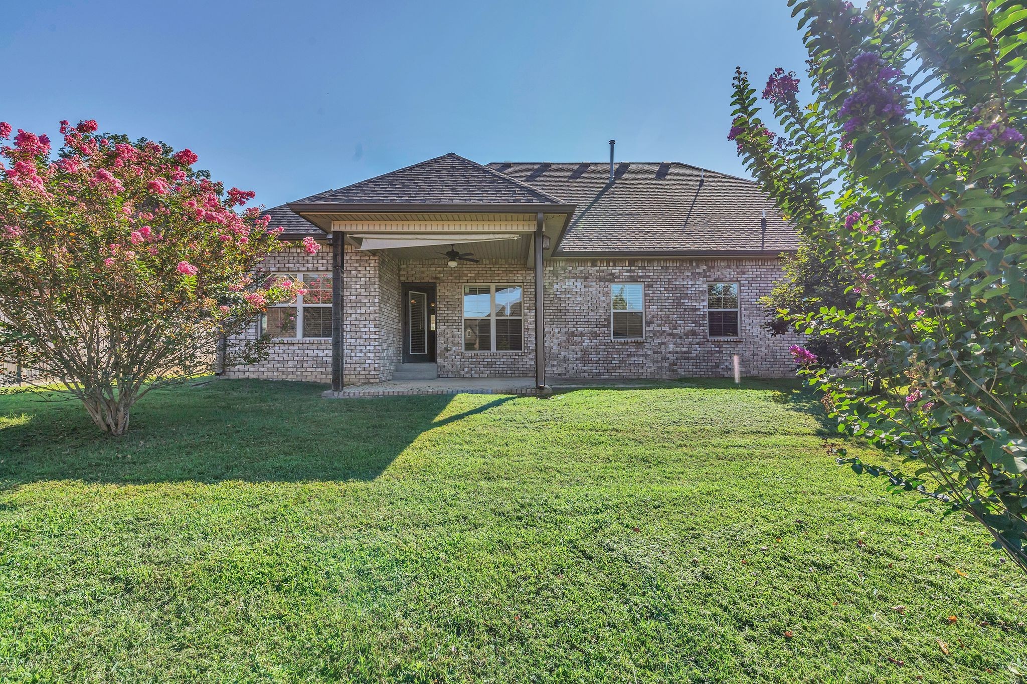 Like NEW one owner all-brick, non smoking, no pet home, located on a quiet cul-de-sac. Includes 4 bedrooms and 3 full baths. Includes smooth top stainless steel stove, dishwasher, built in microwave, custom cabinets, marble counters, wainscoting in the eat-in area, and a separate pantry for extra storage. The living space features a ceiling fan with vaulted ceiling and a gas fireplace. The primary suite offers a tray ceiling with fan, ceramic tile shower, garden tub, and dual sinks. Additional highlights include ceiling fans, a covered patio, and a private fenced backyard complete with fruit trees. A driveway pull-off adds extra parking convenience. Situated close to Stonecrest Hospital, Publix, Kroger, and Home Depot, this home provides easy access to shopping, dining, schools, and medical services while still offering the peace of a cul-de-sac setting. See walk through video of home under media section in Realtracs.