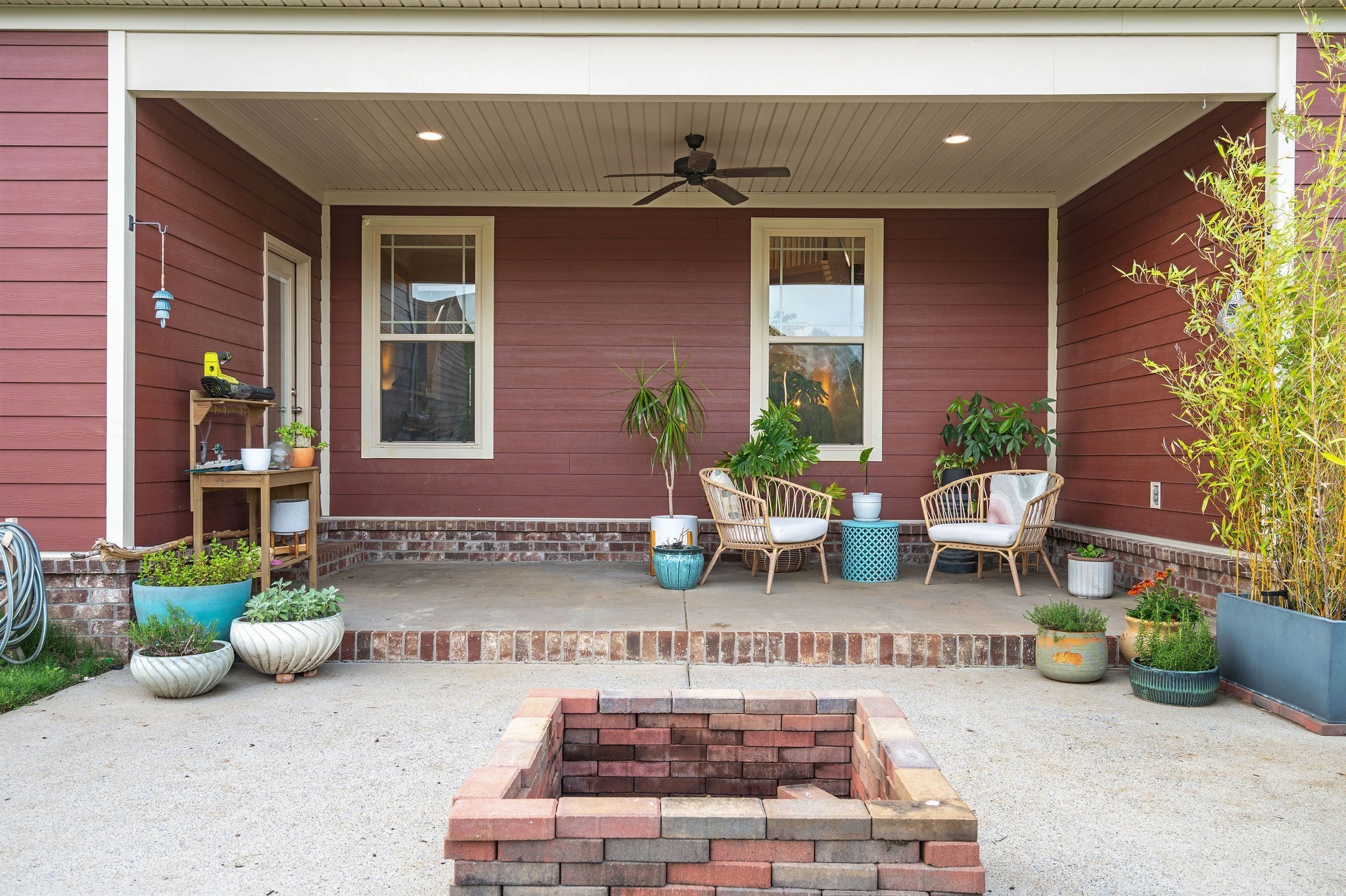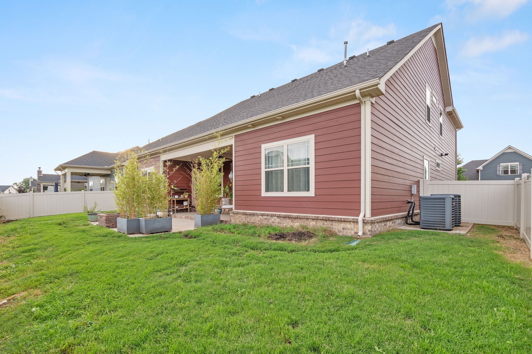 Enjoy the outdoors in your covered back porch overlooking a vinyl privacy-fenced backyard. The fence lines end due to an easement, but the yard extends beyond, offering even more space for outdoor fun. The driveway extension is ideal when you have guests come to visit!