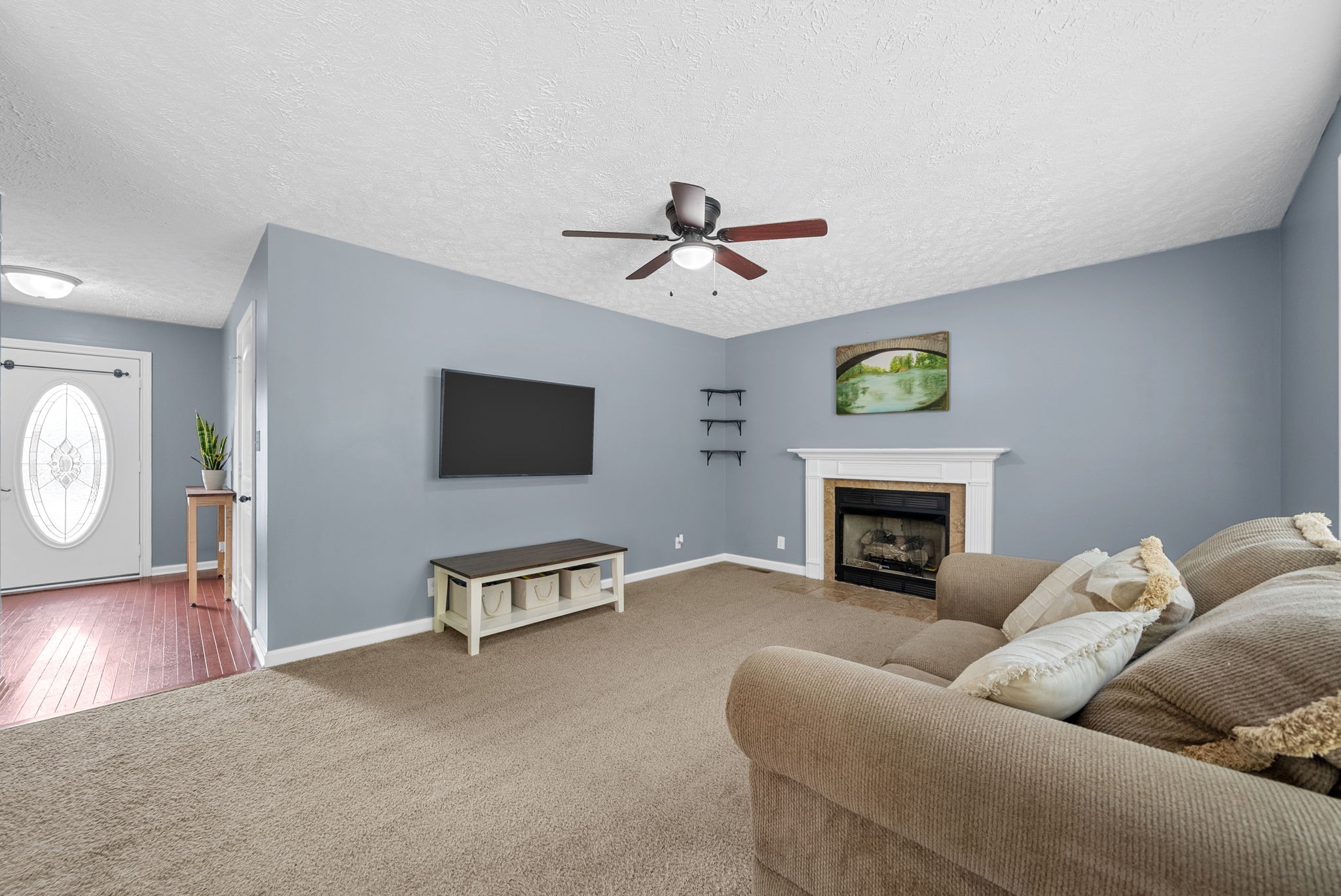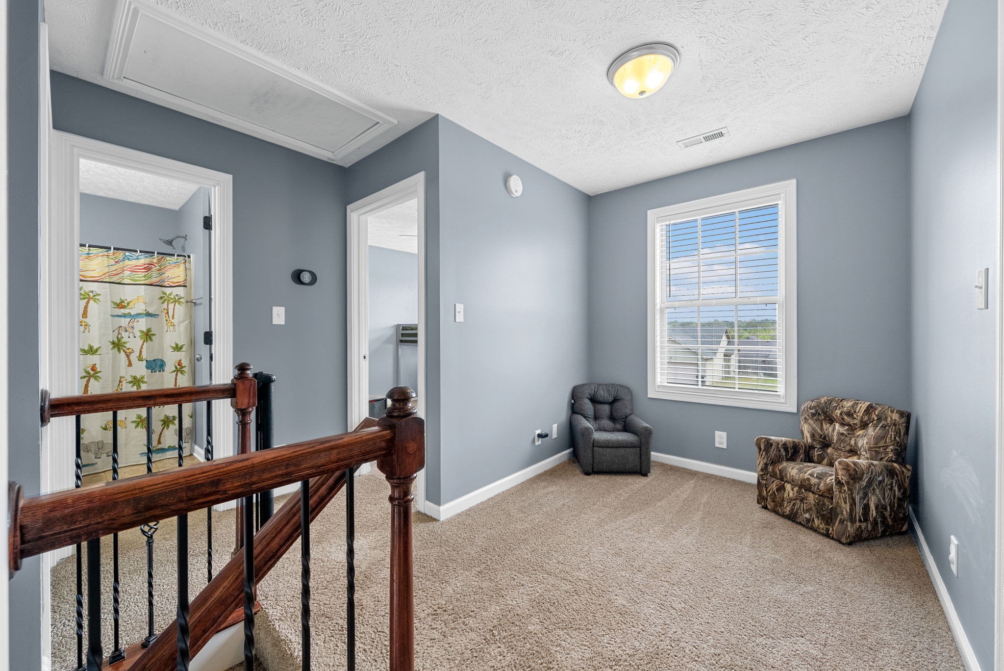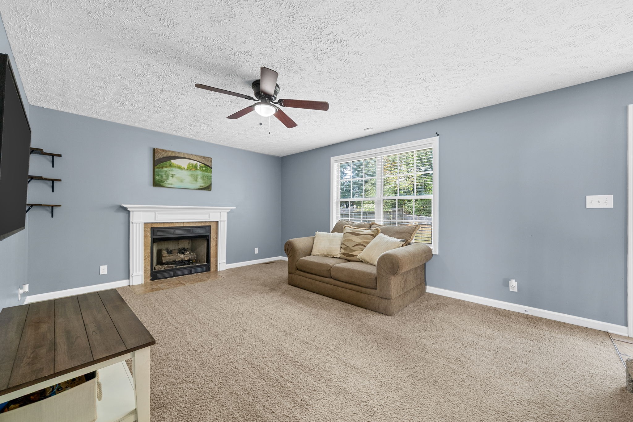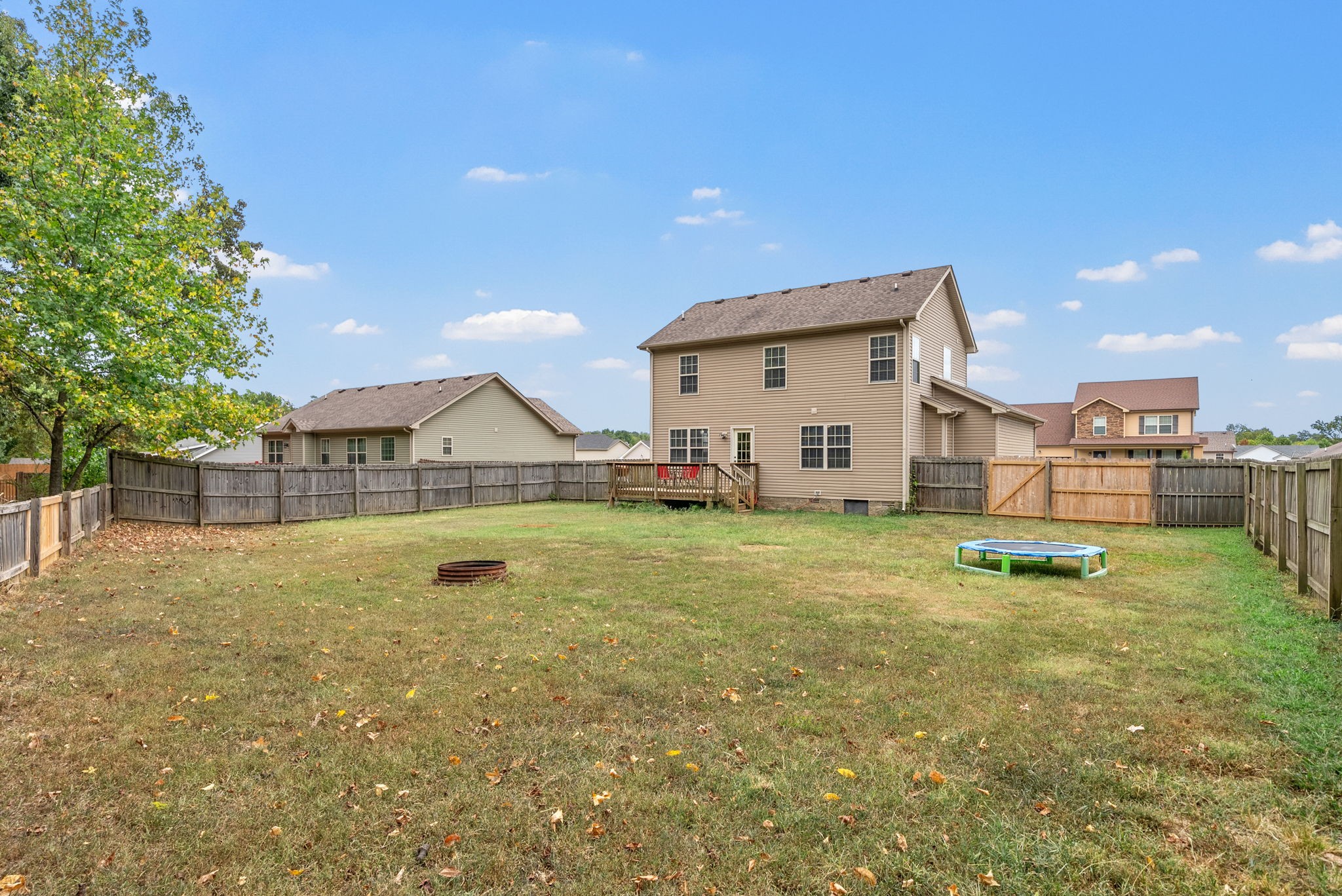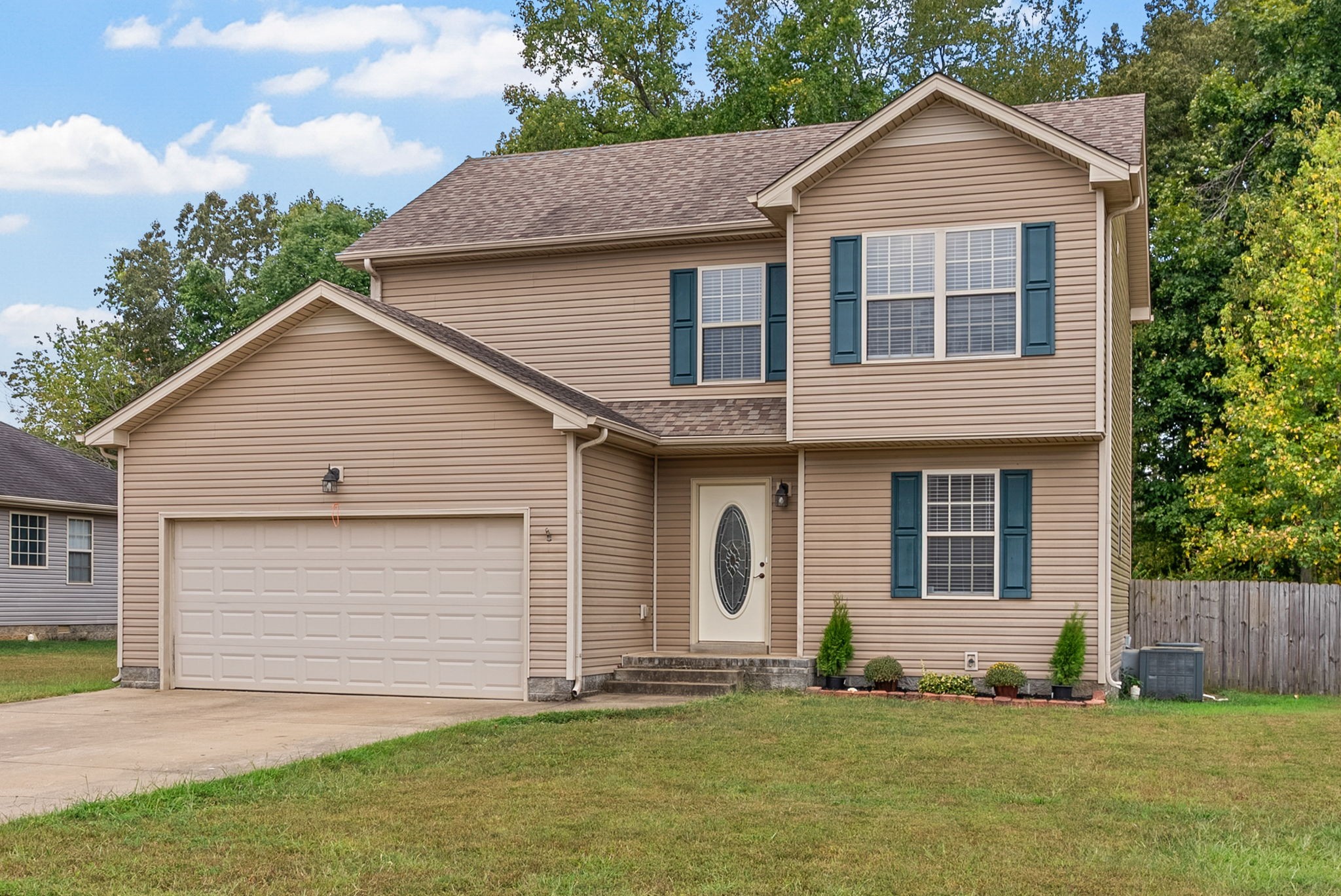 Welcome to this beautiful two story home with a large living room and a cozy fireplace. This home has everything you need including a half bath downstairs. Step upstairs to the landing that can be used as a kids play area or an office space. Other features include tile in all the wet areas, hardwood floors downstairs, spacious main bedroom with a trey ceiling and an attached bathroom with a separate shower and tub, two additional guest bedrooms upstairs & a guest bathroom. New dishwasher, Freshly painted. A large backyard and a privacy fence, nestled along the tree line. Don't miss out on this well maintained home.