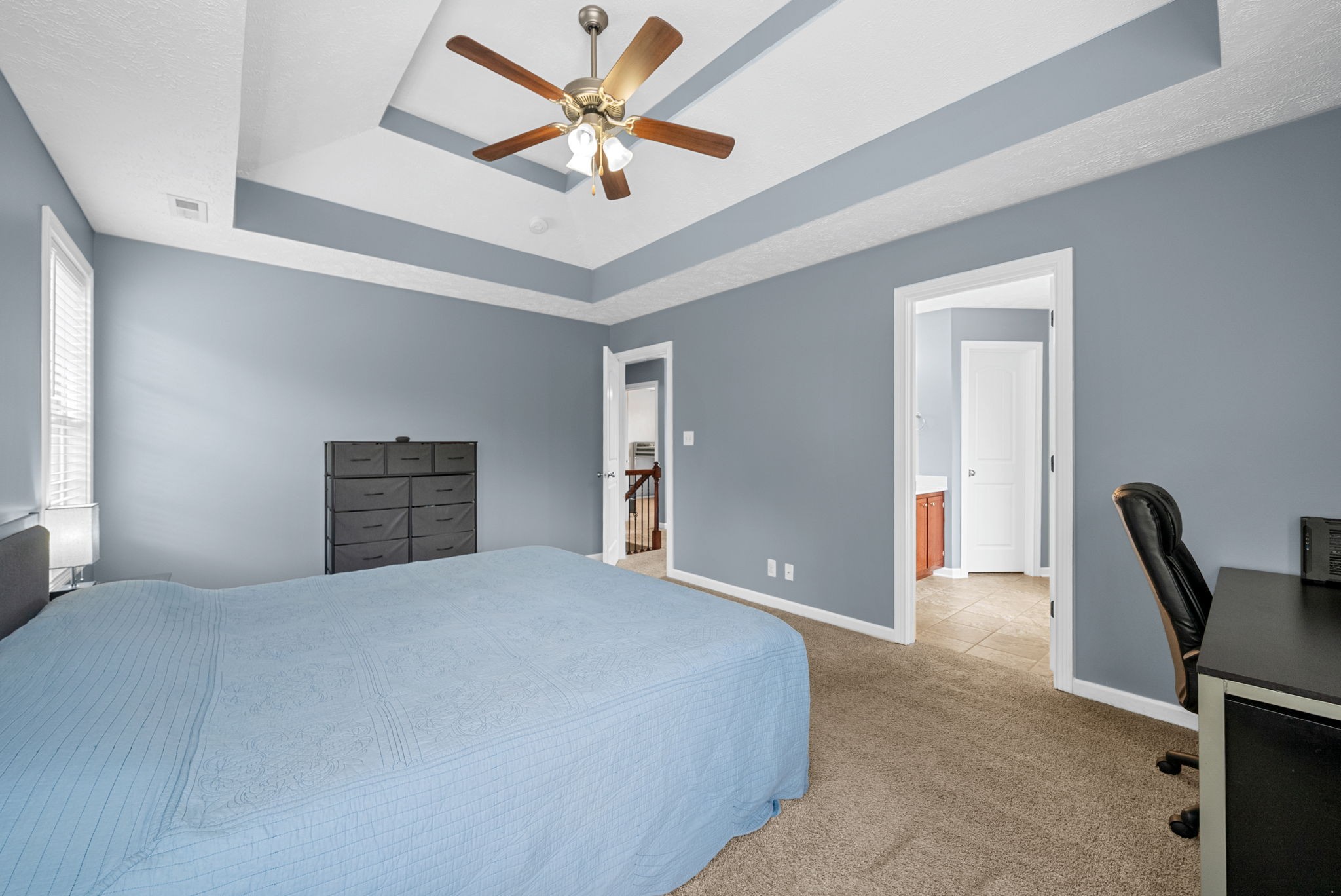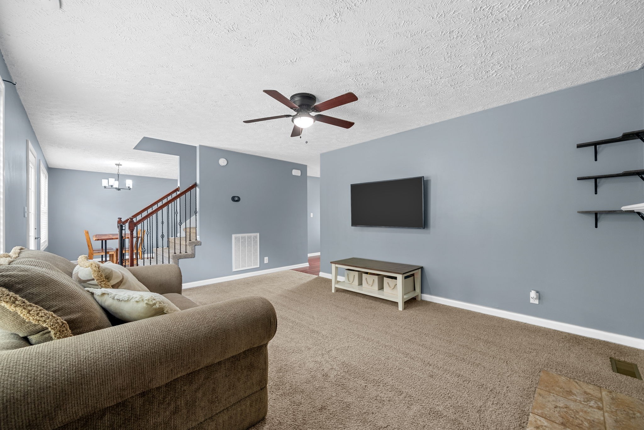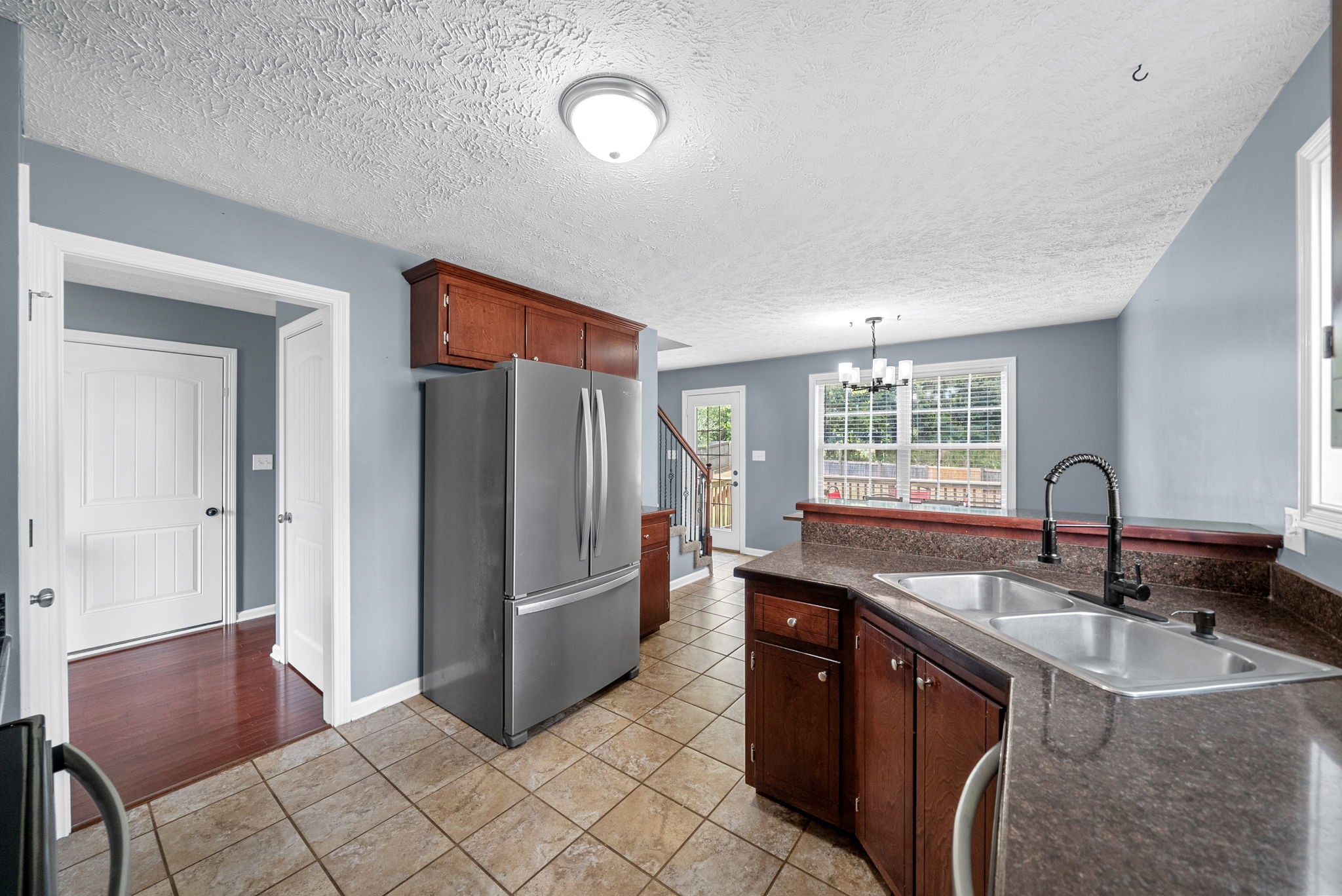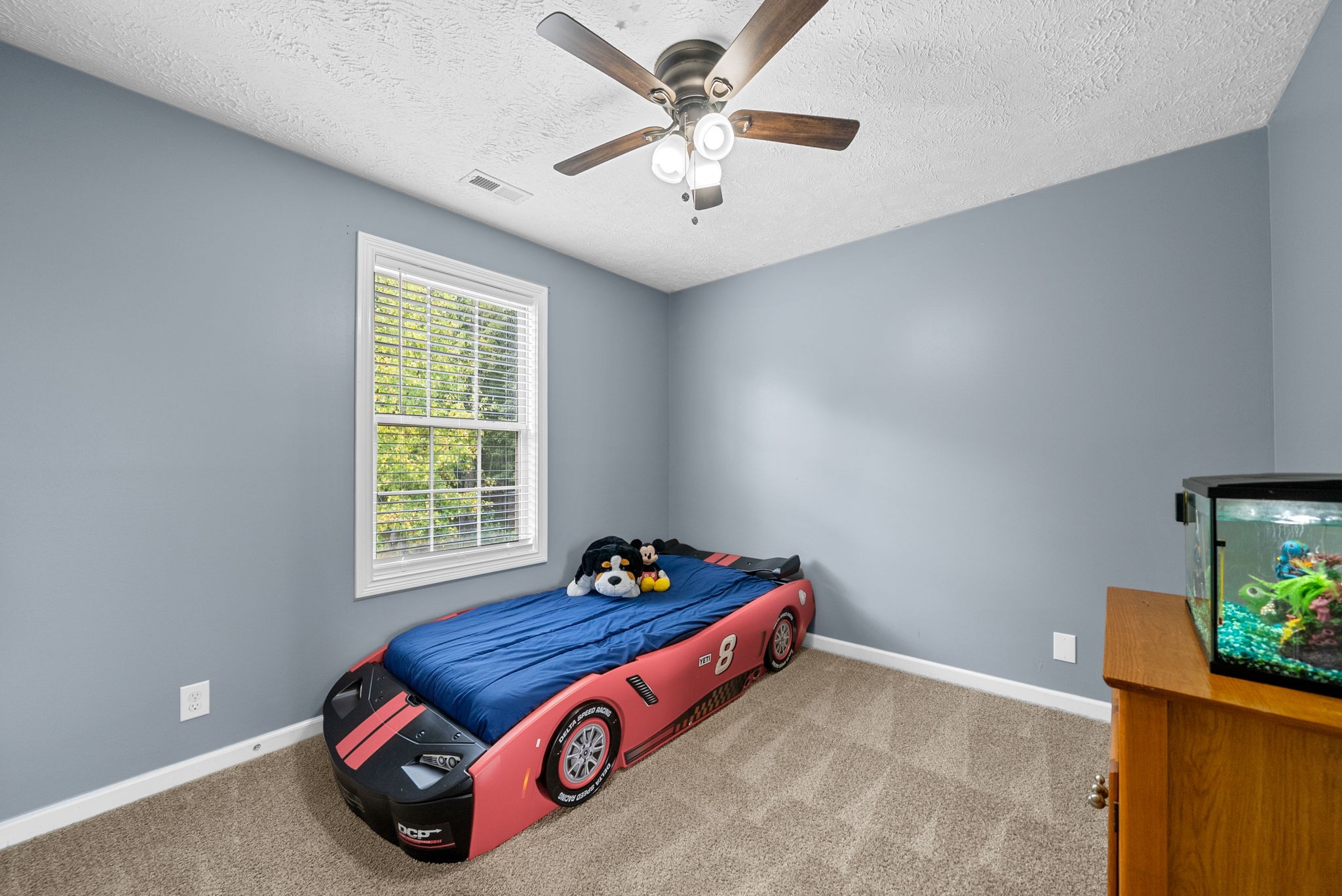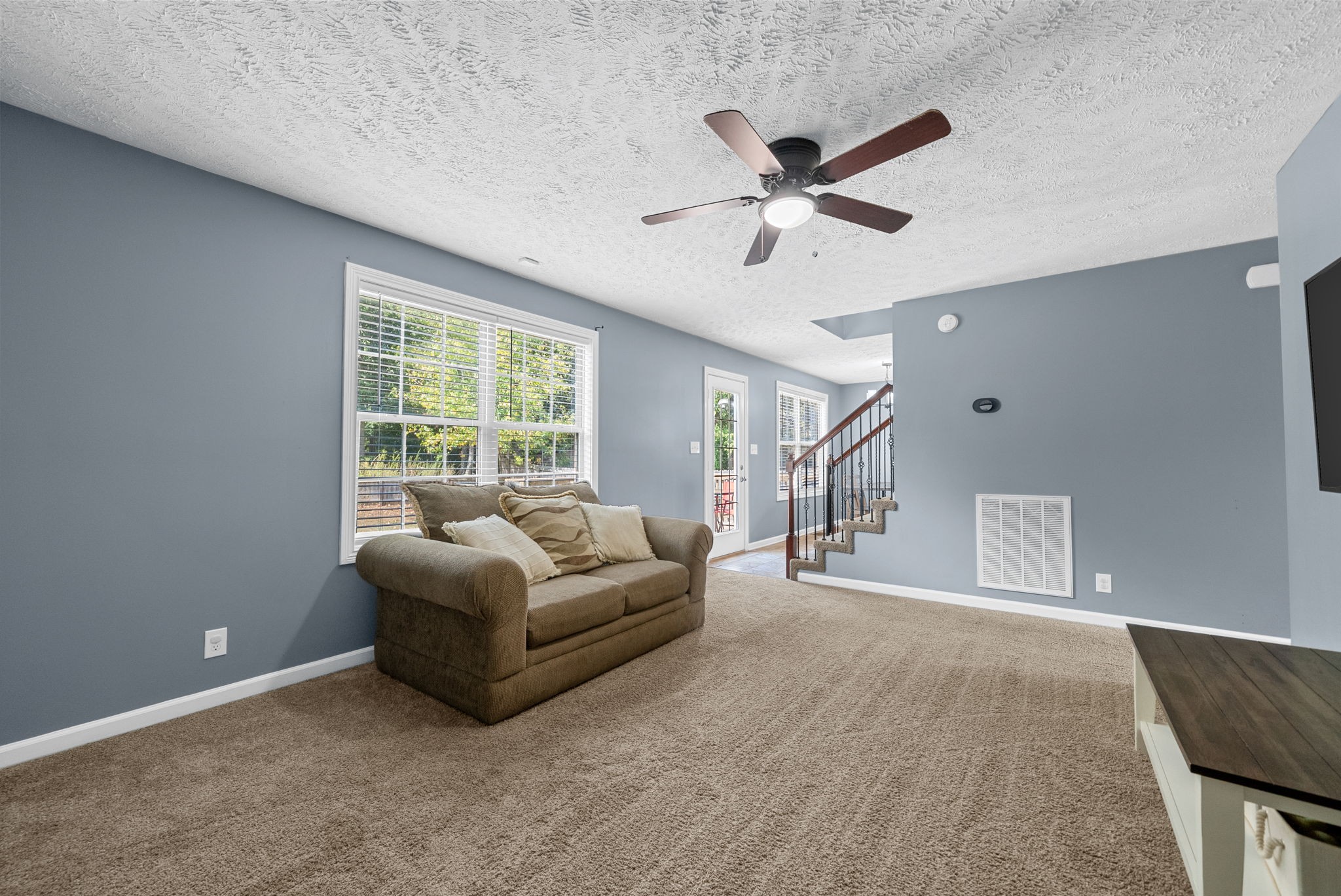 Welcome to this beautiful two story home with a large living room and a cozy fireplace. This home has everything you need including a half bath downstairs. Step upstairs to the landing that can be used as a kids play area or an office space. Other features include tile in all the wet areas, hardwood floors downstairs, spacious main bedroom with a trey ceiling and an attached bathroom with a separate shower and tub, two additional guest bedrooms upstairs & a guest bathroom. New dishwasher, Freshly painted. A large backyard and a privacy fence, nestled along the tree line. Don't miss out on this well maintained home.