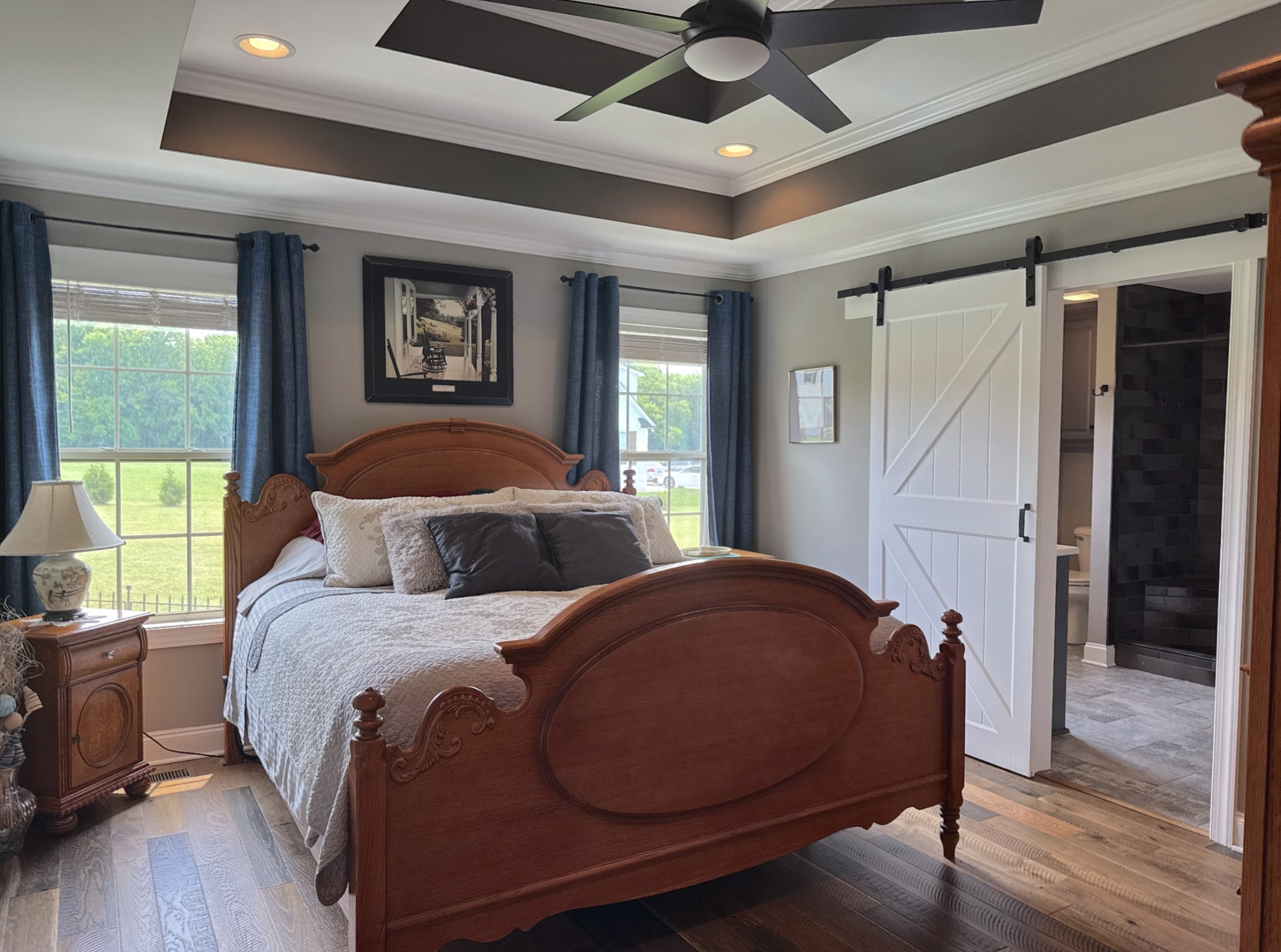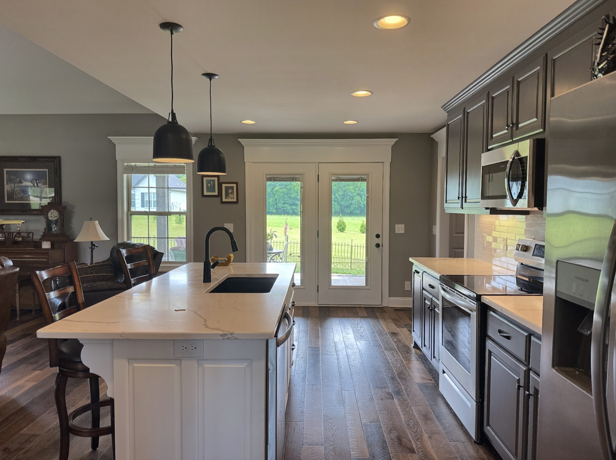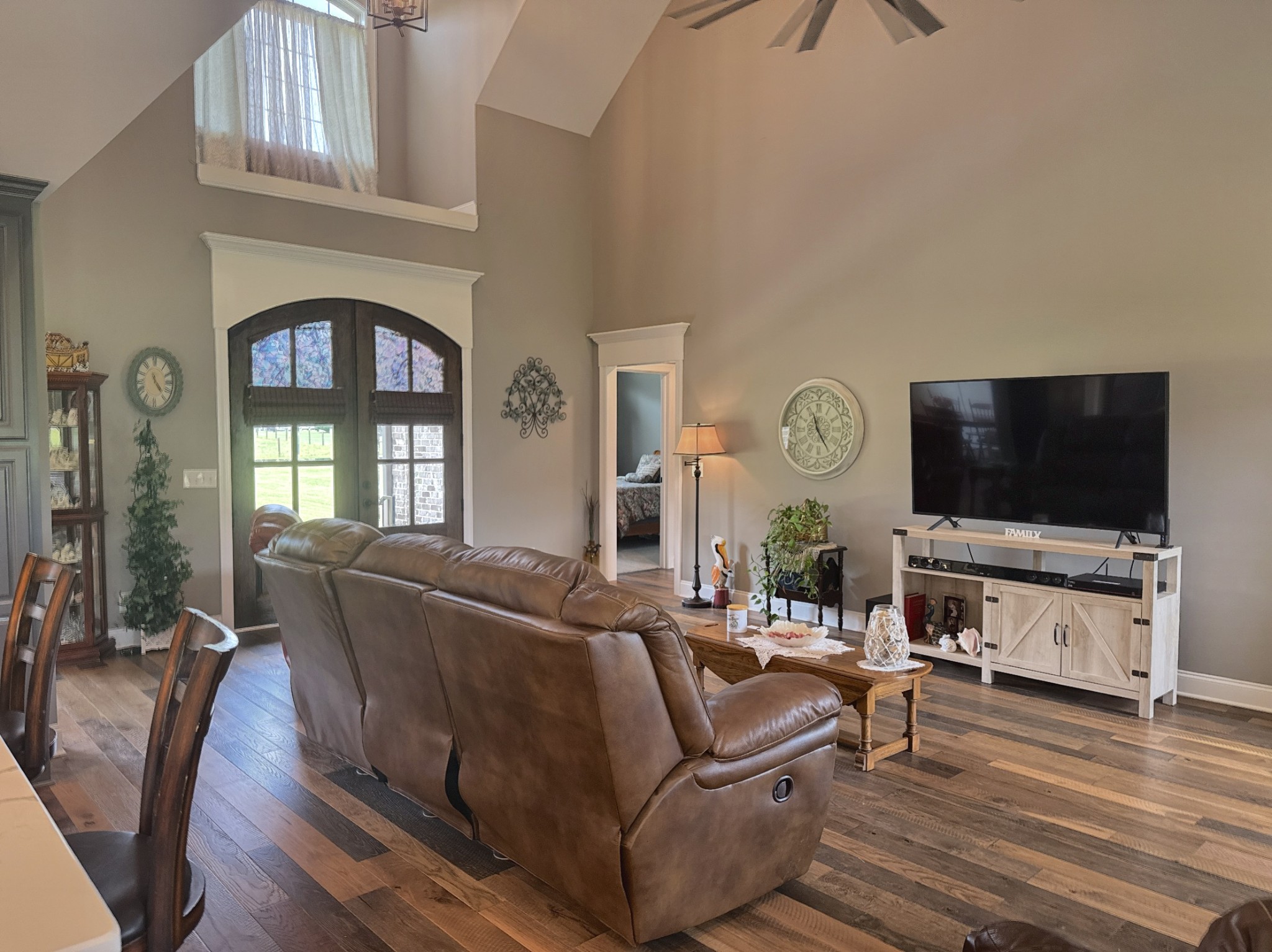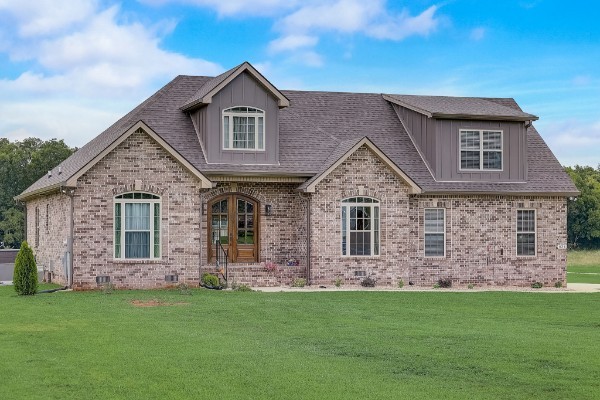 Seize a fantastic opportunity with this Shelbyville gem, nestled on a generous 1.01-acre lot. Inside, an open floor plan welcomes you, beginning with beautiful arched front doors. The heart of the home is a spacious family room, grand with its vaulted ceilings and exquisite ornate window moldings. Meal prep is a joy in the kitchen, which offers a functional center island and modern stainless appliances. The serene owner's suite on the lower level is a true retreat, boasting elegant double trey ceilings and a luxurious bathroom equipped with dual vanities and a refreshing walk-in shower.