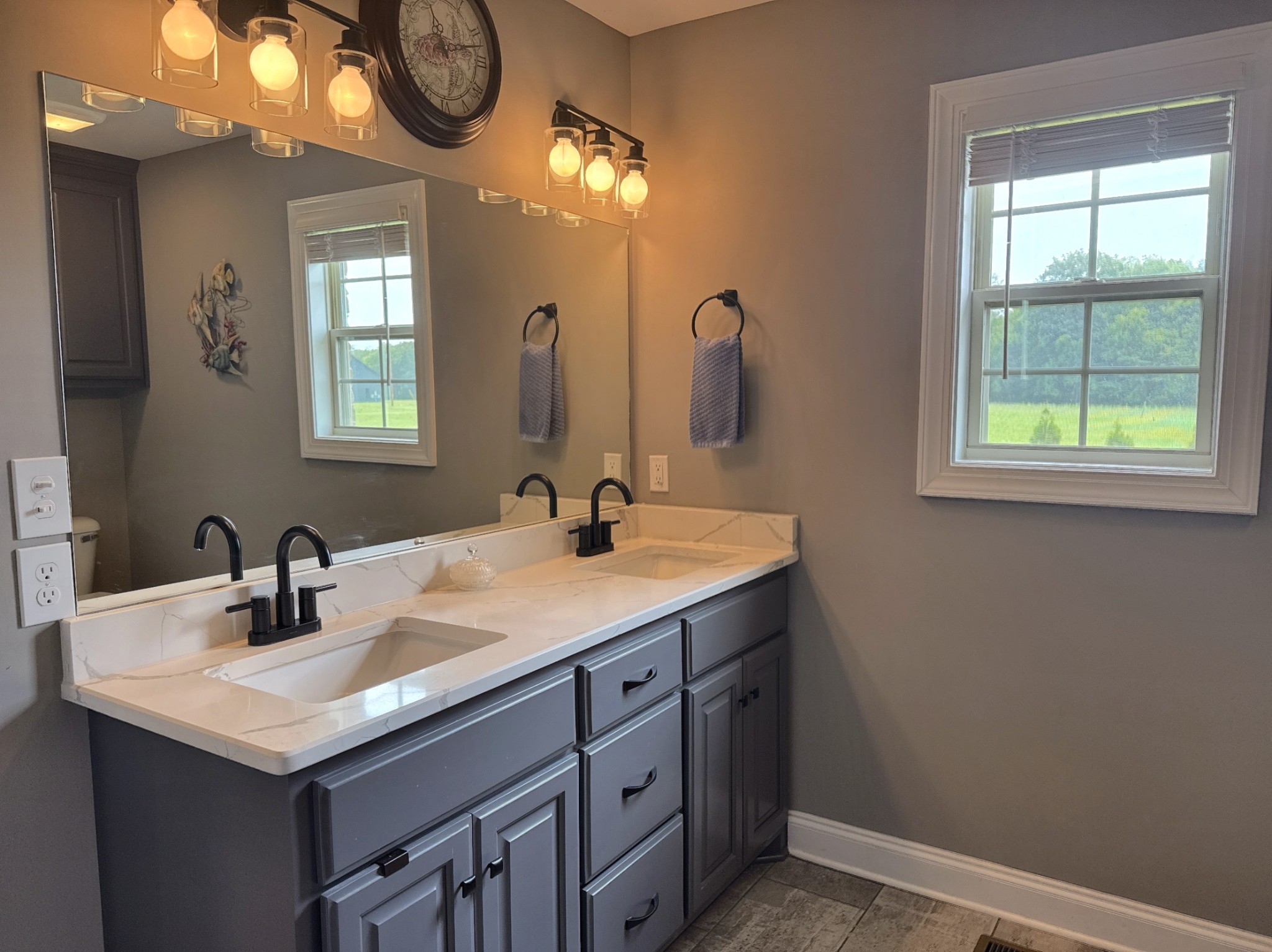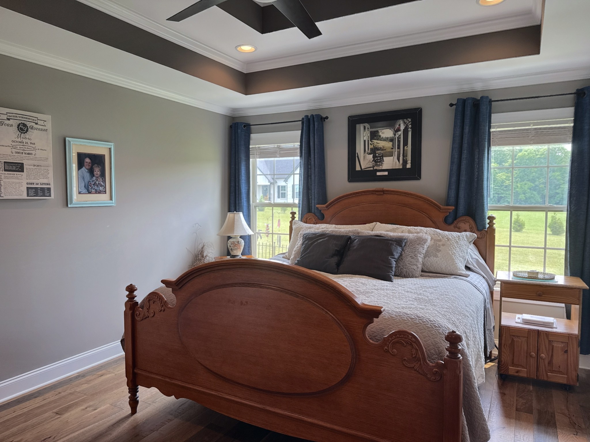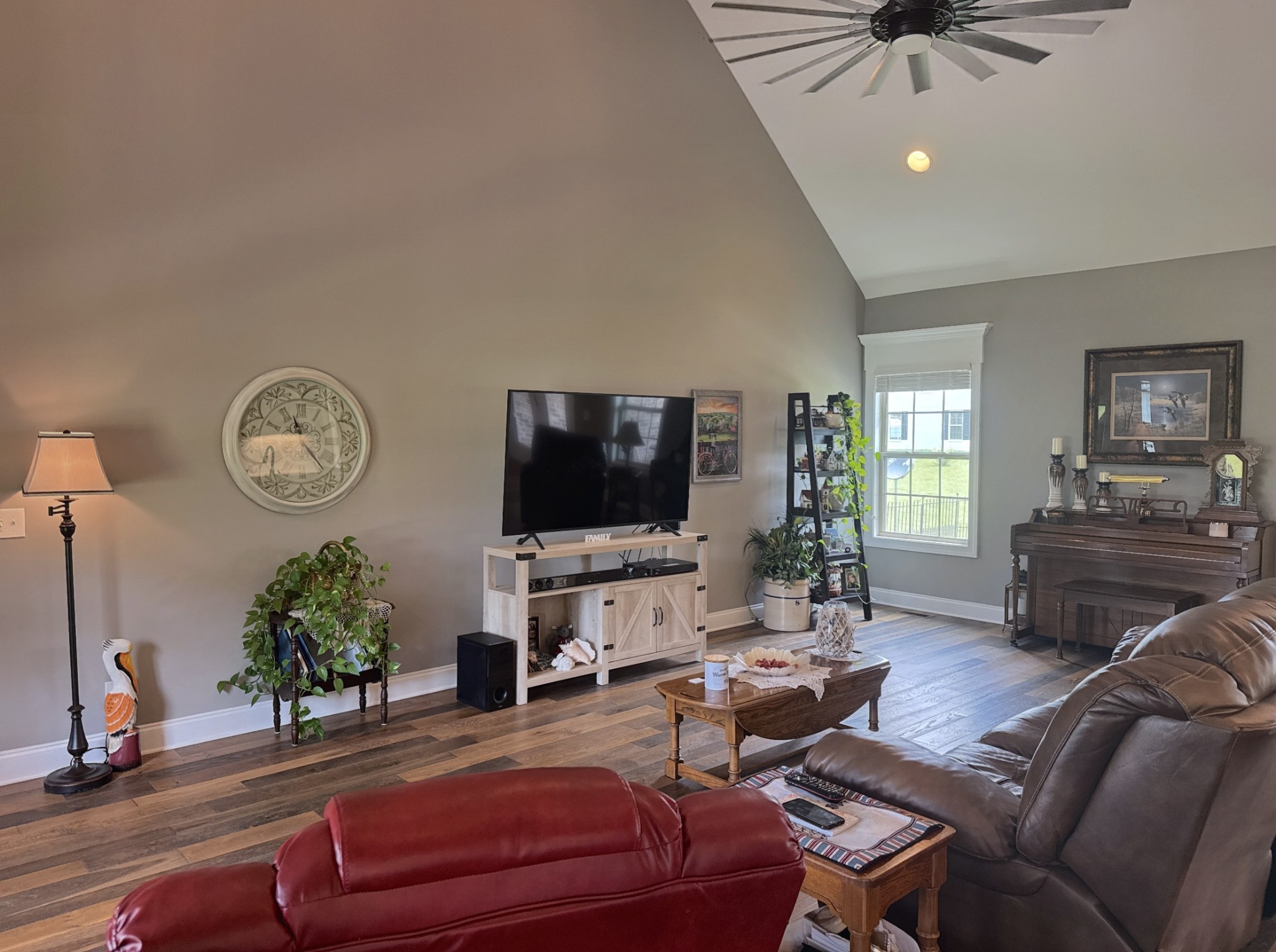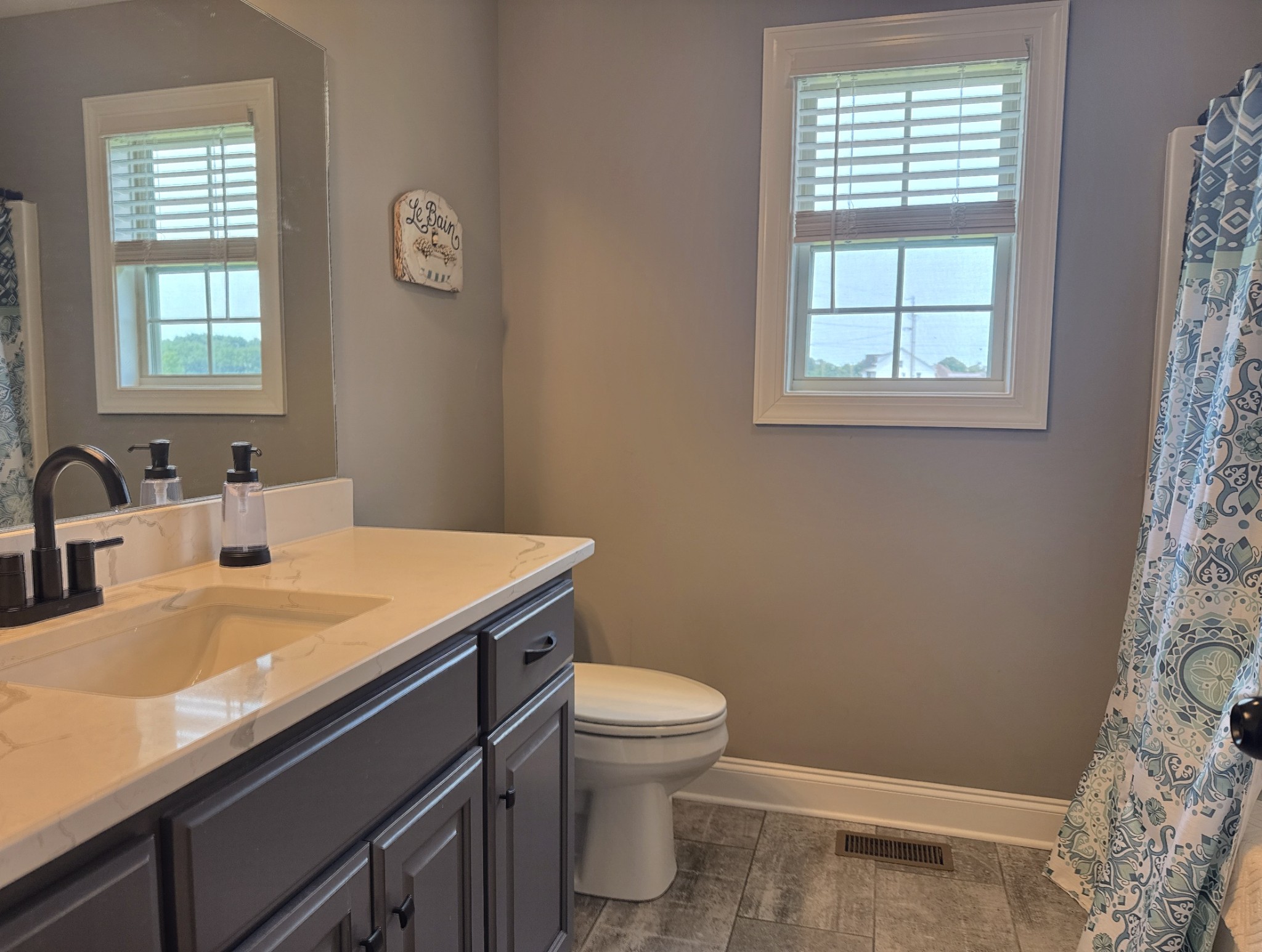 Seize a fantastic opportunity with this Shelbyville gem, nestled on a generous 1.01-acre lot. Inside, an open floor plan welcomes you, beginning with beautiful arched front doors. The heart of the home is a spacious family room, grand with its vaulted ceilings and exquisite ornate window moldings. Meal prep is a joy in the kitchen, which offers a functional center island and modern stainless appliances. The serene owner's suite on the lower level is a true retreat, boasting elegant double trey ceilings and a luxurious bathroom equipped with dual vanities and a refreshing walk-in shower.