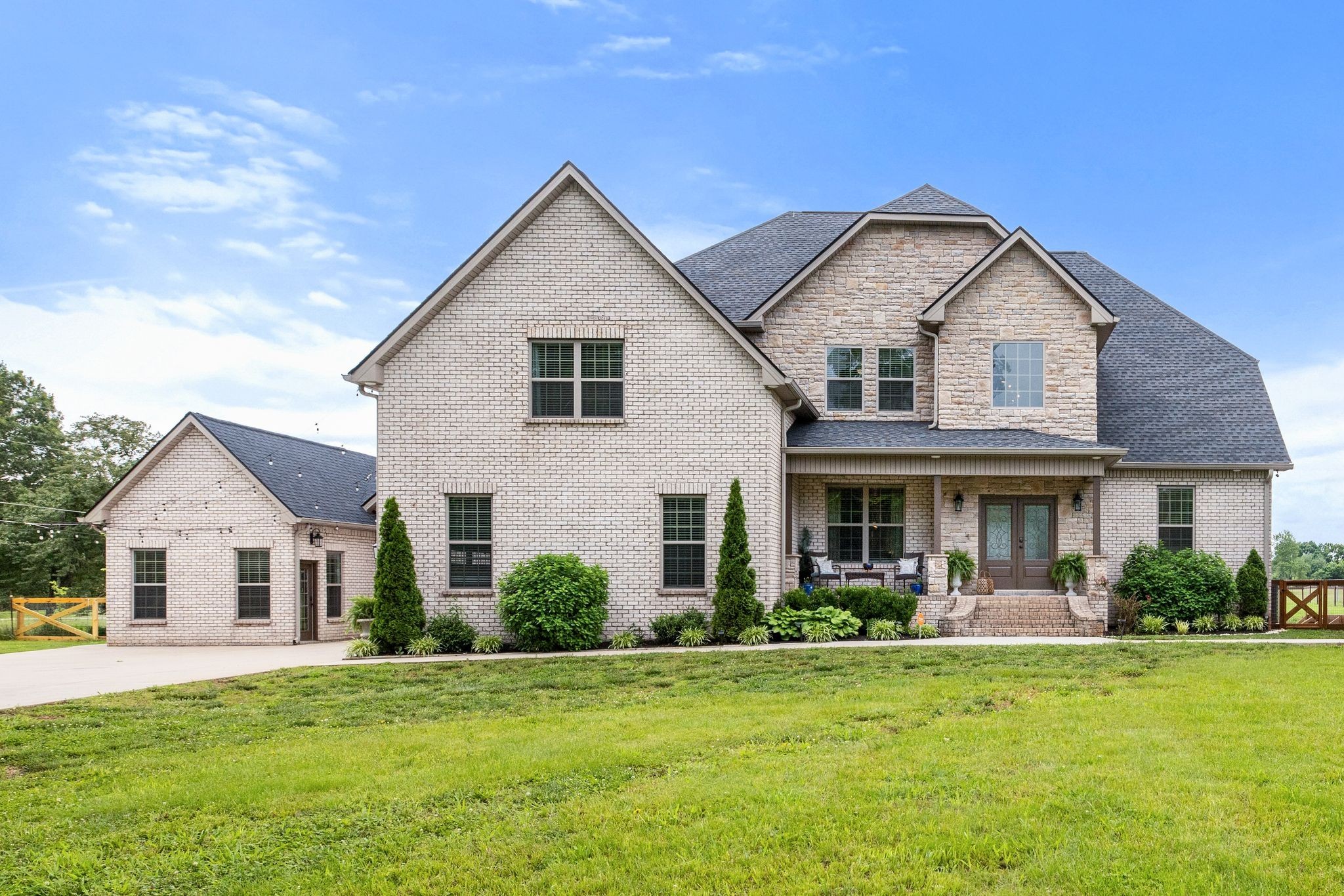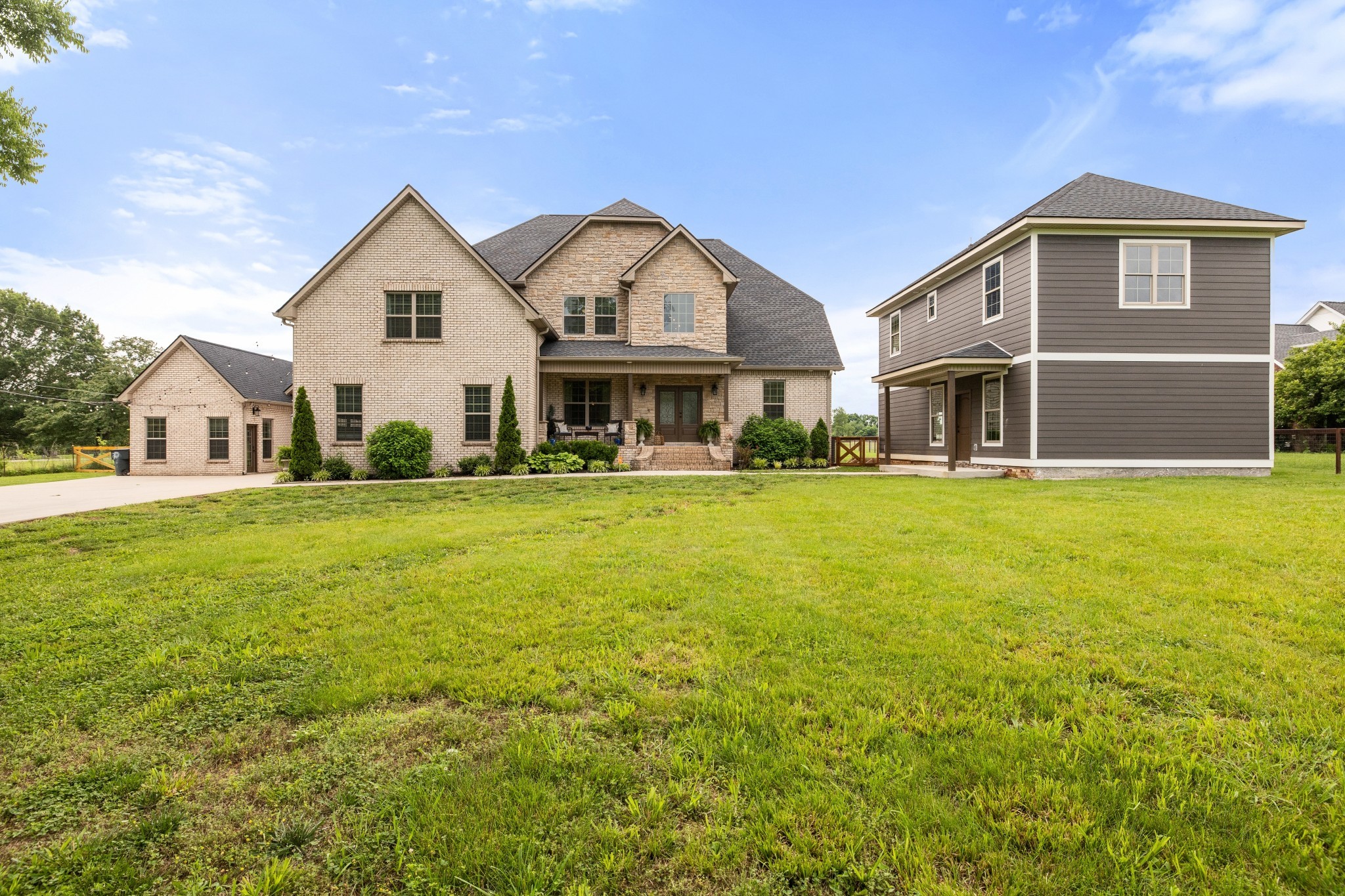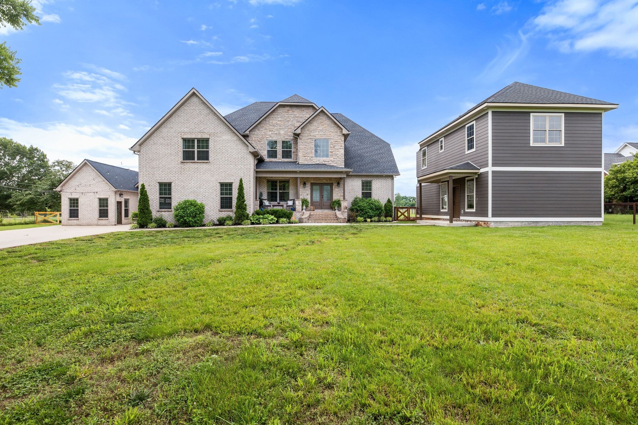 Welcome to your own private retreat in the heart of Murfreesboro! *NO HOA* Built in 2021, this beautiful high-quality custom-built home with luxury upgrades throughout, offers a rare blend of space, style, and serenity. With soaring ceilings, rich hardwood floors, and a seamless open-concept layout, every detail has been thoughtfully curated to impress. The chef’s kitchen features granite countertops, stainless steel appliances, and a generous island—perfect for entertaining. The spacious primary suite is a true haven with a spa-like bath and oversized walk-in closet. You'll also find generous secondary bedrooms, 2 flex rooms that can be used for additional bedrooms or offices, flexible bonus spaces, and a fully equipped detached home gym—no membership required! Outside, the property includes a versatile outbuilding ideal for storage, a workshop, or future projects. There is a secondary building on the lot with an additional 1462 sq.ft. of flexible multi-use space. Enjoy the backyard oasis with a covered patio and fully fenced yard—perfect for both relaxing and entertaining. Conveniently located near shopping, dining, and top-rated schools, this 2021 gem is the perfect blend of luxury and practicality. Don’t miss it—schedule your showing today