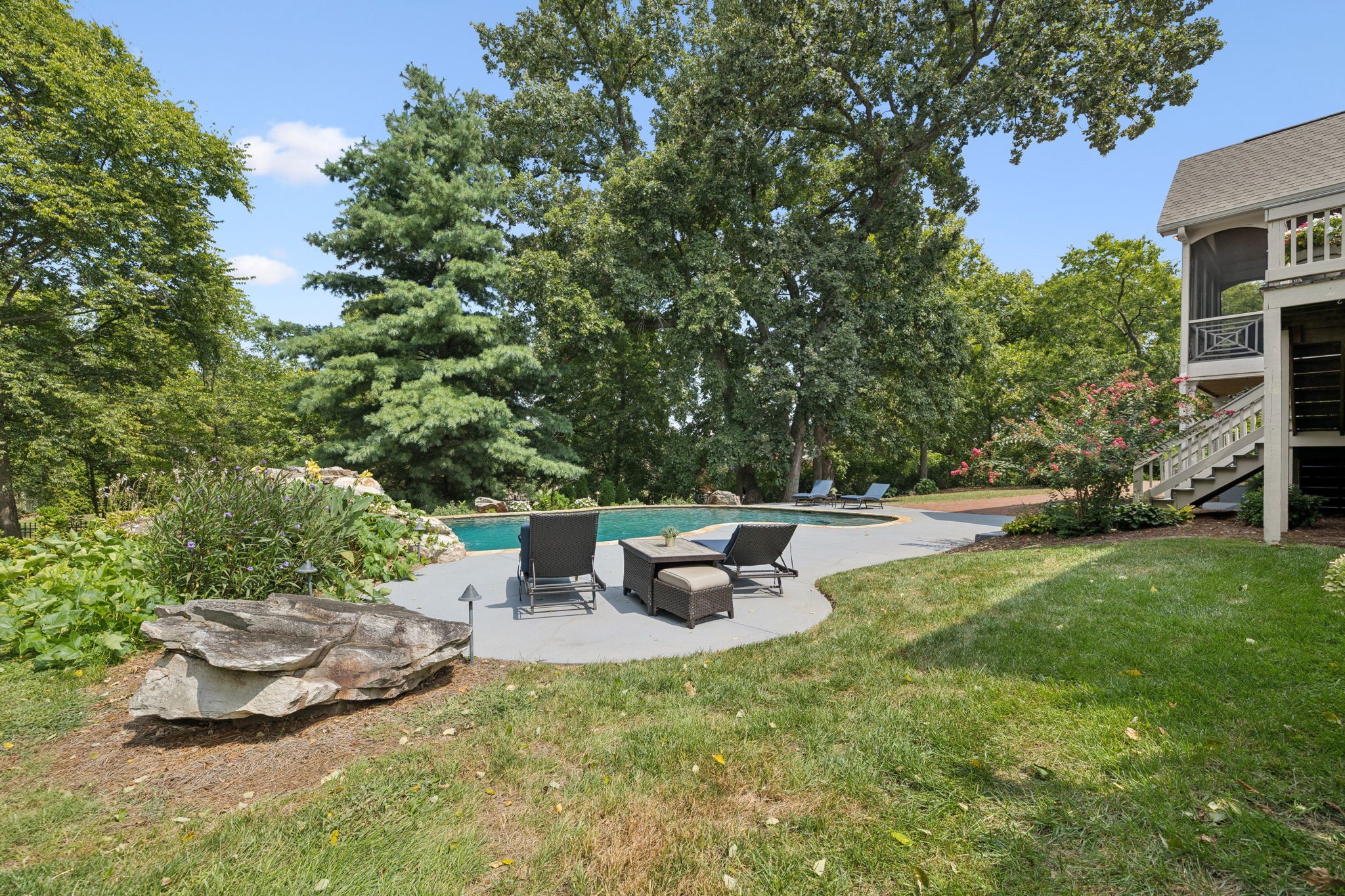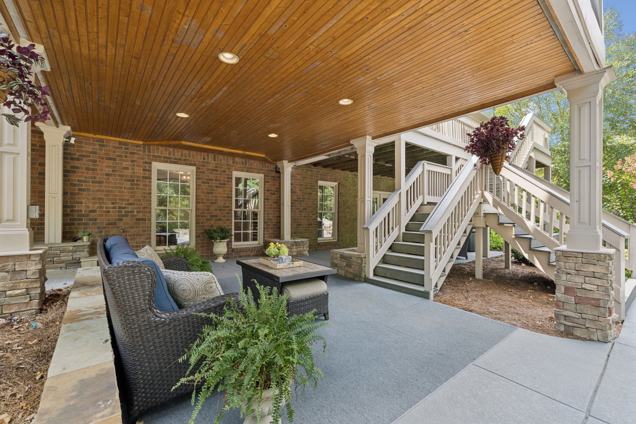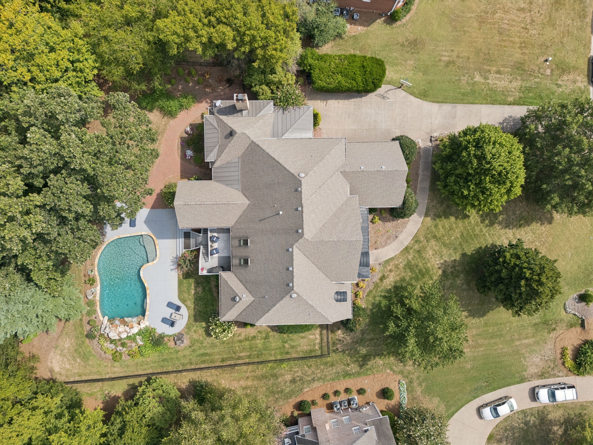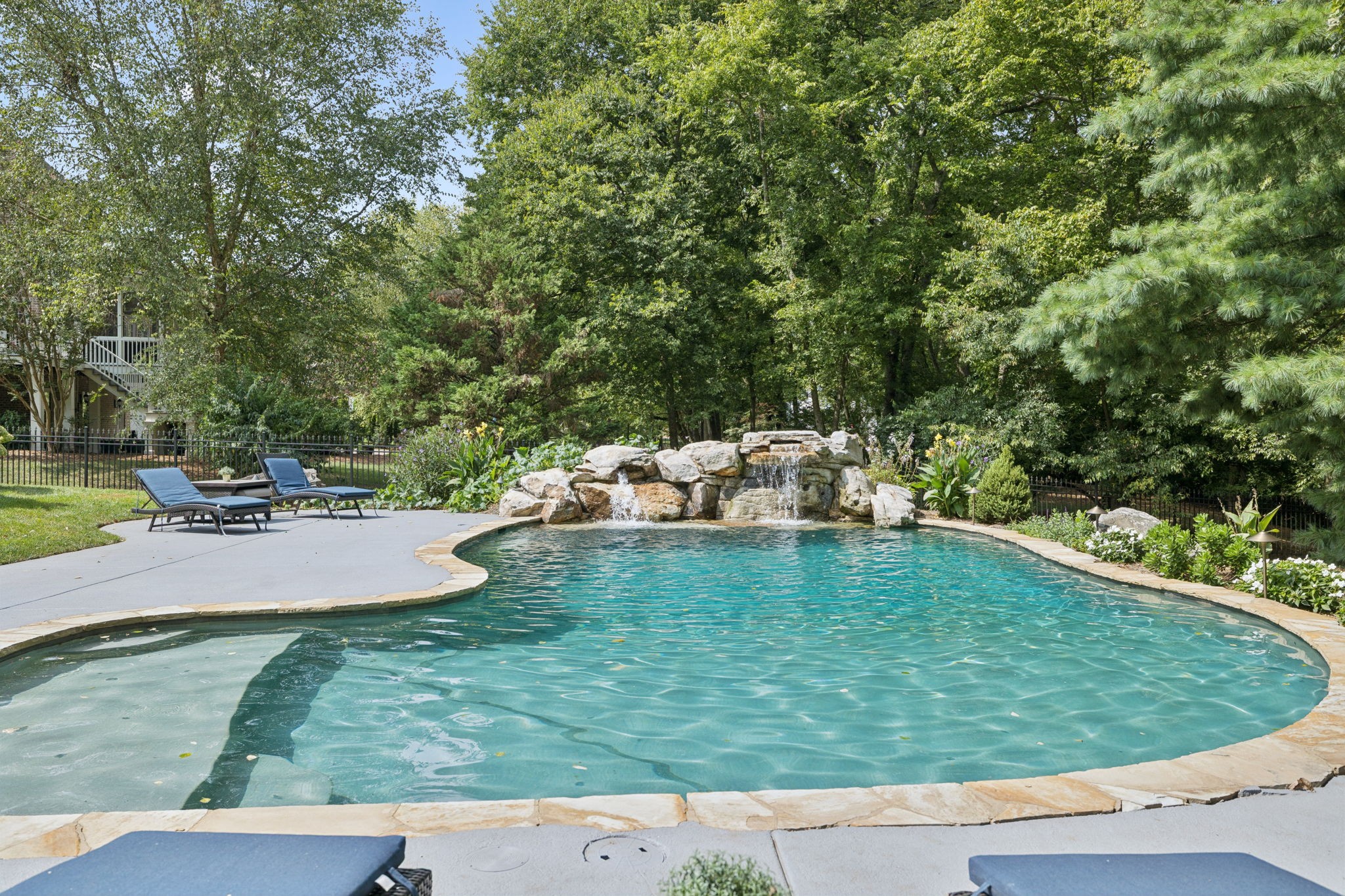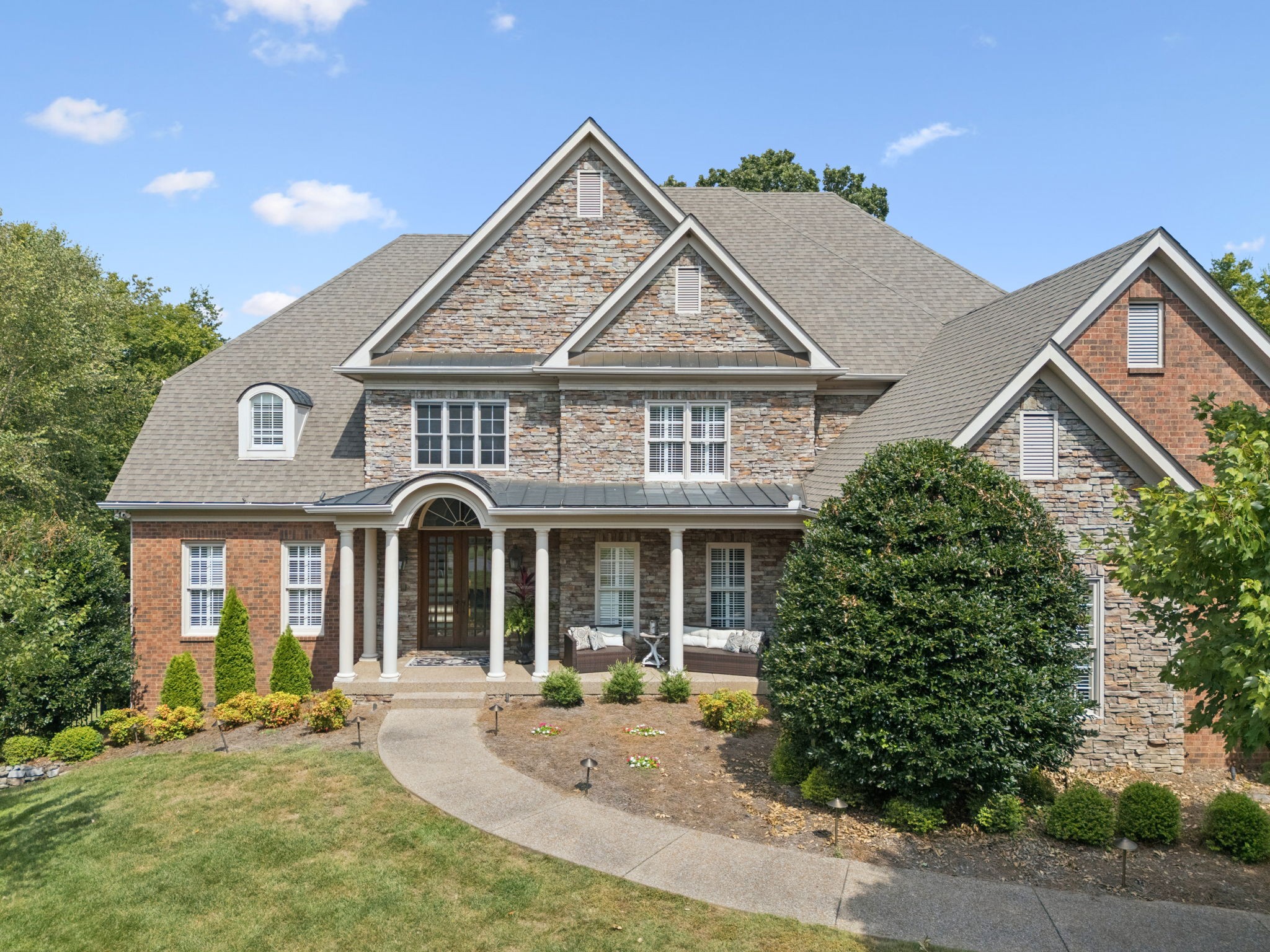 Parkside at Brenthaven stunner with a resort-style backyard—stone-waterfall pool, vaulted screened porch, and private fenced backyard. Inside, 5 beds/4.5 baths and 8,081 SF on 0.79 acres. Main-level primary suite; kitchen opens to a coffered-ceiling family room with stone fireplace; separate vaulted living room with second fireplace. Fully finished walk-out basement with rec/game rooms, exercise room, kitchenette, and an ideal in-law/teen suite. 3-car garage, whole-house audio, and tankless water heater. Minutes to Crockett Park, Brentwood Library, YMCA & I-65; quick hop to Cool Springs and Nashville. Zoned for top-rated Williamson County schools—Lipscomb ES, Brentwood MS & Brentwood HS. No HOA.