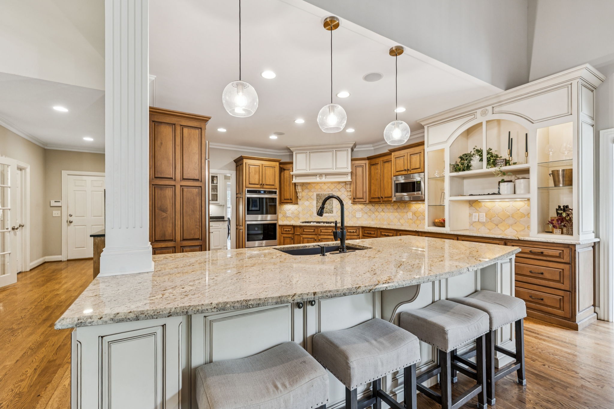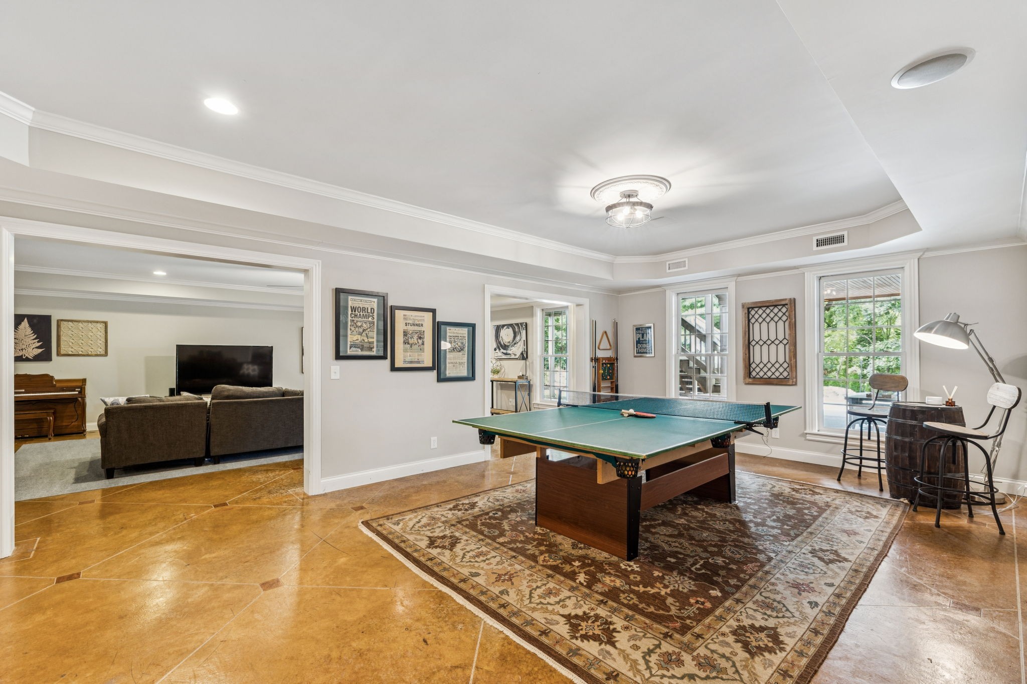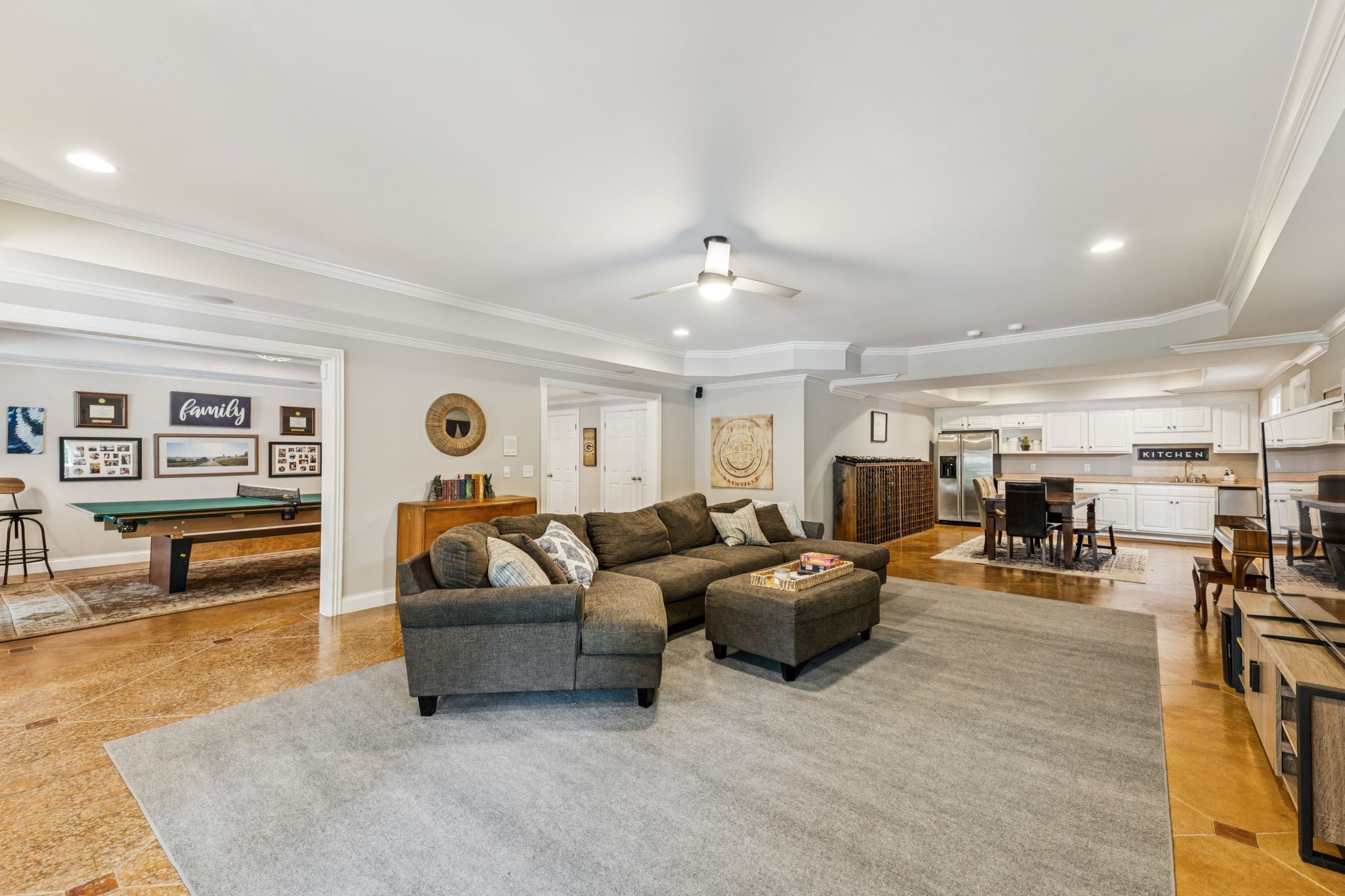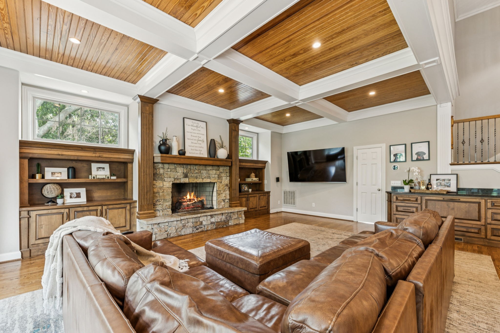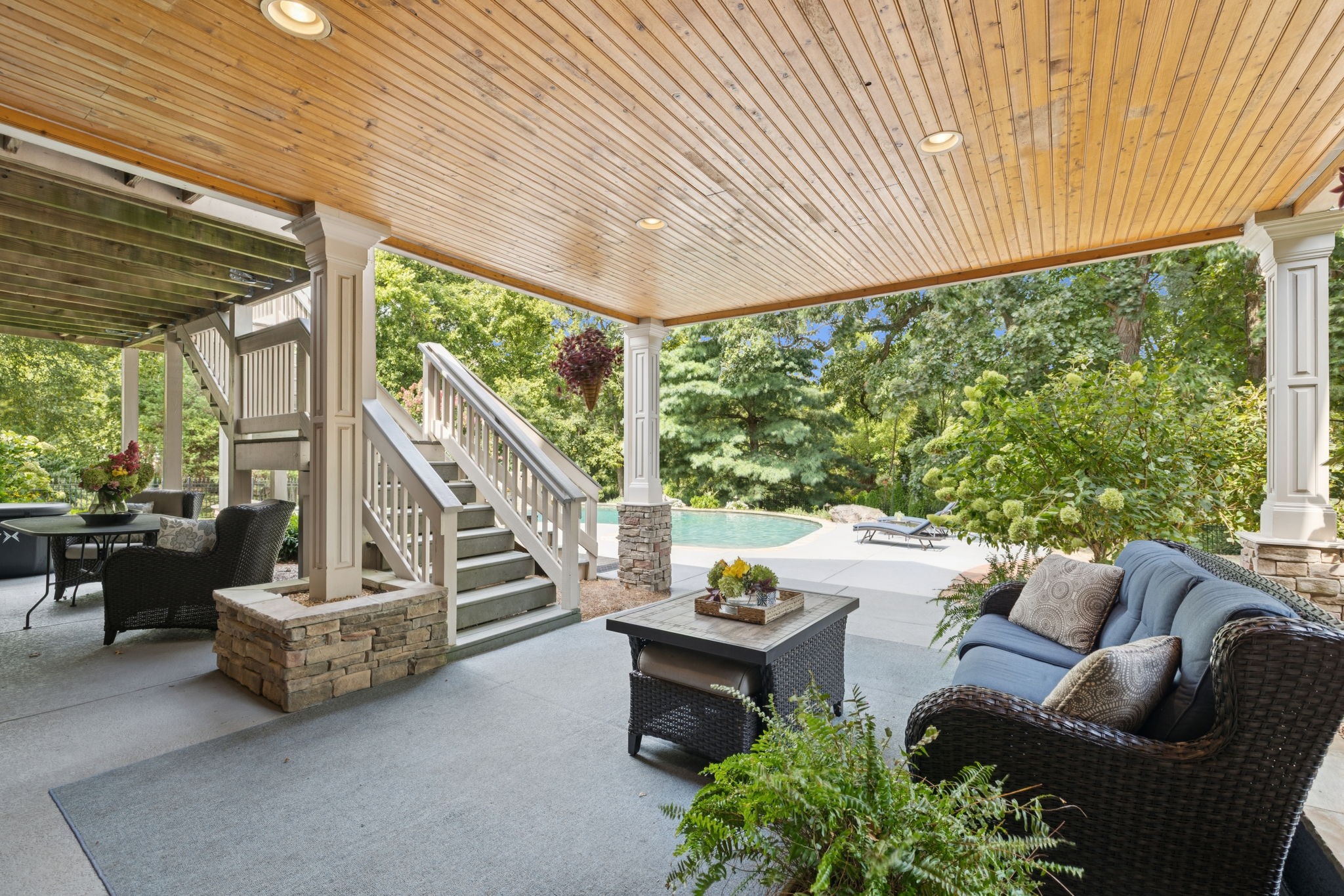 Parkside at Brenthaven stunner with a resort-style backyard—stone-waterfall pool, vaulted screened porch, and private fenced backyard. Inside, 5 beds/4.5 baths and 8,081 SF on 0.79 acres. Main-level primary suite; kitchen opens to a coffered-ceiling family room with stone fireplace; separate vaulted living room with second fireplace. Fully finished walk-out basement with rec/game rooms, exercise room, kitchenette, and an ideal in-law/teen suite. 3-car garage, whole-house audio, and tankless water heater. Minutes to Crockett Park, Brentwood Library, YMCA & I-65; quick hop to Cool Springs and Nashville. Zoned for top-rated Williamson County schools—Lipscomb ES, Brentwood MS & Brentwood HS. No HOA.