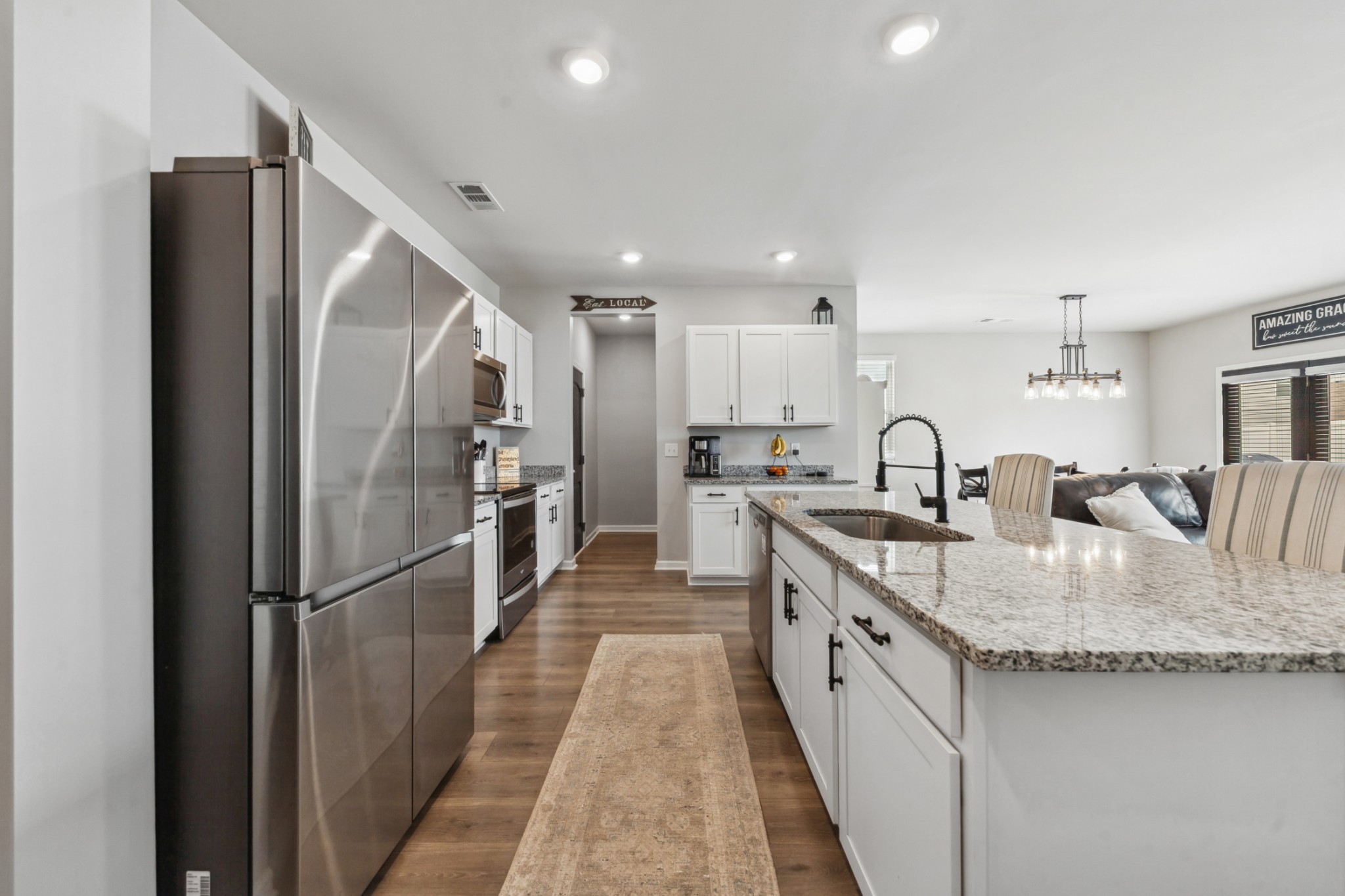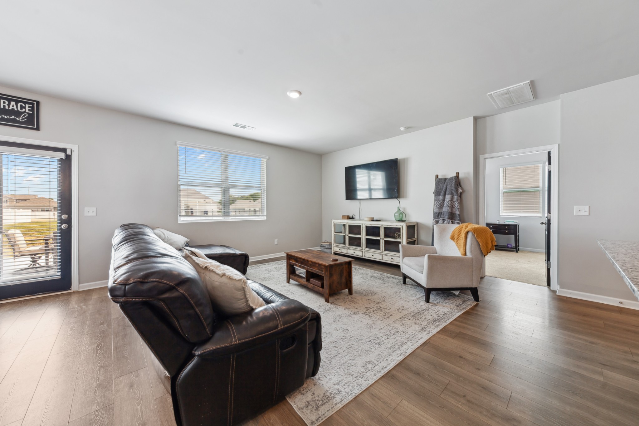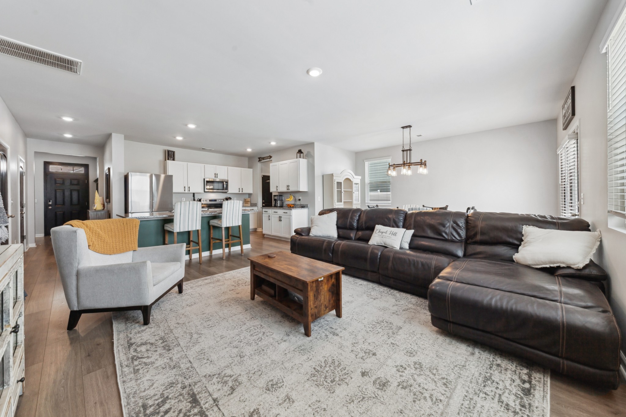 Welcome to this stunning, three-year old home in Chapel Hill, offering a perfect blend of peaceful country living and convenient access to major routes. Inside, discover 2,267 sq ft of comfortable living with four bedrooms, including a downstairs primary suite, three full and one half-bathrooms, stylish LPV flooring, granite countertops, stainless steel appliances, open living and dining areas, an eat-in kitchen, walk-in closets, a versatile bonus room, smart features, a water softening system with RO filtration, a covered porch, marble patio, two-car garage, and access to community amenities like a pool and walking trails.