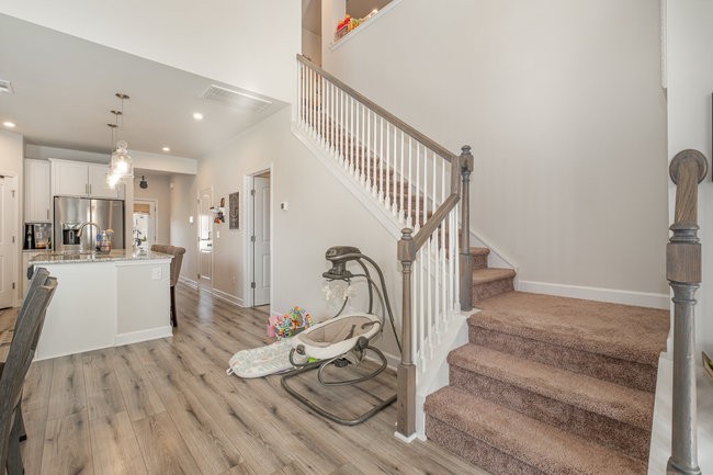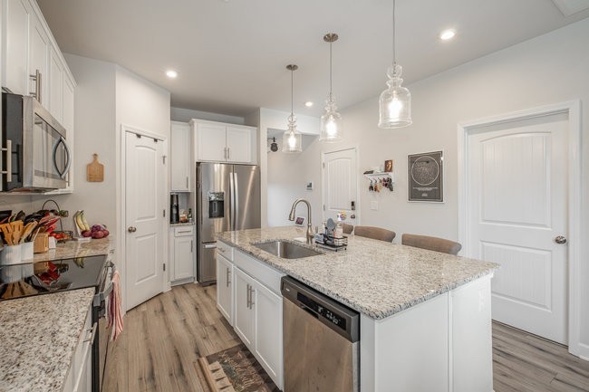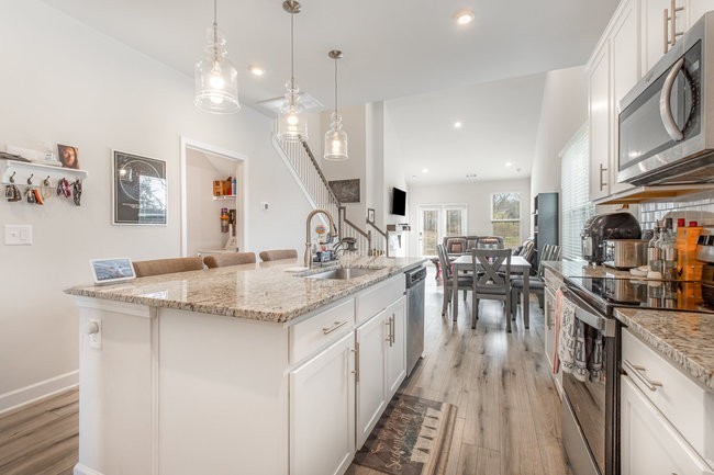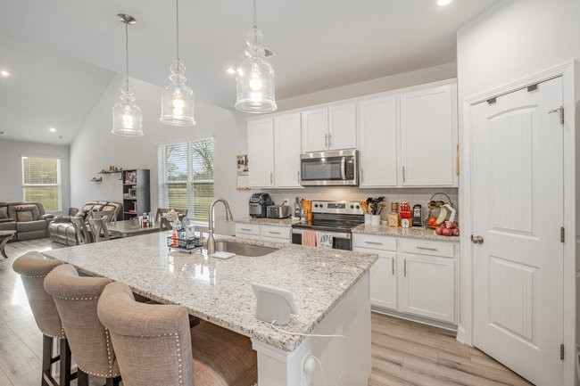 Discover modern living at its finest in this captivating end-unit townhome at 171 Fister Dr, Lebanon, TN 37090. The coveted master-on-main layout offers convenience and privacy, perfect for single-level living. Enjoy an open floor plan that seamlessly blends style and functionality, featuring a cozy fireplace, elegant wood spindle railing, and gleaming wood laminate flooring in the main living areas. The kitchen shines with crisp white cabinets, while tiled bathrooms add a touch of luxury. A versatile loft/bonus space provides endless possibilities for customization. This home includes a water softener that conveys with the property, ensuring softer water for the new owners. Smart locks on exterior doors enhance security and convenience. Built in 2022, this end unit combines the charm of an established neighborhood with the perks of new construction, offering enhanced privacy and natural light. Don't miss this irresistible opportunity in the heart of Lebanon!