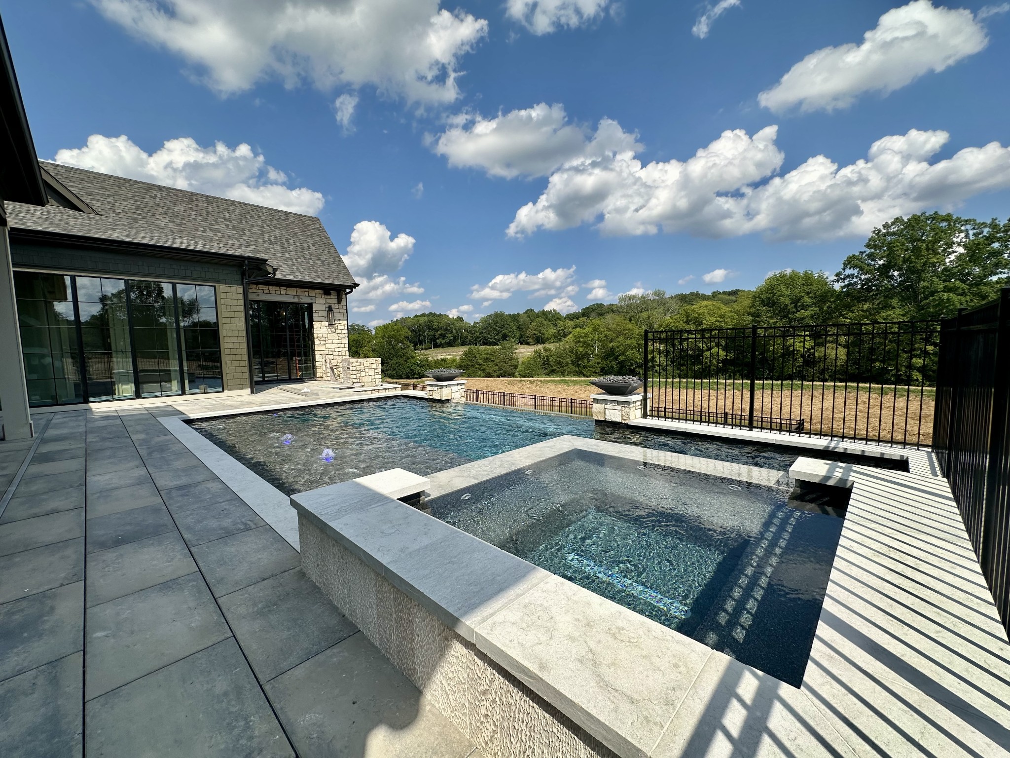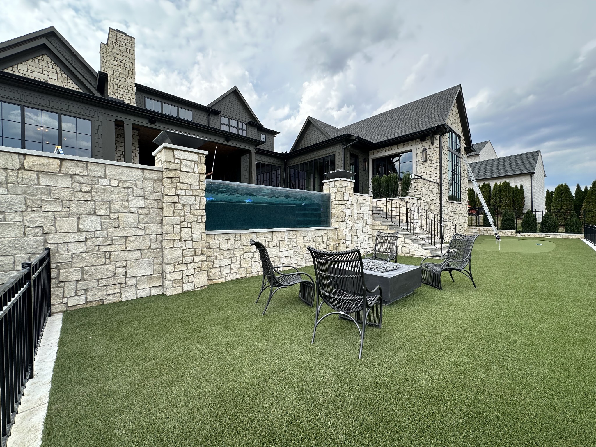 Cutting-edge design with a unique blend of natural and modern element by Stonegate Homes- This is your chance to call a BRAND NEW 2025 PARADE HOME your own. Gorgeous stone exterior welcomes you. From the front door, look through the vaulted Great Room to see your own personal backyard retreat, including a custom pool & spa with water features, fire bowls, and an infinity edge, a fire pit, putting green, grill station, and year-round covered porch. 5 Bedroom suites with their own private bath. Home elevator. Control 4/Lutron lighting throughout. Media Room on main level features stone-milled wall & wet bar. Bonus room & separate flex space on upper level. Two laundry rooms. Main Kitchen houses separate islands, Wolf & Subzero appliances, PLUS separate prep kitchen and Wet Bar conveniently located off the kitchen. With each corner looking like a magazine shoot, you have to see this home to believe it! Proof of Funds/pre-approval required to show.