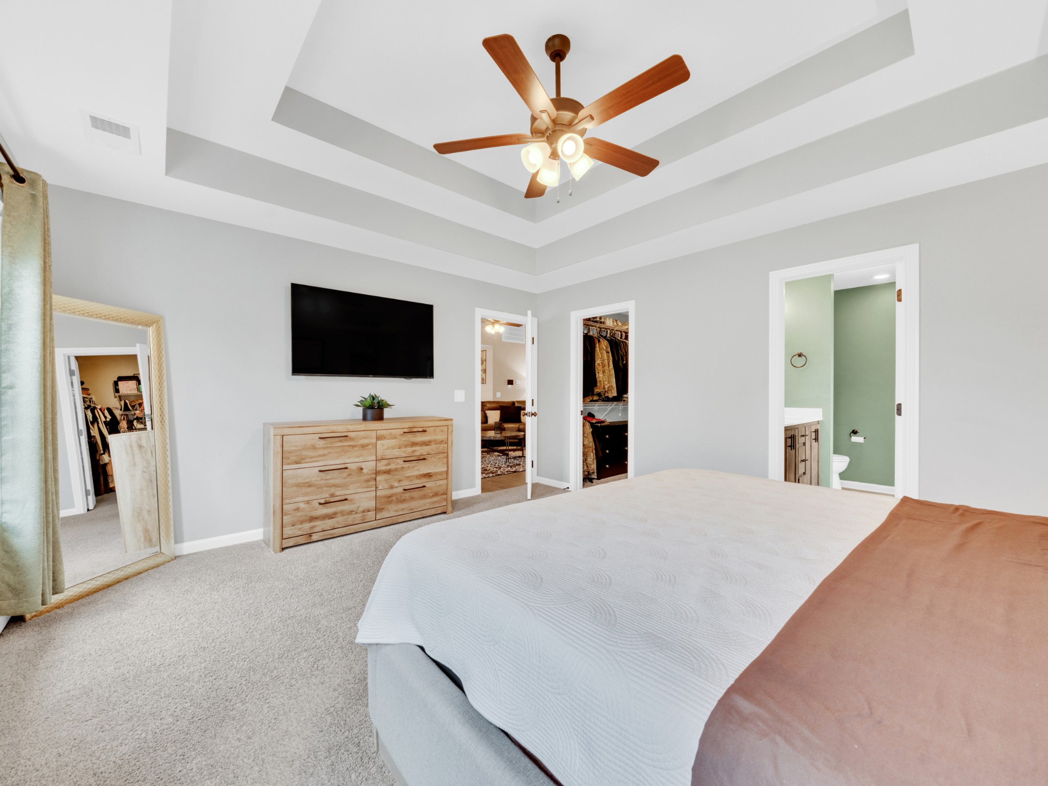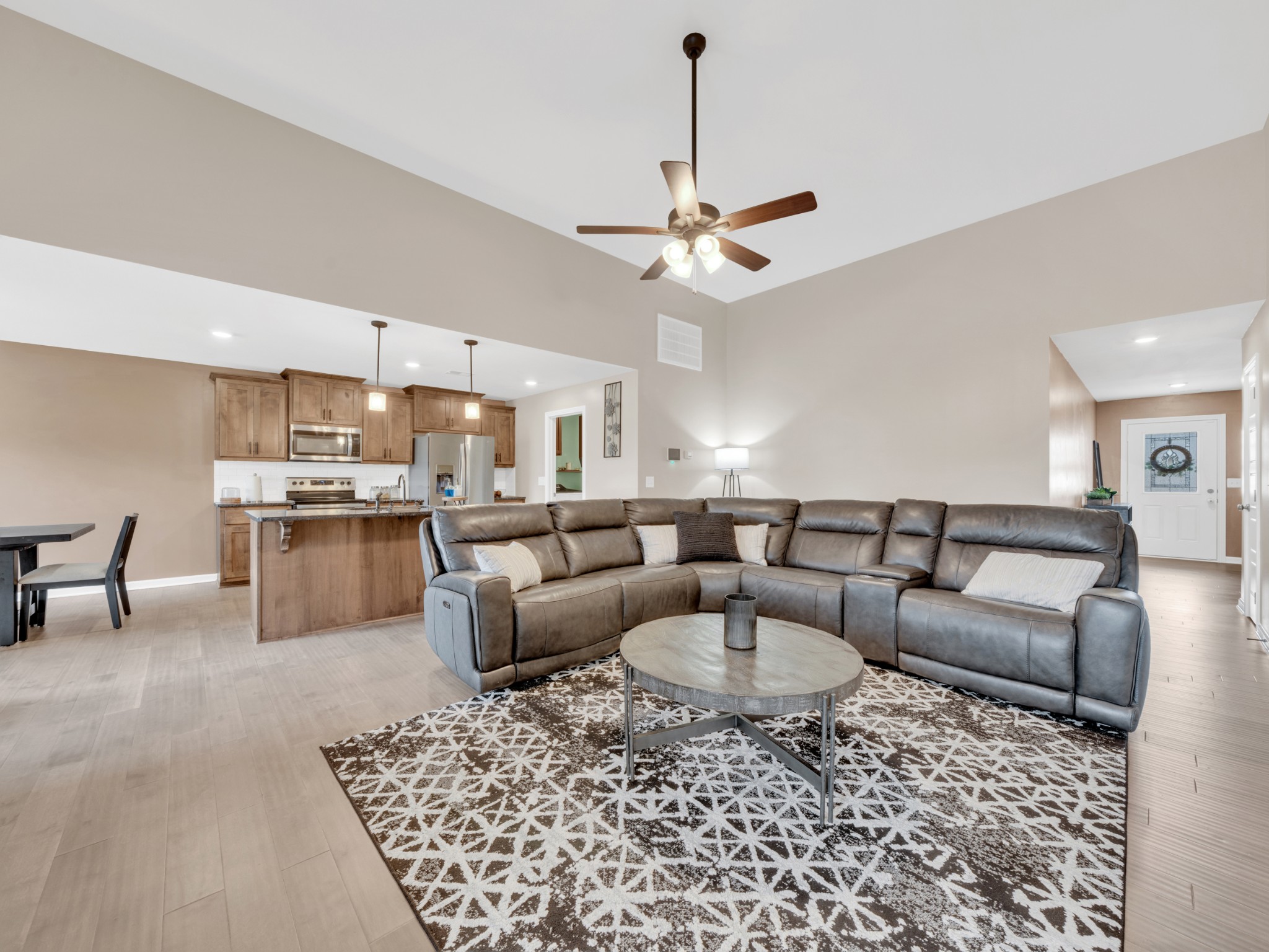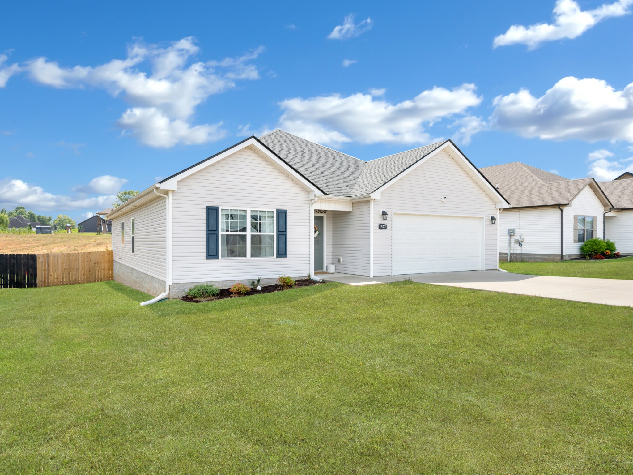 3 large bedrooms and 2 bathrooms with plenty of room. This open floor plan hosts a large living room with vaulted ceilings, upgraded kitchen, and separate dining area! The primary suite boasts a large walk in closet, and an en suite bathroom with double vanity and separate shower and soaking tub. The large flat backyard is perfect for entertaining with a privacy fence and plenty of room for those furry friends. The community park is just a short walk and has swings, basketball hoops, covered pavilion, and picnic tables.