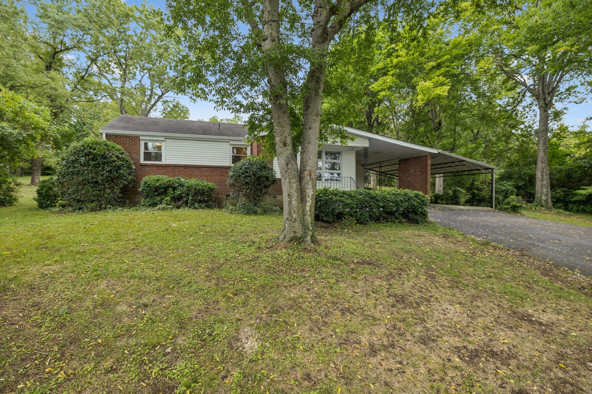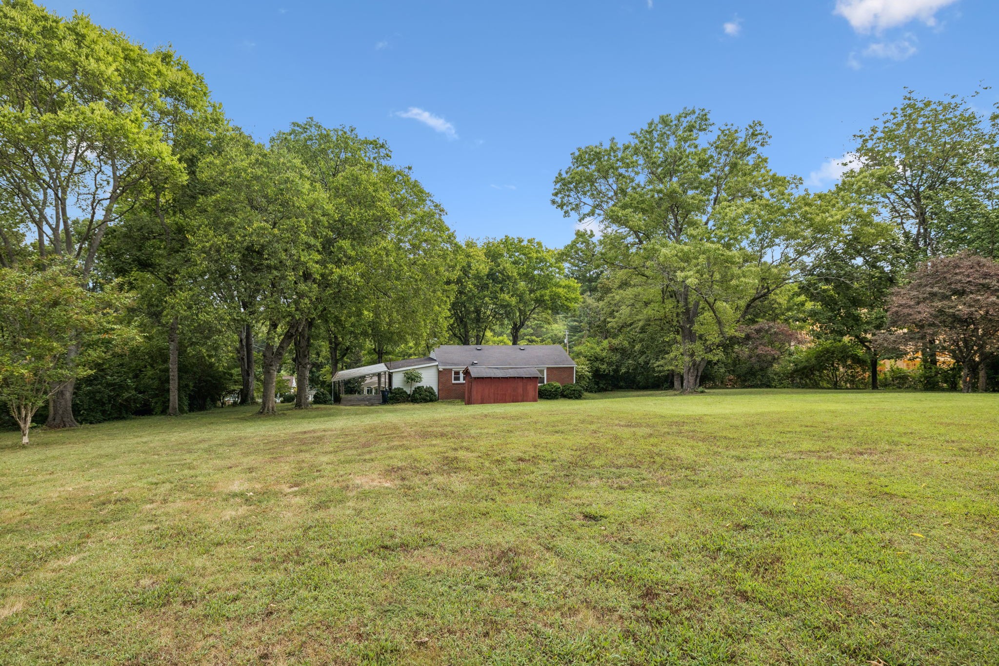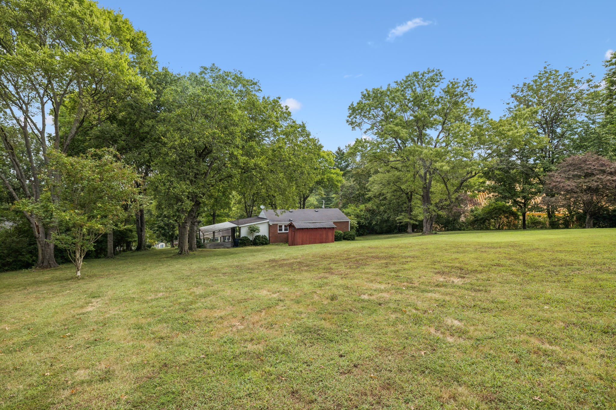 Smaller well-maintained Hillwood house on fabulous 1.1-acre lot. Live here and make it your own or tear it down and build. Seller has owned this home for 57 years. It has copper plumbing supply lines and PVC disposal lines. The HVAC was installed in 2022. It has low-maintenance aluminum siding trim. Some of the hardwood is exposed and some is covered by carpet. The bathtub was covered by Bath Fitters. The original tile is in excellent condition. The phone line is fiber optic. The house has an attic for storage and there is a storage building behind the house. The laundry room is in a separate room off of the carport. The paneled 'dining room' can also be a den or walk-through bedroom. The property is conveniently located near Nashville West Shopping Center. It is a sweet home that can be lived in as it is or updated. Good investment just for the land/lot.