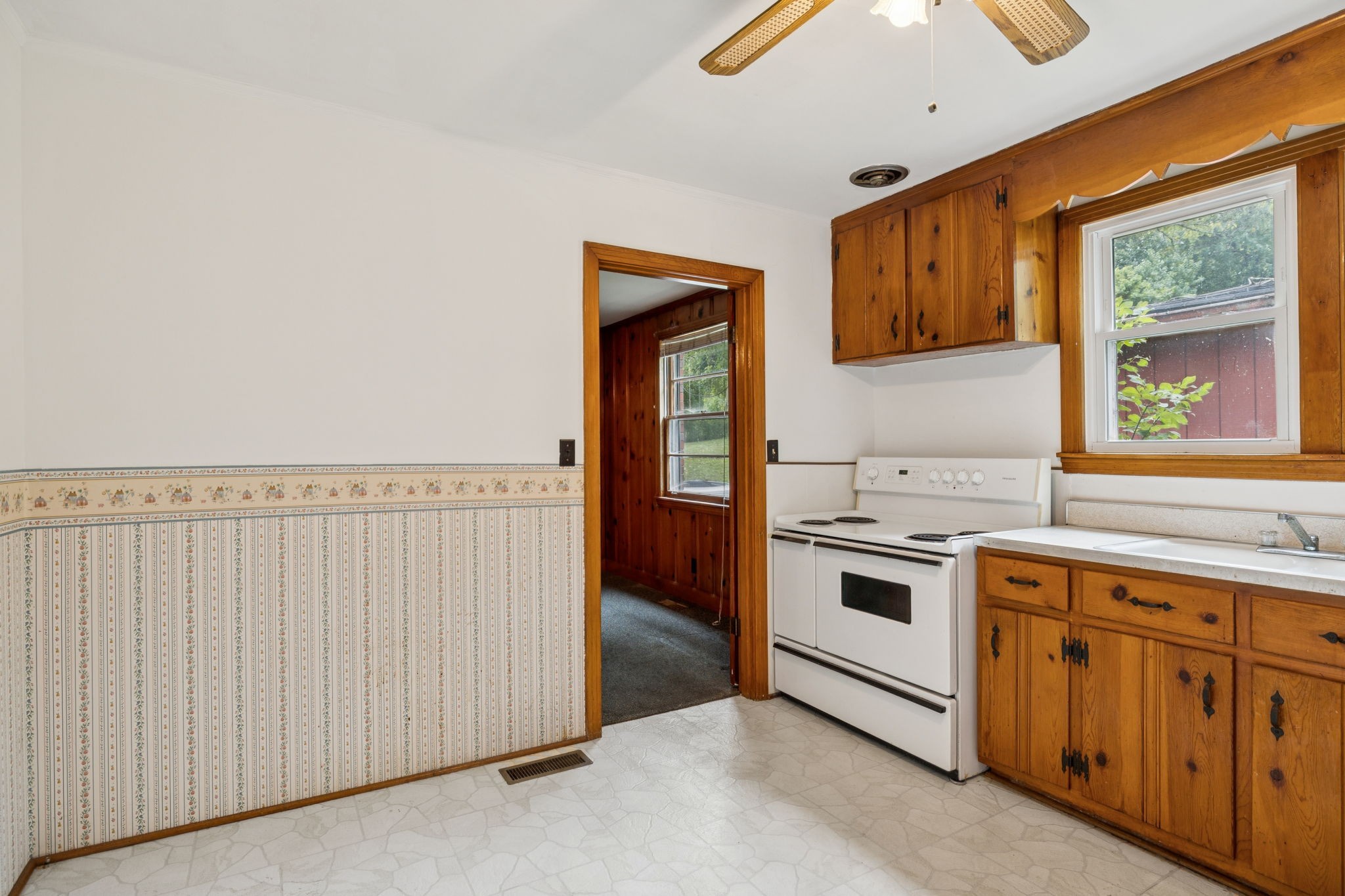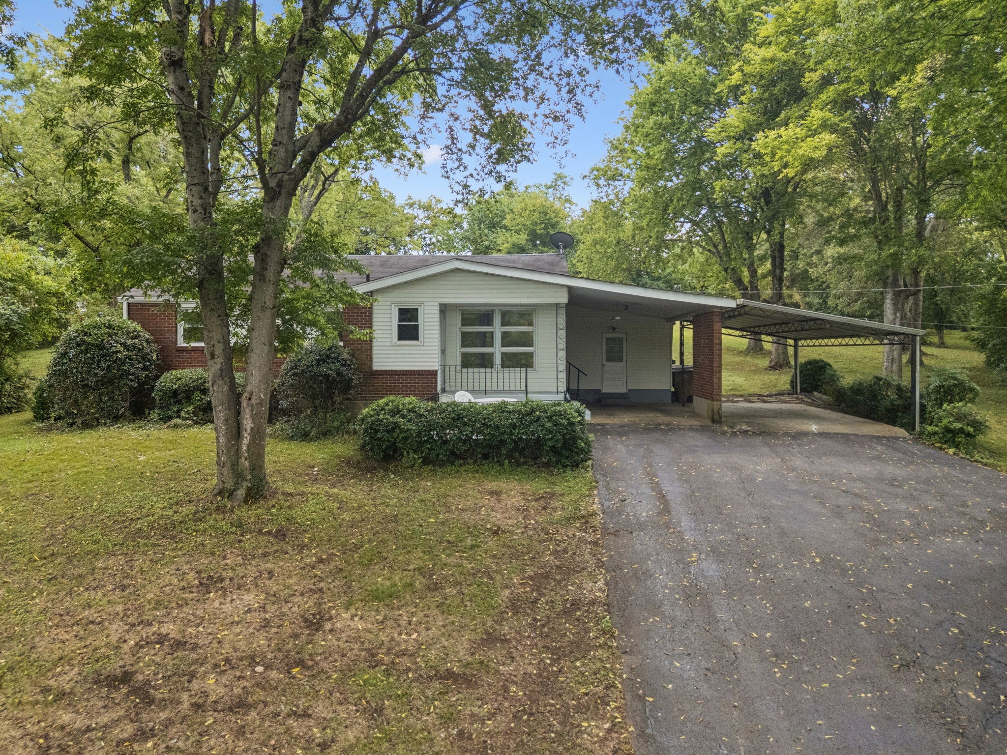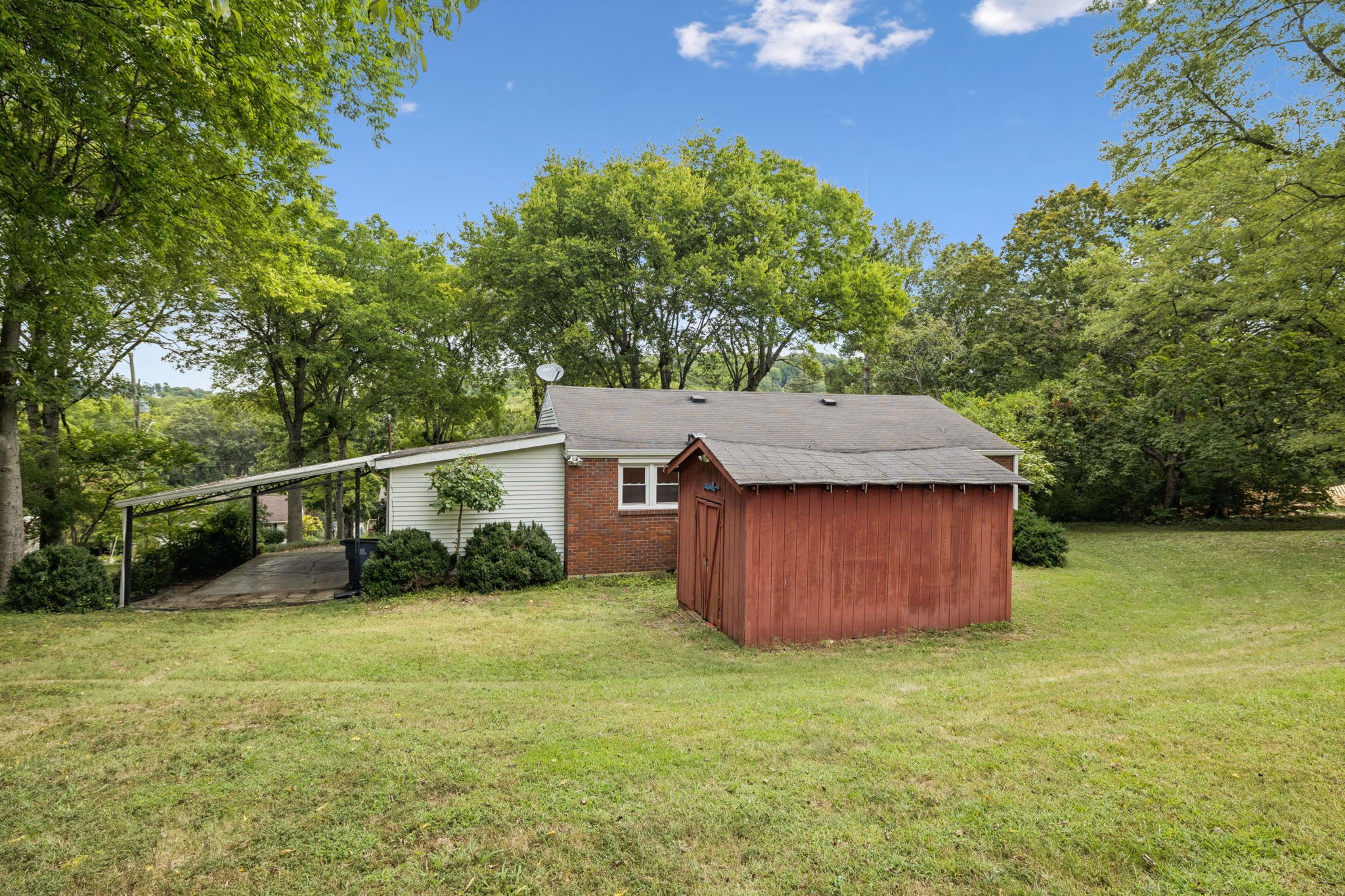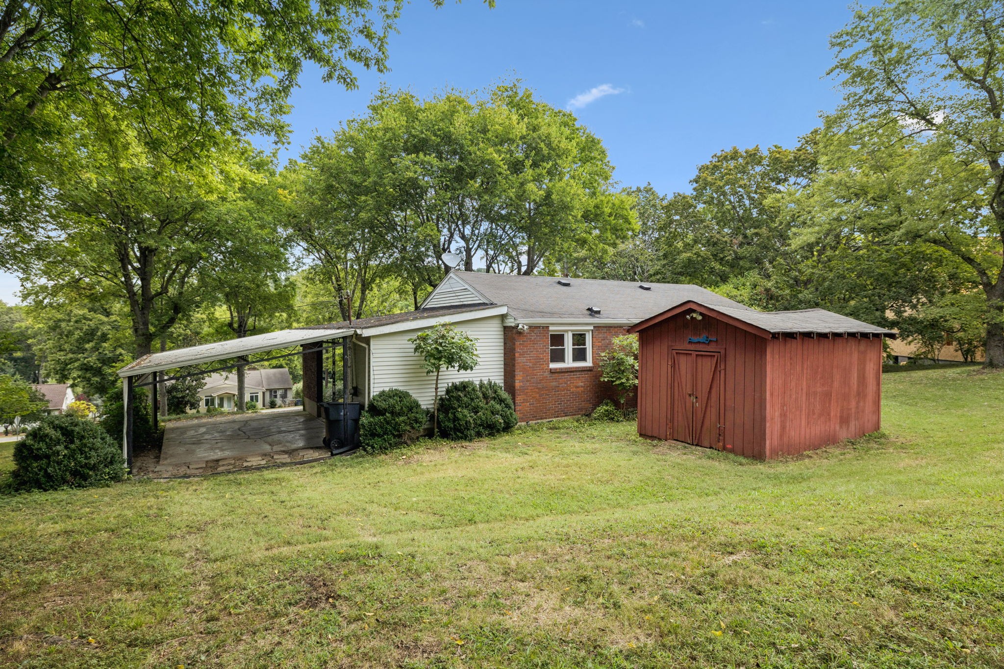 Smaller well-maintained Hillwood house on fabulous 1.1-acre lot. Live here and make it your own or tear it down and build. Seller has owned this home for 57 years. It has copper plumbing supply lines and PVC disposal lines. The HVAC was installed in 2022. It has low-maintenance aluminum siding trim. Some of the hardwood is exposed and some is covered by carpet. The bathtub was covered by Bath Fitters. The original tile is in excellent condition. The phone line is fiber optic. The house has an attic for storage and there is a storage building behind the house. The laundry room is in a separate room off of the carport. The paneled 'dining room' can also be a den or walk-through bedroom. The property is conveniently located near Nashville West Shopping Center. It is a sweet home that can be lived in as it is or updated. Good investment just for the land/lot.