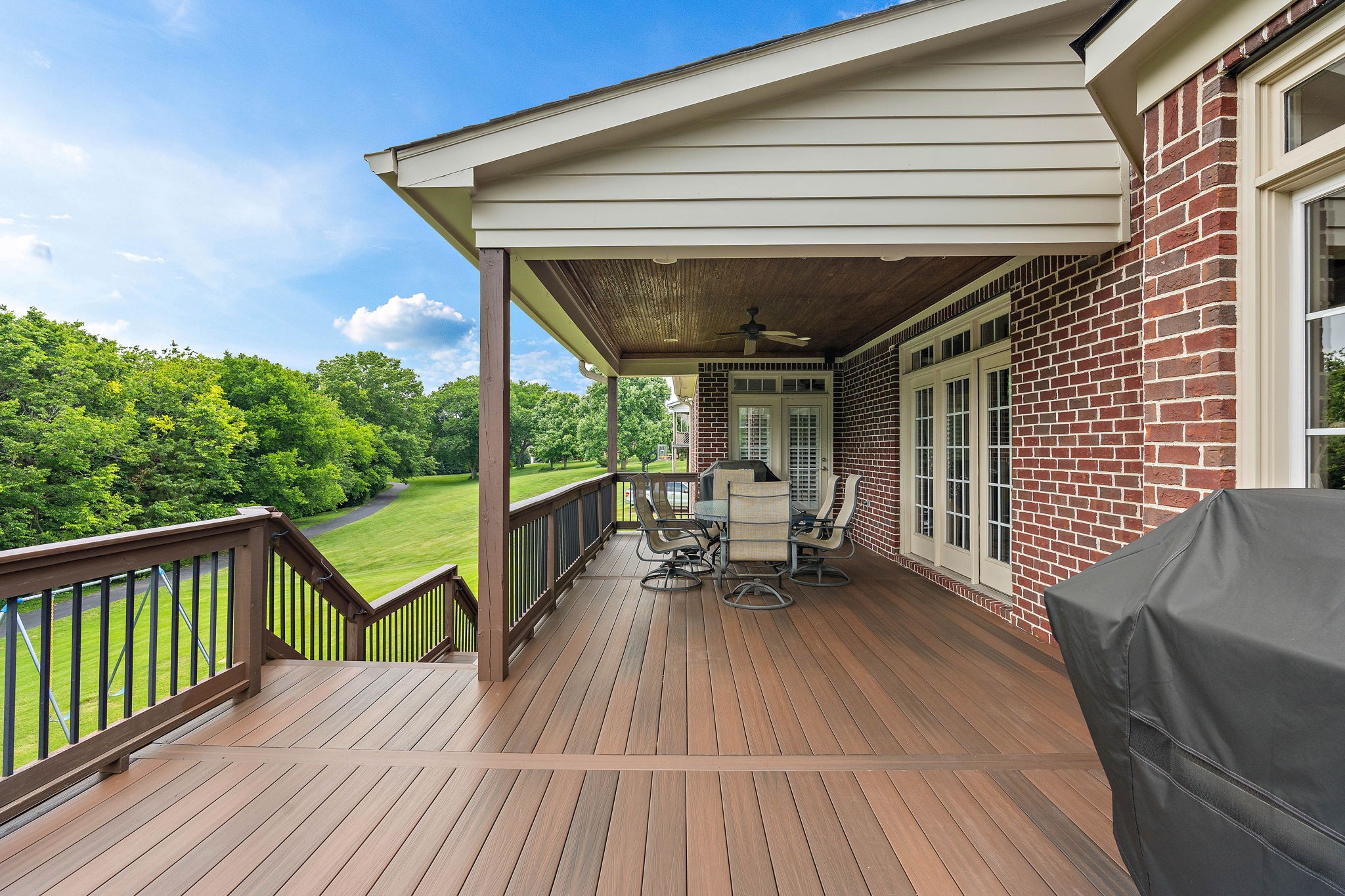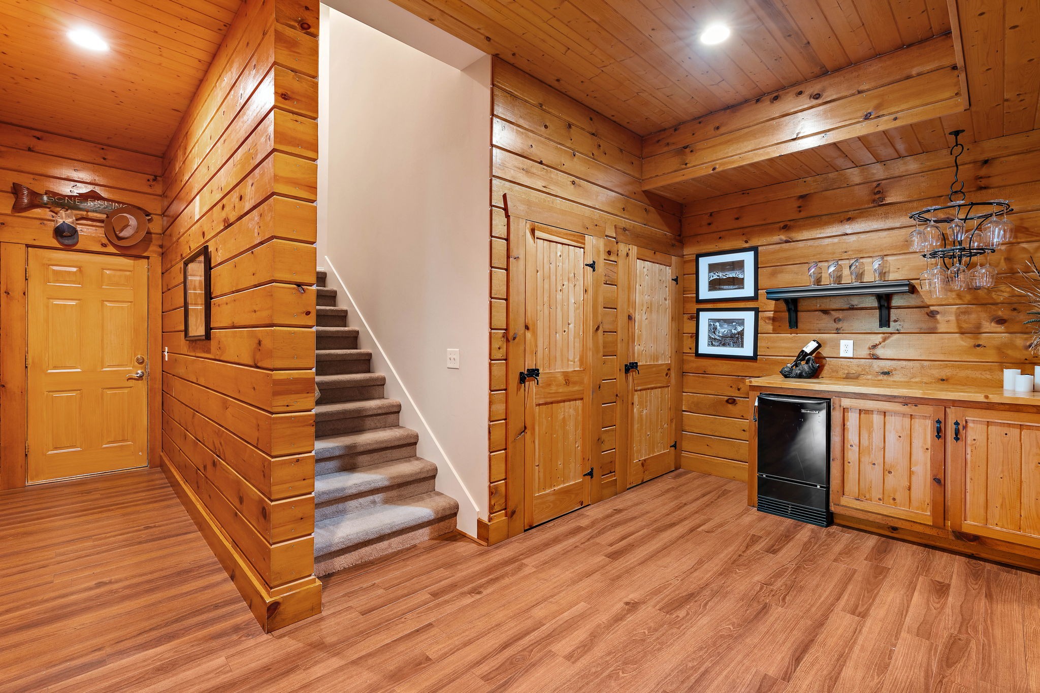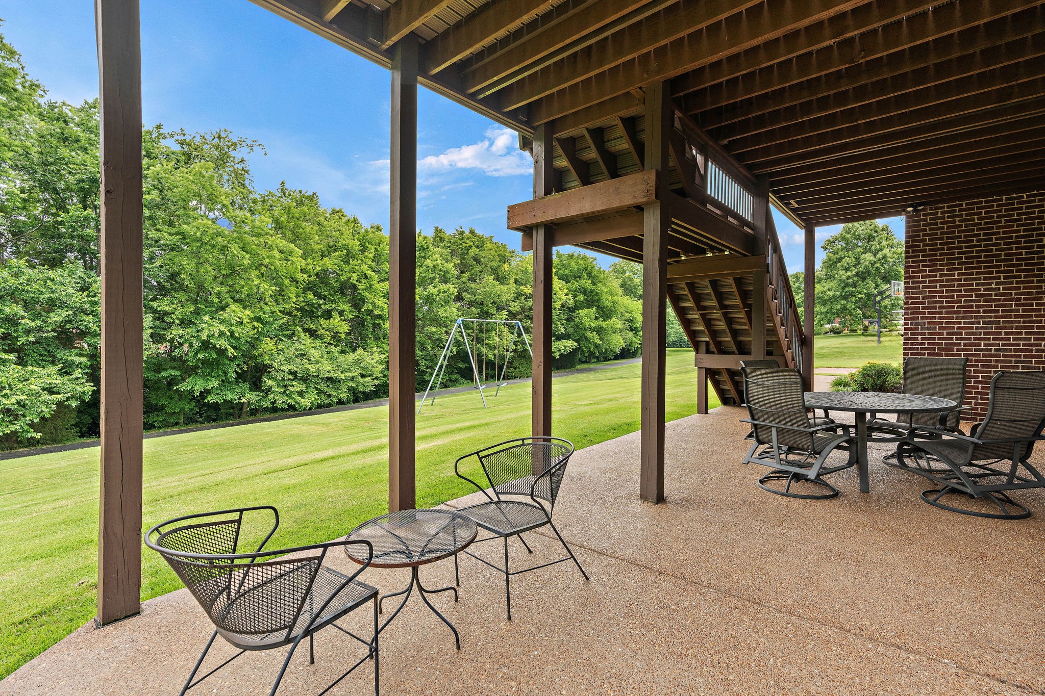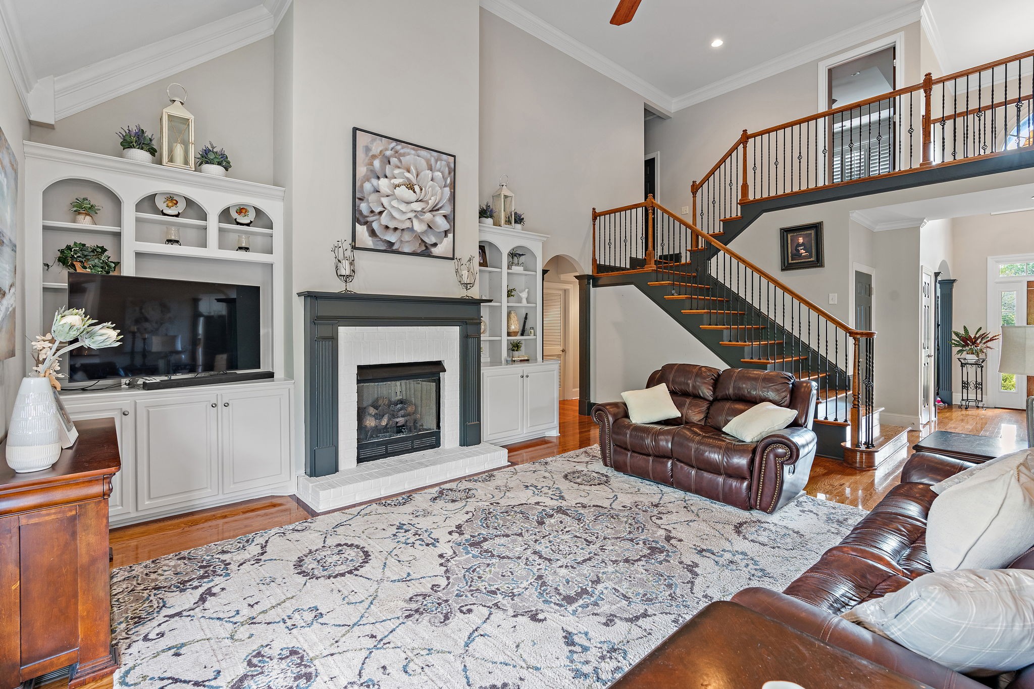LOCATION, LOCATION, LOCATION! If being in the right spot matters most, this stunning custom home in the highly sought-after Concord Hunt neighborhood delivers! Nestled in one of Brentwood’s premier communities, this 5 bedroom, 4.5 bathroom home offers DIRECT ACCESS to Crockett Park and schools via a scenic trail—ideal for morning walks, family bike rides, walk to school and/or weekend adventures. Situated on a serene .64-acre lot, this gorgeous home offers the perfect blend of luxury and comfort. The main level living is open and bright, with high ceilings and access to an attached covered deck — ideal for indoor-outdoor living with amazing views of the tree-lined backyard. A spacious kitchen and formal dining room create the perfect setting for family gatherings, and a dedicated home office on the main level provides a quiet space for remote work or study. You’ll also love the spacious main-level primary suite, as well as an additional bonus/ recreation room with a wet bar for even more flexibility and fun. Upstairs, you’ll find four generously sized bedrooms, providing plenty of room for family and guests. Step into the heart of this home – the custom finished log cabin basement – and experience a retreat like no other! Designed with thoughtful craftsmanship, this one-of-a-kind space blends warmth, comfort, and character in every detail. Rich wood textures and exposed log beams create an inviting atmosphere, while the focal point—a beautifully crafted gas fireplace—sets the tone for cozy evenings and relaxed gatherings. Perfect for entertaining, a spacious game room offers plenty of space for recreation and space for storing and showcasing your wine collection. Basement can easily be converted to apartment or in-law suite. Walk-out doors provide access to the tree-lined backyard oasis with plenty of space for a future pool & trail leading directly to Crockett Park & beyond! Additional highlights include 3-car garage and 17x17 unfinished space!
