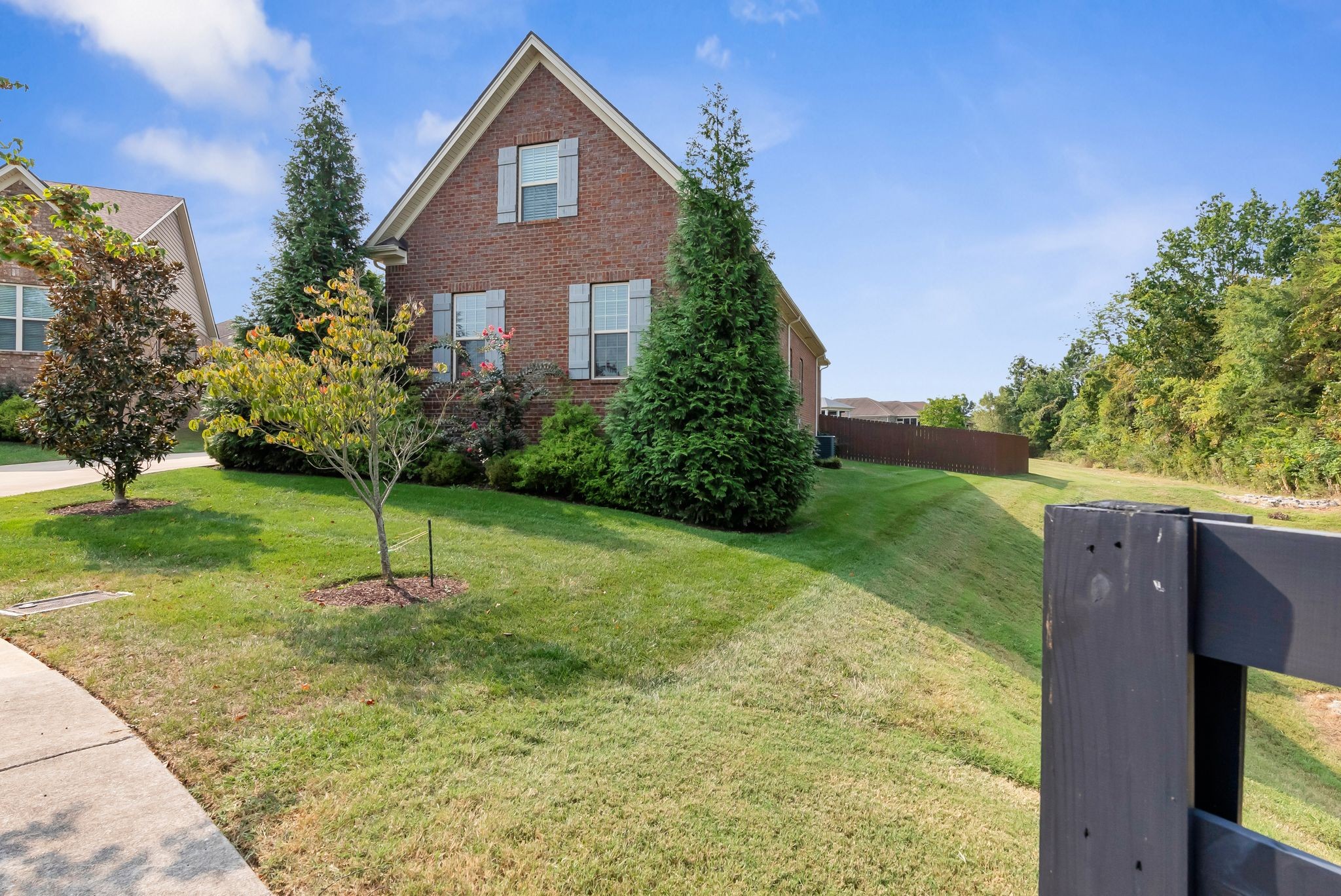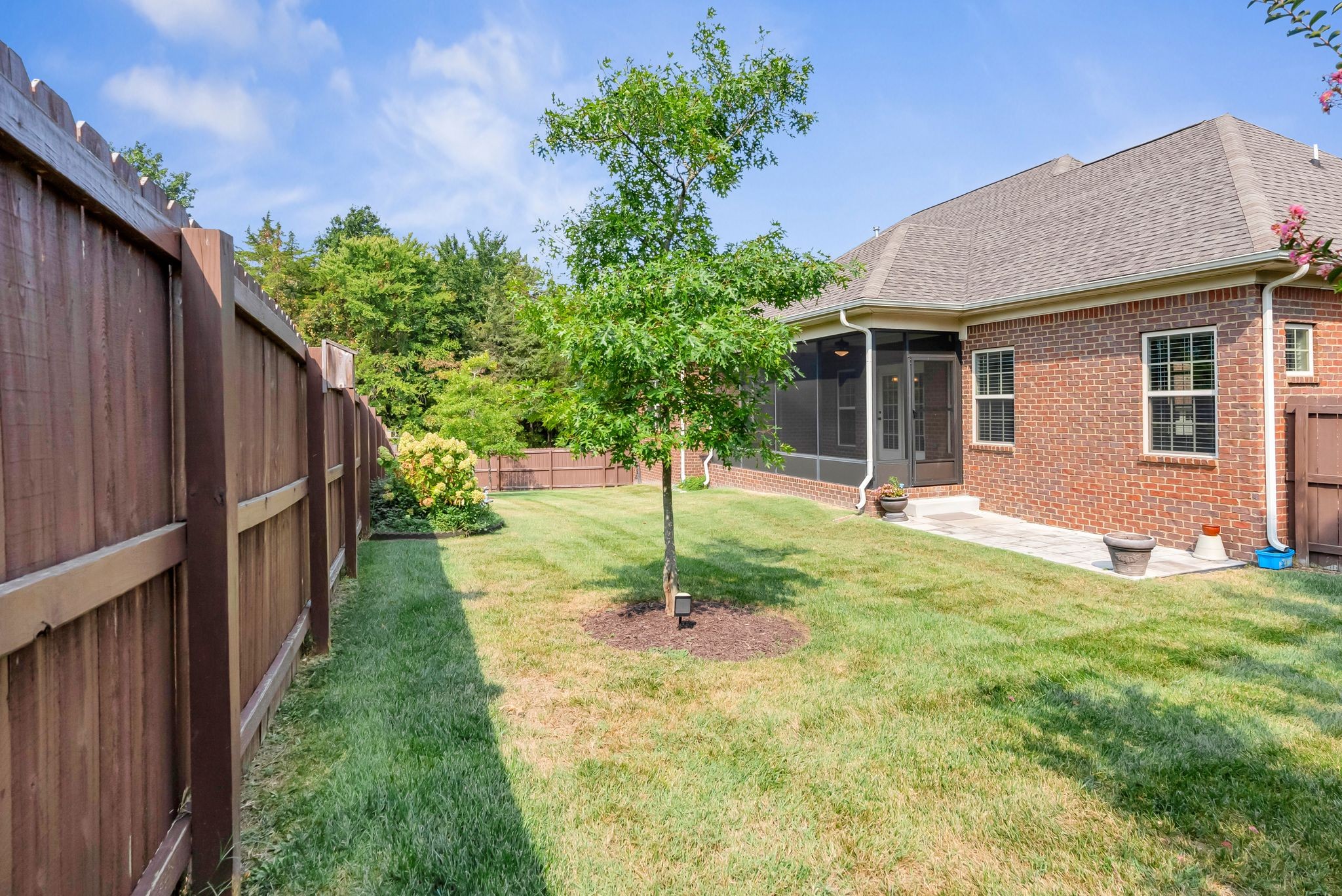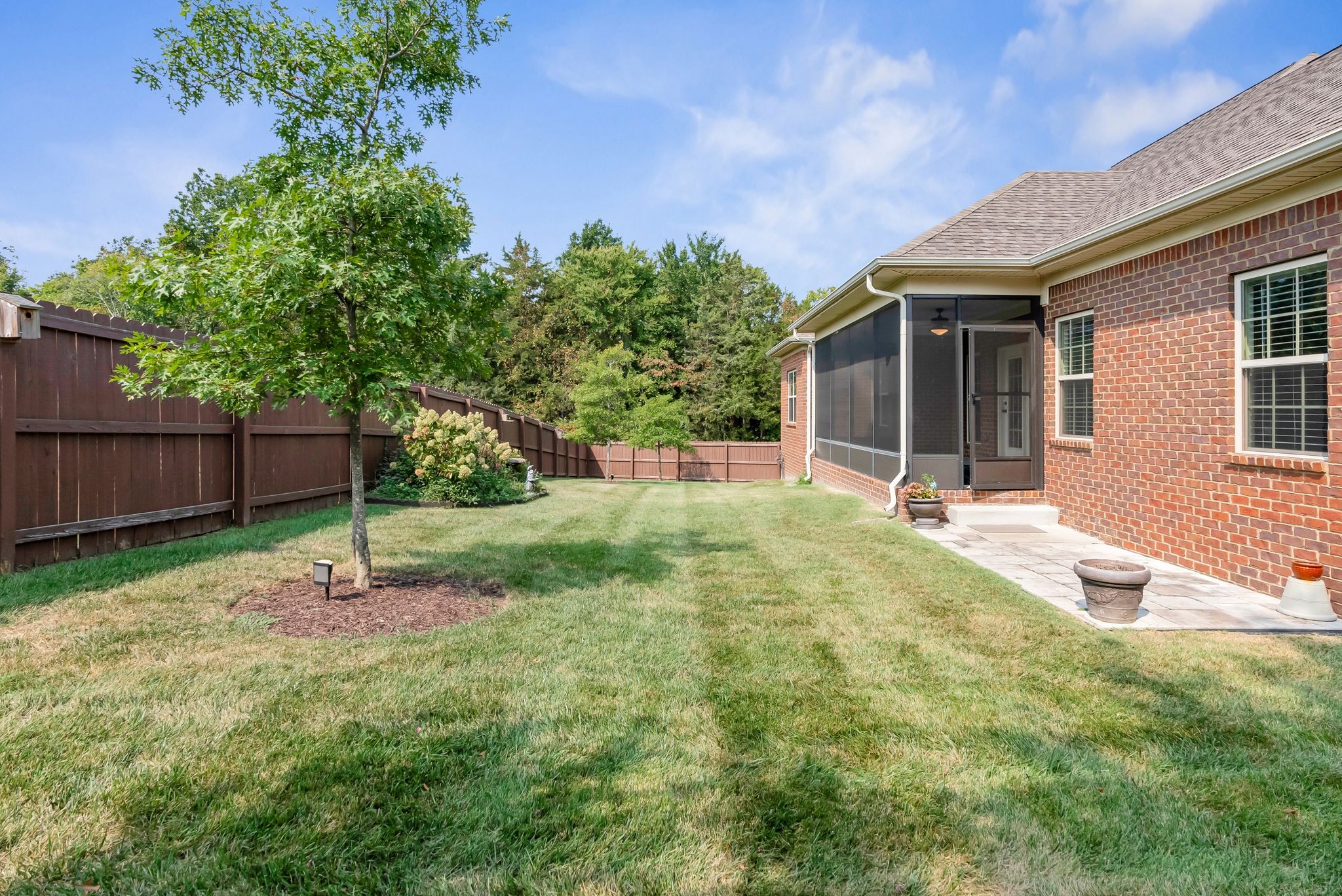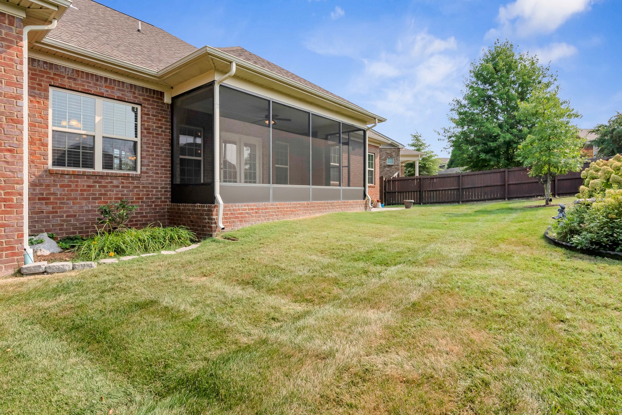 Fall in love with this 7-year-old Burkitt Village ranch located in a cul-de-sac at the end of Duns Ln. Wooded common area just past the house offers a beautiful & peaceful setting. Features an open floor plan on main with large bonus room & half bath over garage, spacious screened porch, level back yard with privacy fence & pretty mulch beds. Property in excellent condition with lovely landscaping, two-car, side-entry garage, large private primary suite with walk-in closet, two additional bedrooms on other side of main floor & blinds throughout. Hardwoods in main living area, coffered ceiling in living room, granite & stainless appliances in kitchen. All appliances remain.