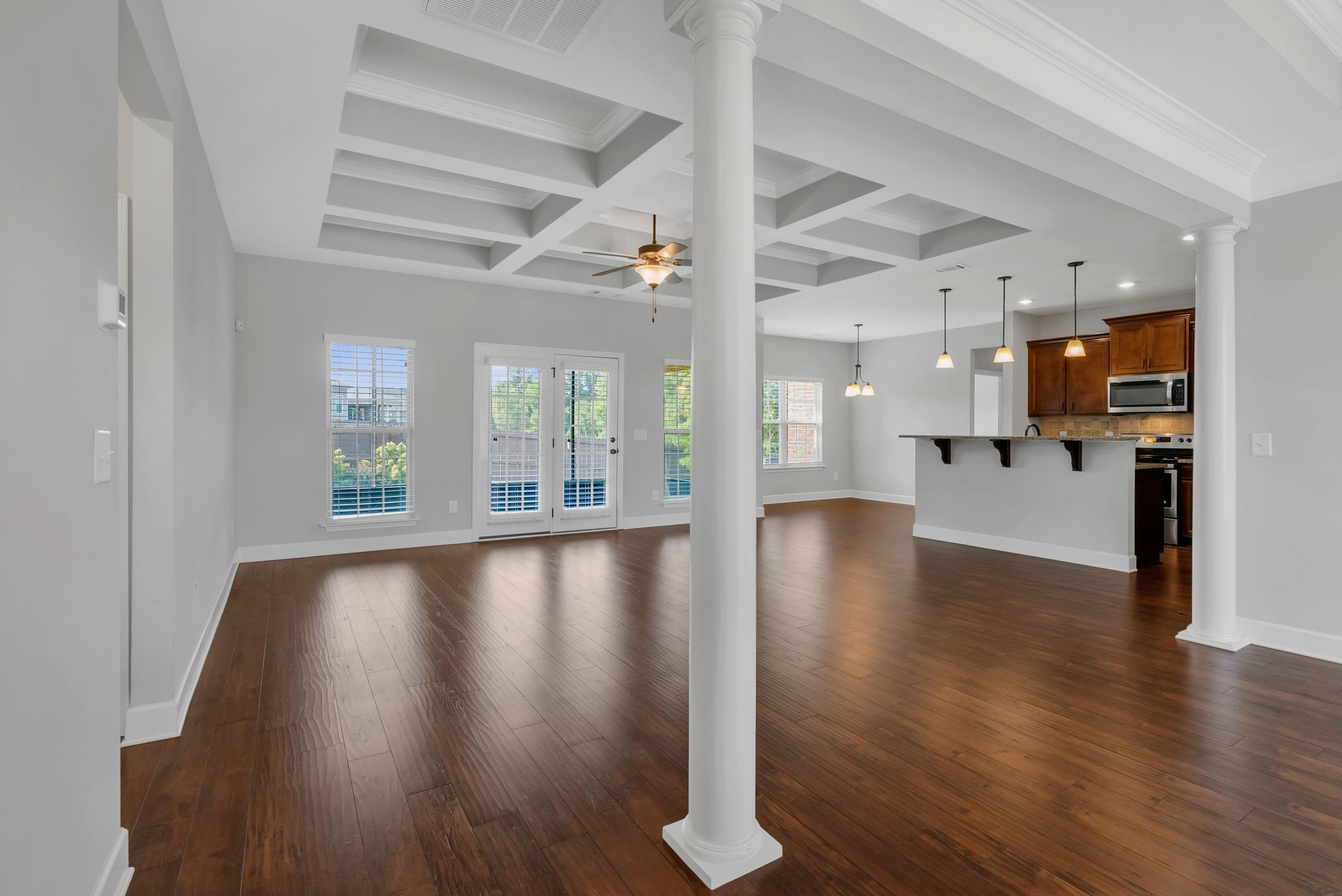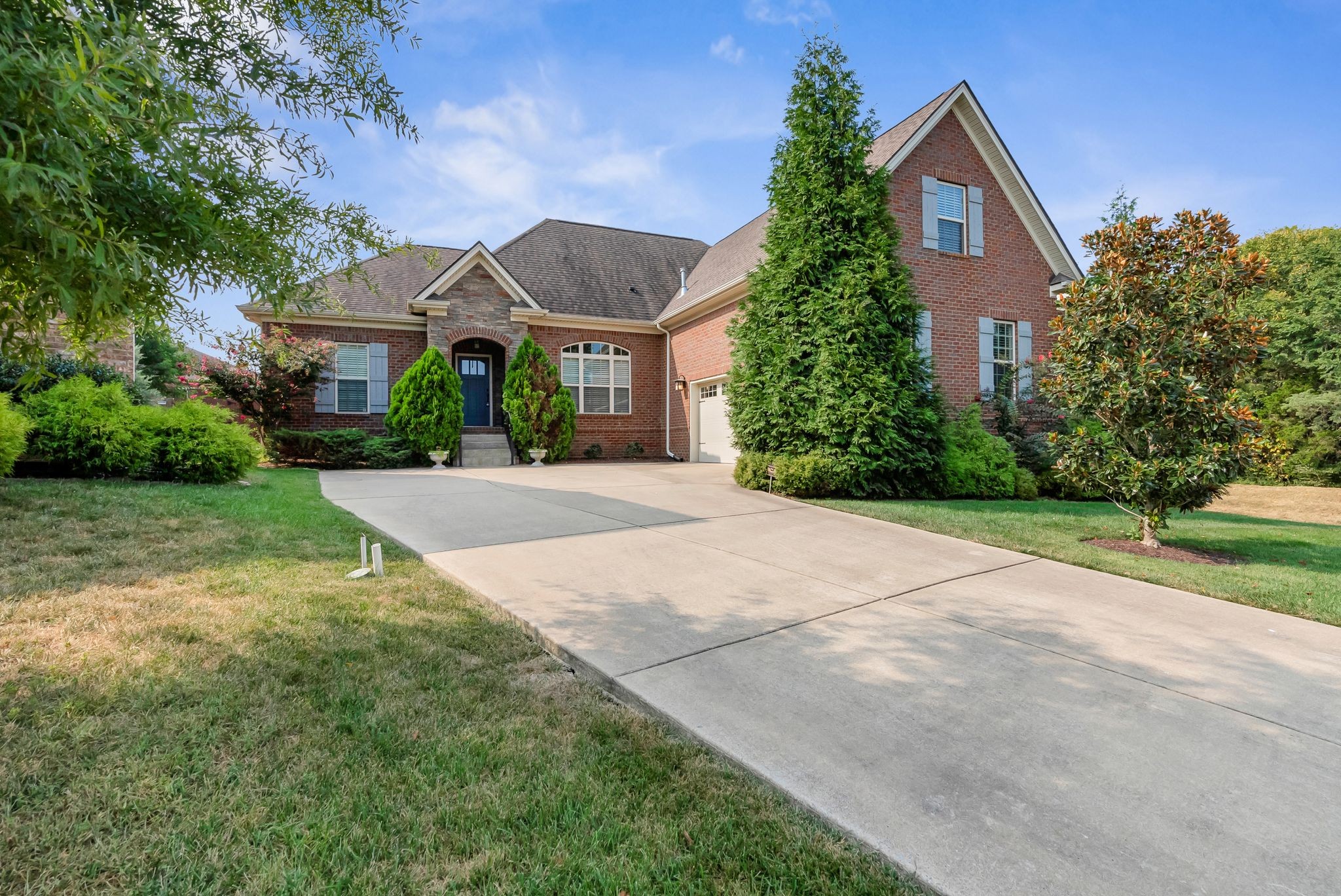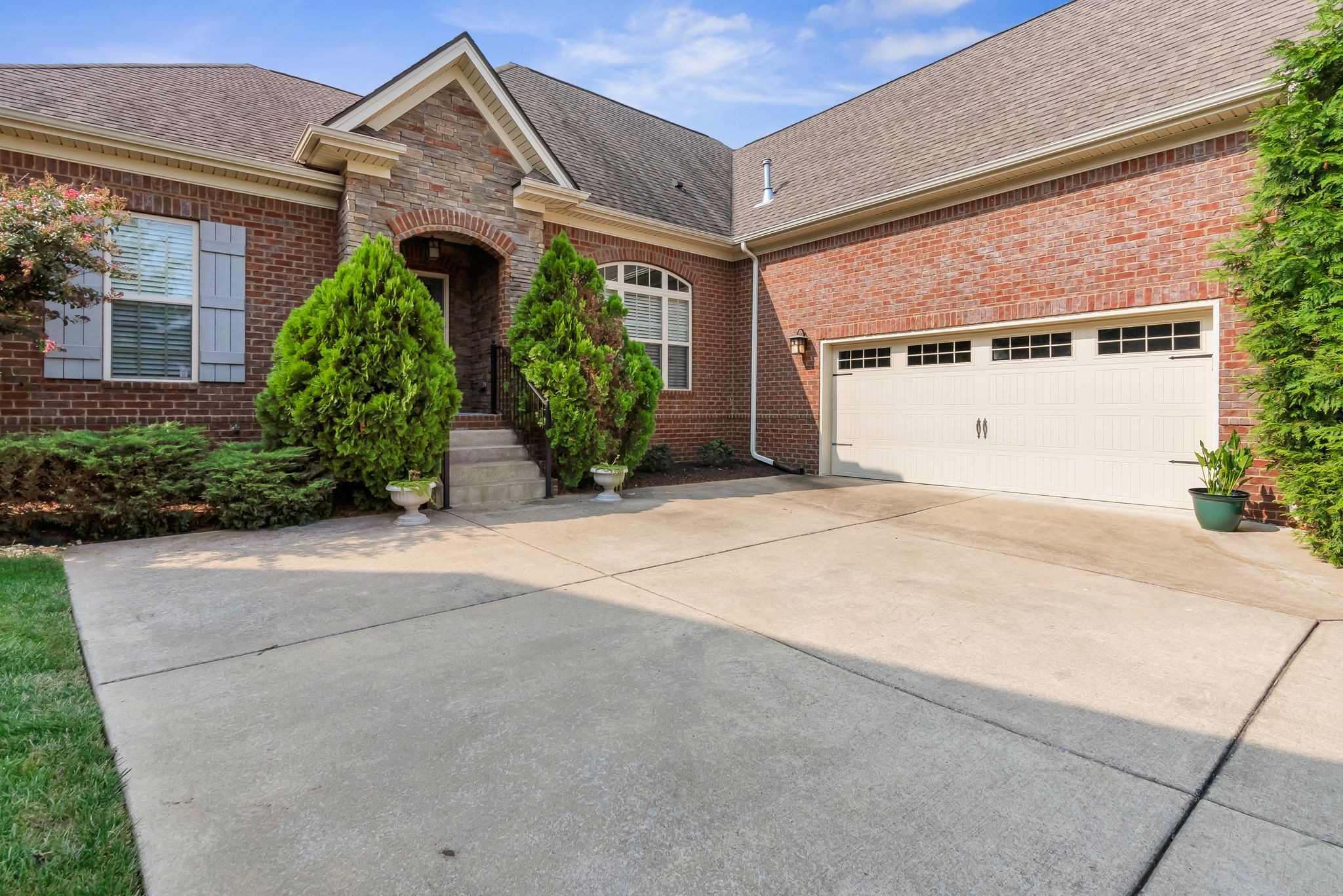 Fall in love with this 7-year-old Burkitt Village ranch located in a cul-de-sac at the end of Duns Ln. Wooded common area just past the house offers a beautiful & peaceful setting. Features an open floor plan on main with large bonus room & half bath over garage, spacious screened porch, level back yard with privacy fence & pretty mulch beds. Property in excellent condition with lovely landscaping, two-car, side-entry garage, large private primary suite with walk-in closet, two additional bedrooms on other side of main floor & blinds throughout. Hardwoods in main living area, coffered ceiling in living room, granite & stainless appliances in kitchen. All appliances remain.