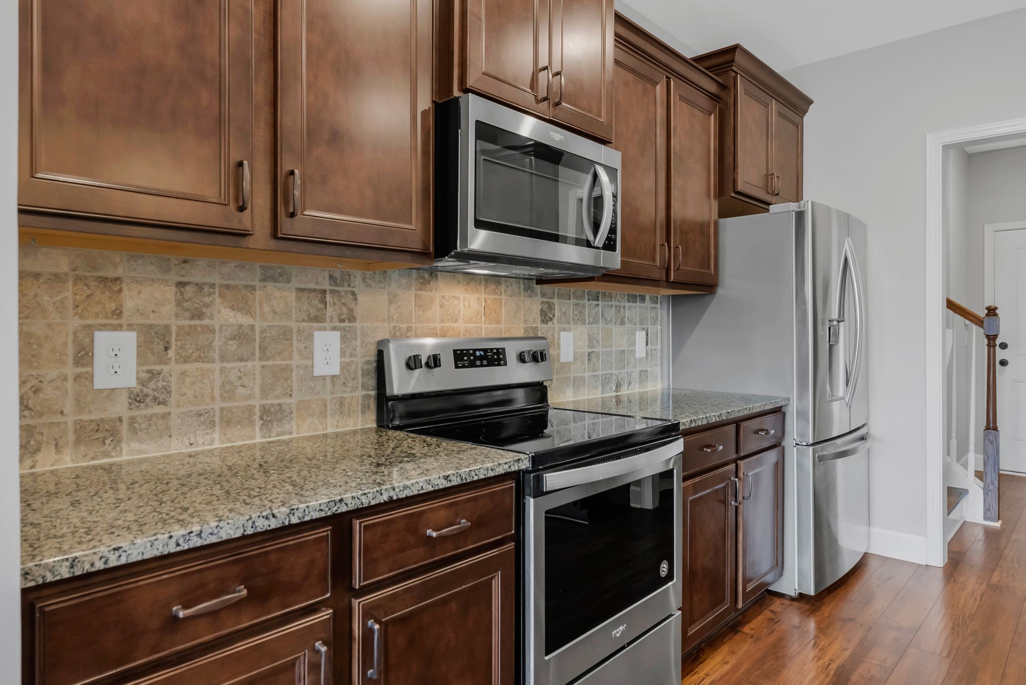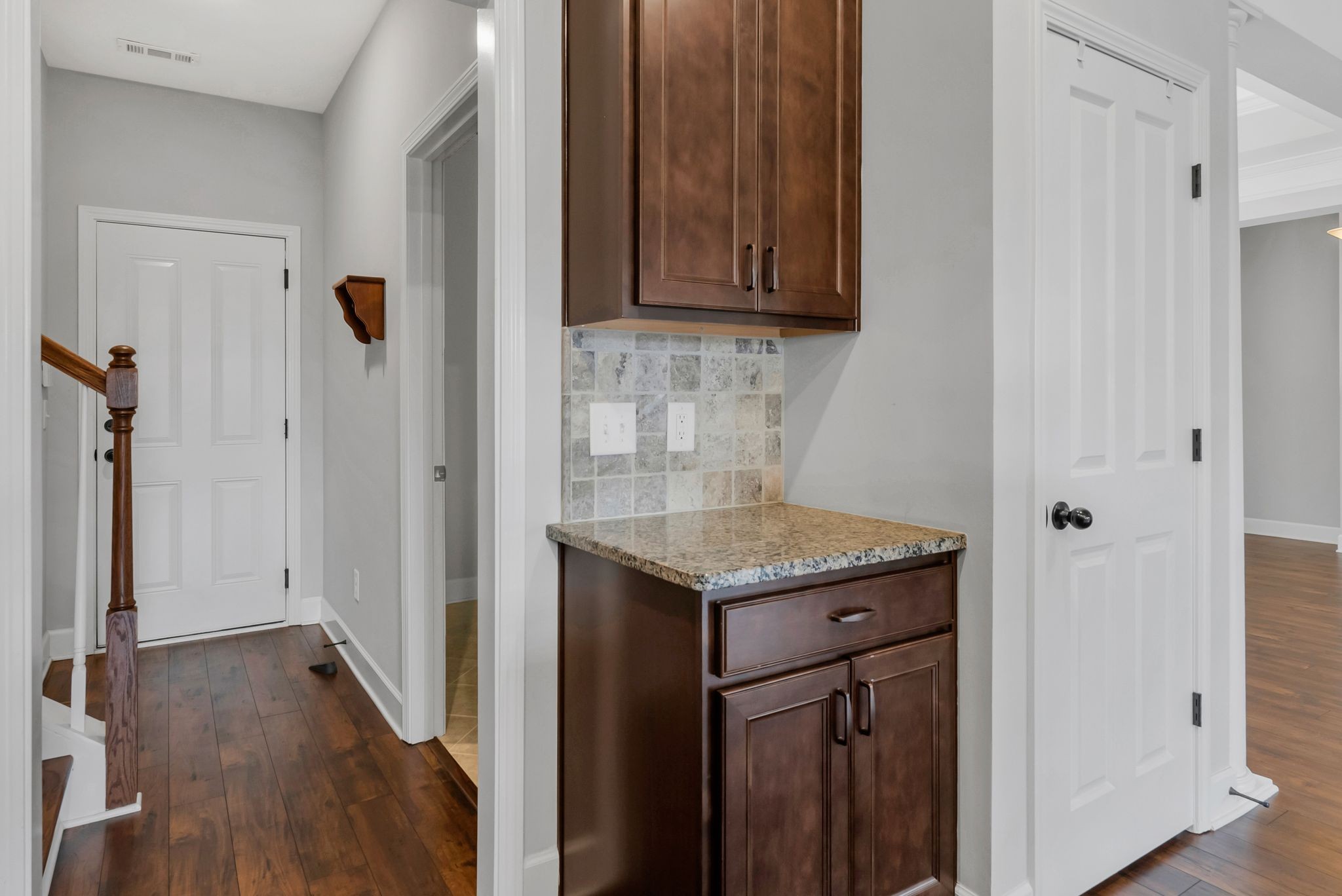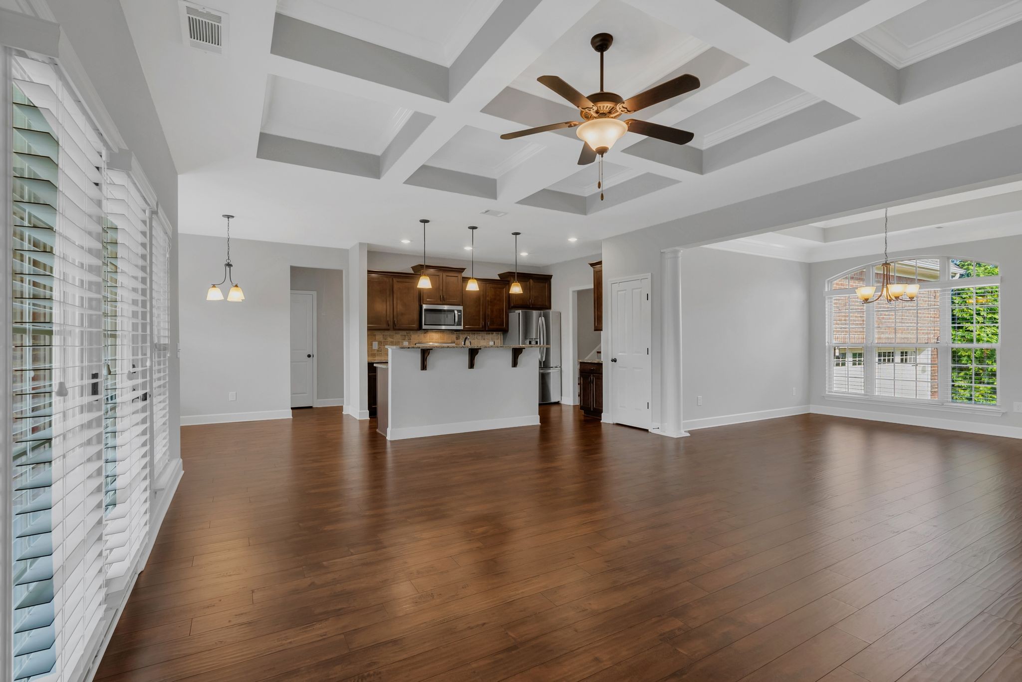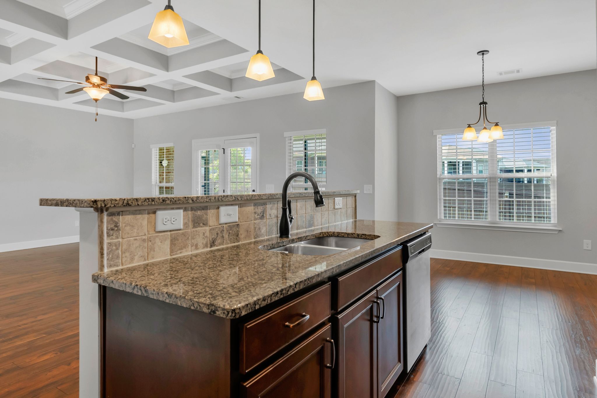 Fall in love with this 7-year-old Burkitt Village ranch located in a cul-de-sac at the end of Duns Ln. Wooded common area just past the house offers a beautiful & peaceful setting. Features an open floor plan on main with large bonus room & half bath over garage, spacious screened porch, level back yard with privacy fence & pretty mulch beds. Property in excellent condition with lovely landscaping, two-car, side-entry garage, large private primary suite with walk-in closet, two additional bedrooms on other side of main floor & blinds throughout. Hardwoods in main living area, coffered ceiling in living room, granite & stainless appliances in kitchen. All appliances remain.