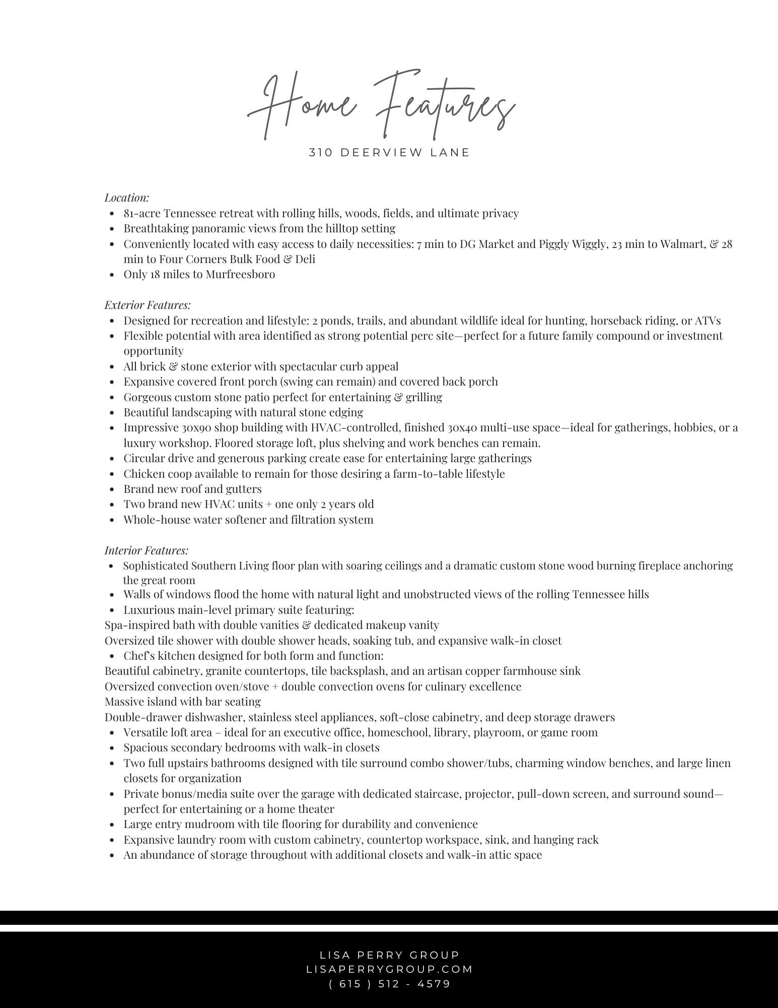 81-Acre Tennessee Retreat with Hilltop Home & Spectacular Views! Discover your own slice of heaven in Tennessee with this rare retreat featuring rolling hills, panoramic views, & ultimate privacy. This property features a beautiful mix of woods & fields with 2 ponds, trails, abundant wildlife, & a 30x90 shop - it's the perfect blend of country living & recreation. Bring your ATVs, four-wheelers, farm animals, tree stands - this property is ready for it all. Plus a potential perc site to bring your family compound dreams to life or could be sold off. The shop building has HVAC in 30' x 40' multi- use finished area - perfect for gatherings, hobbies, workshop, etc - the possibilities are endless! The stunning Southern Living floor plan boasts versatility, spacious rooms for hosting, large bedrooms, walk-in closets, & an abundance of storage space. The main-level master suite showcases stunning views, a spa-like bath with double sinks, makeup vanity, tile shower with double shower heads, soaking tub, & walk-in closet. The gourmet kitchen is a chef's dream with granite countertops, a copper farmhouse sink, oversized oven/stove plus double convection ovens, deep drawers, soft close cabinetry, a huge island with bar seating, & double drawer dishwasher. The large loft area can be a great office, home school room, game room, or playroom. The expansive bonus/media room over garage features a projector & pull down screen with separate staircase. Expansive covered front porch & custom rear stone patio. Brand new roof and gutters!! 2 HVAC units are brand new and 1 is 2 years old. Whole house water softener & filtration system! Escape to the country without giving up convenience - 7 min to DG Market & Piggly Wiggly, 23 min to Walmart, & 28 min to fresh local goods at Four Corners Food & Deli.18 Miles to Murfreesboro! Whether you're seeking a rural retreat, hunting land, or a forever home with unmatched views, this one is a true unicorn in today's market.