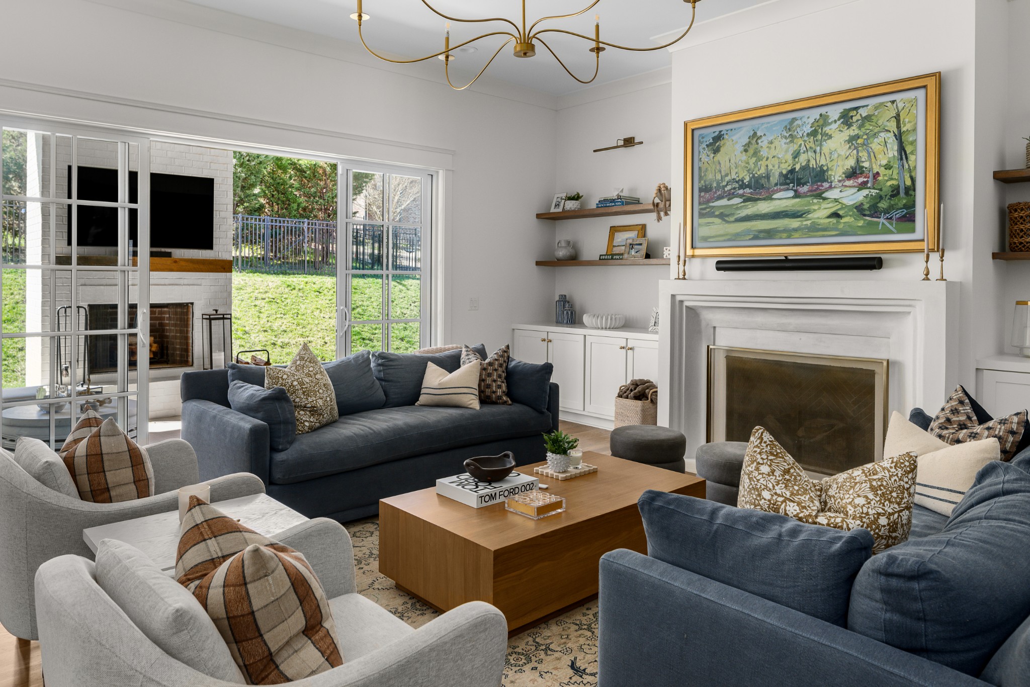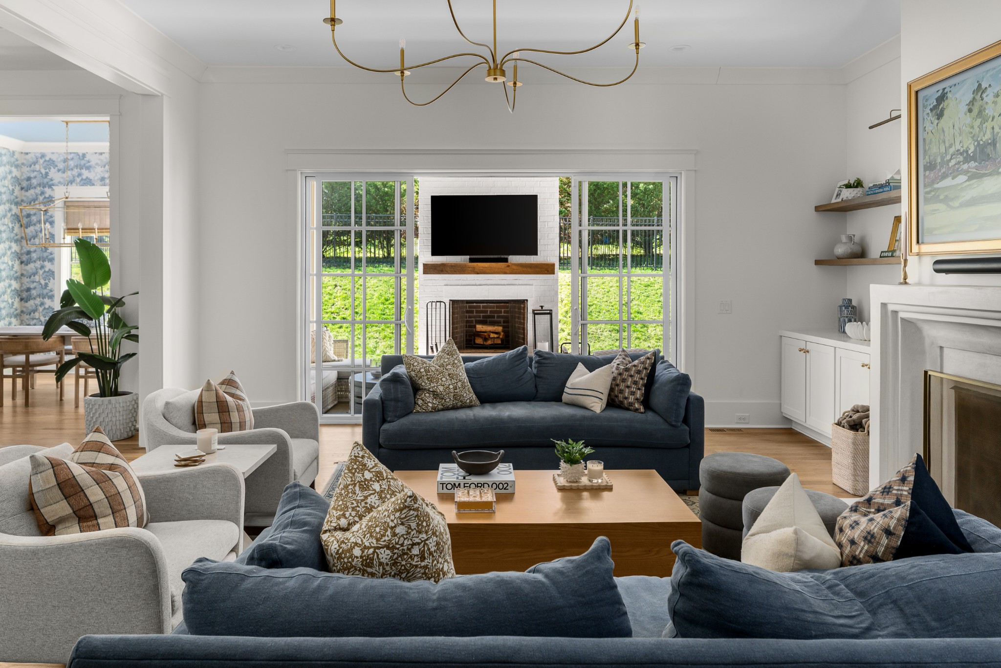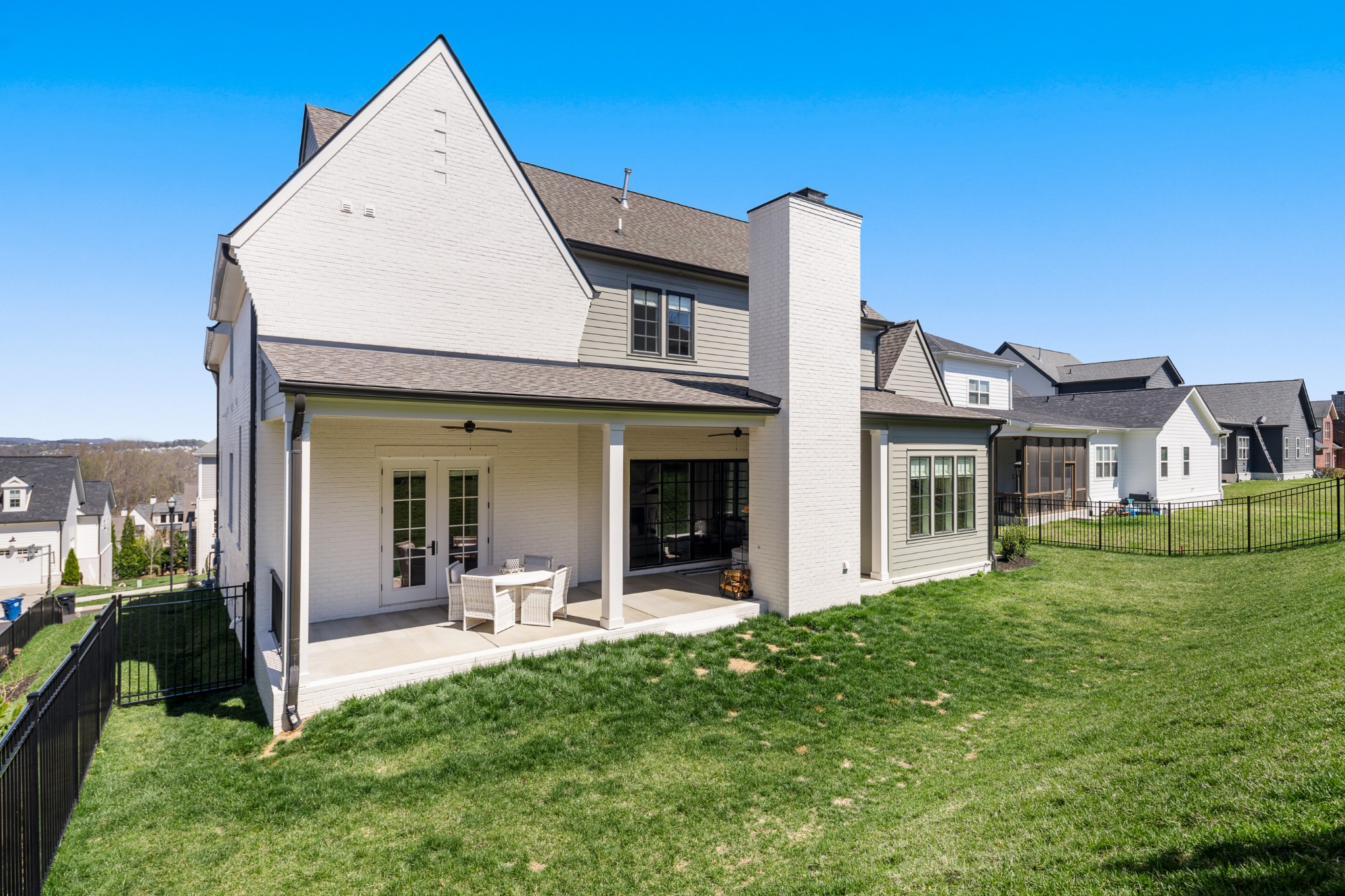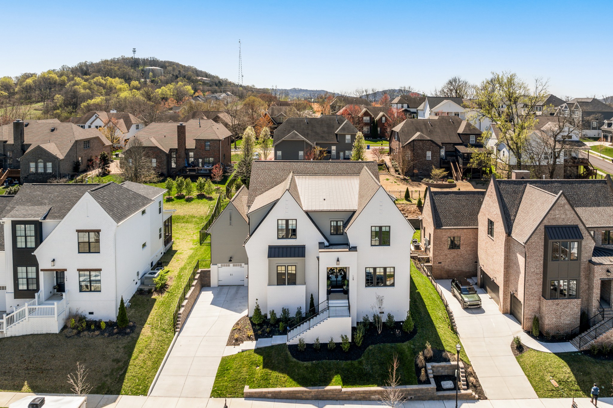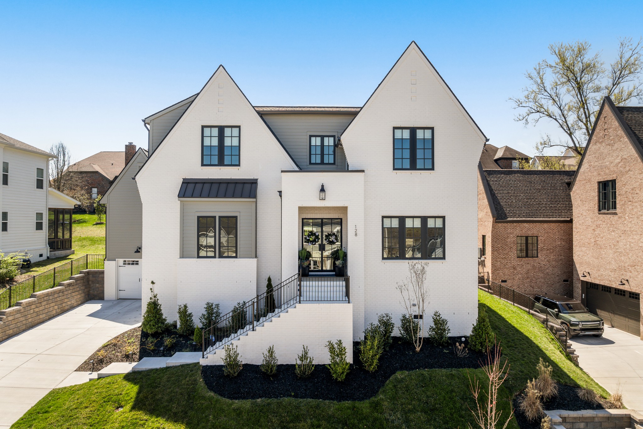 Rare CUSTOM NEW BUILD in one of Franklin’s most desirable communities, this one-of-a-kind 2024 residence was designed by prestigious architect Andrew King, known for his work in Troubadour, The Grove, and Oman. Every aspect of this home has been carefully CURATED AND UPGRADED, down to the hardware, creating a living experience that is as refined as it is functional. The painted brick exterior is accented by striking iron and glass double front doors, a THREE CAR GARAGE, and a spacious covered back porch with an outdoor fireplace, offering the perfect blend of elegance and comfort. Inside, an open floor plan showcases soaring 11-foot ceilings on the main level and 10-foot ceilings upstairs, hardwood flooring throughout, and intricate custom trim work. The gourmet kitchen is a showpiece with quartz countertops, a solid slab backsplash, a ten-foot island, an expansive pantry, and a premium THERMADOR appliance package. The vaulted primary suite on the main floor provides a serene retreat with a spa-like bath and an oversized custom closet, while four additional bedrooms upstairs each feature ensuite baths adorned with handmade ZELLIGE TILE that brings artisanal texture and timeless beauty to the spaces. The second floor also includes a spacious recreation room with four custom built-in BUNK BEDS and a full laundry room, in addition to the main level laundry, ensuring effortless convenience. Designer wallpaper, curated paint selections, DESIGNER LIGHTING, and elevated finishes carry throughout the home, reinforcing the level of detail and artistry in every room. With two fireplaces, dual laundry, and every possible luxury upgrade, this home truly has it all. The community itself enhances the lifestyle with two pools, playgrounds, basketball courts, hiking trails, and more, making this property a rare opportunity in Franklin.